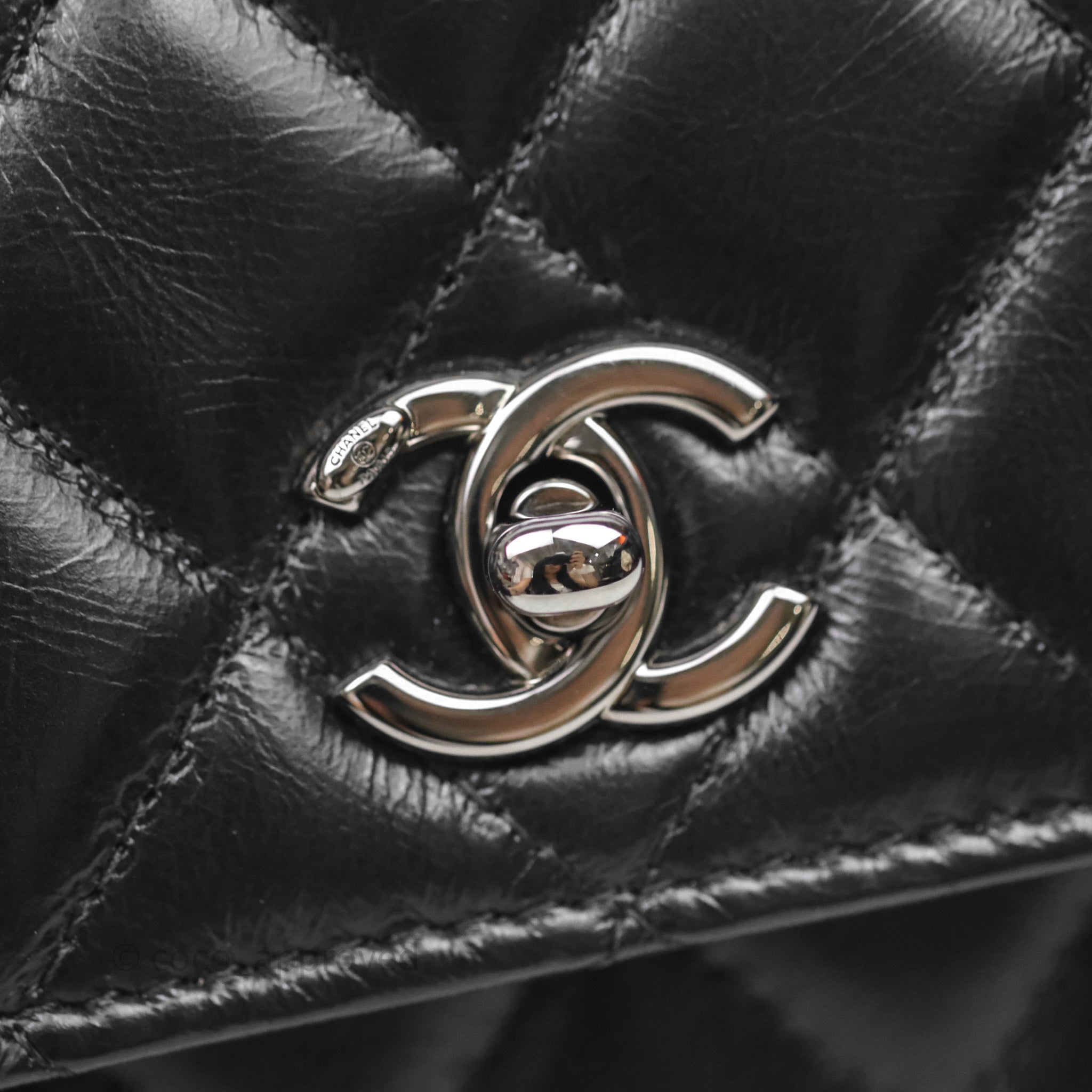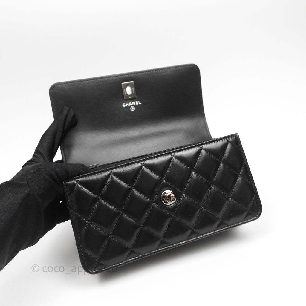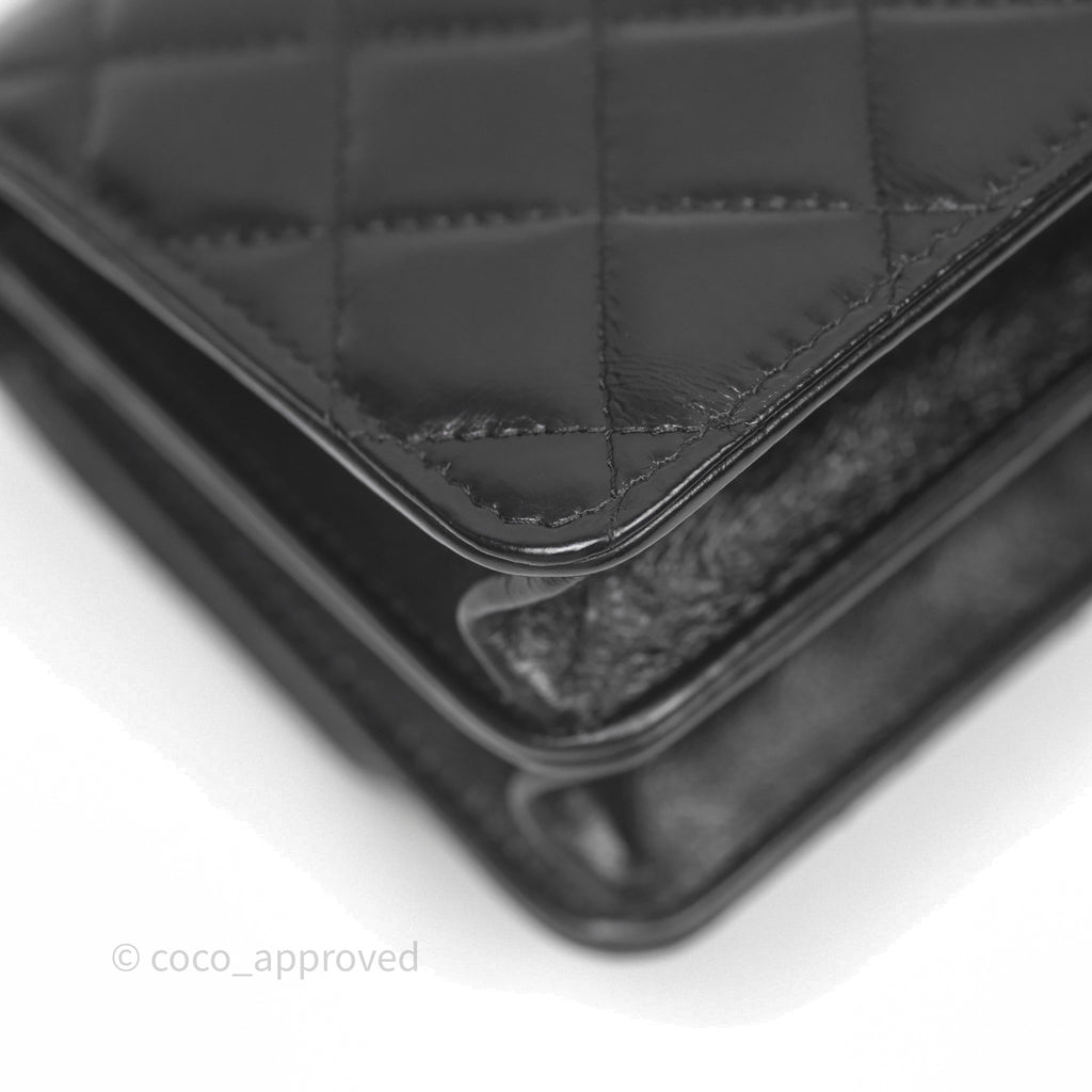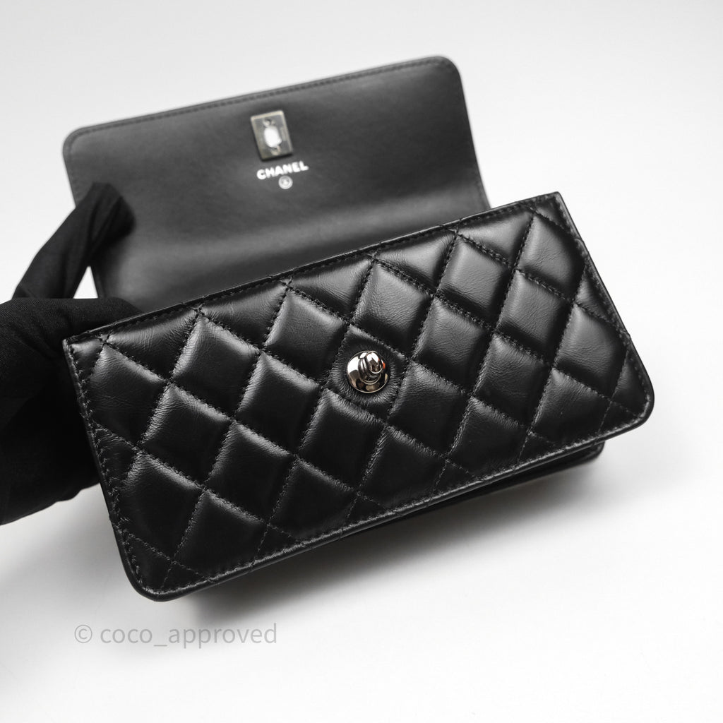 Chanel Mini Crystal Top Handle Wallet On Chain WOC Black Calfskin Gun Metal Hardware 23K