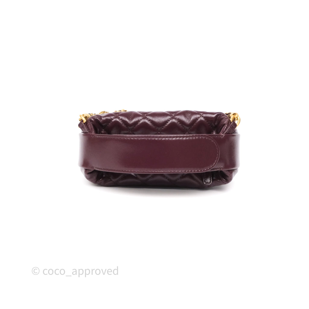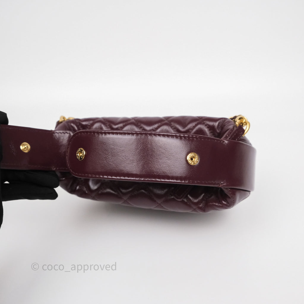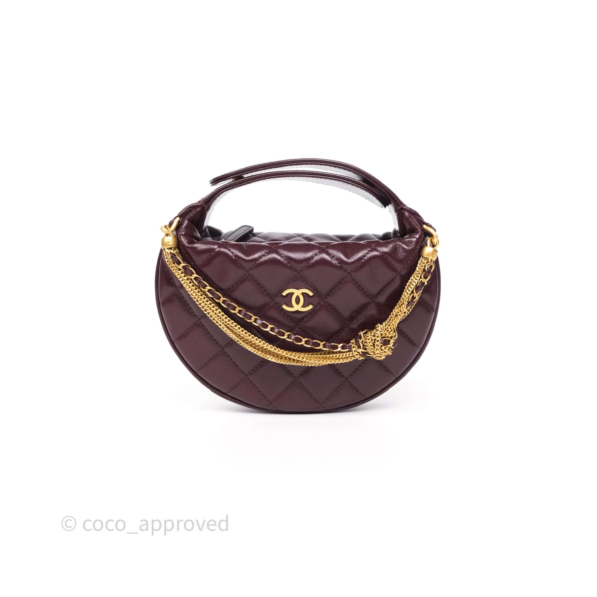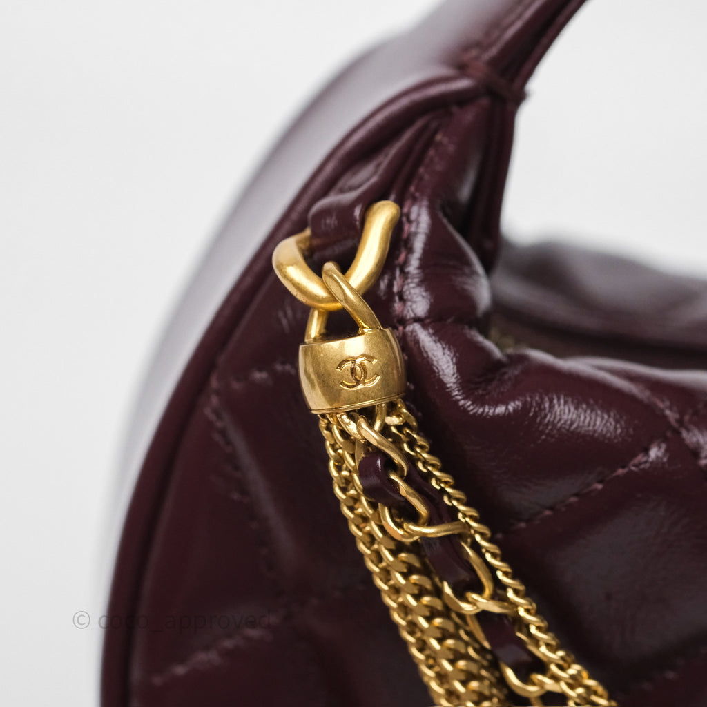 Chanel Mini Hobo Pouch Dark Burgundy Shiny Crumpled Calfskin Aged Gold Hardware