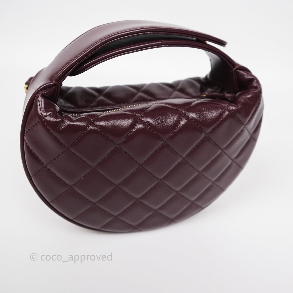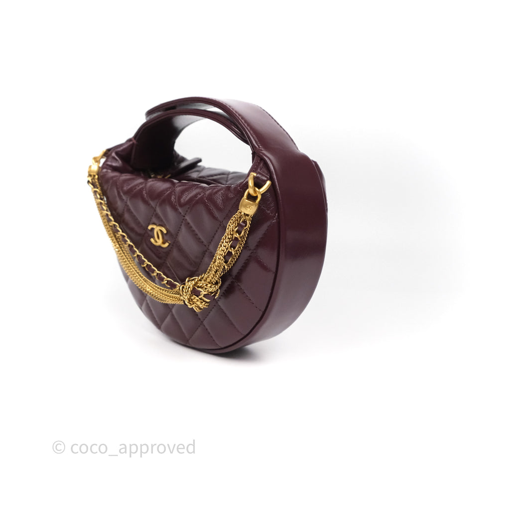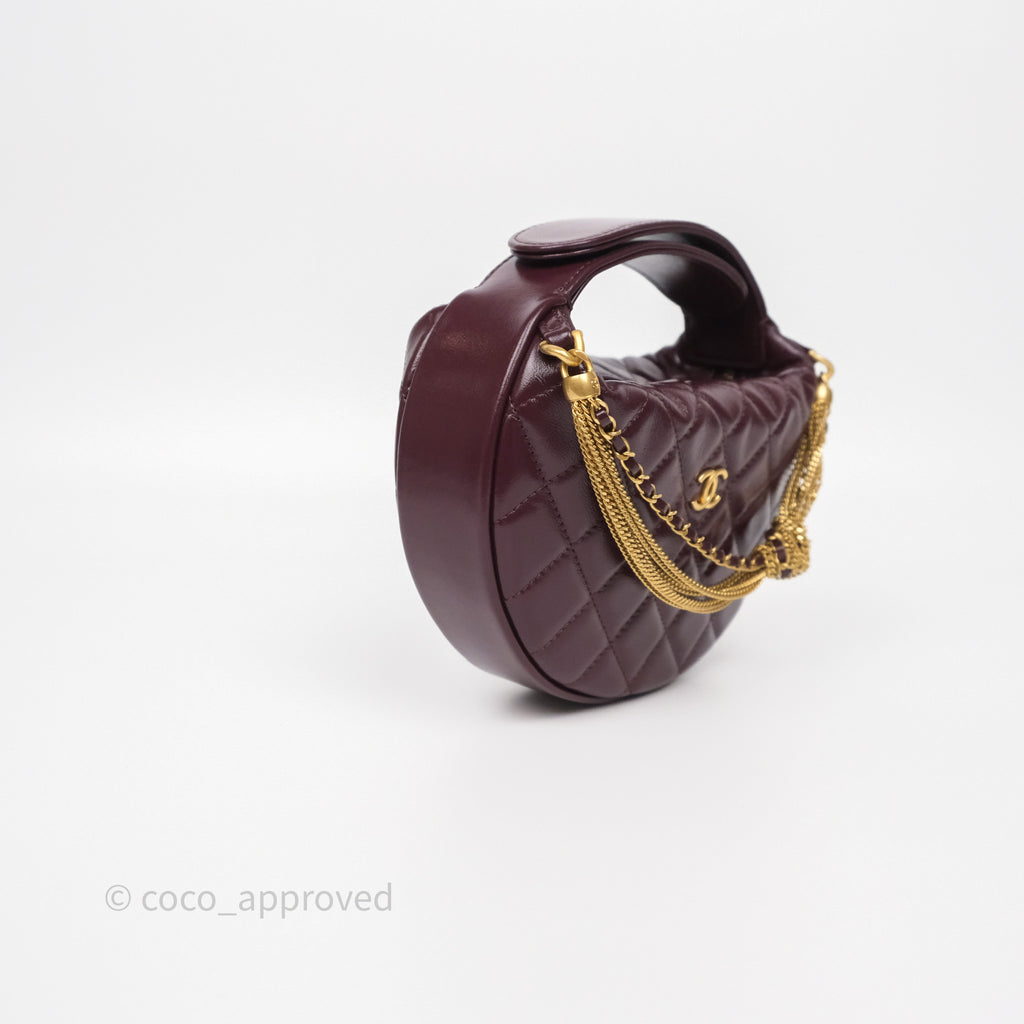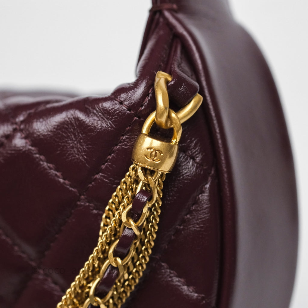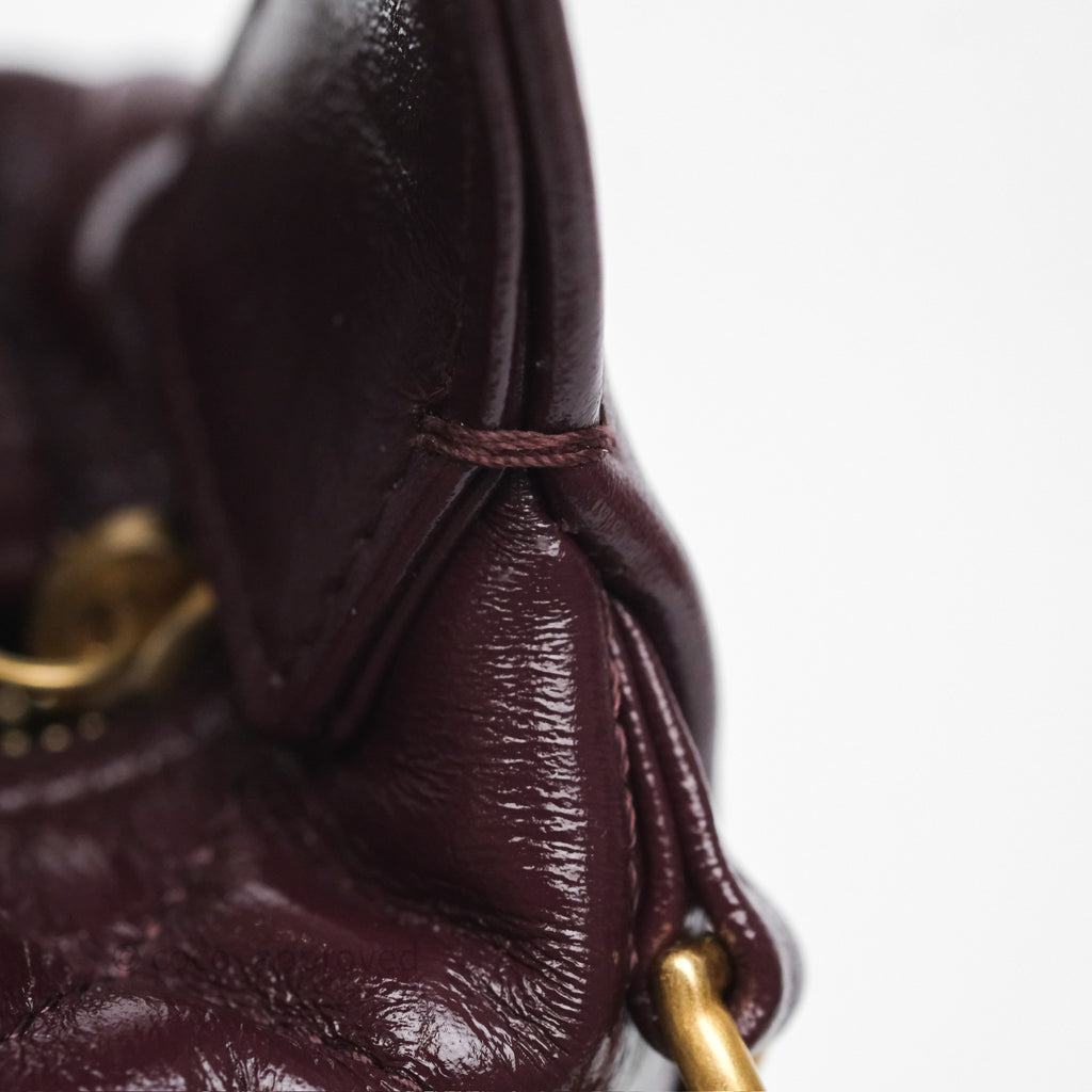 Chanel Mini Hobo Pouch Dark Burgundy Shiny Crumpled Calfskin Aged Gold Hardware