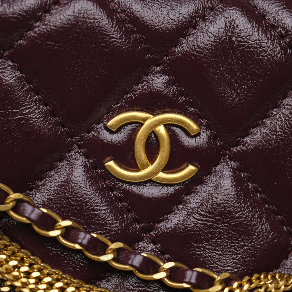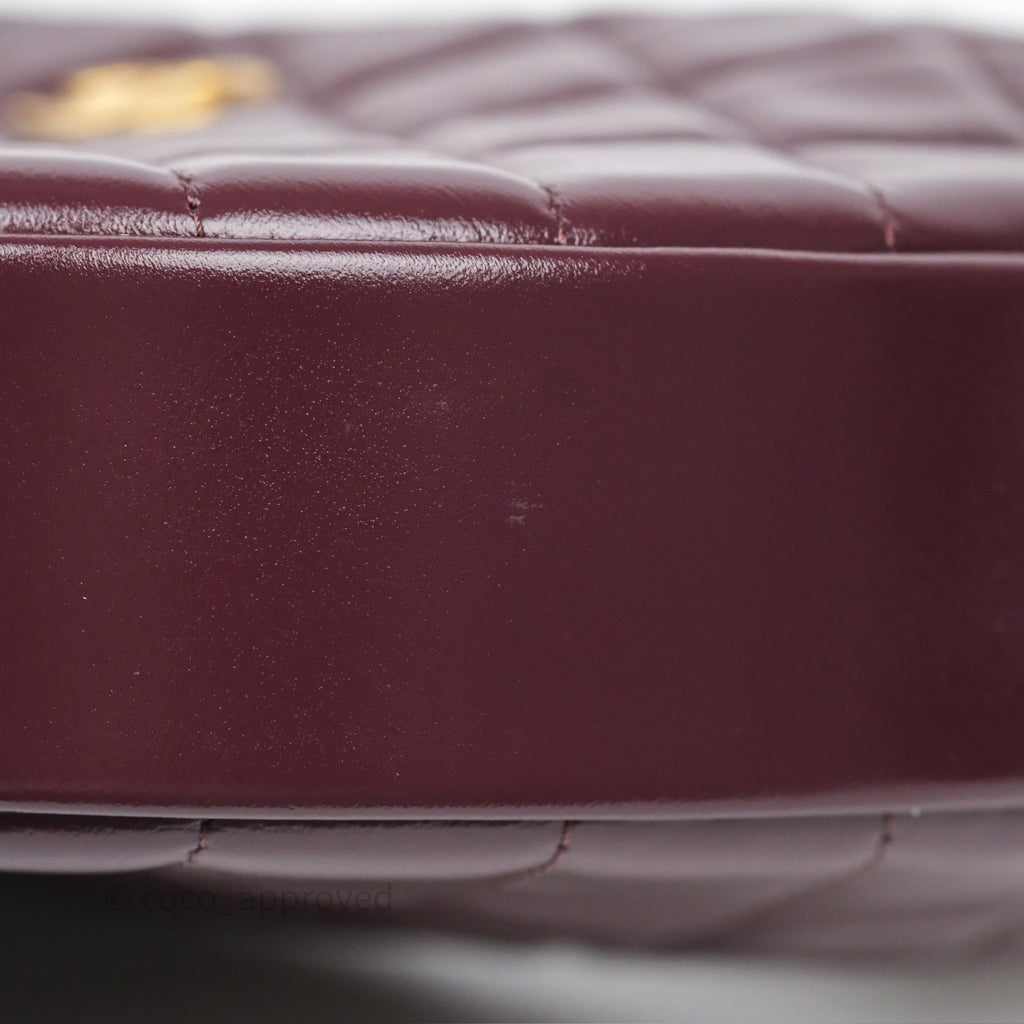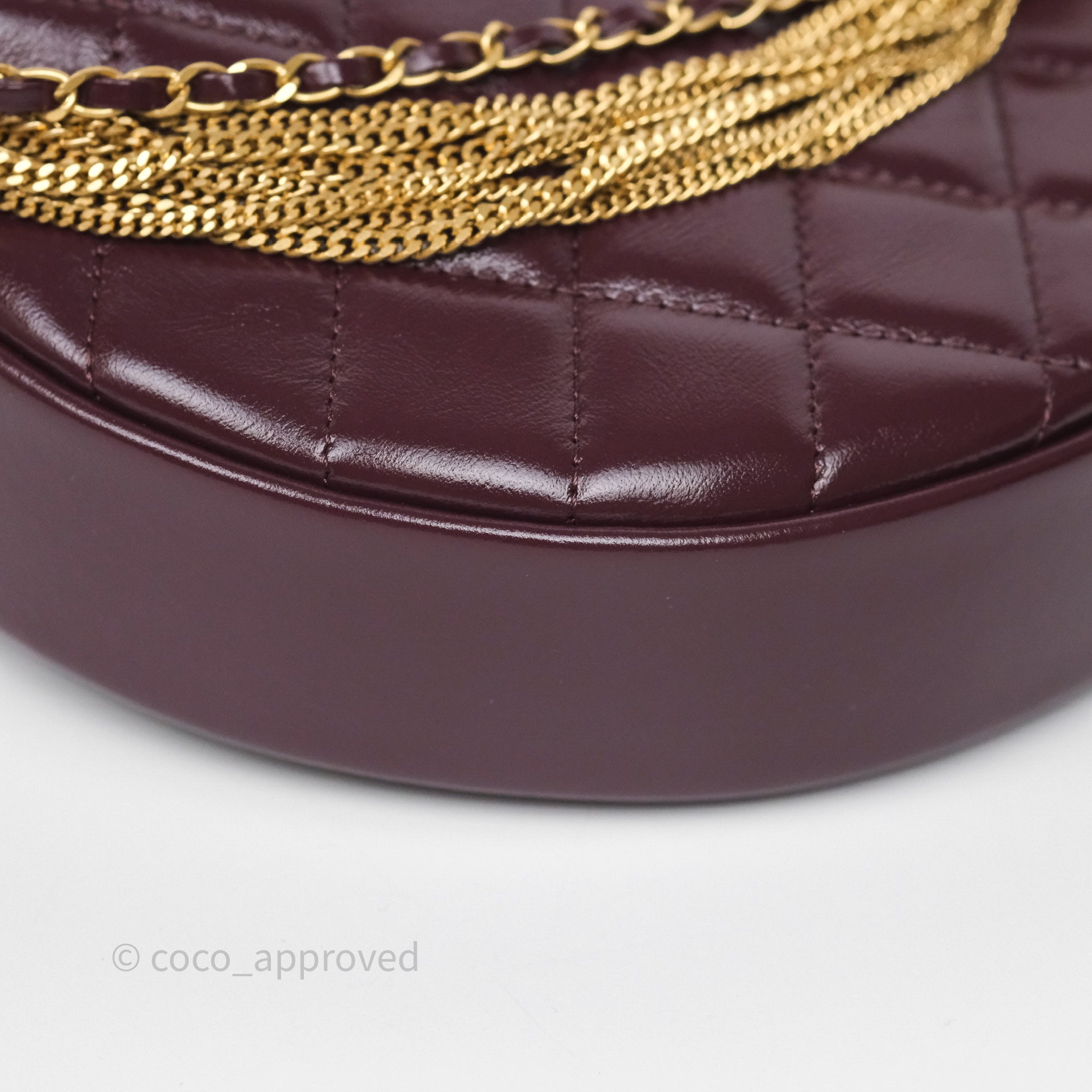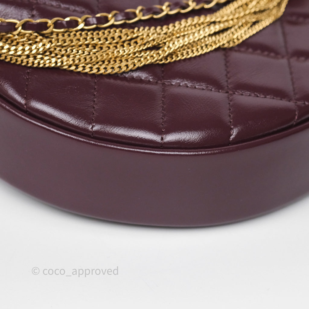 Chanel Mini Hobo Pouch Dark Burgundy Shiny Crumpled Calfskin Aged Gold Hardware