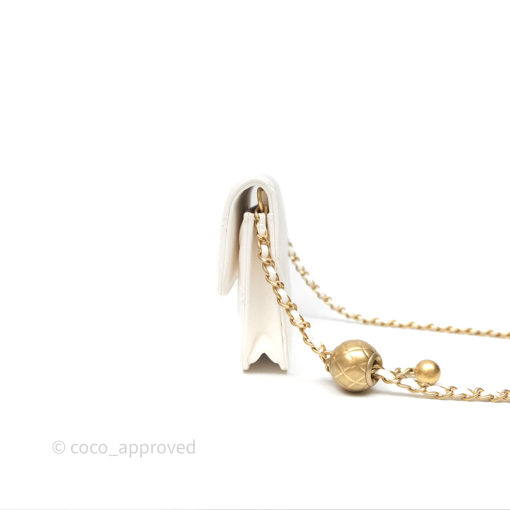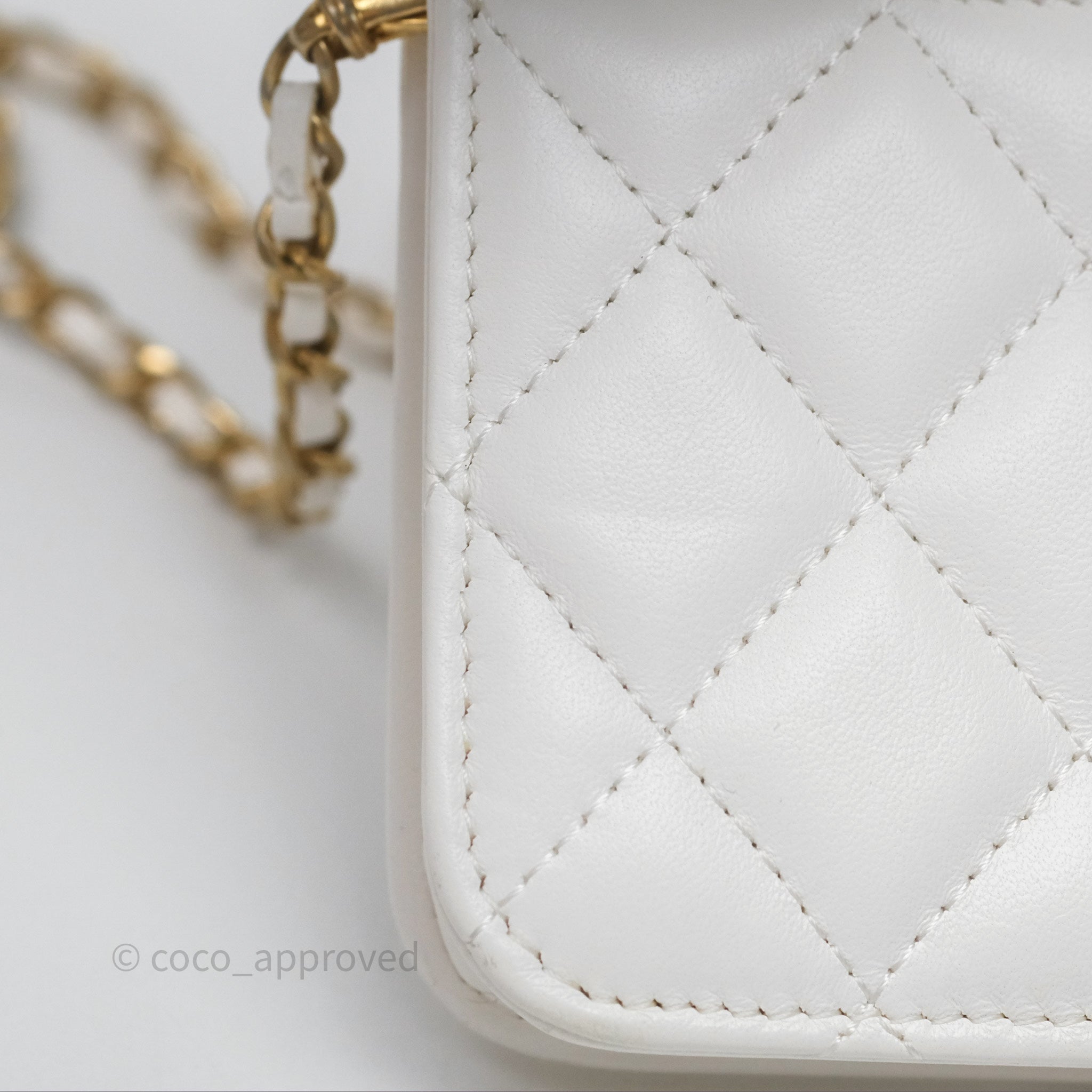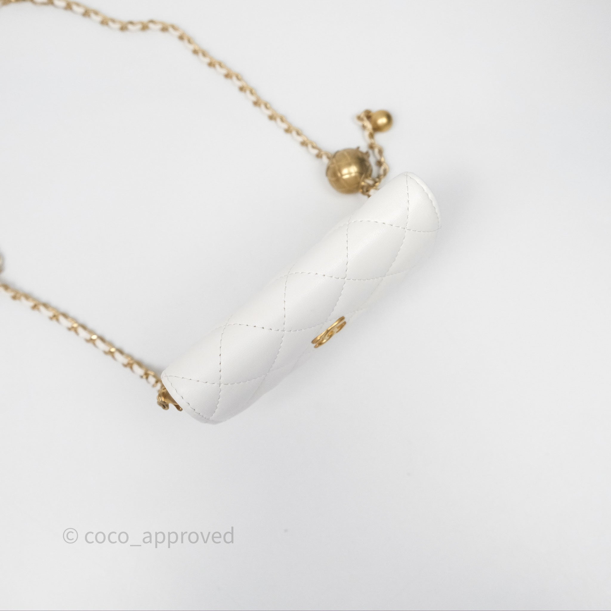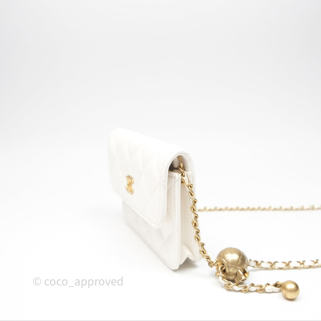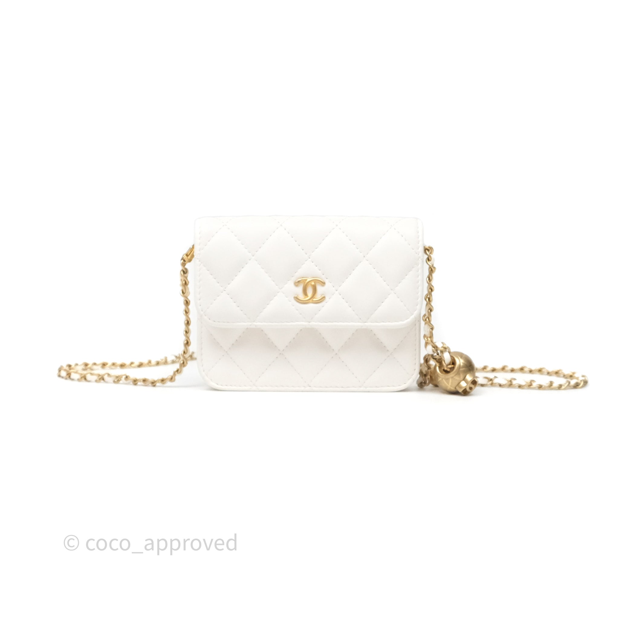 Chanel Mini Pearl Crush Clutch With Chain Belt Bag White Aged Gold Hardware