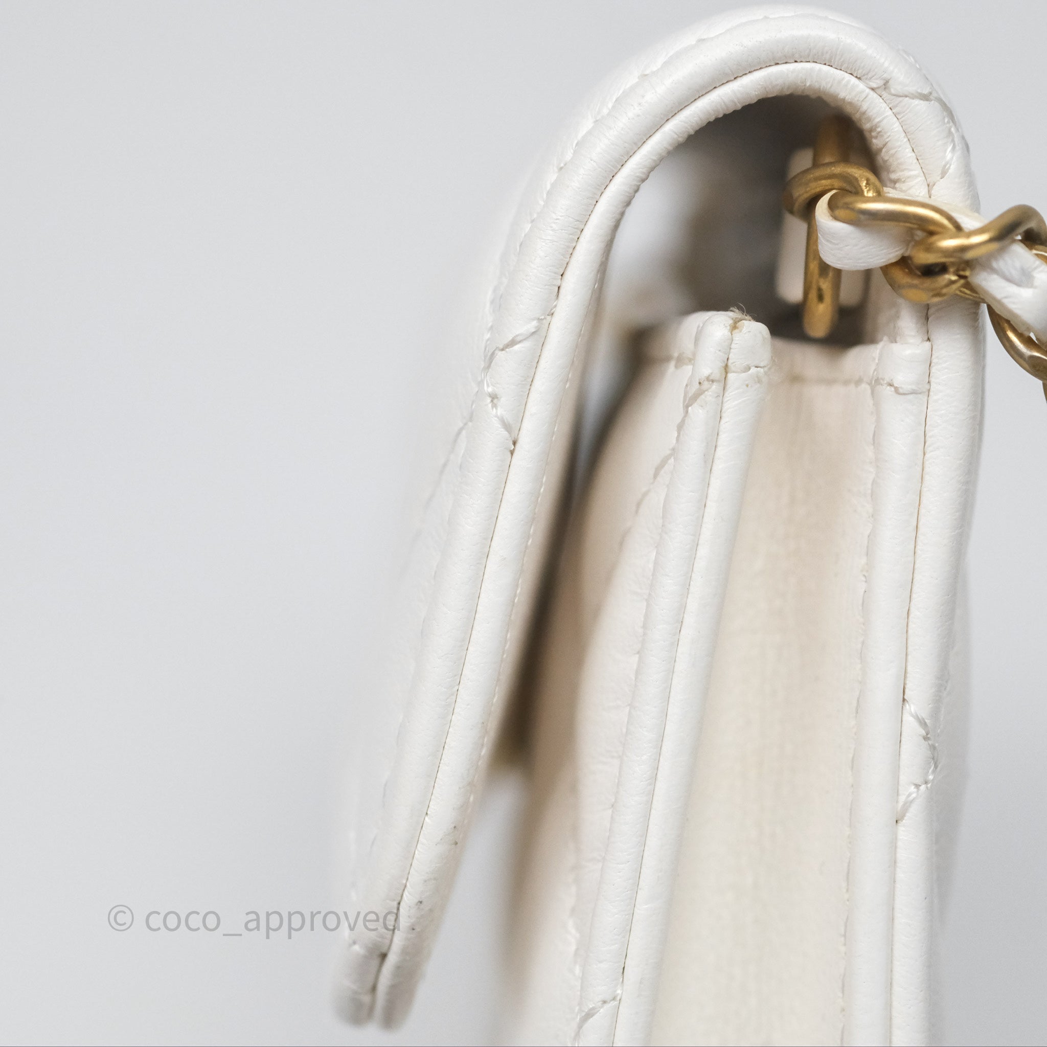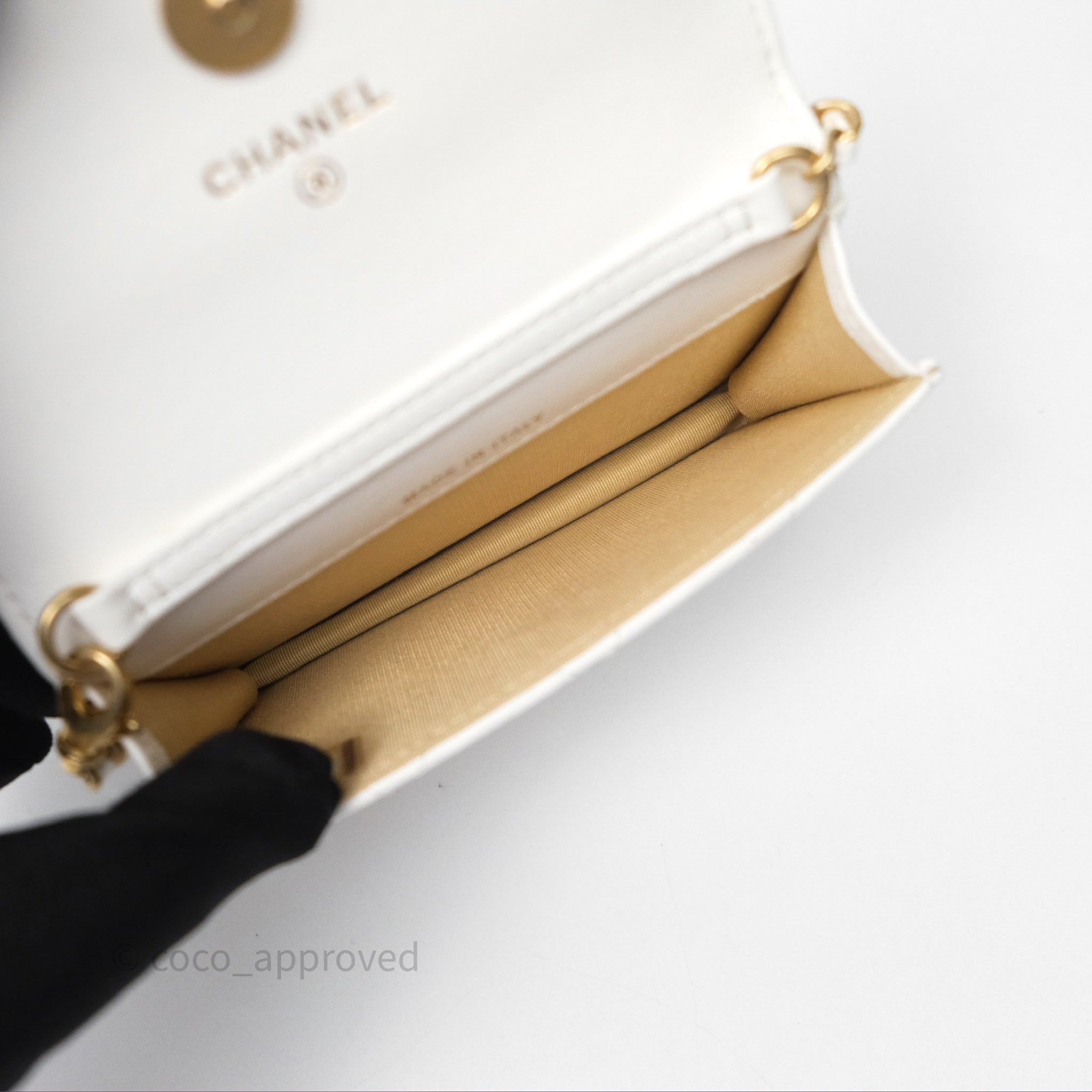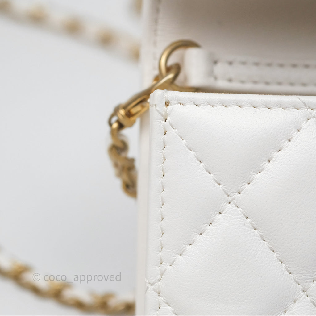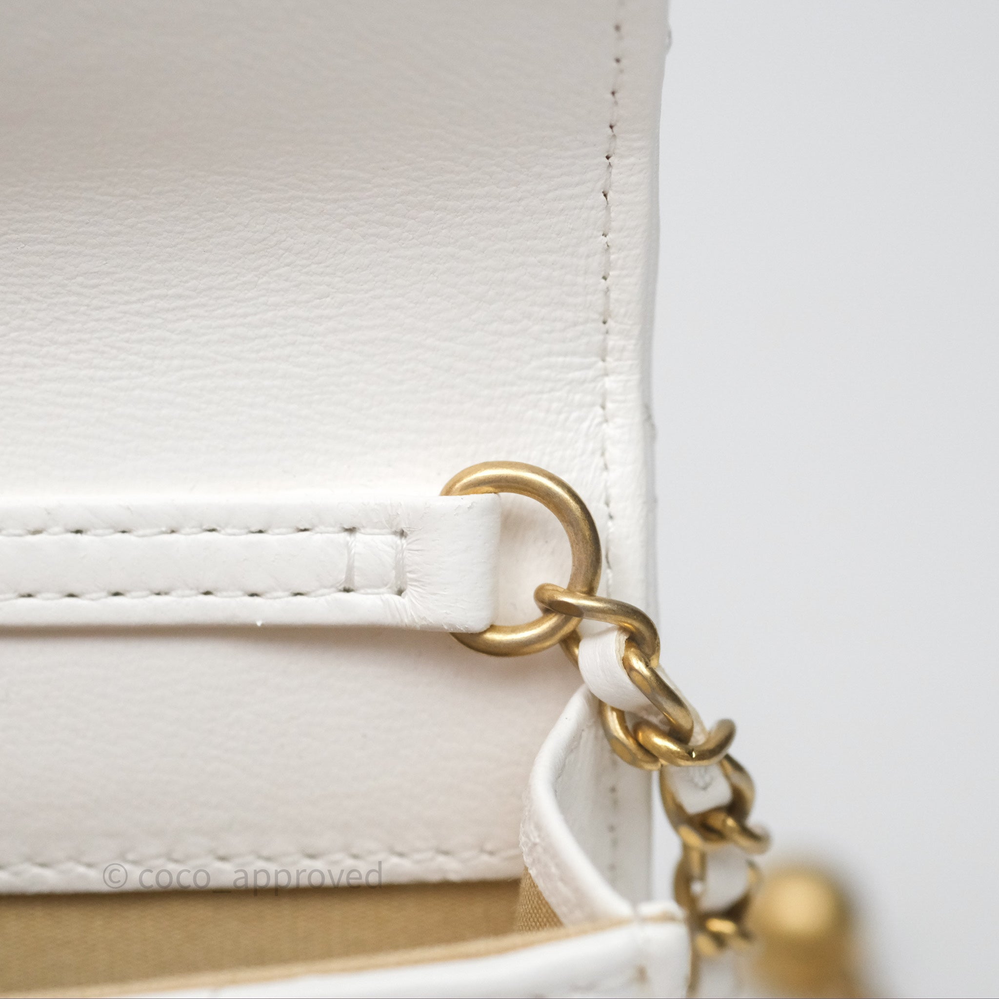 Chanel Mini Pearl Crush Clutch With Chain Belt Bag White Aged Gold Hardware
