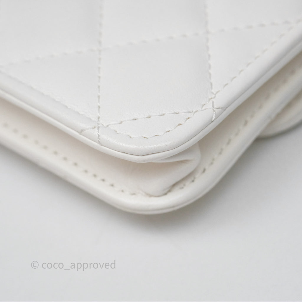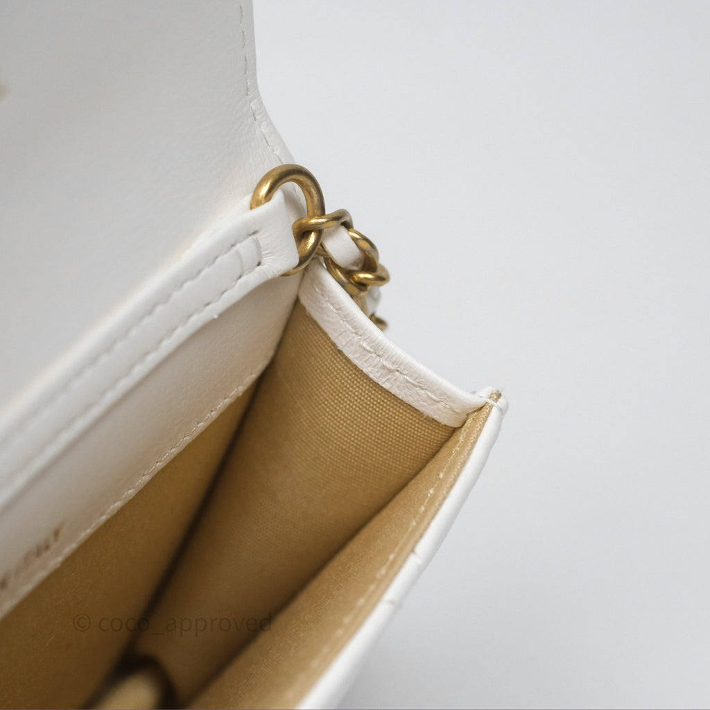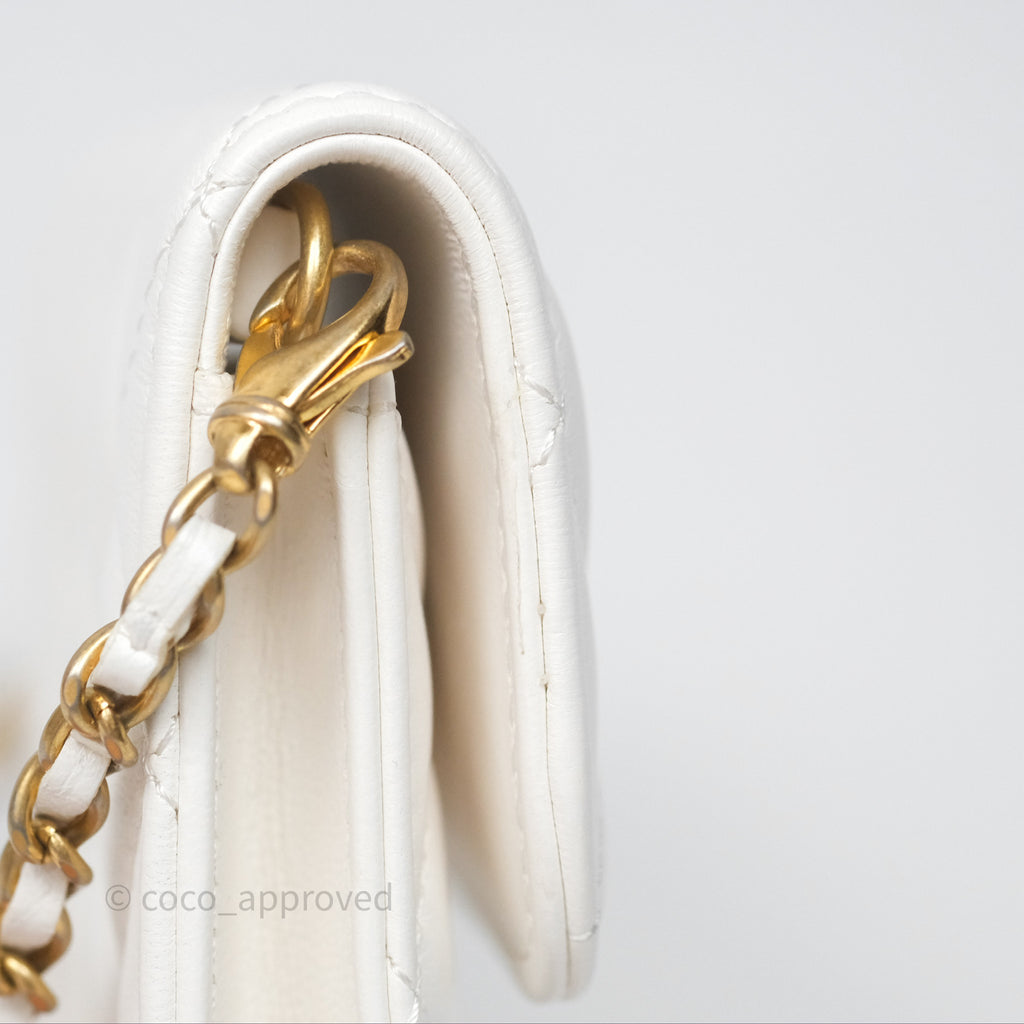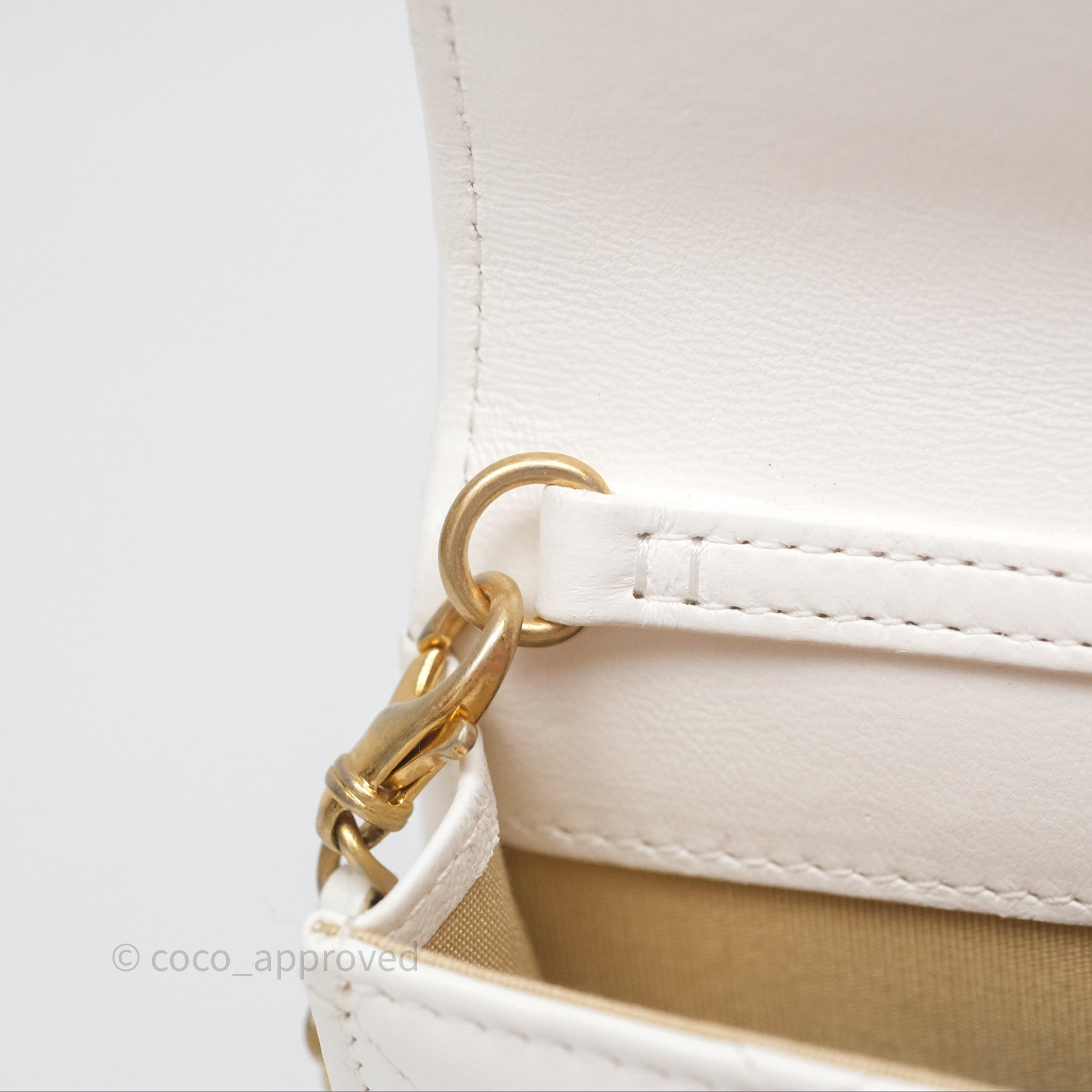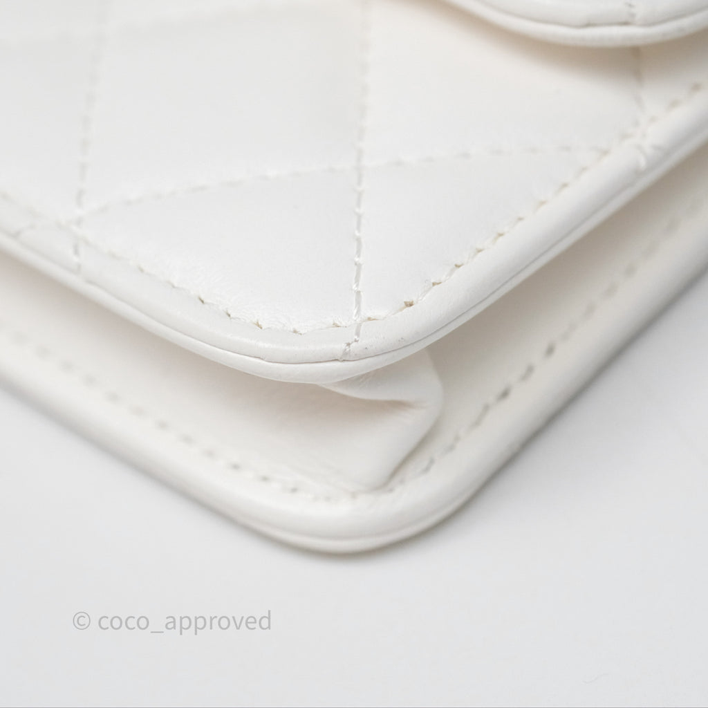 Chanel Mini Pearl Crush Clutch With Chain Belt Bag White Aged Gold Hardware