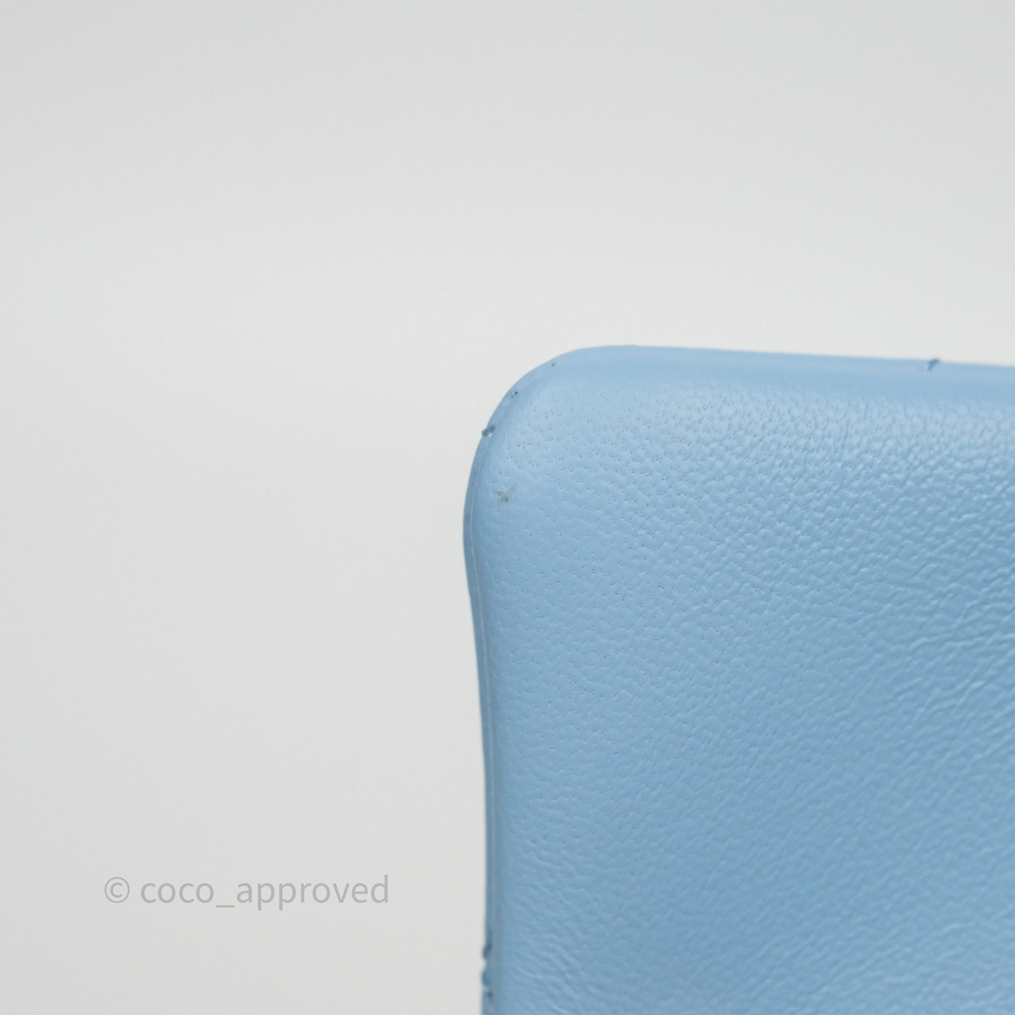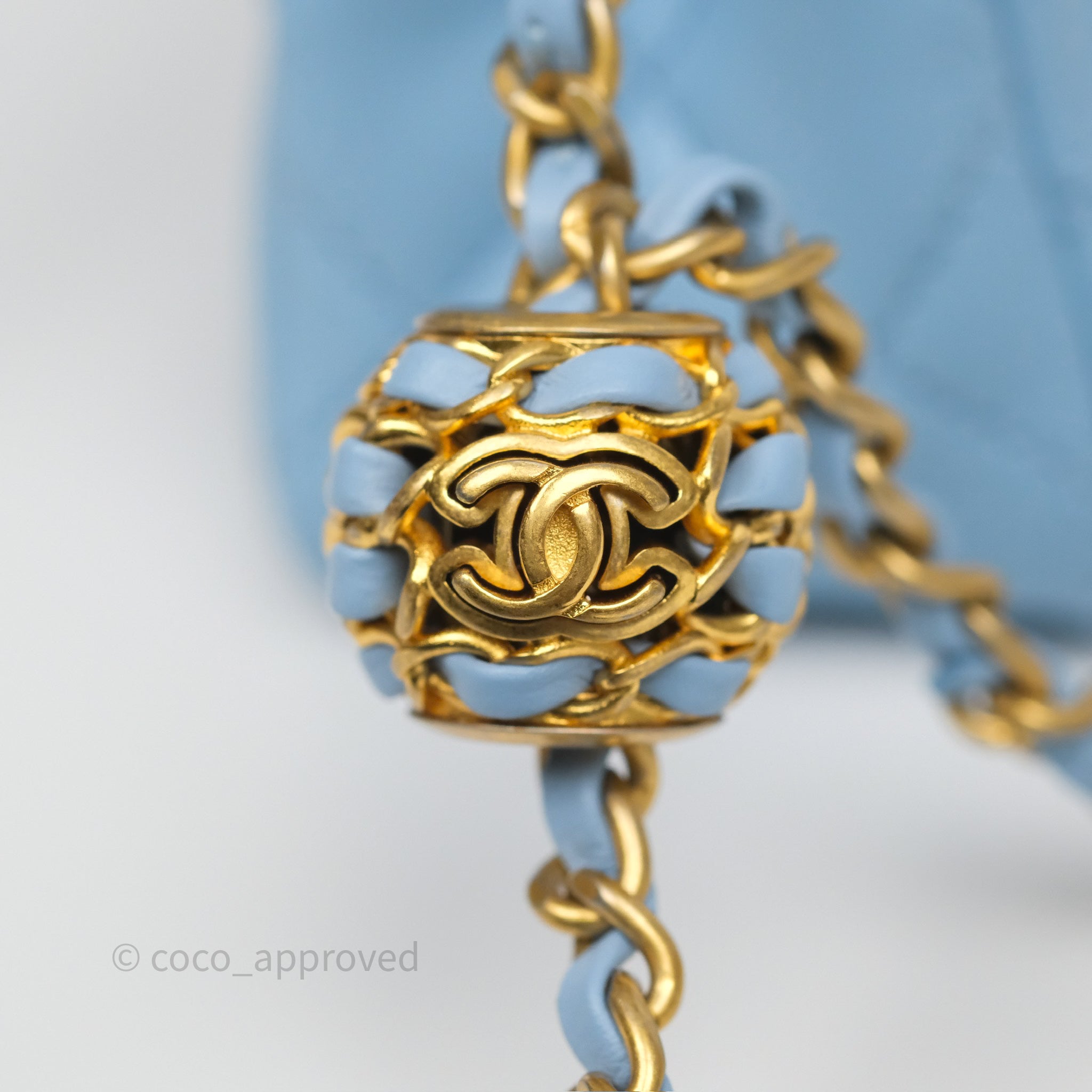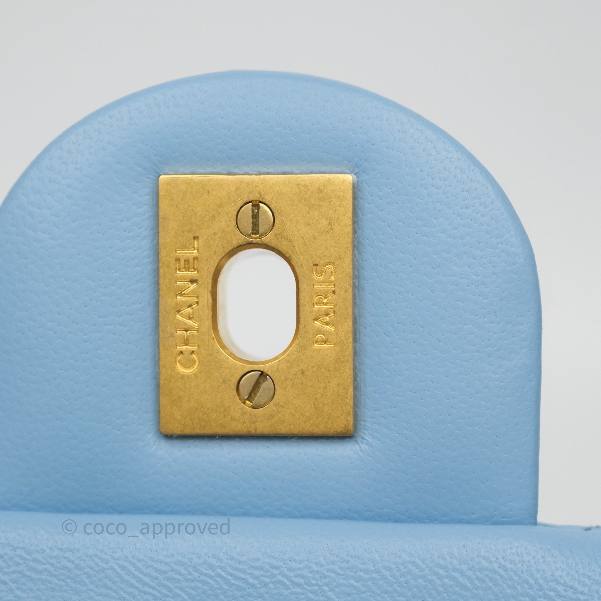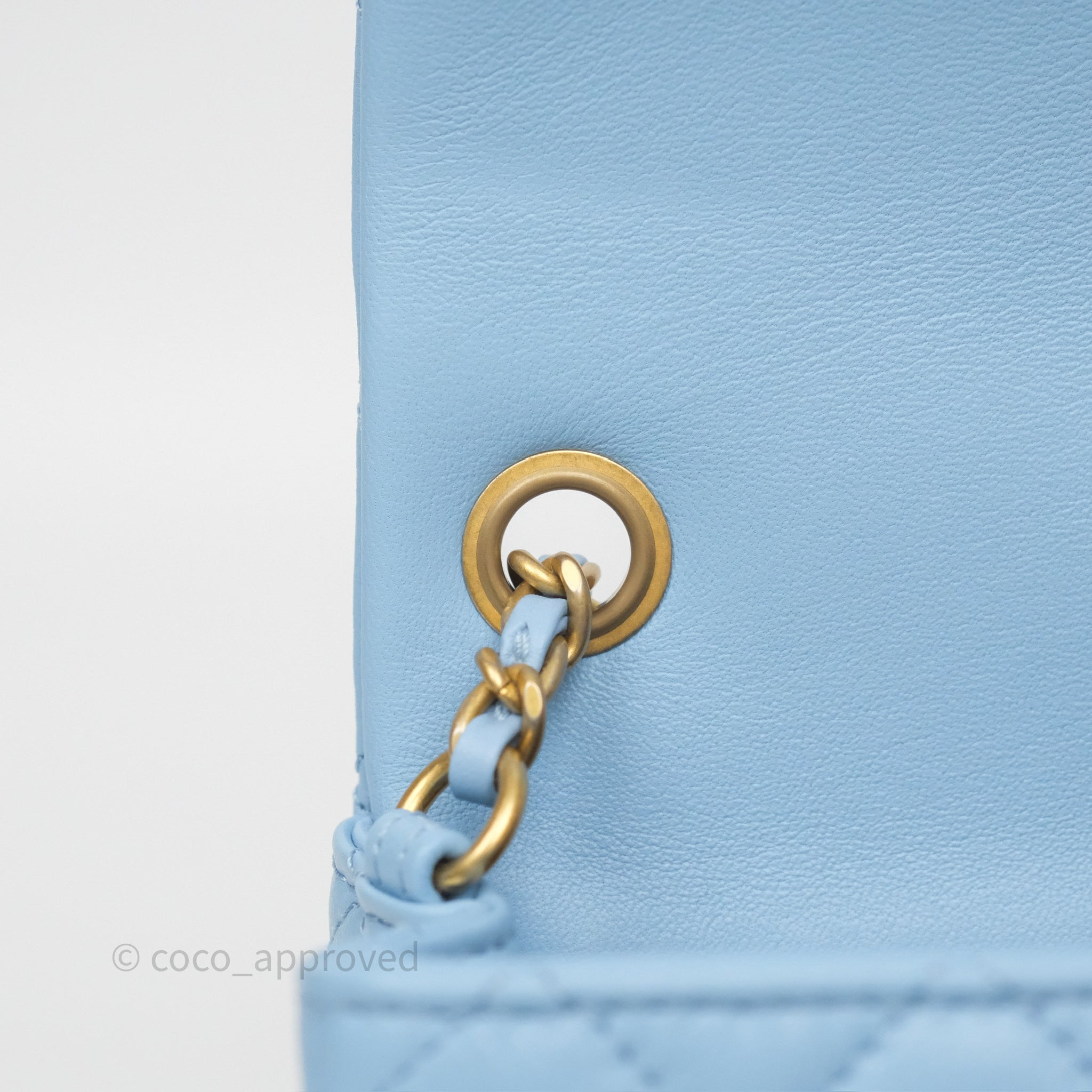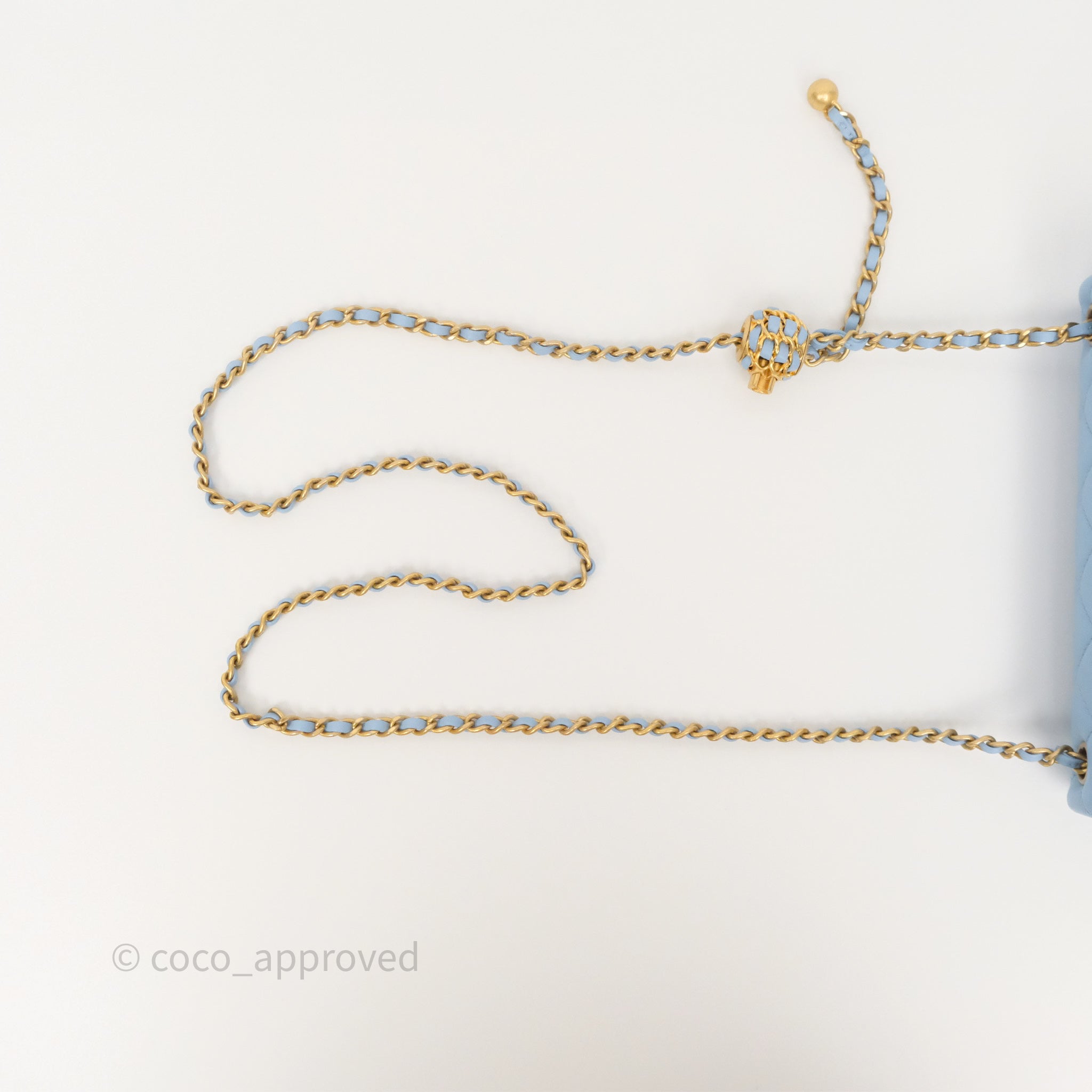 Chanel Mini Rectangular Pearl Crush Quilted Sky Blue Lambskin Aged Gold Hardware