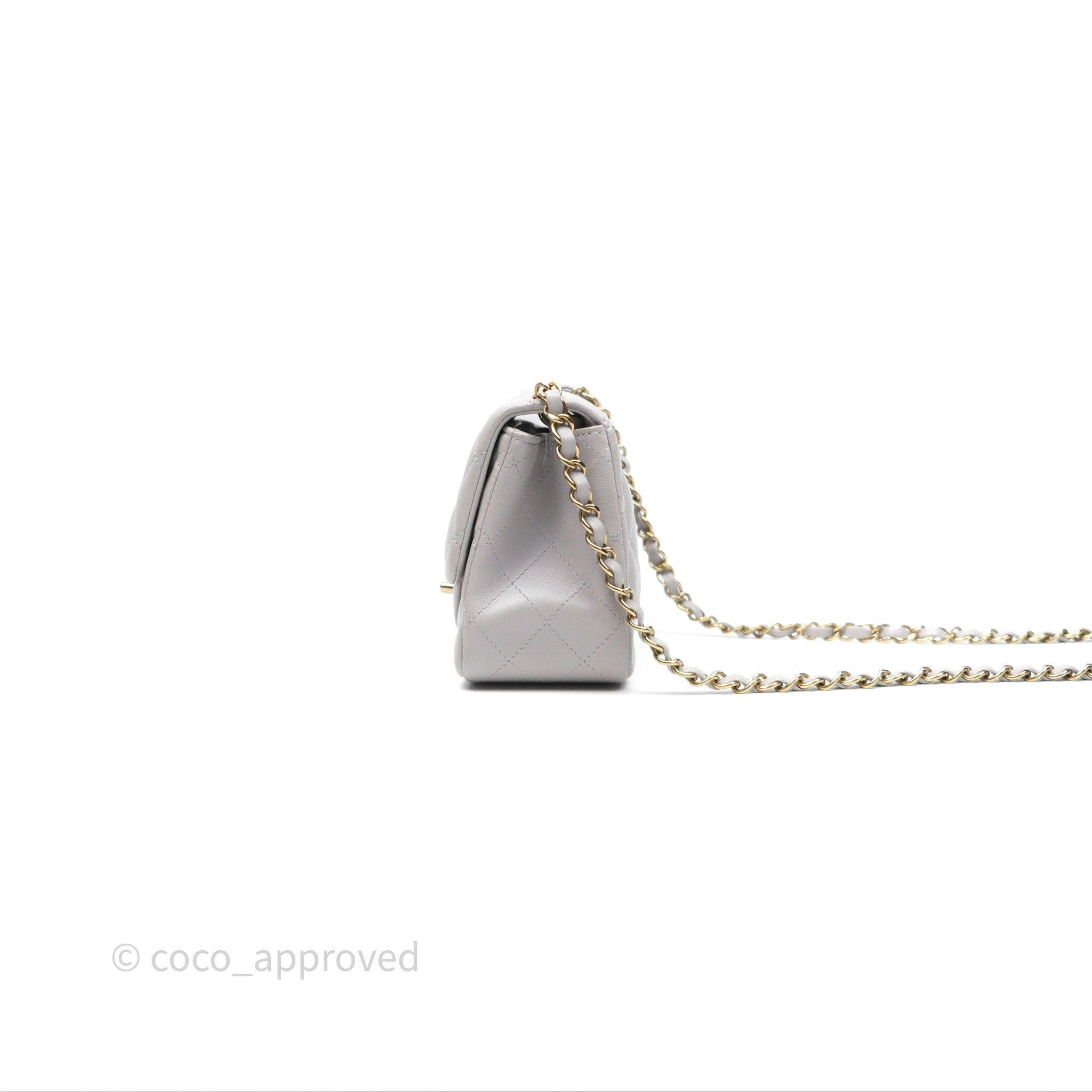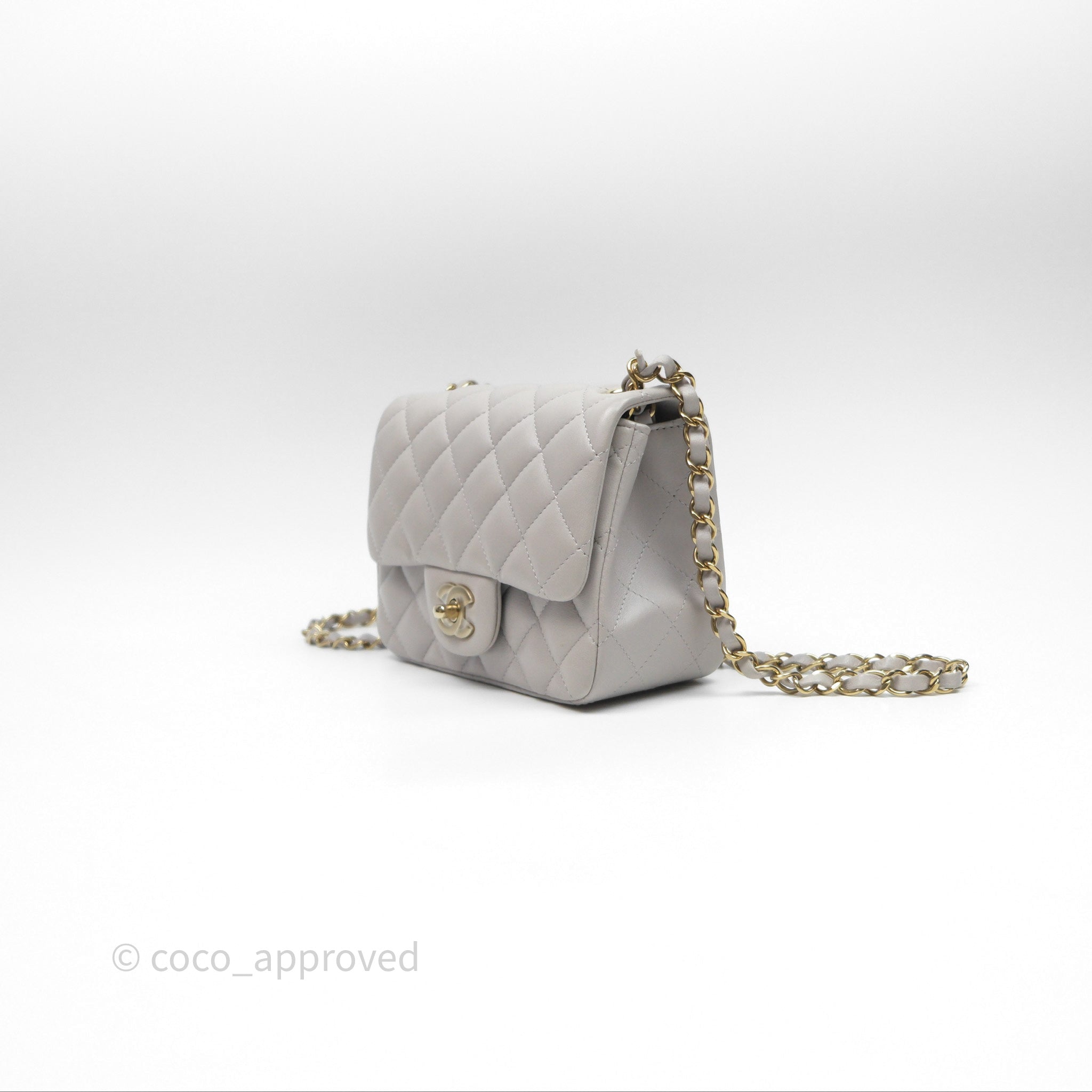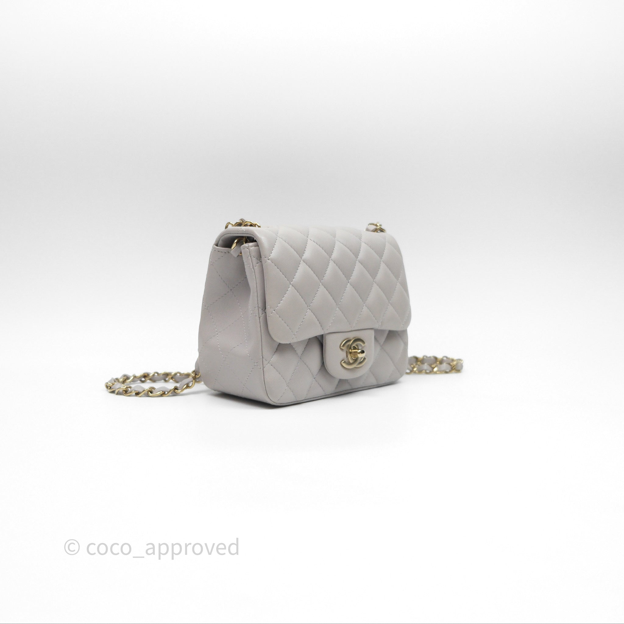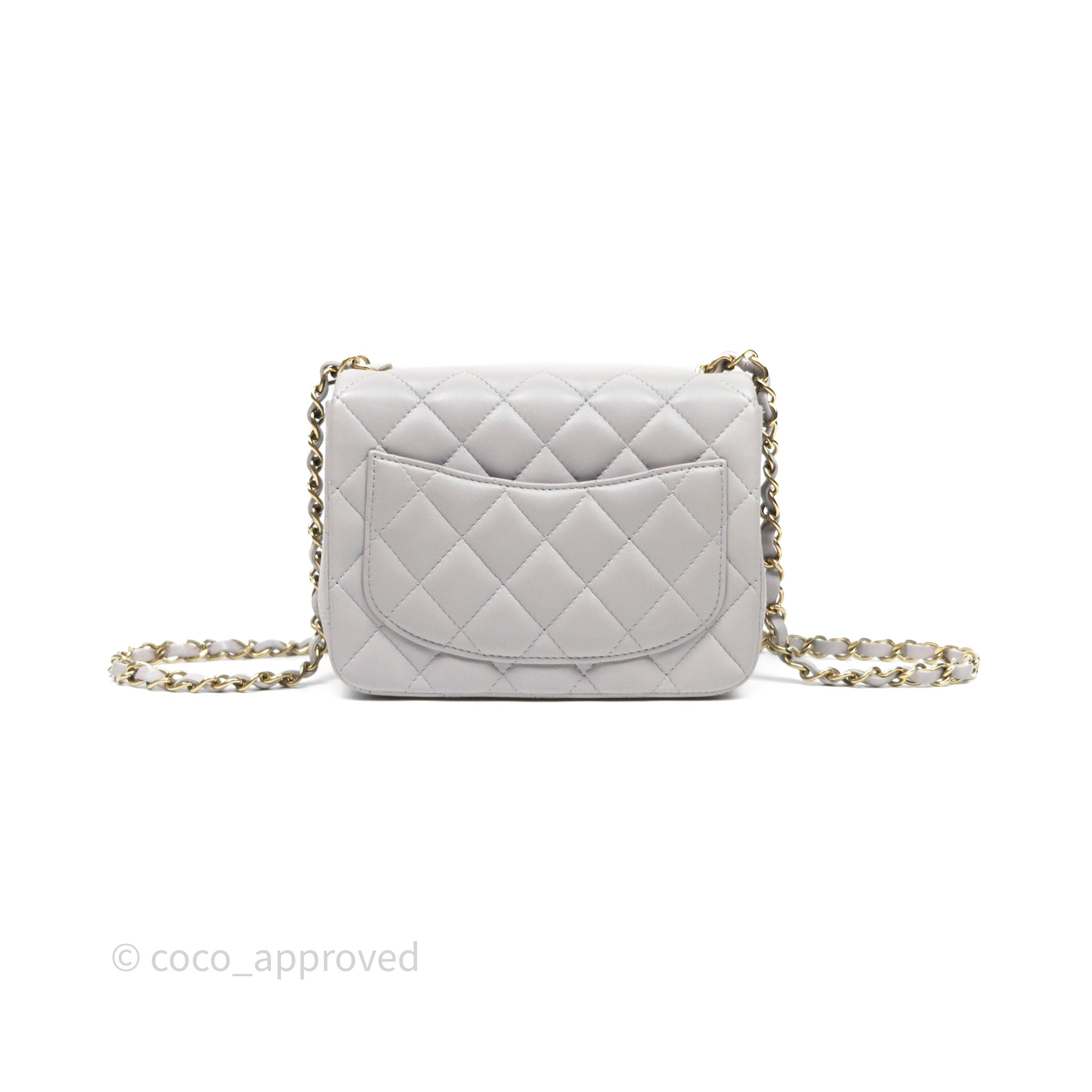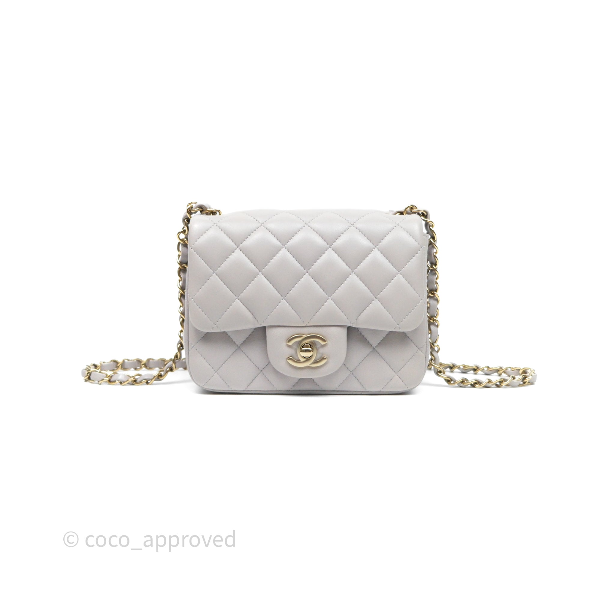 Chanel Mini Square Flap Quilted Light Grey Lambskin Gold Hardware