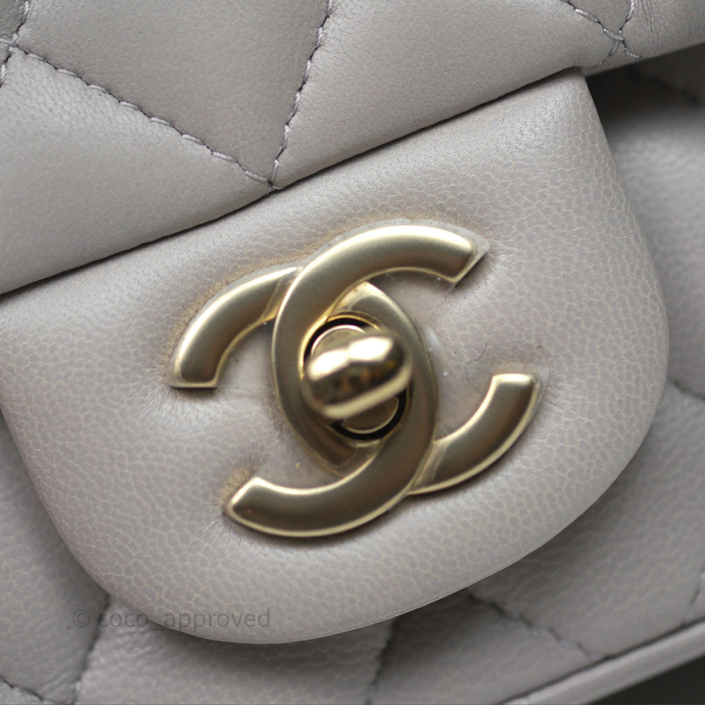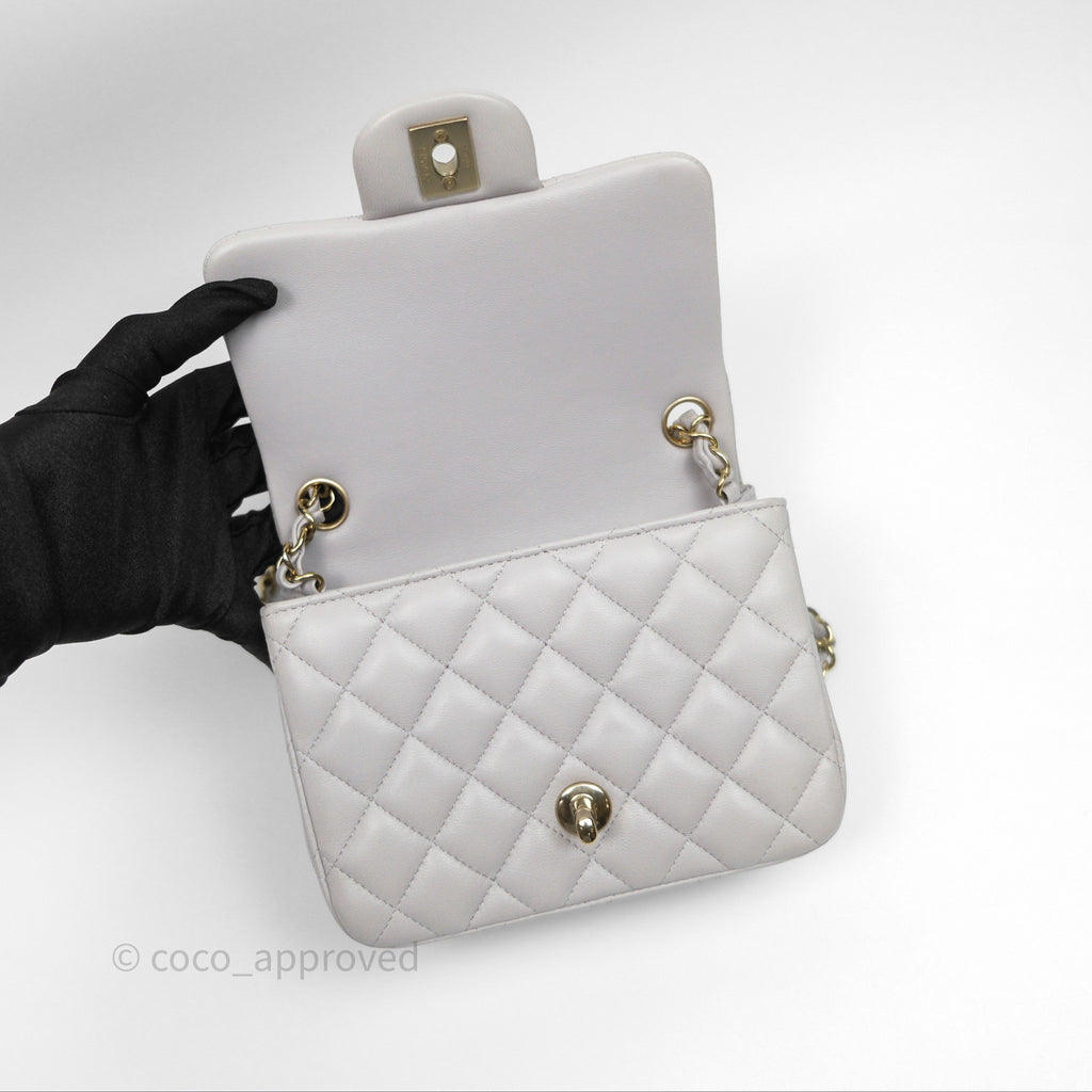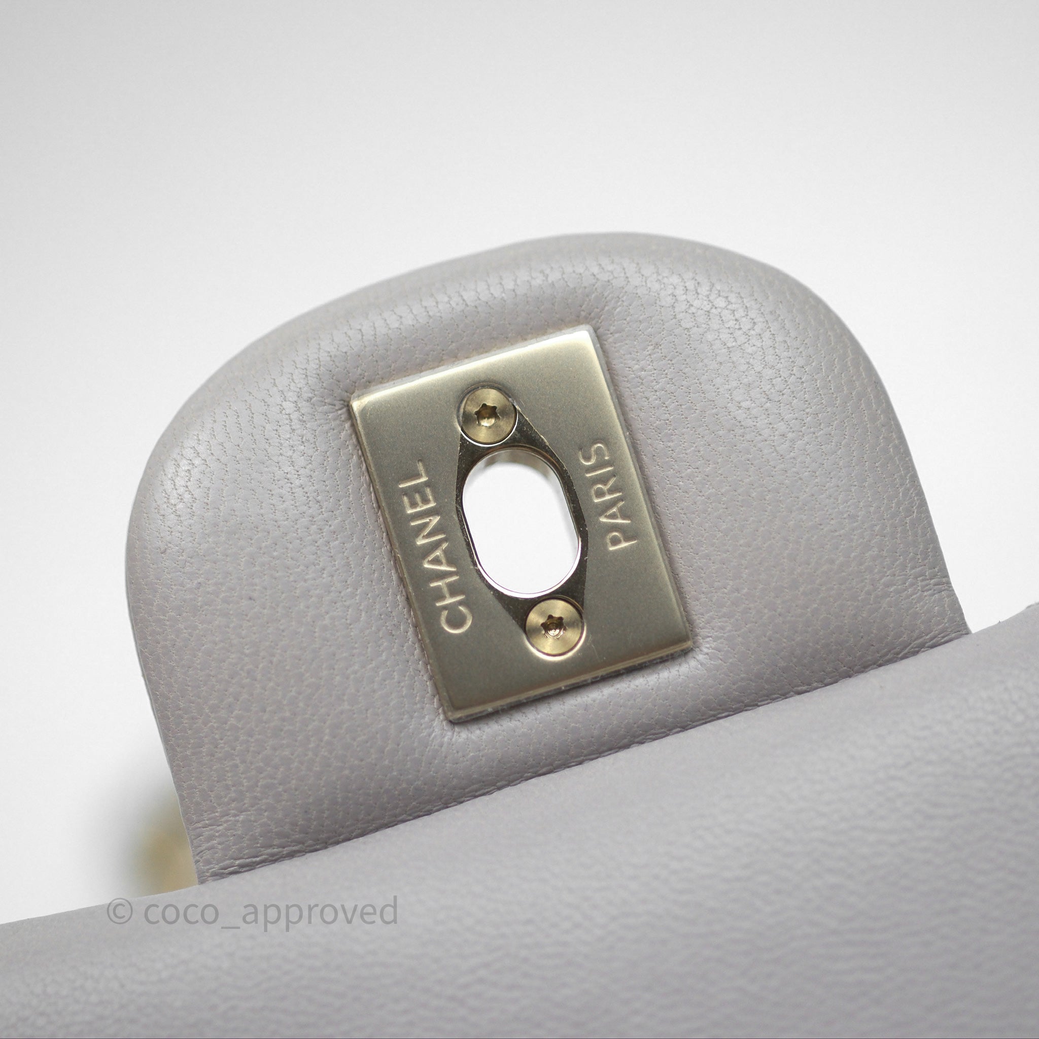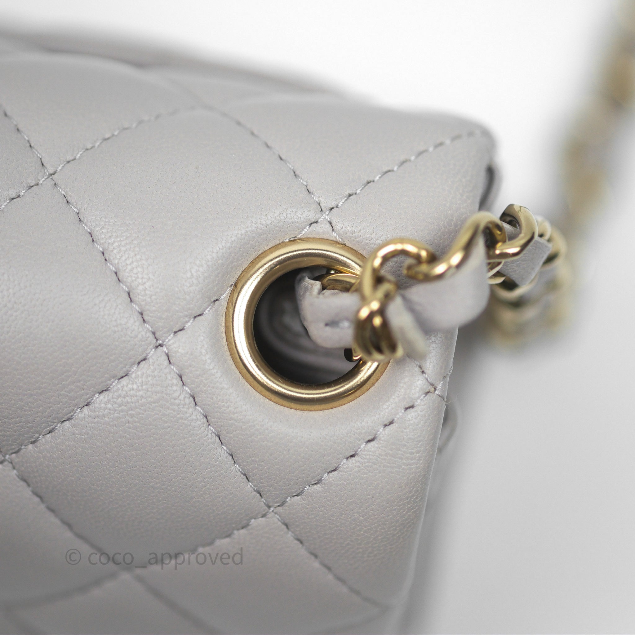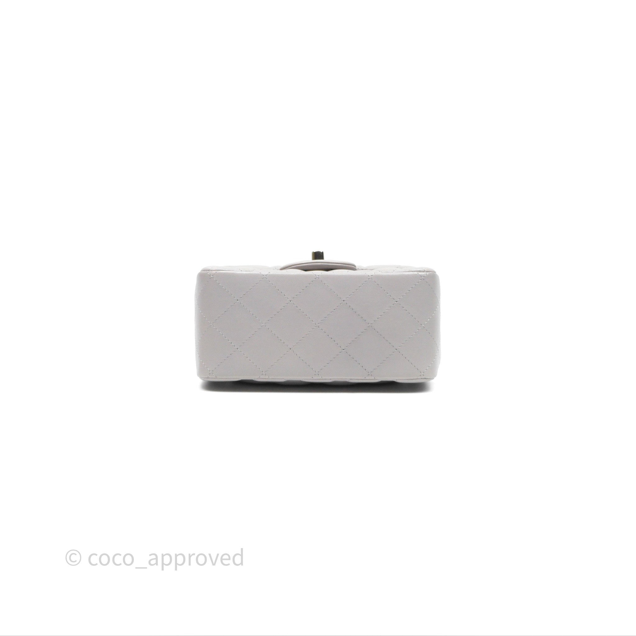 Chanel Mini Square Flap Quilted Light Grey Lambskin Gold Hardware