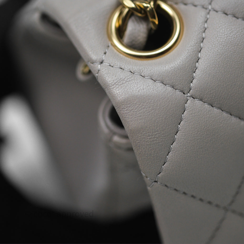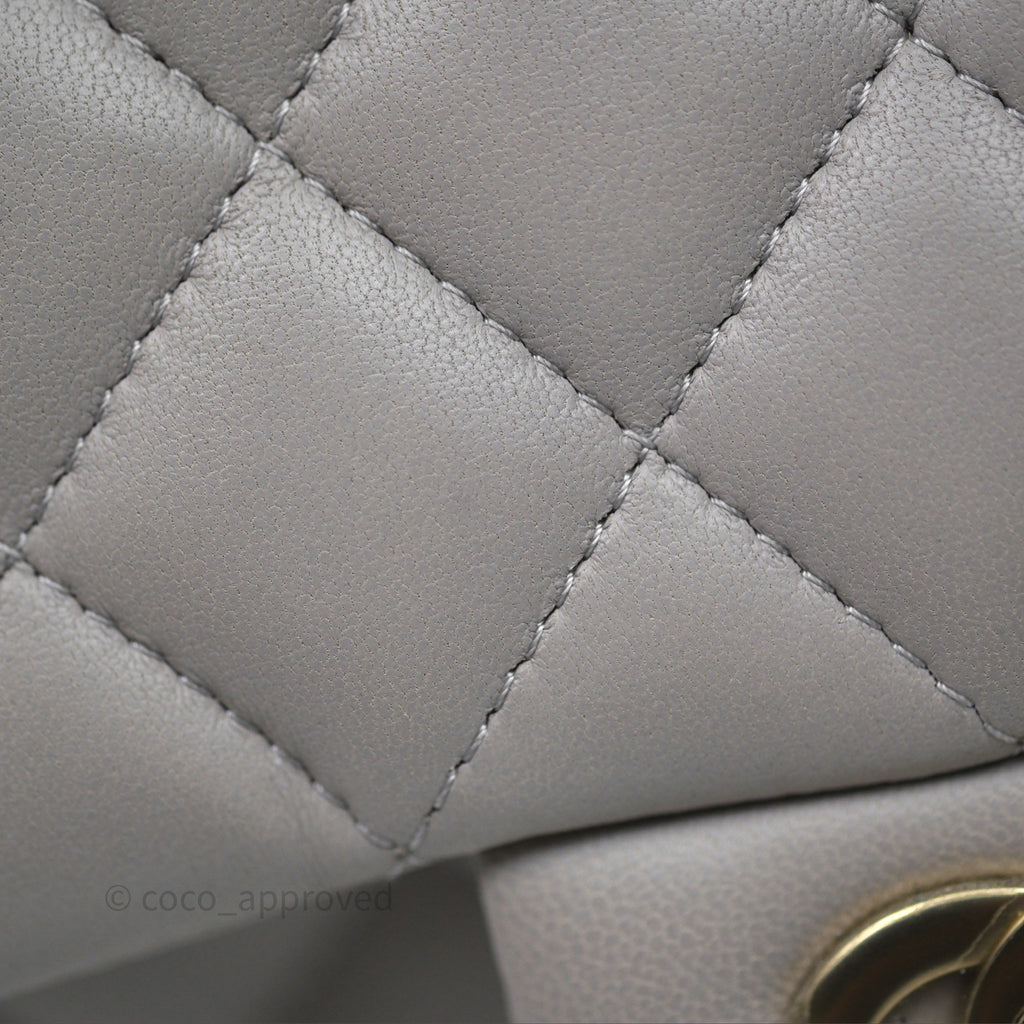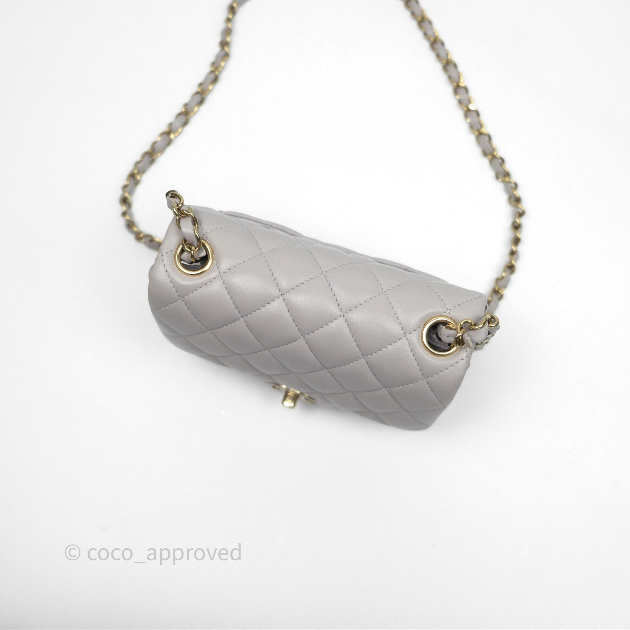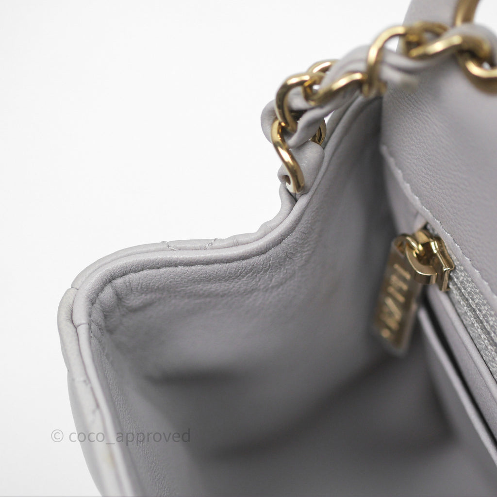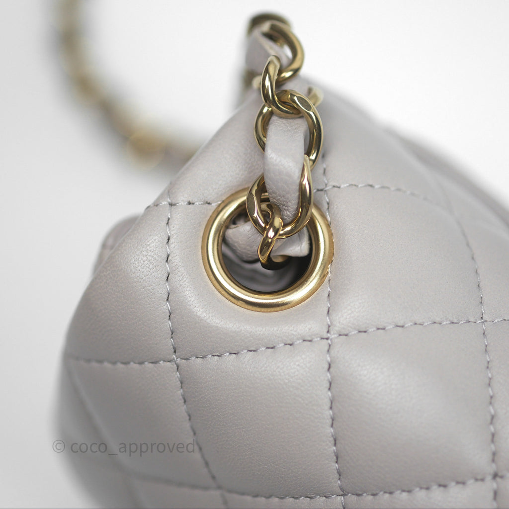 Chanel Mini Square Flap Quilted Light Grey Lambskin Gold Hardware