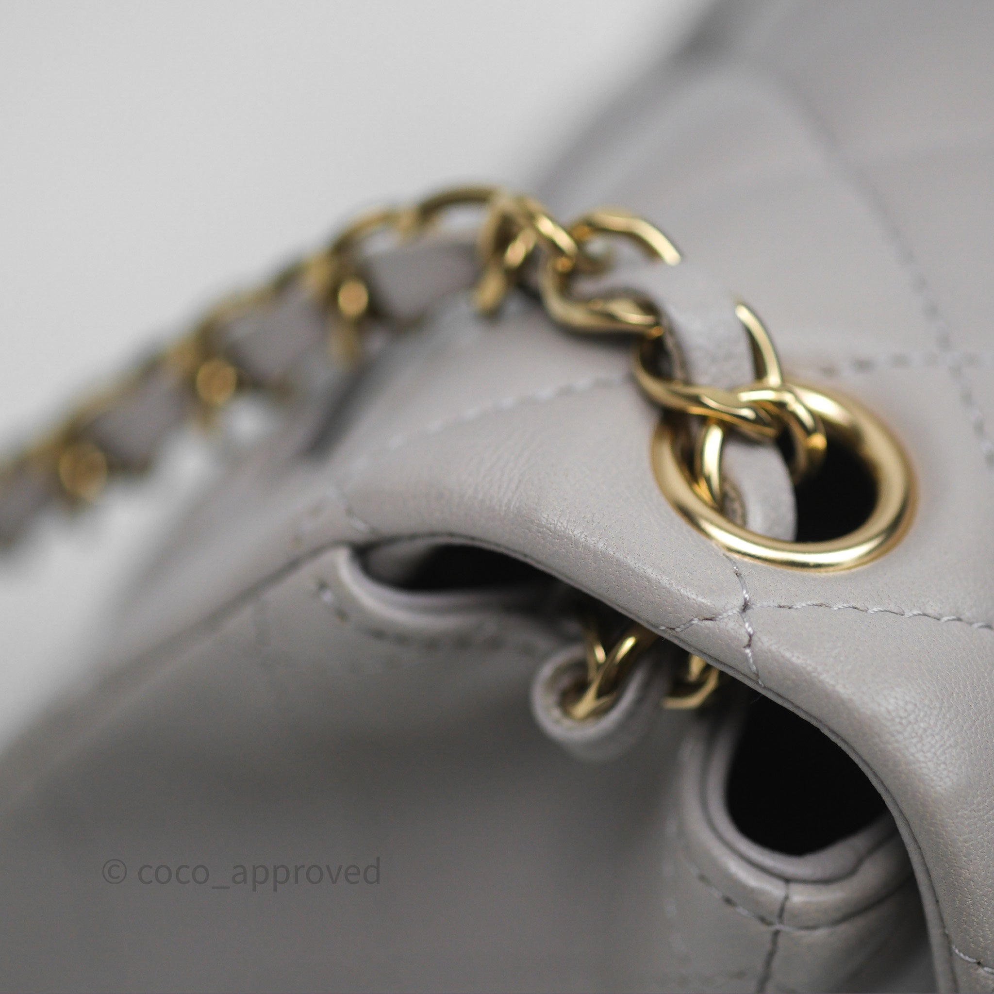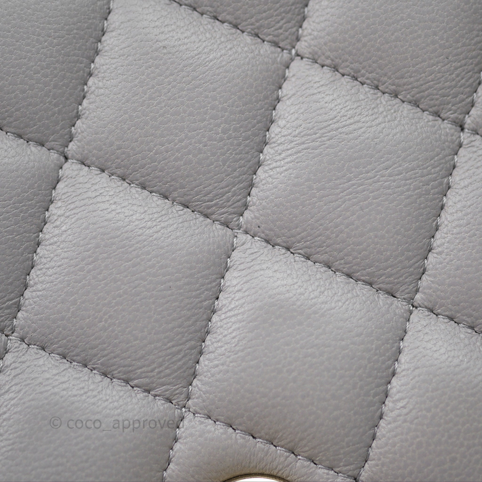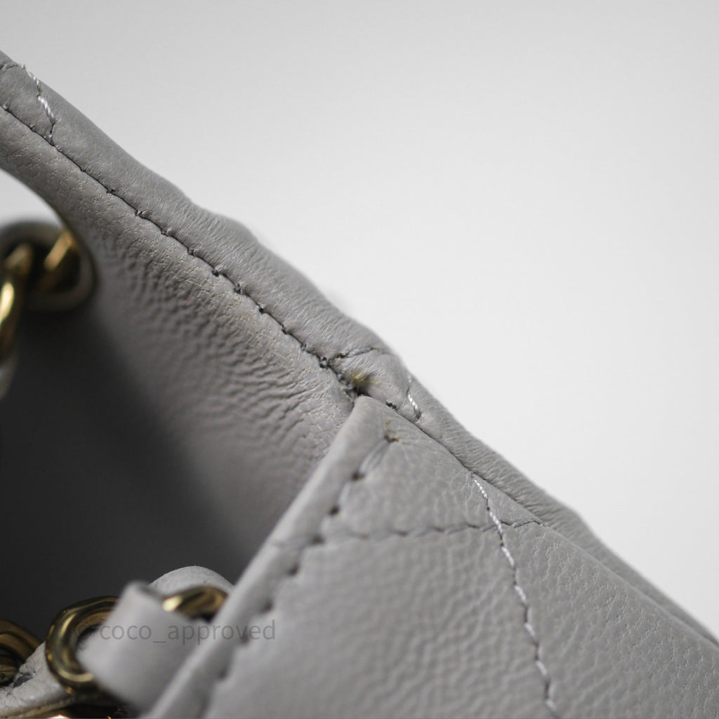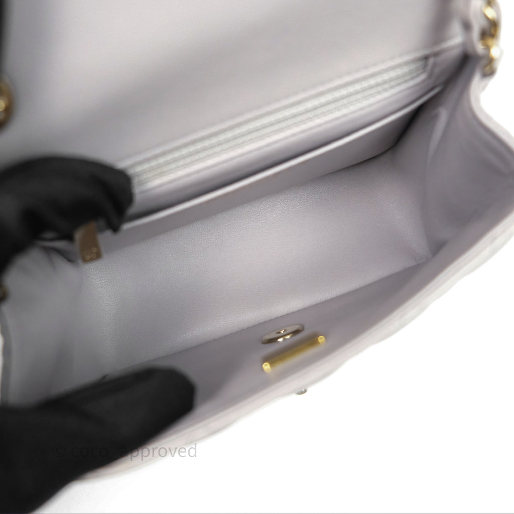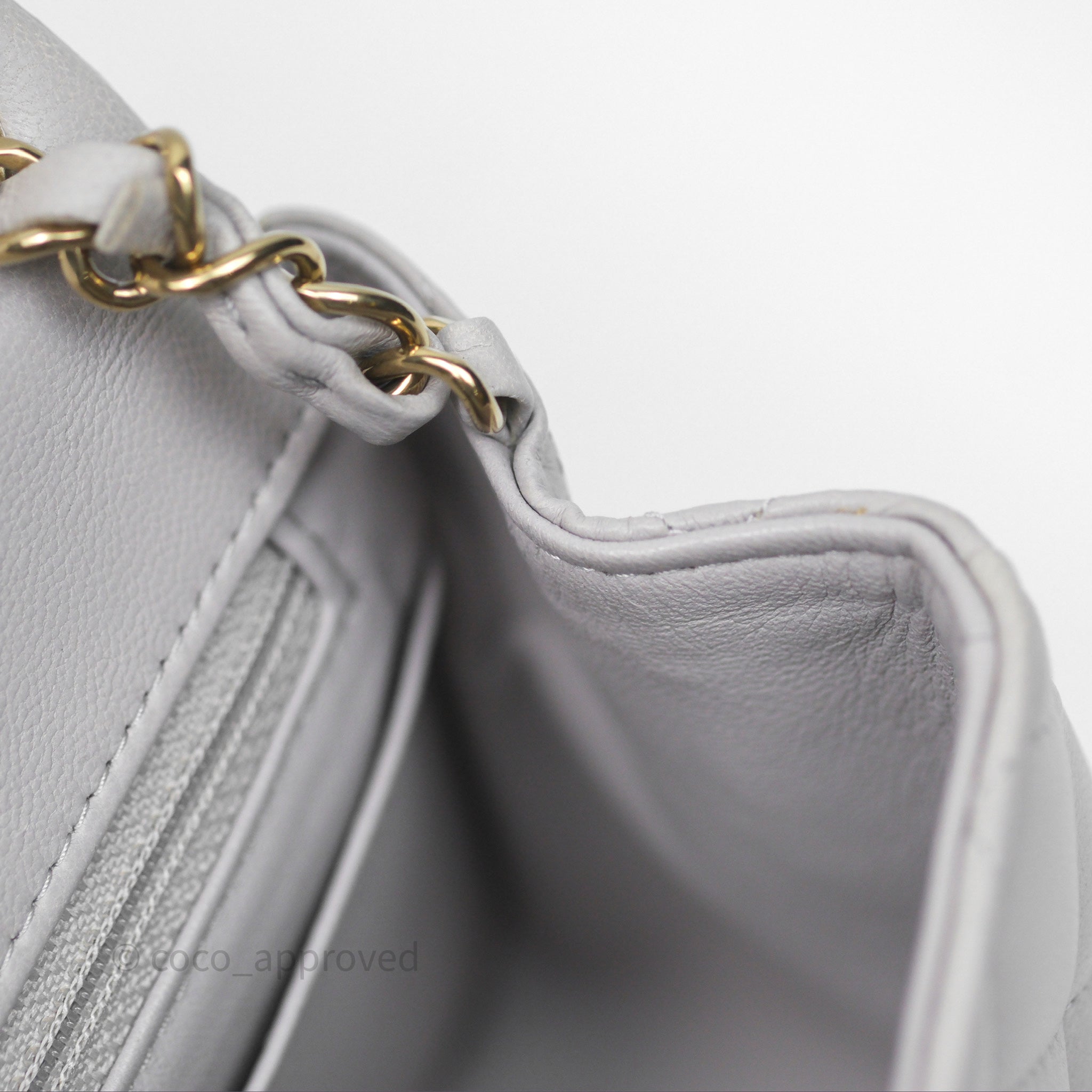 Chanel Mini Square Flap Quilted Light Grey Lambskin Gold Hardware