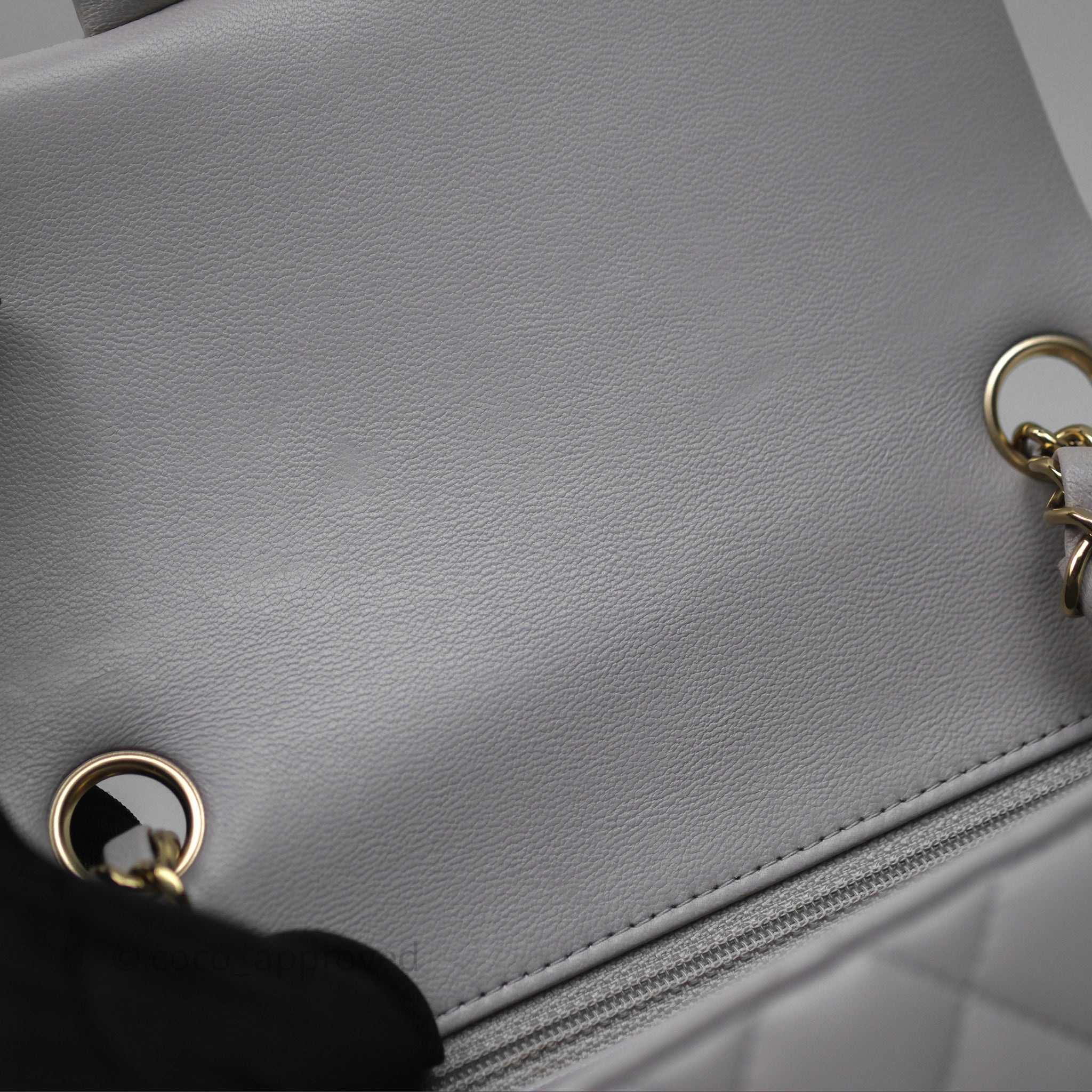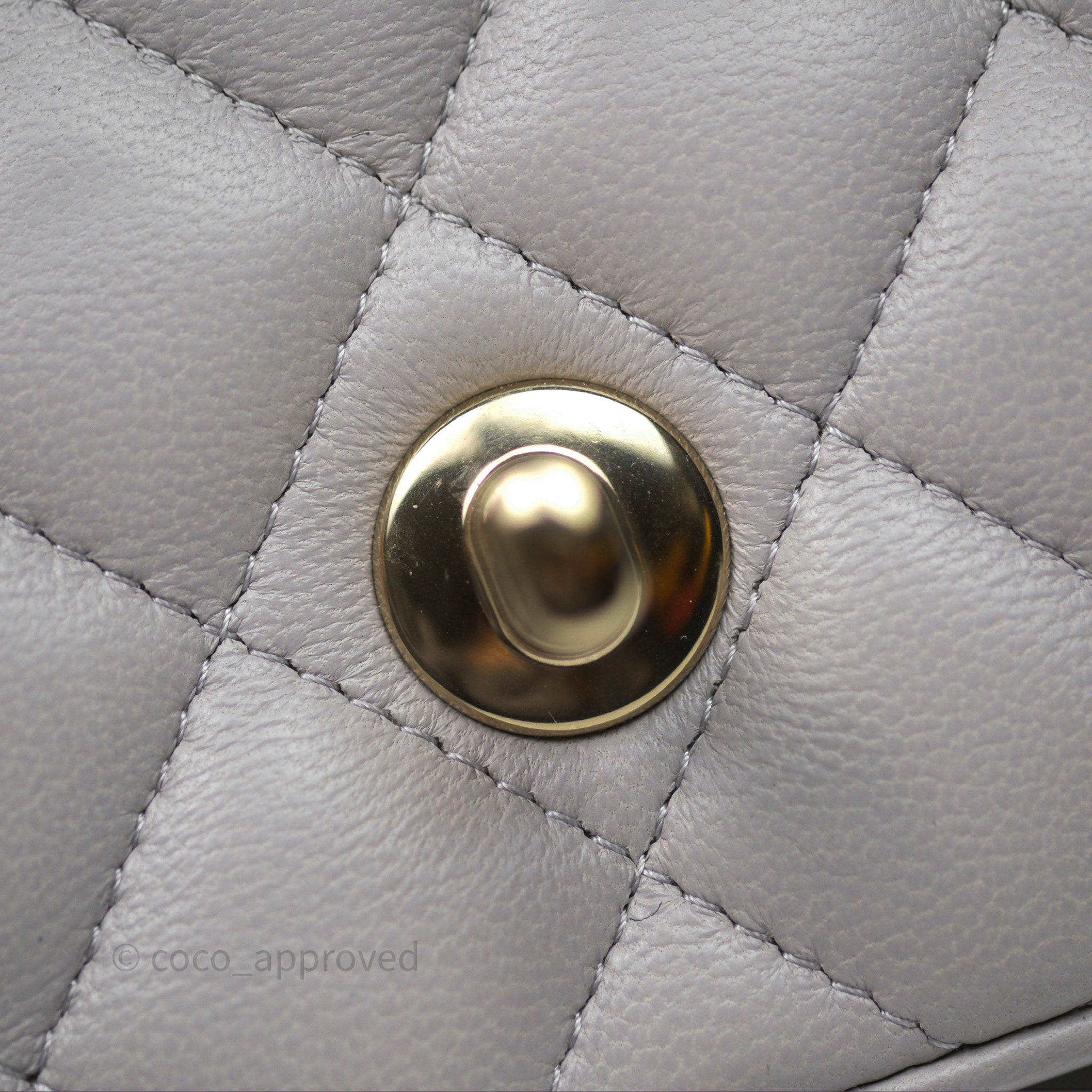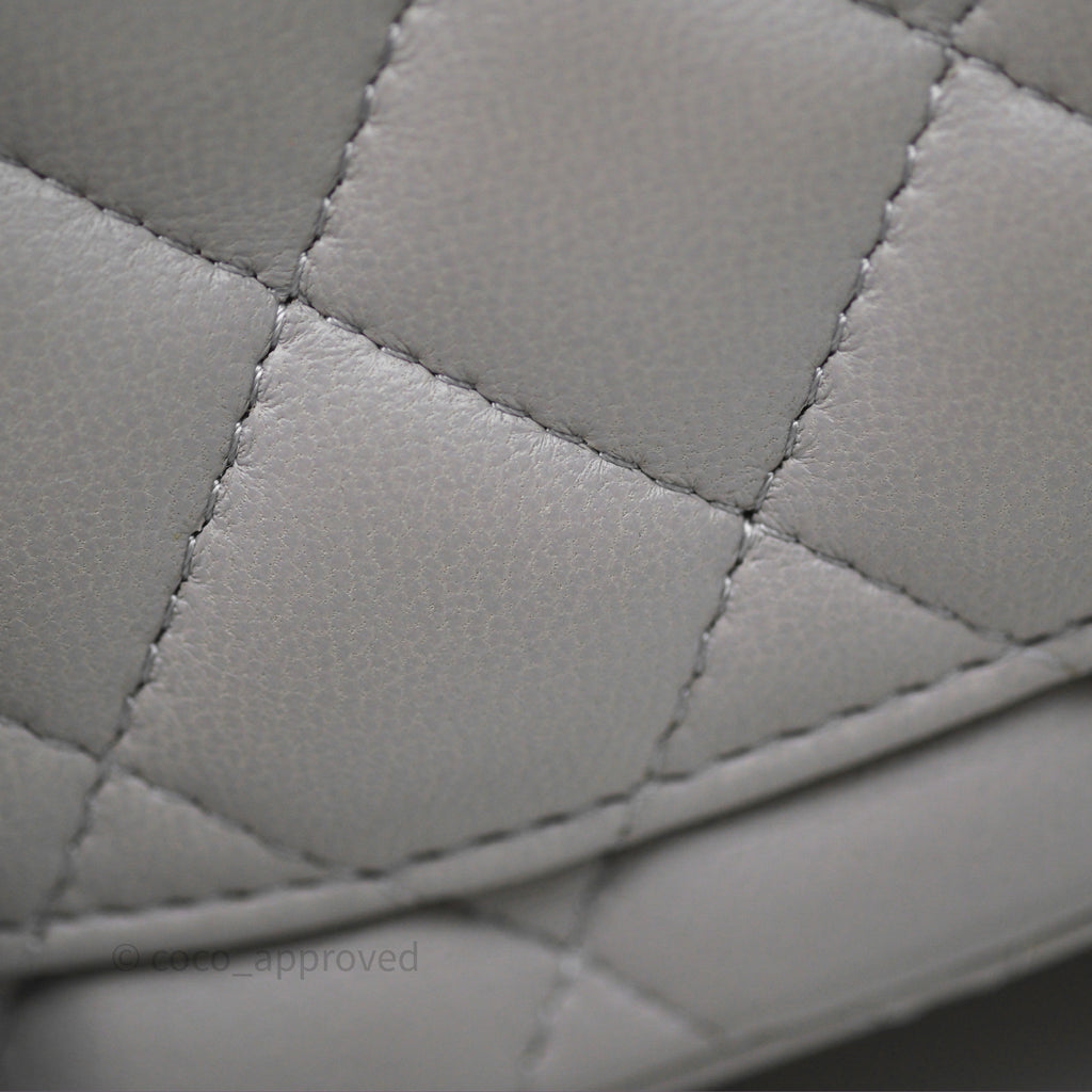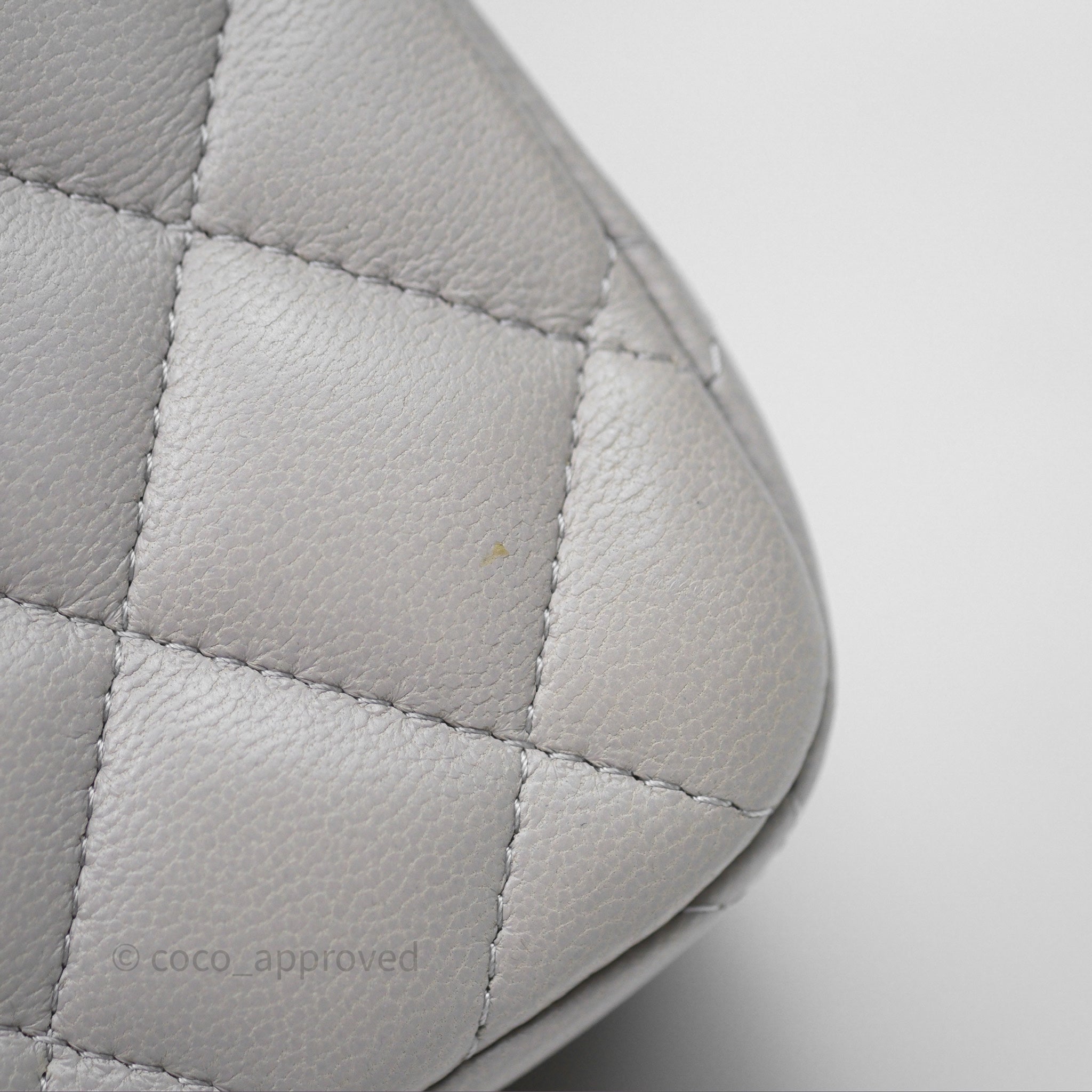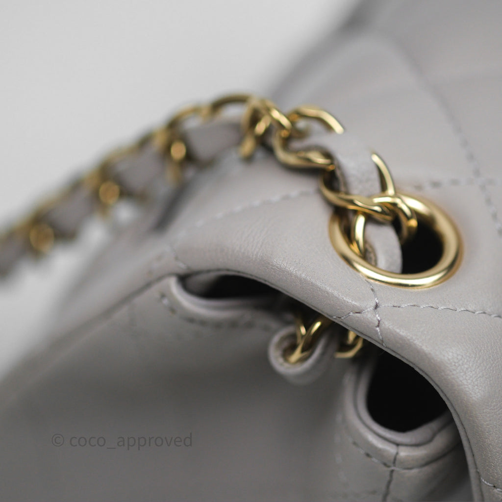 Chanel Mini Square Flap Quilted Light Grey Lambskin Gold Hardware