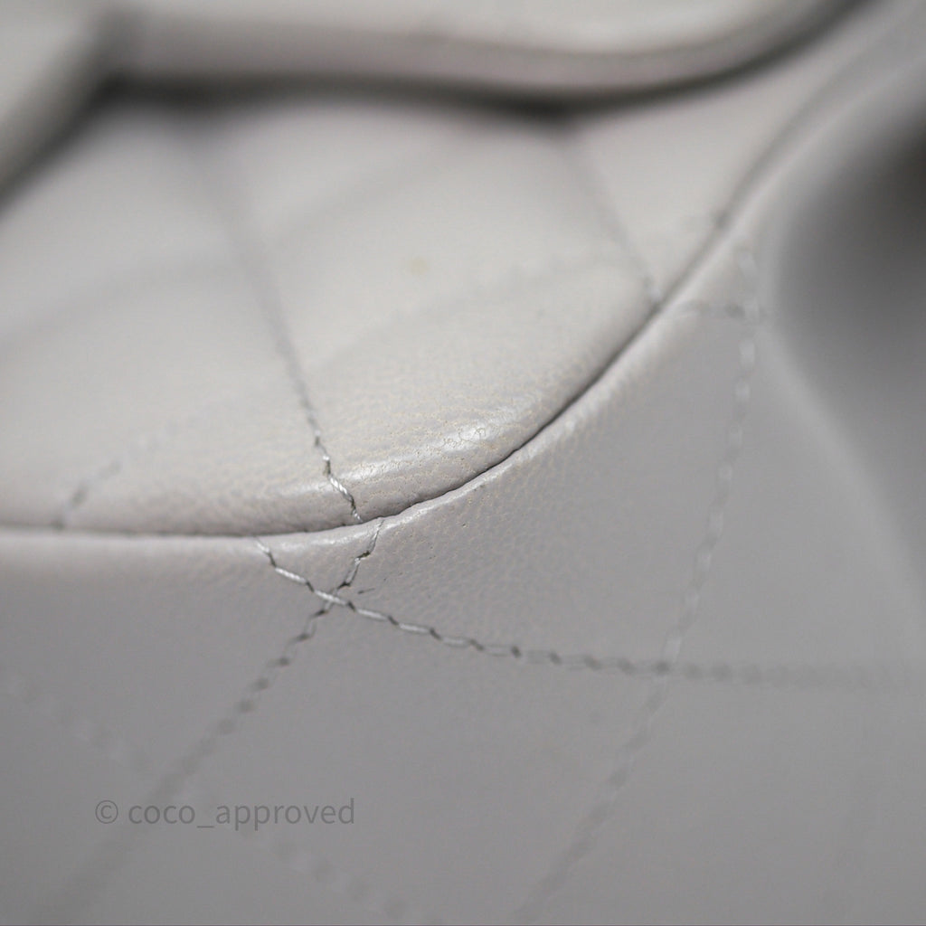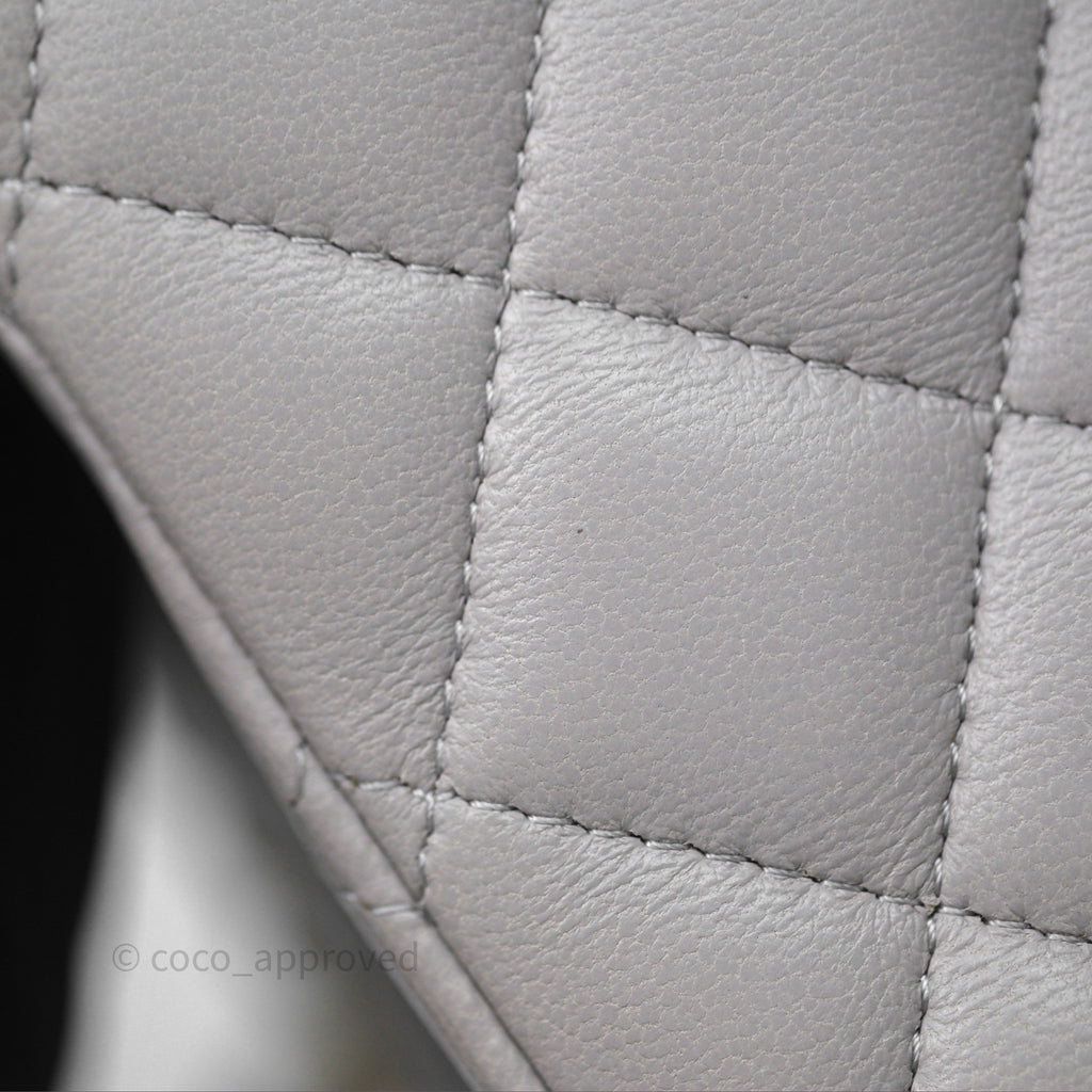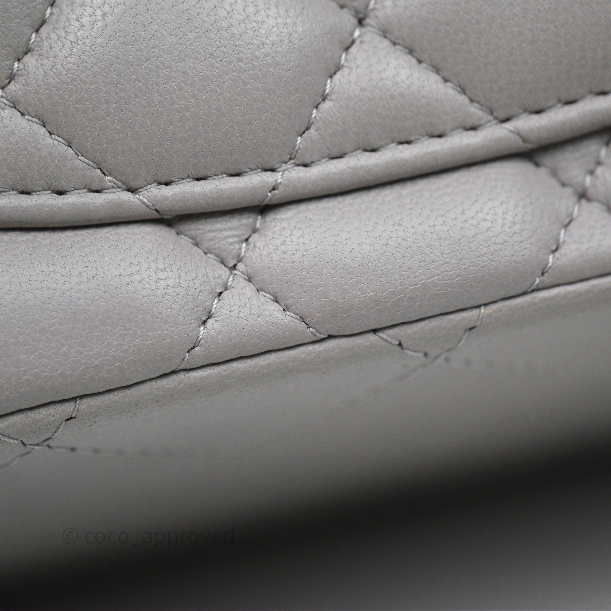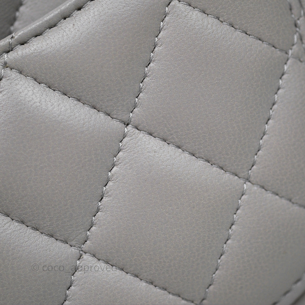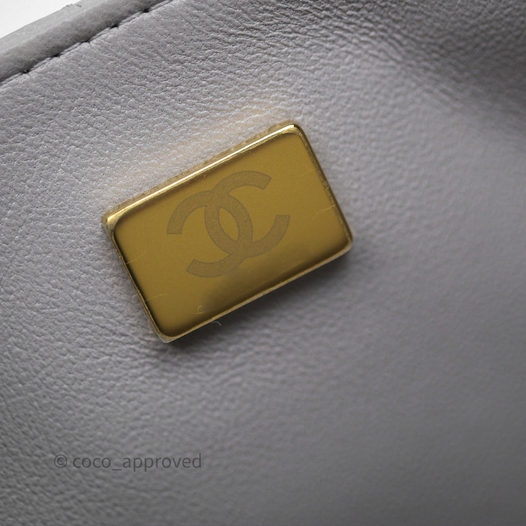 Chanel Mini Square Flap Quilted Light Grey Lambskin Gold Hardware