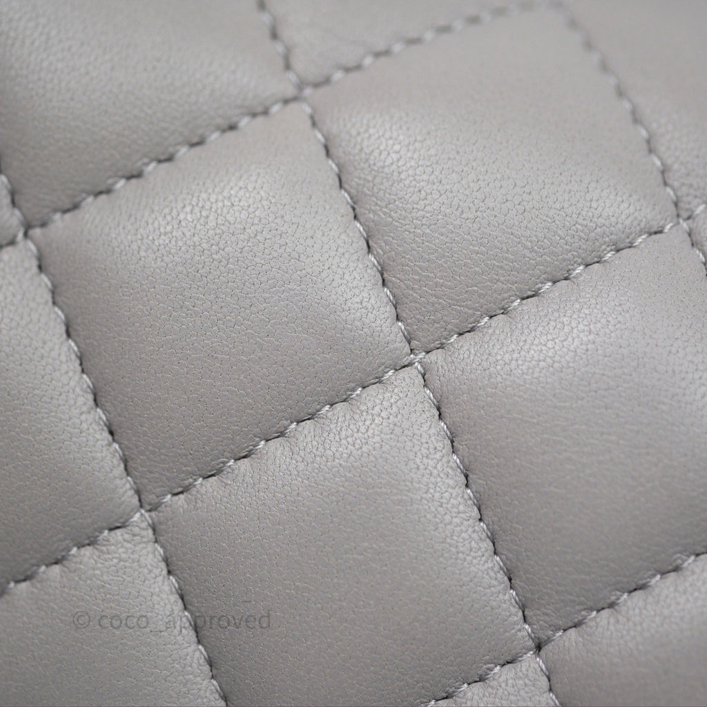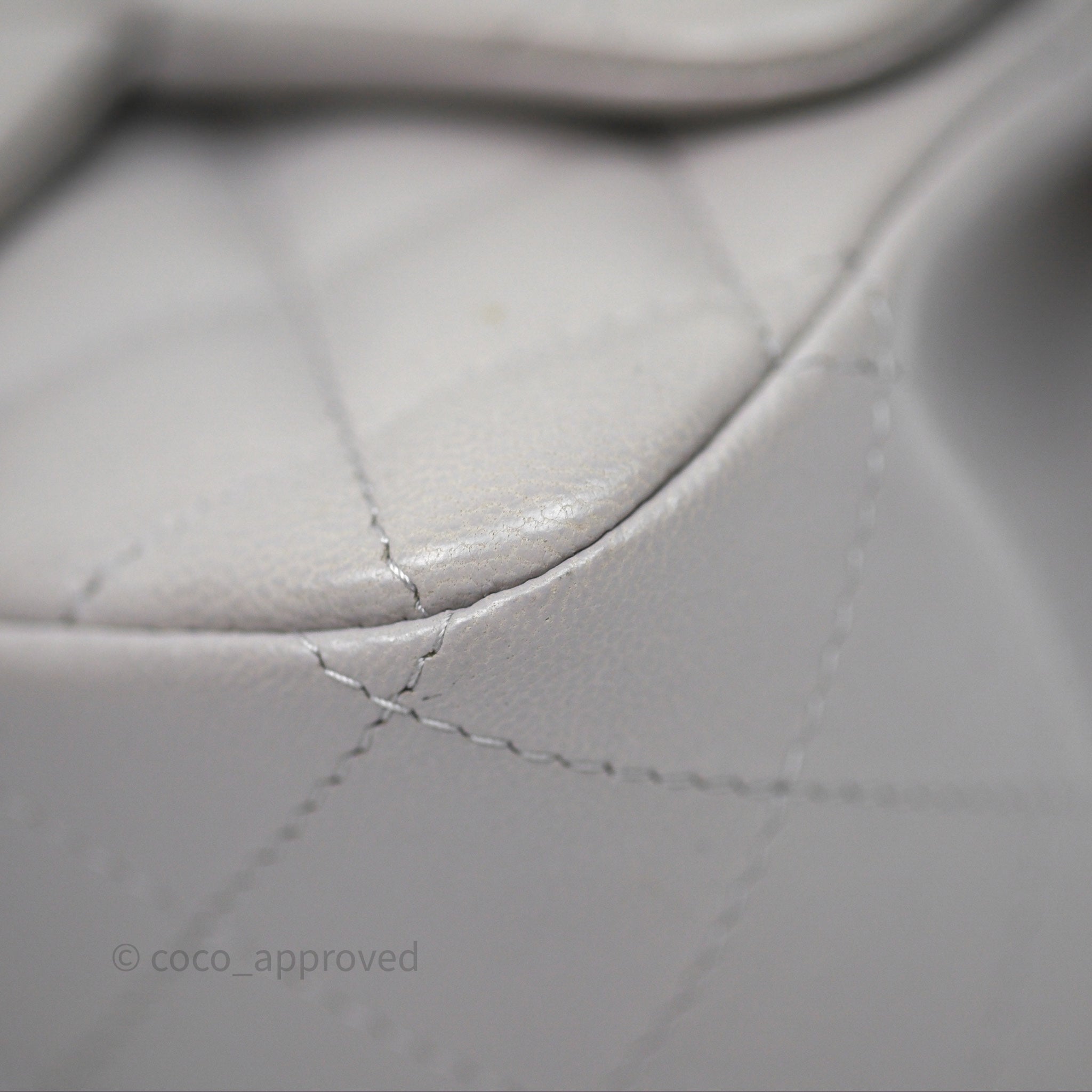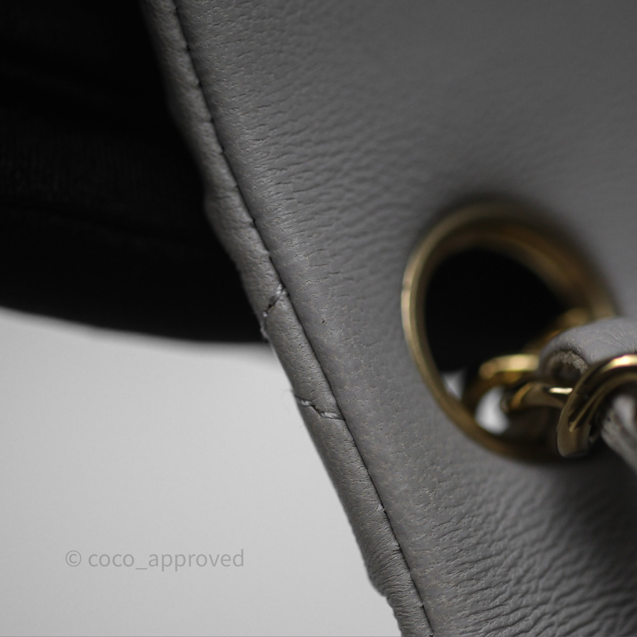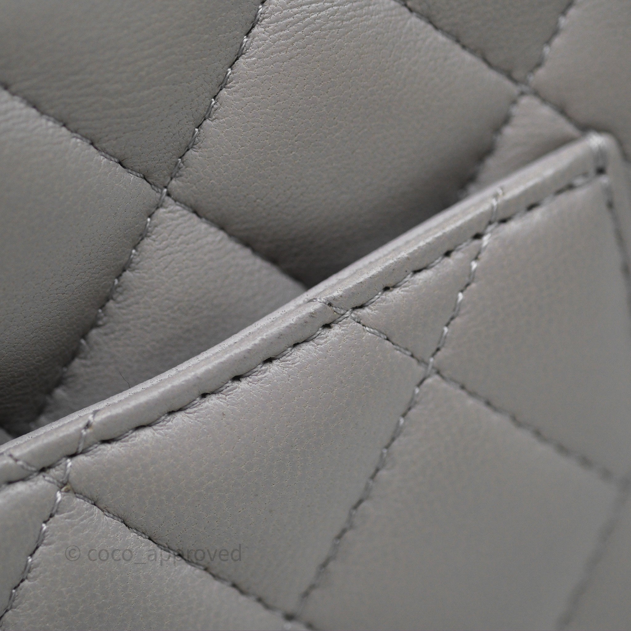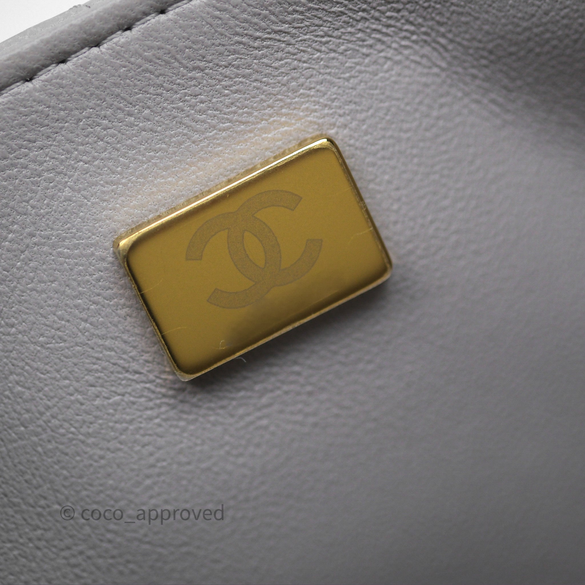 Chanel Mini Square Flap Quilted Light Grey Lambskin Gold Hardware