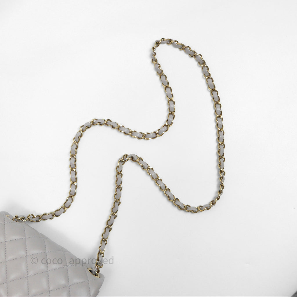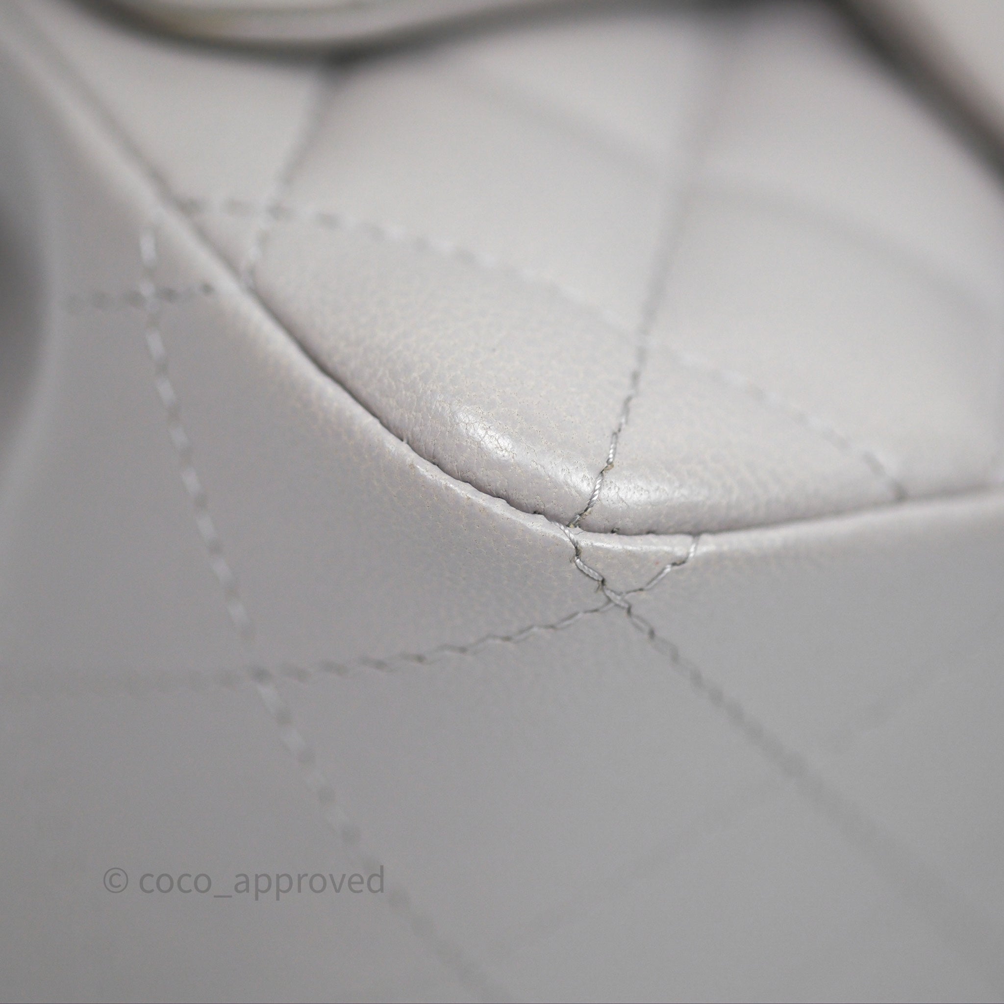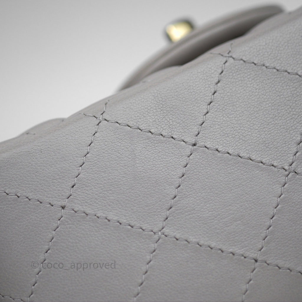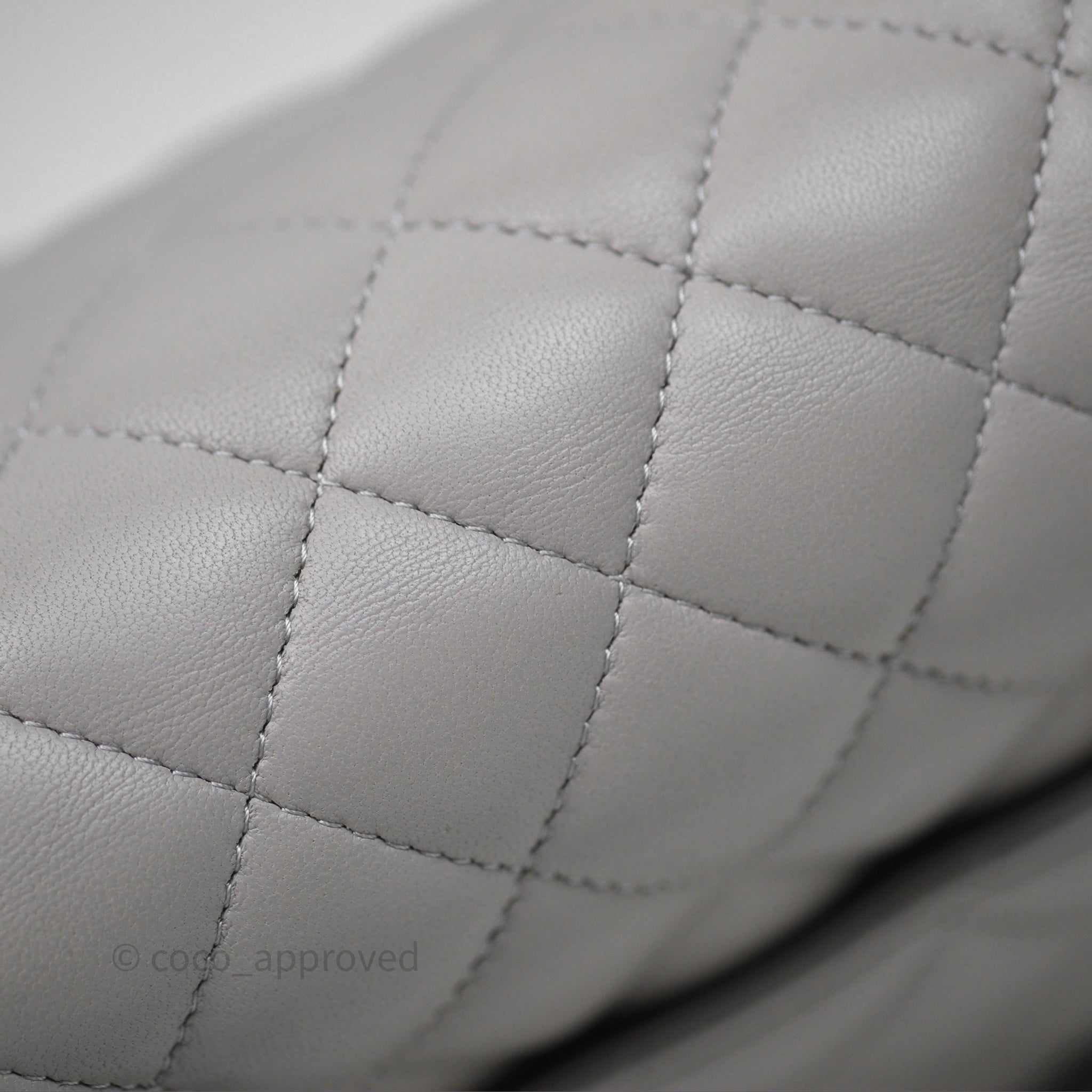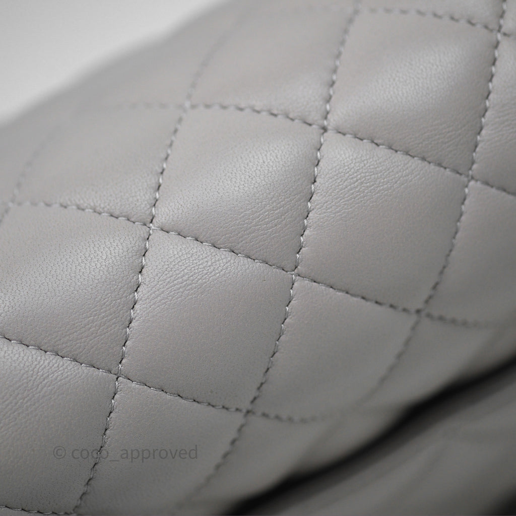 Chanel Mini Square Flap Quilted Light Grey Lambskin Gold Hardware