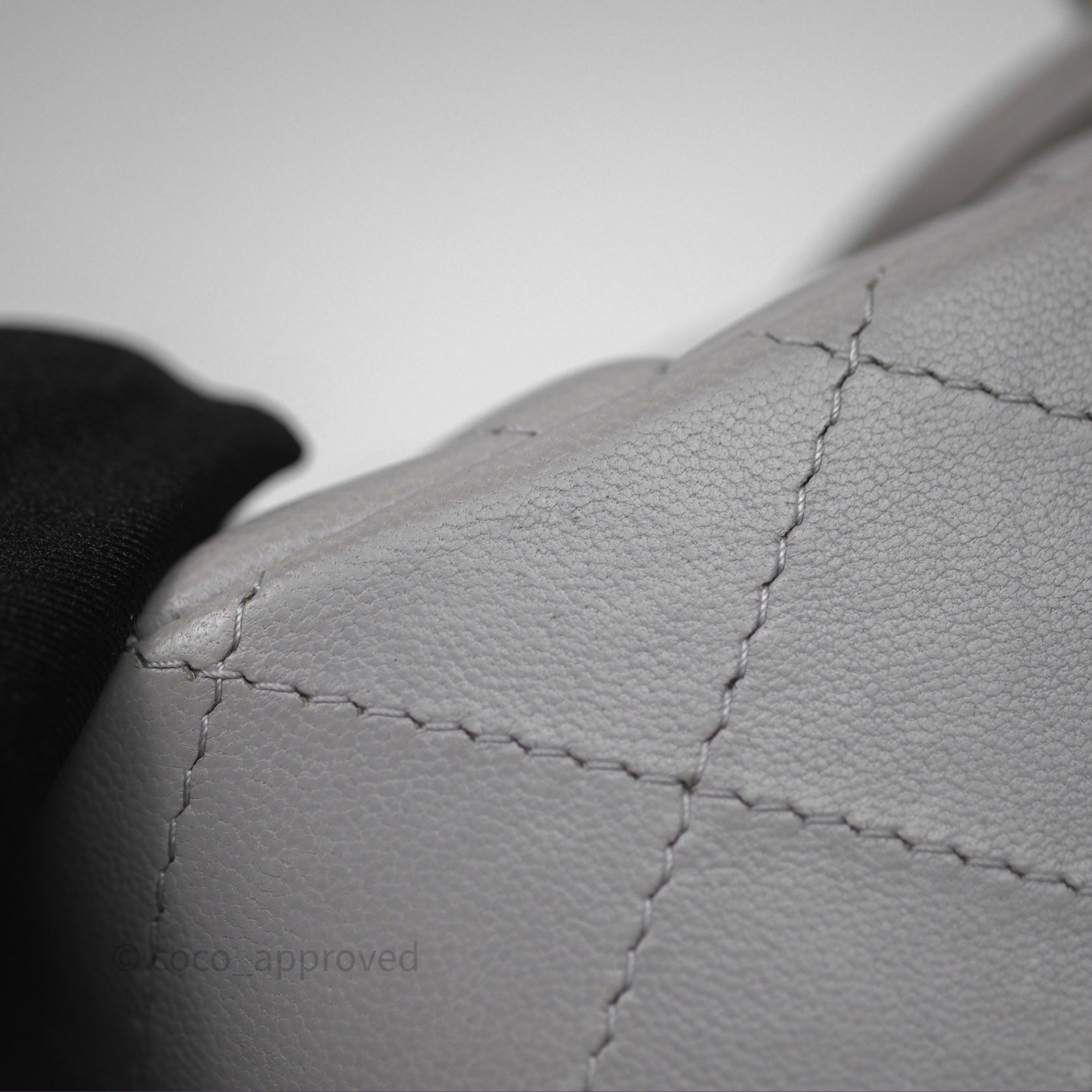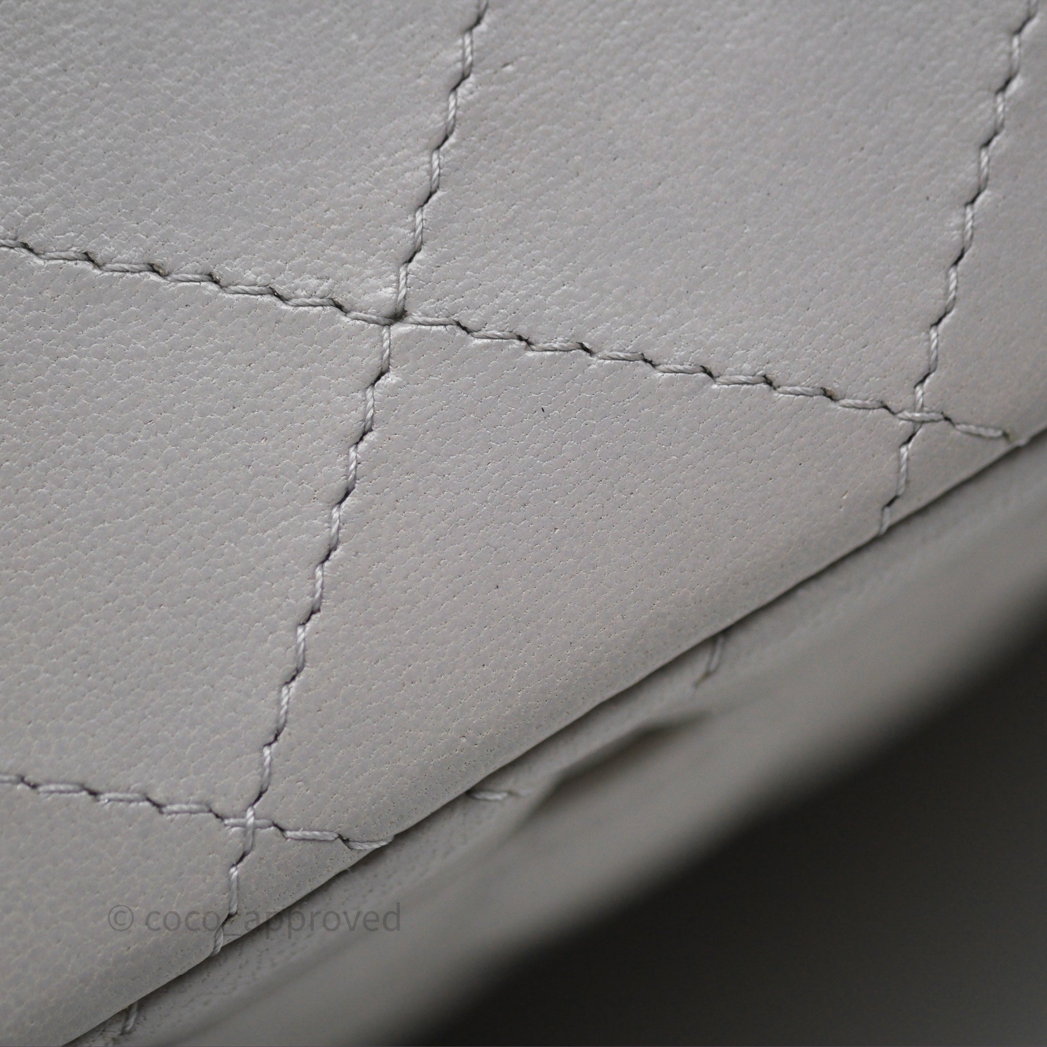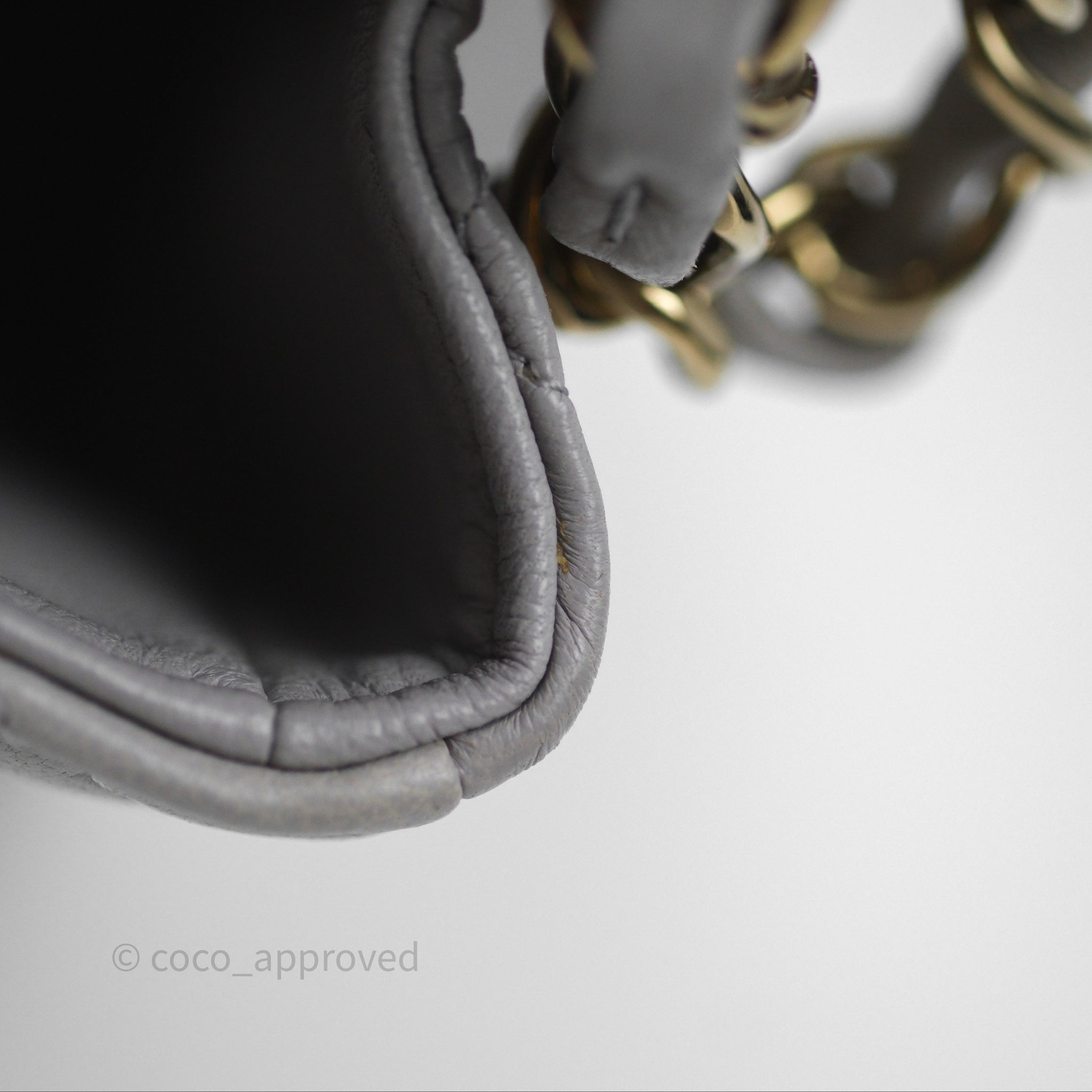 Chanel Mini Square Flap Quilted Light Grey Lambskin Gold Hardware is now sold. Please subscribe for any updates if similar item becomes available.