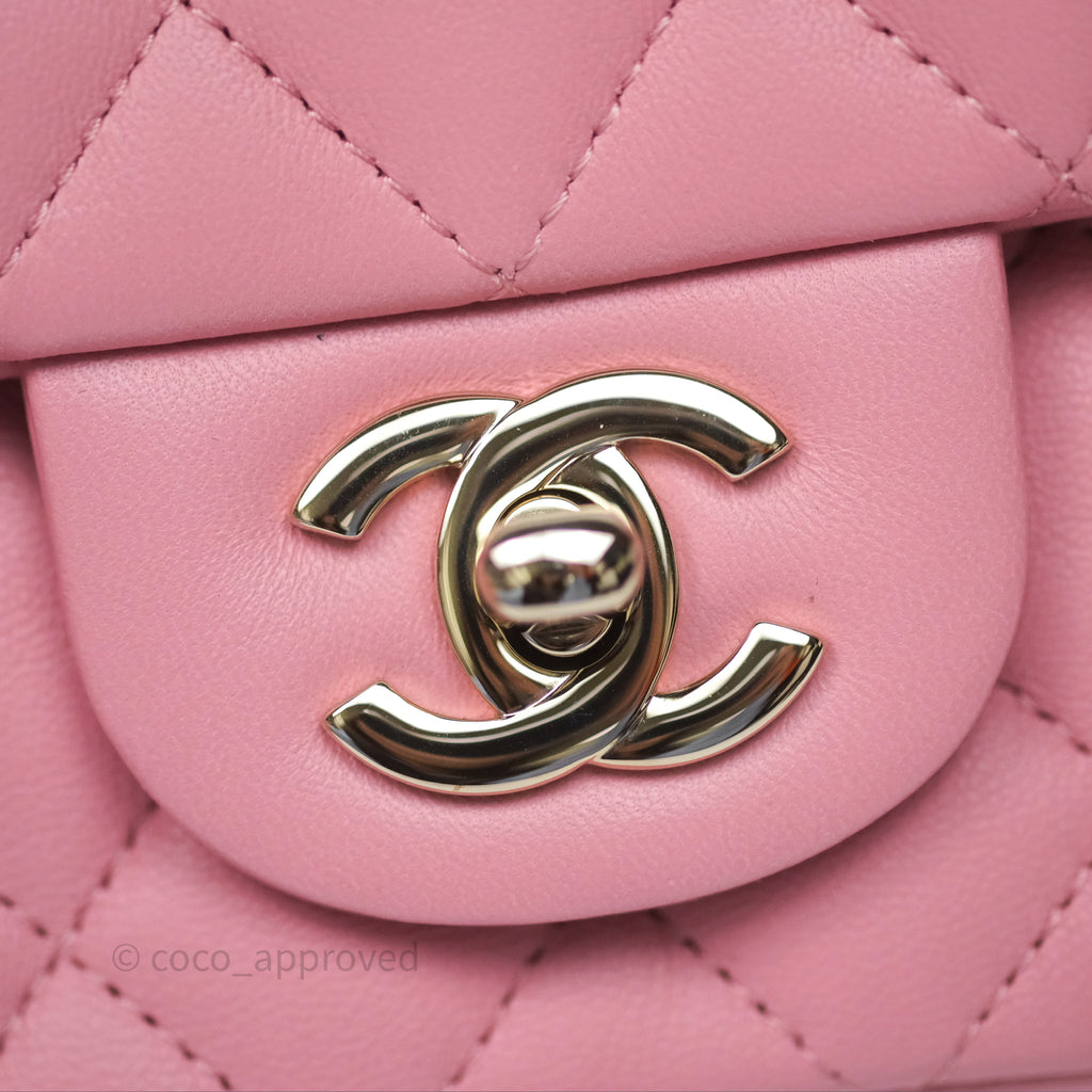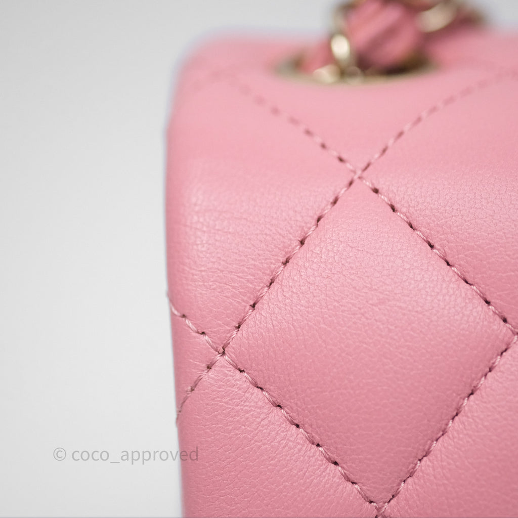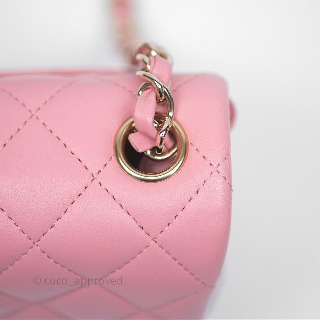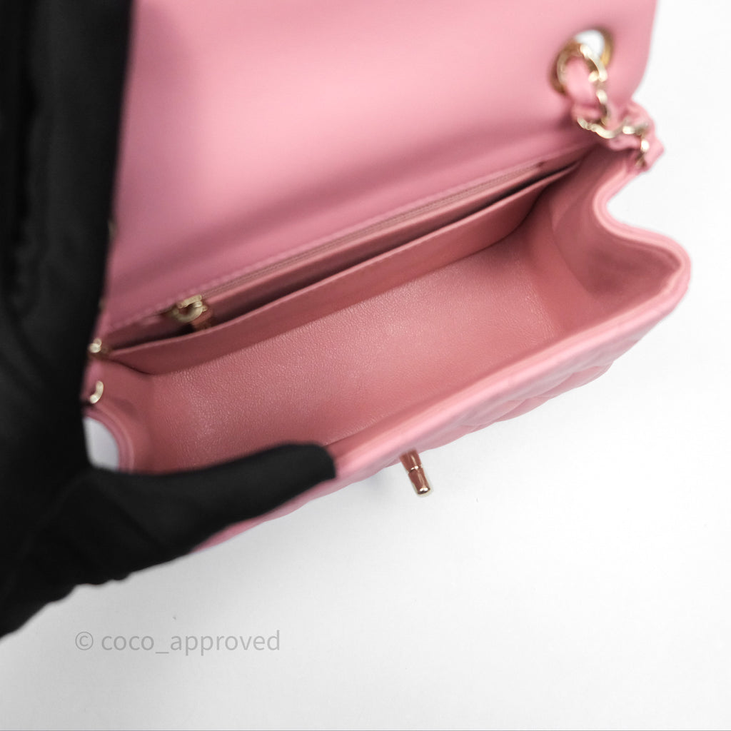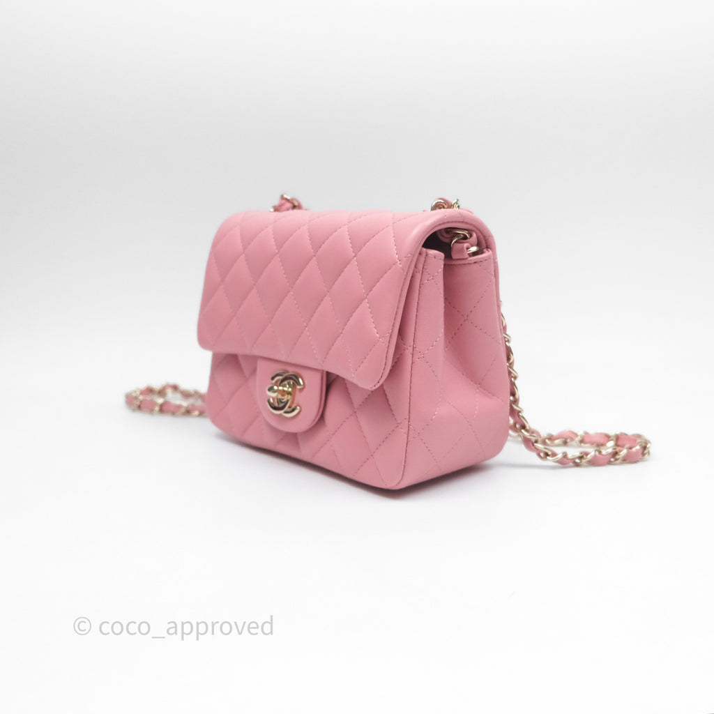 Chanel Mini Square Flap Quilted Pink Lambskin Gold Hardware