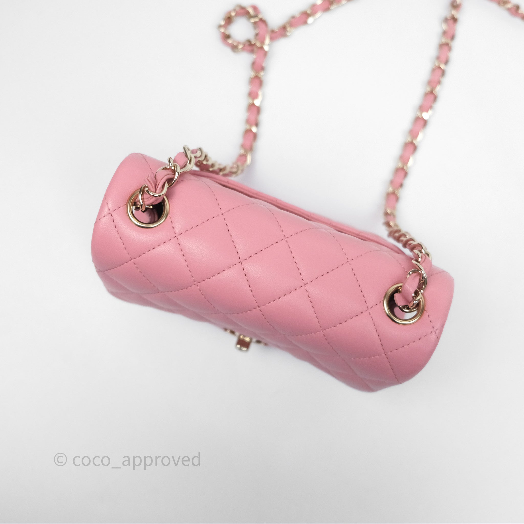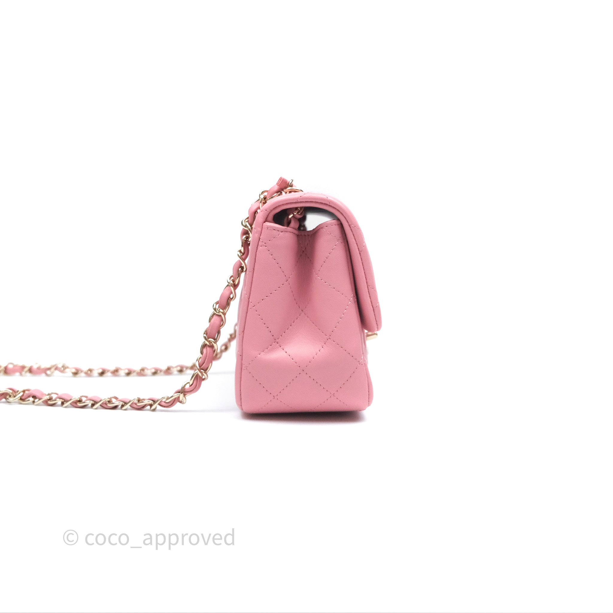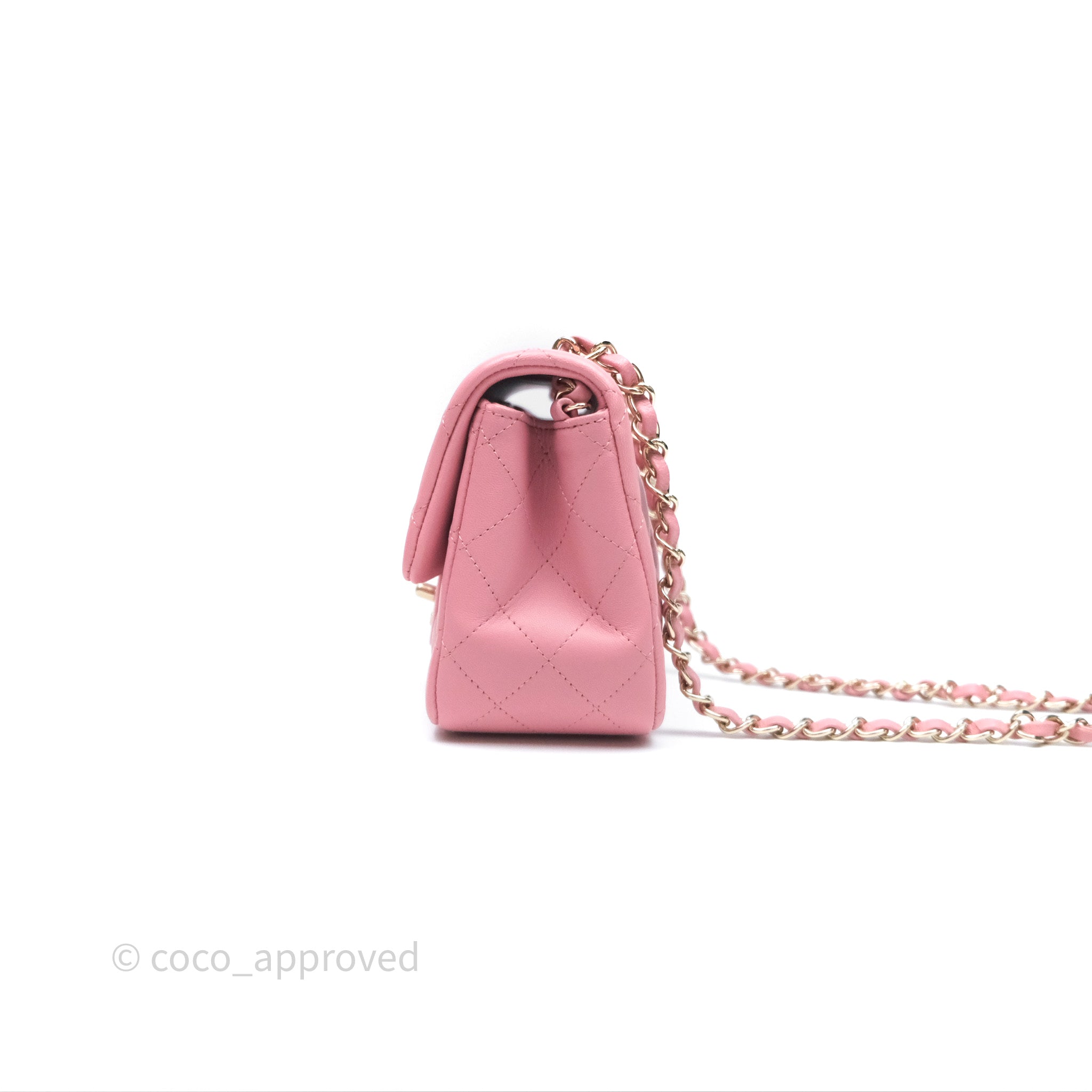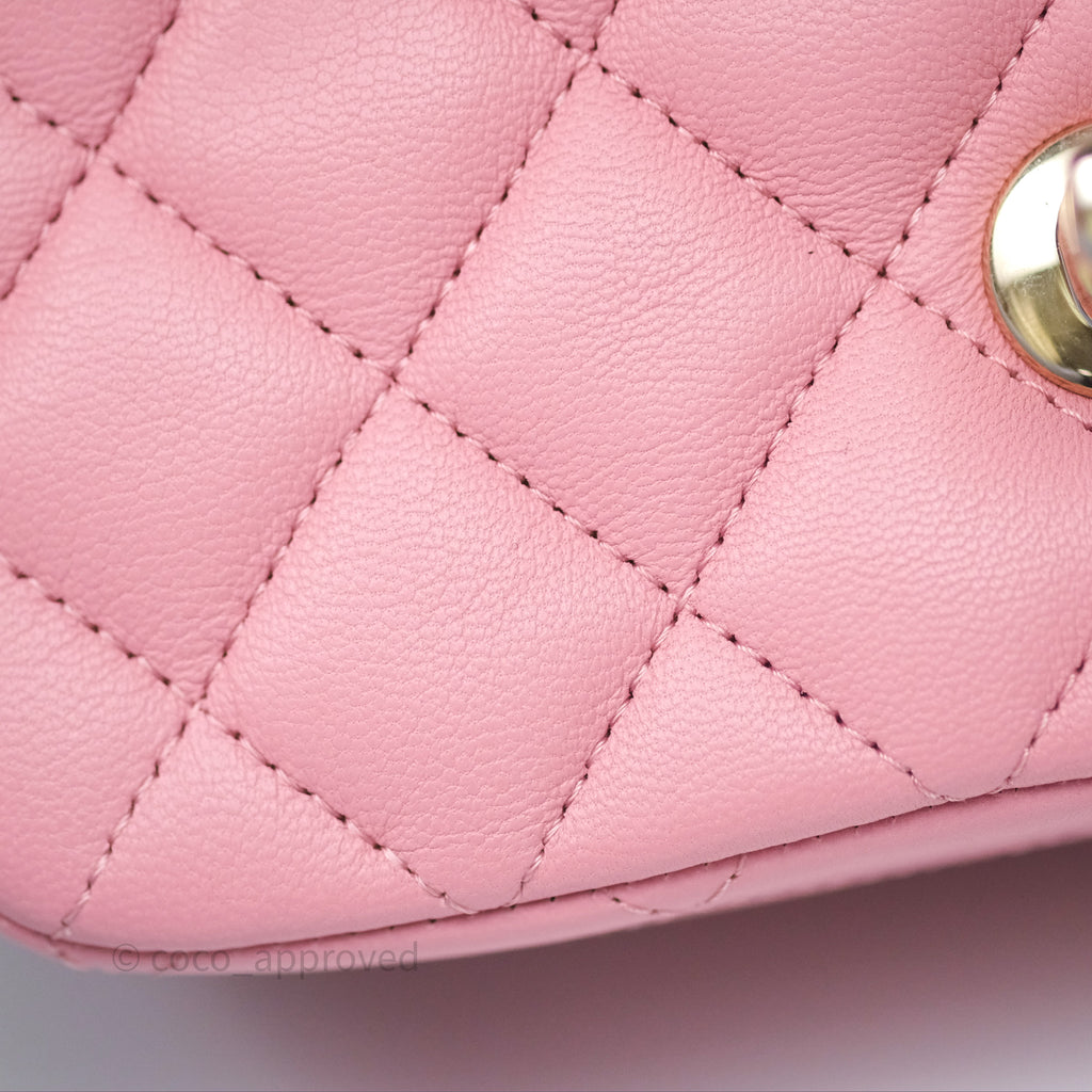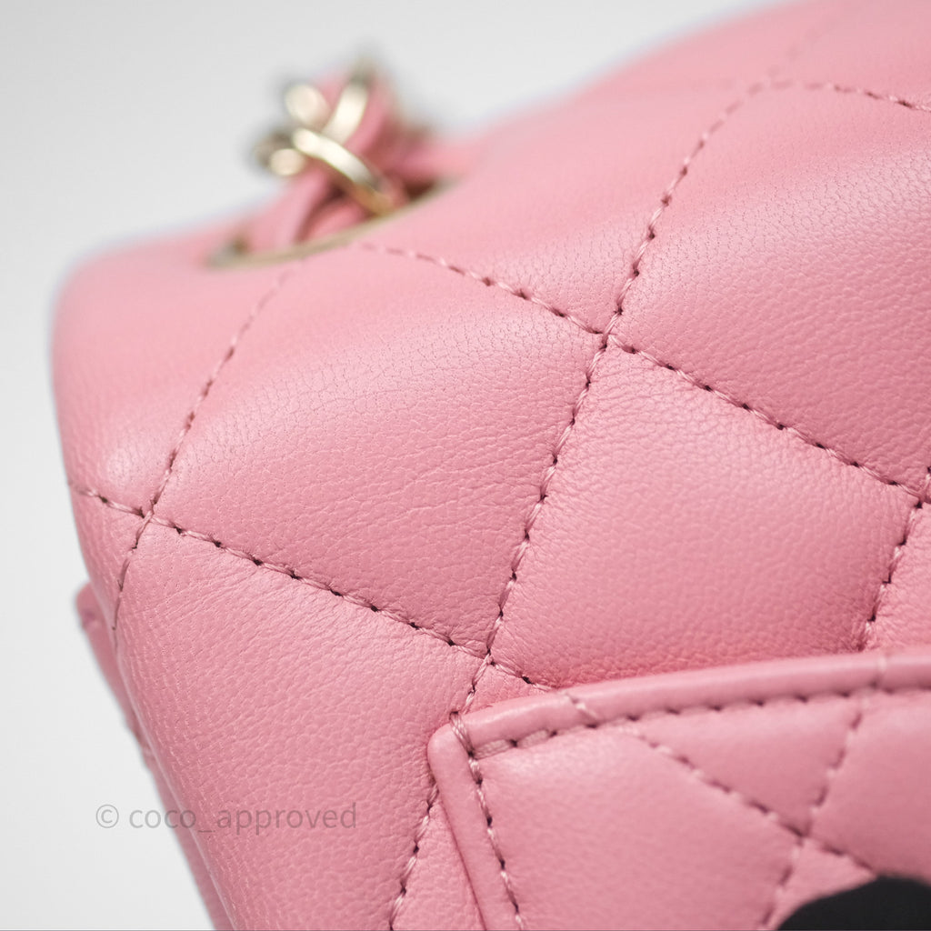 Chanel Mini Square Flap Quilted Pink Lambskin Gold Hardware