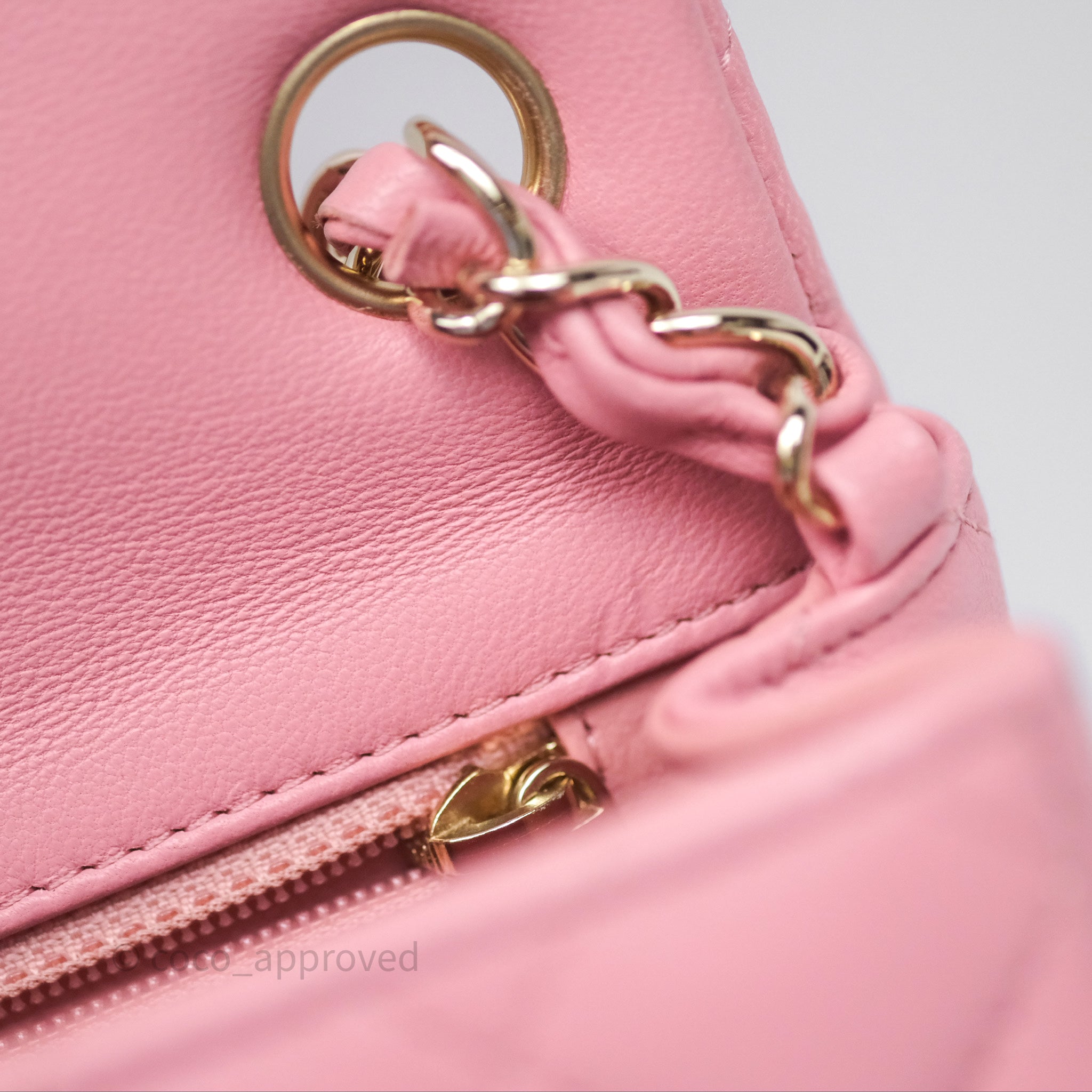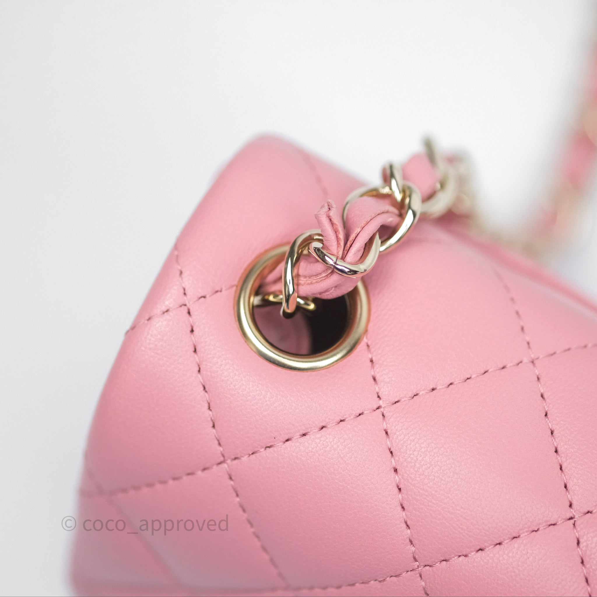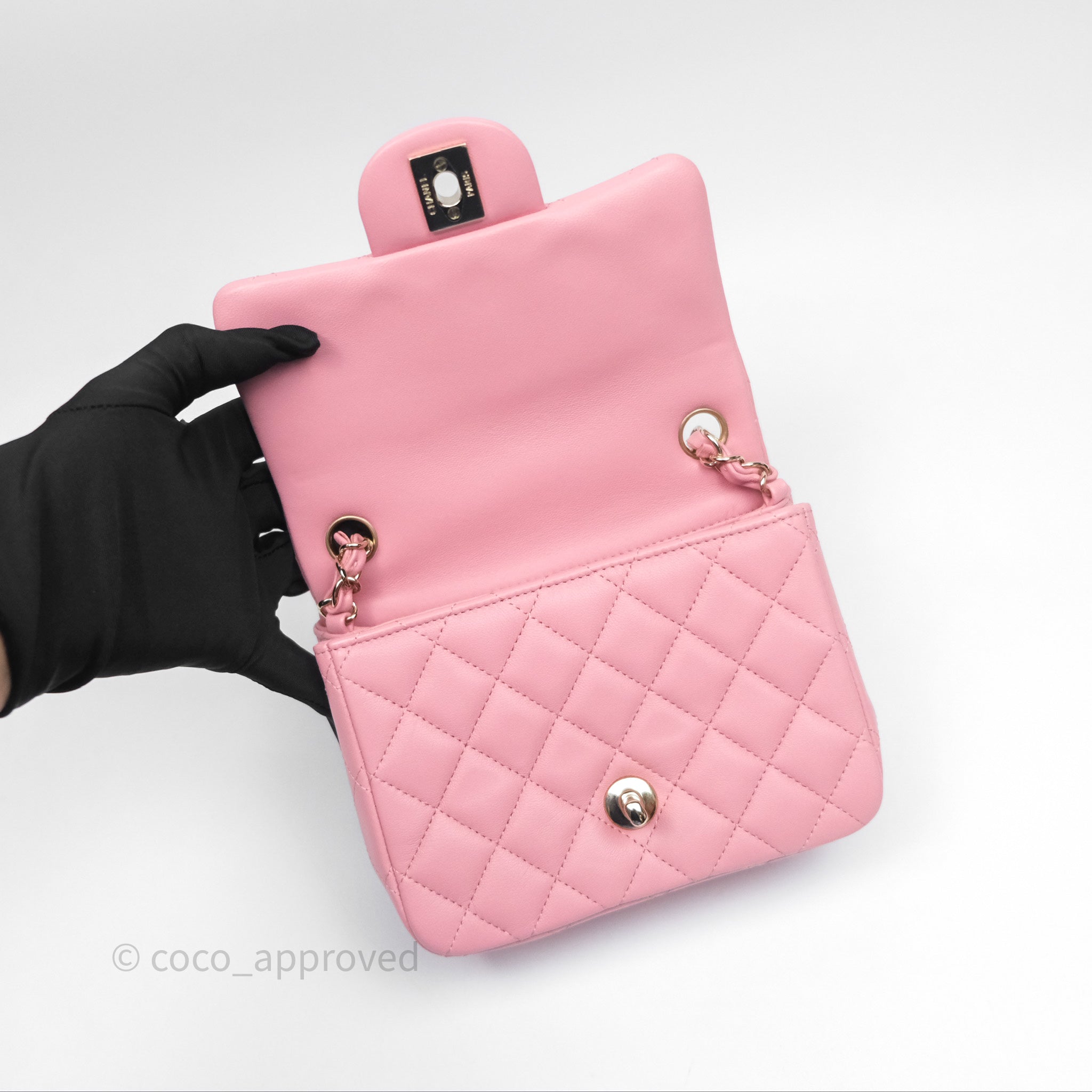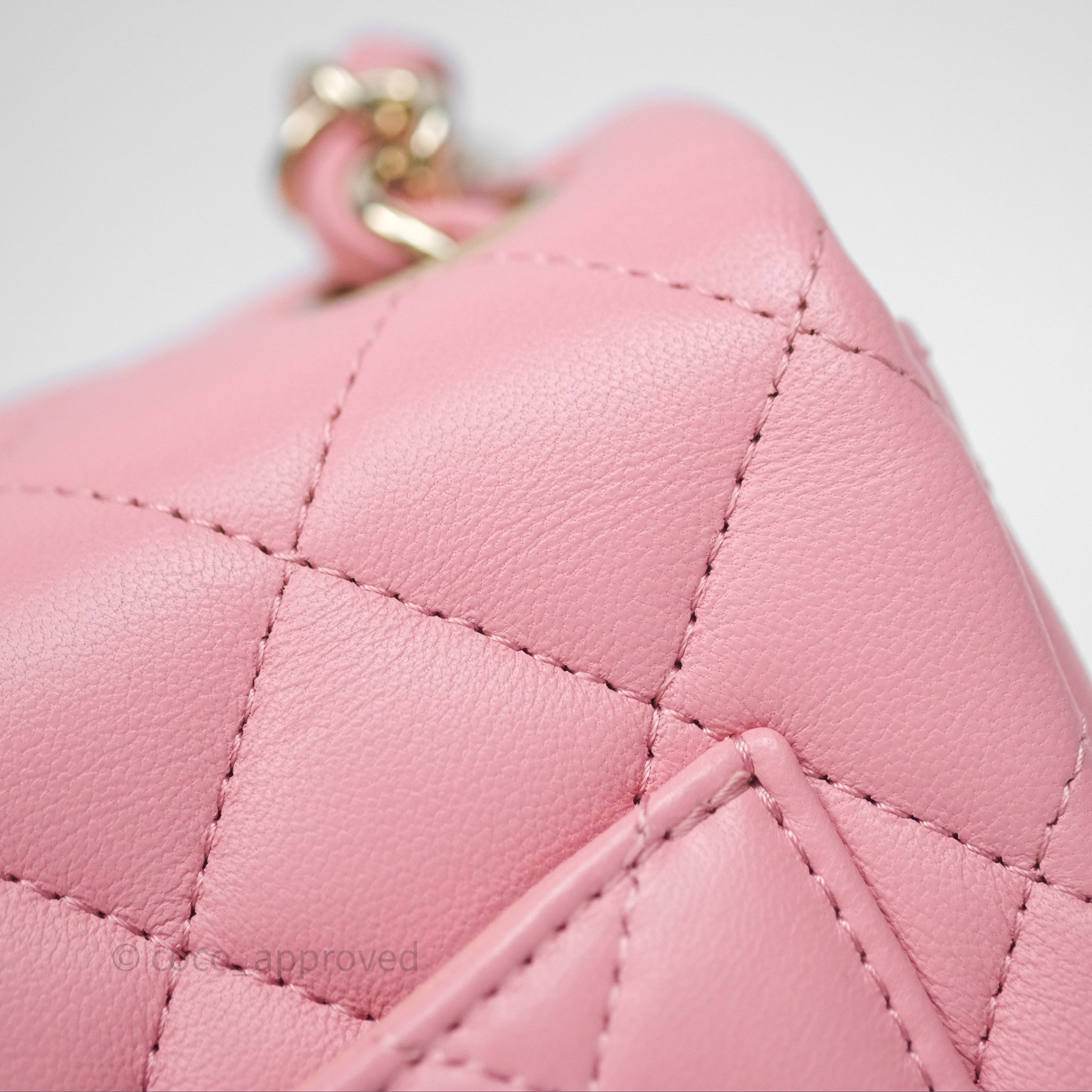 Chanel Mini Square Flap Quilted Pink Lambskin Gold Hardware