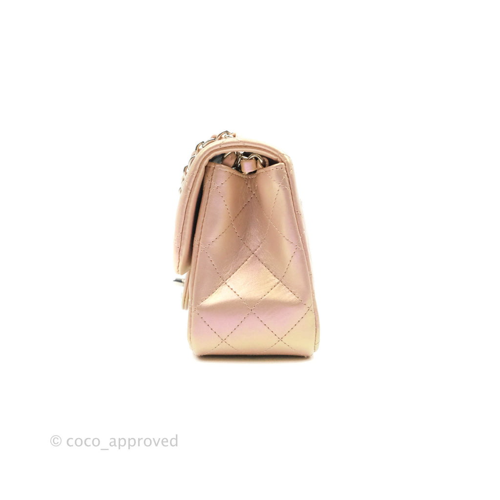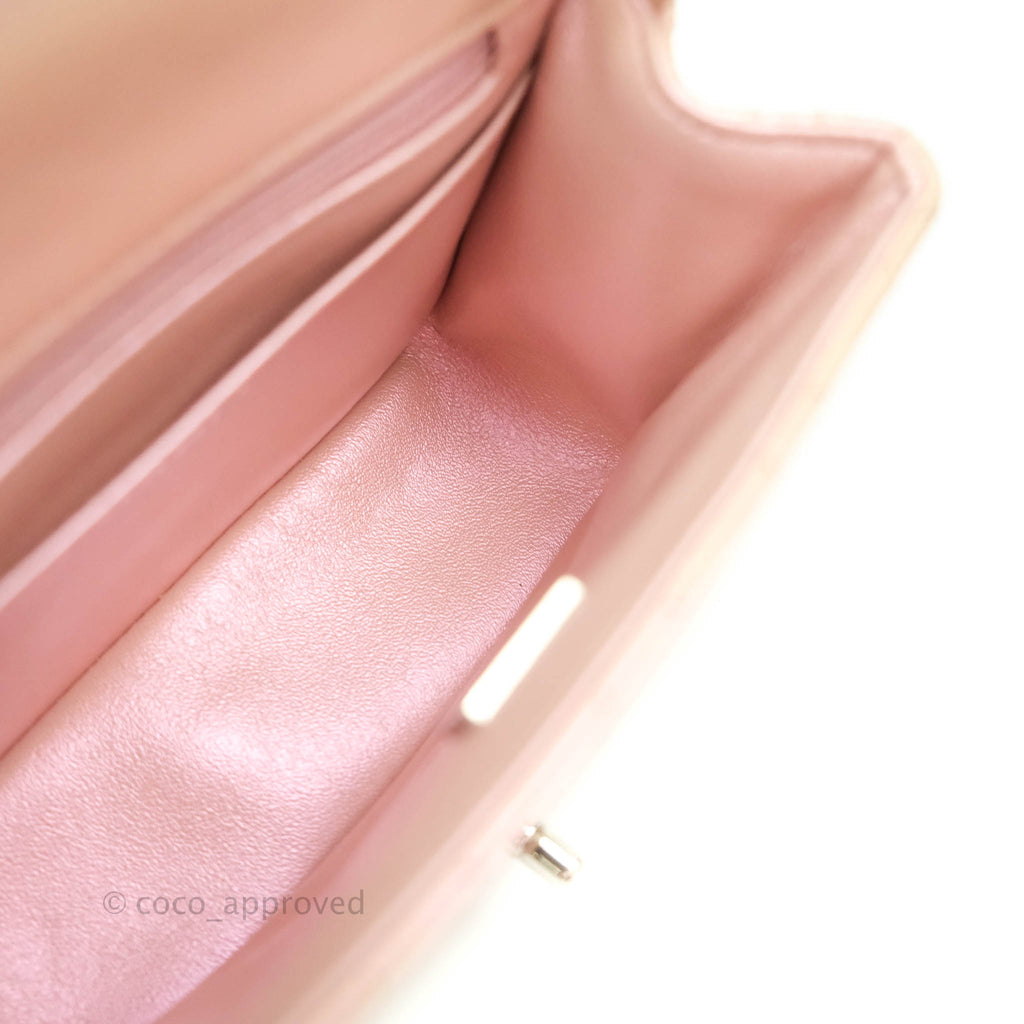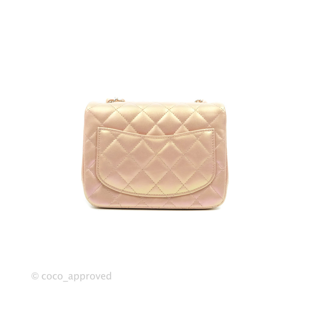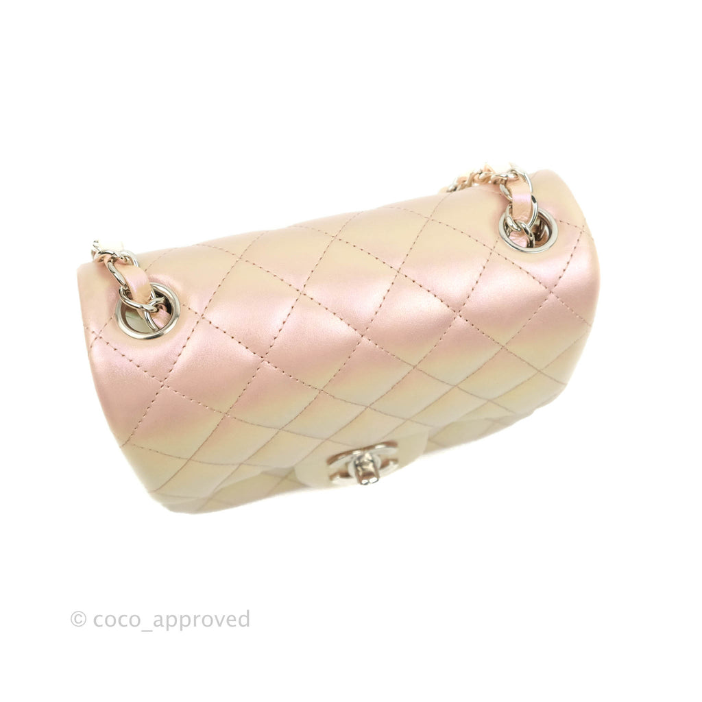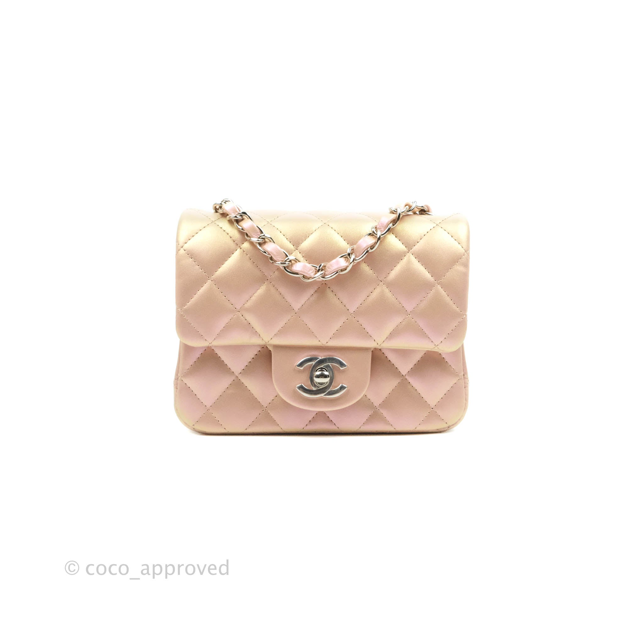 Chanel Mini Square Quilted Iridescent Pink Silver Hardware