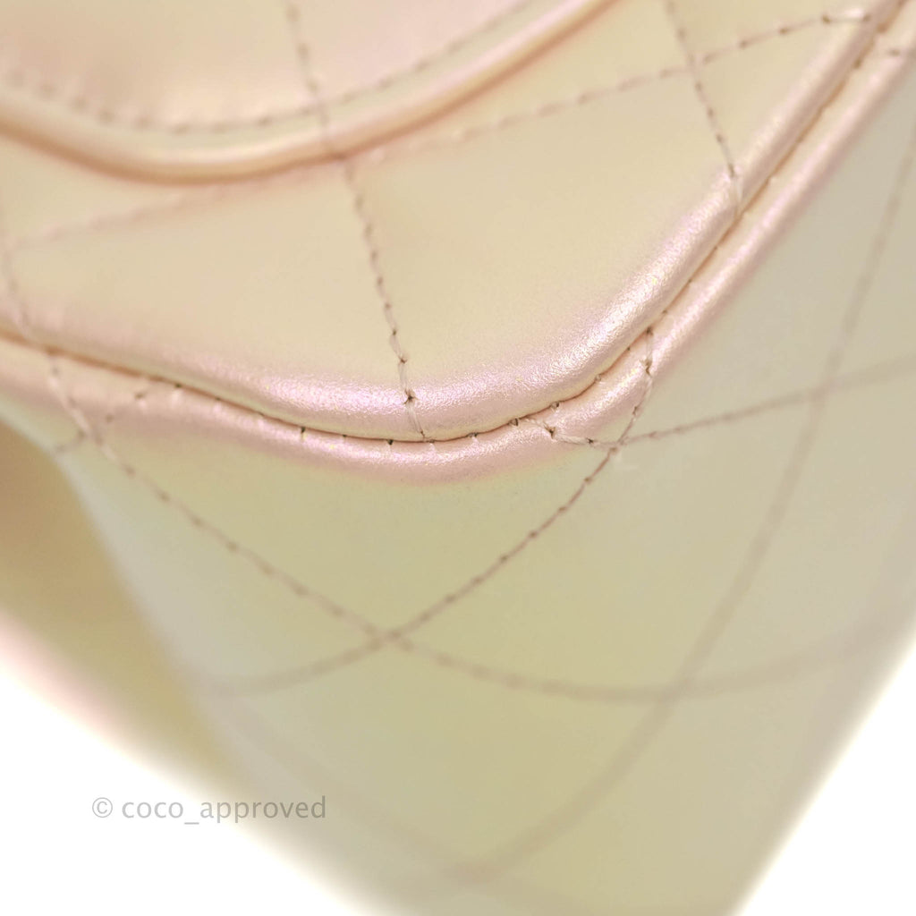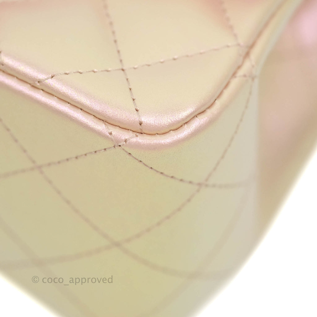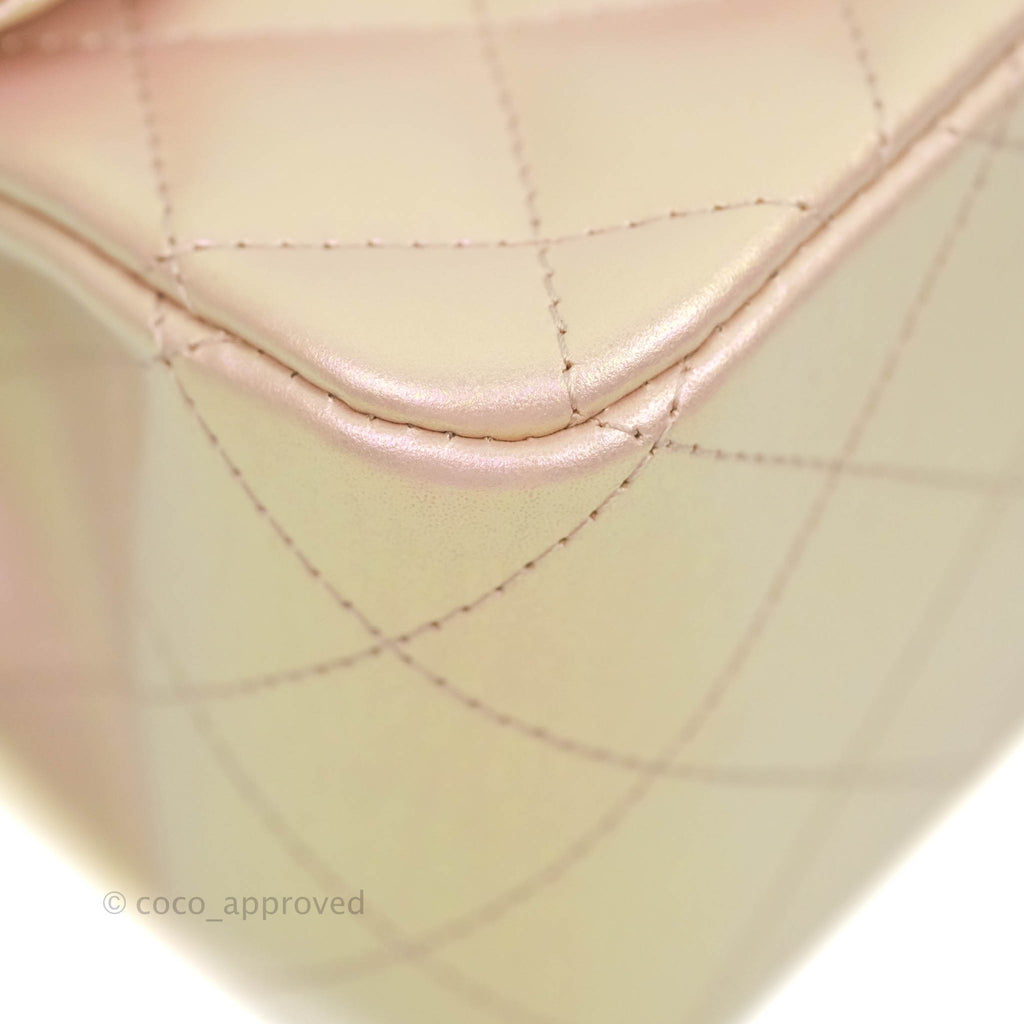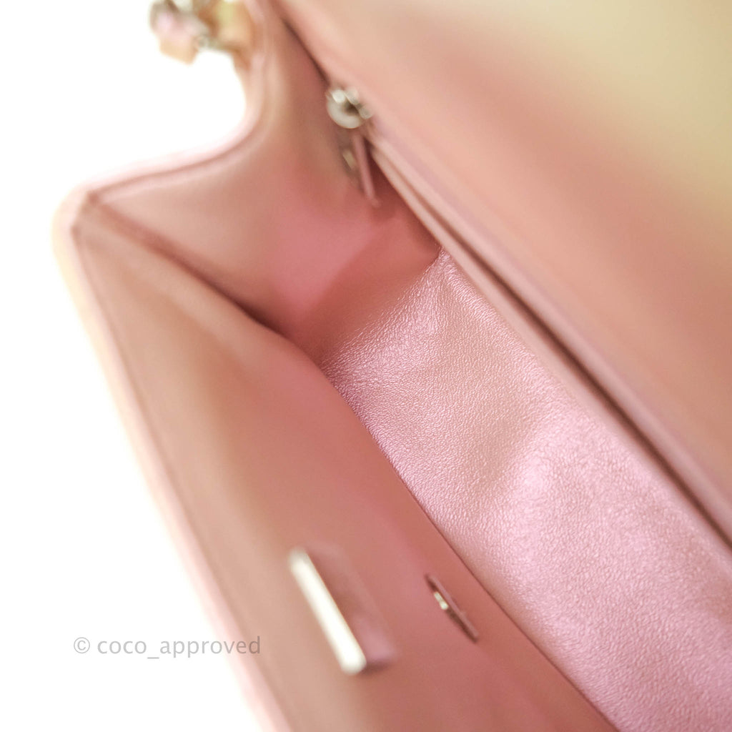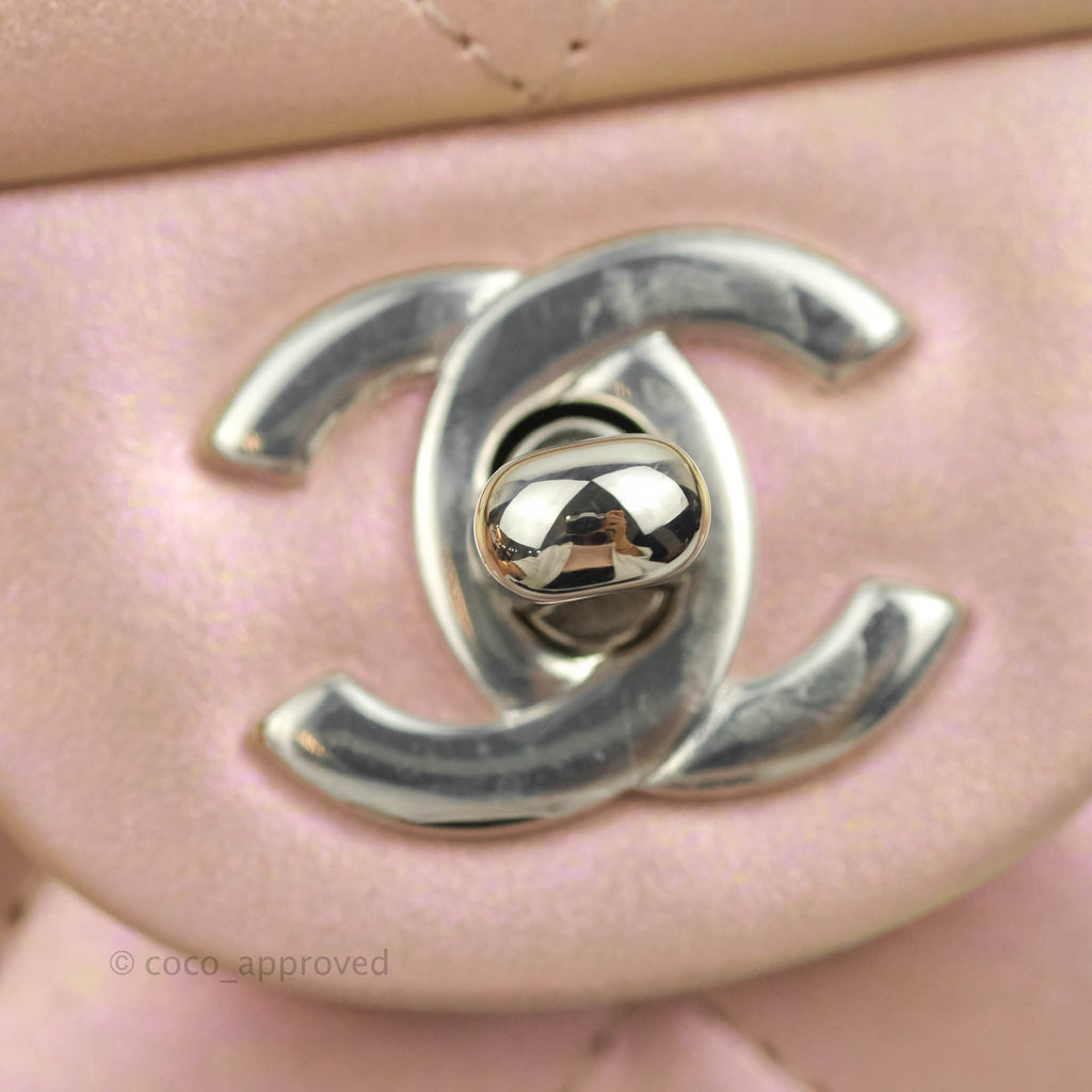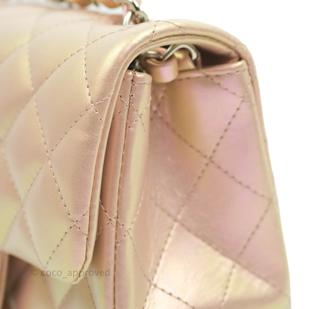 Chanel Mini Square Quilted Iridescent Pink Silver Hardware