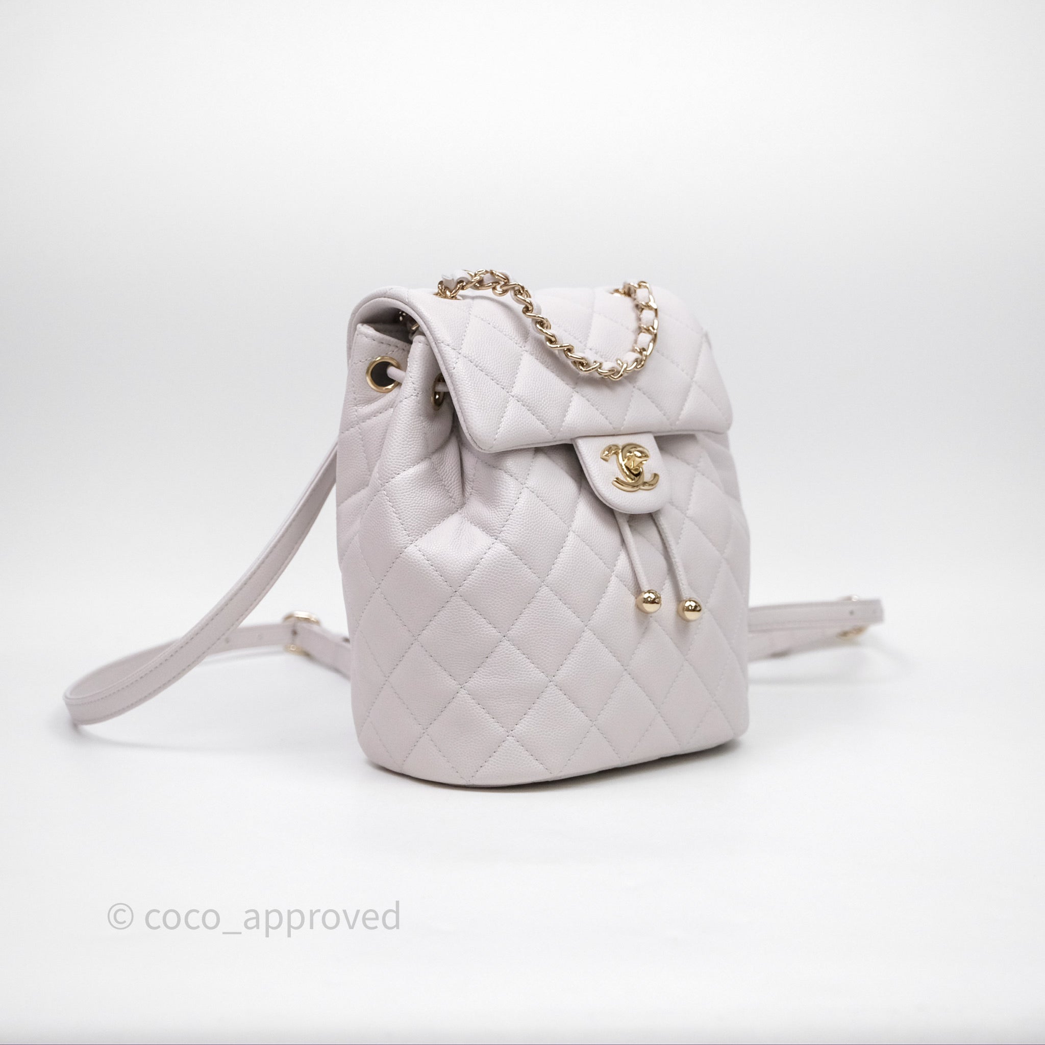 Chanel Mini Urban Spirit Backpack Pale Gray Caviar Gold Hardware