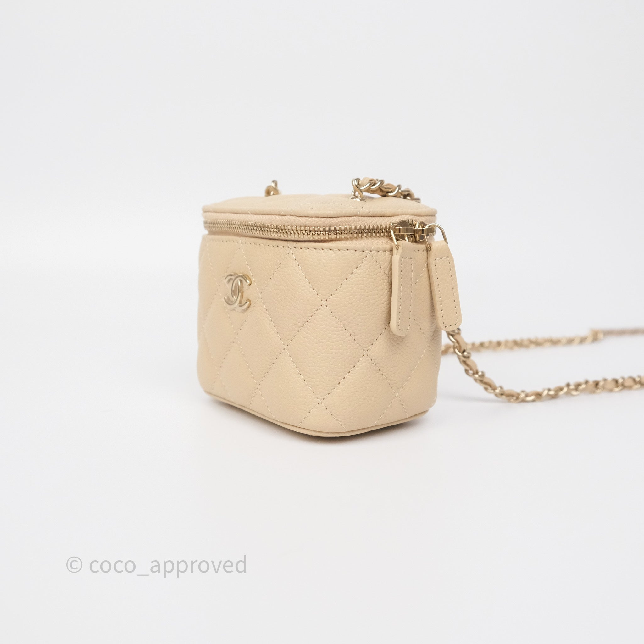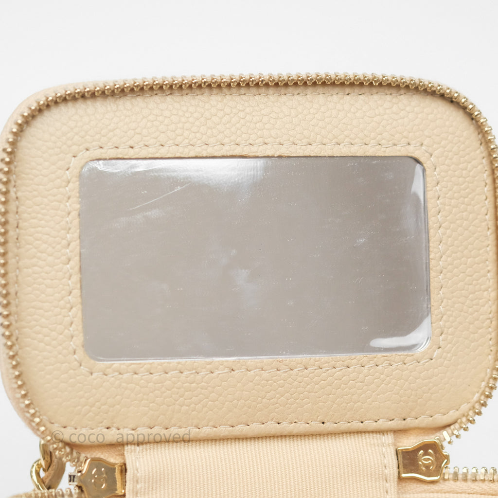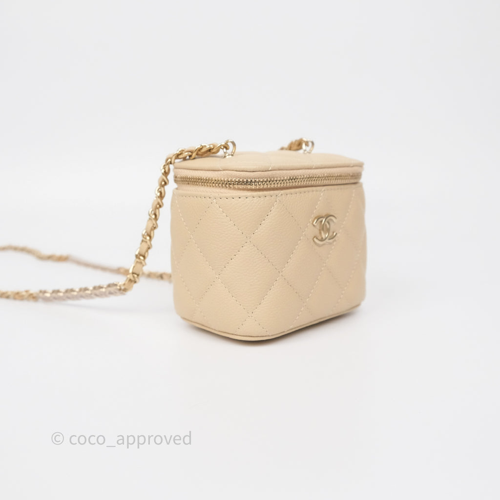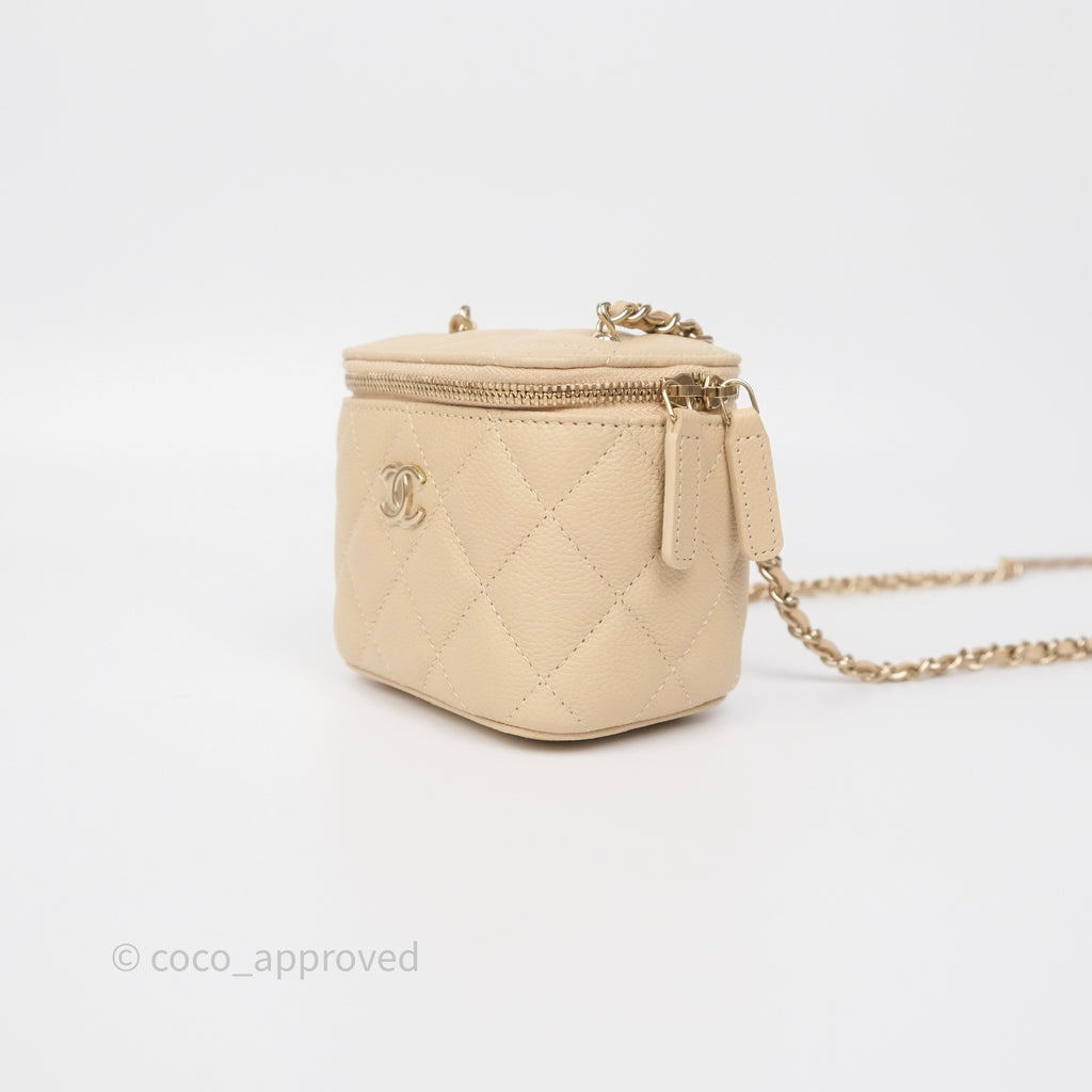 Chanel Mini Vanity With CC Chain Beige Caviar Gold Hardware