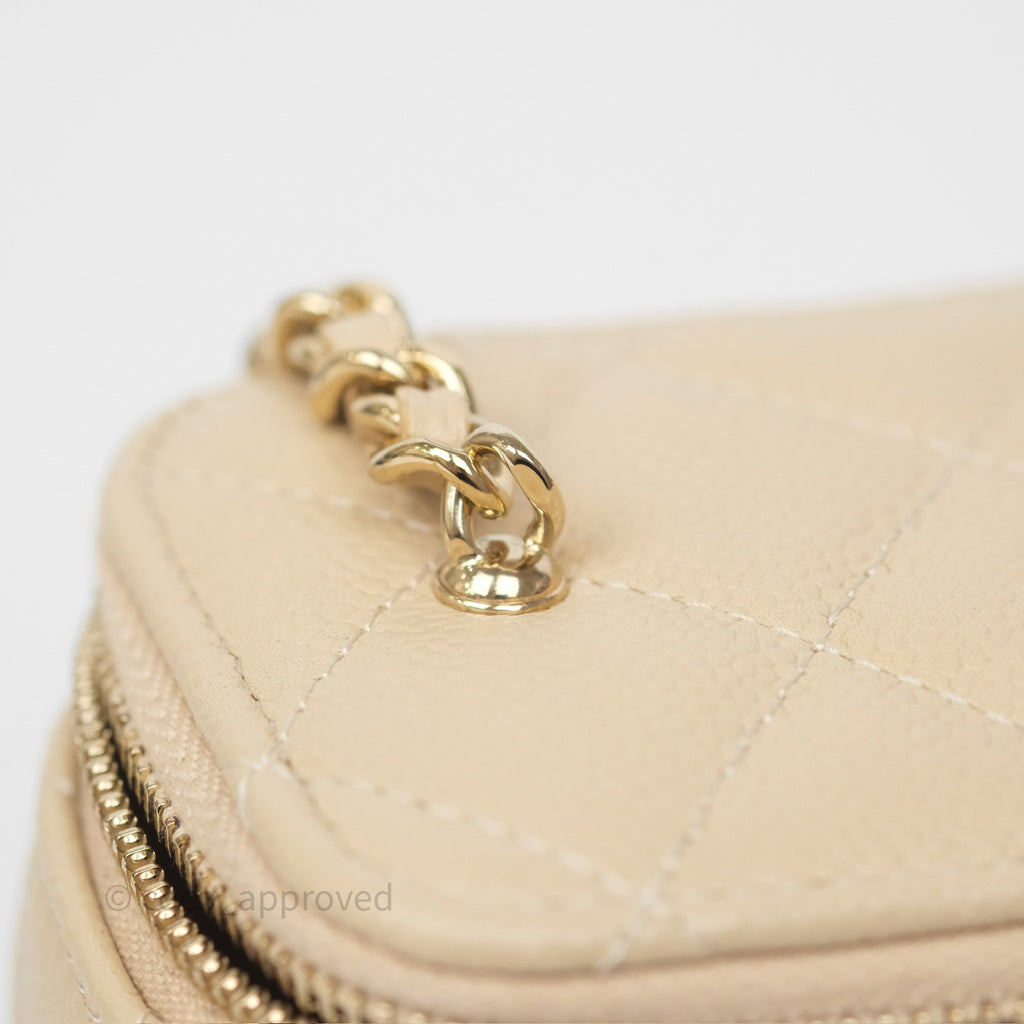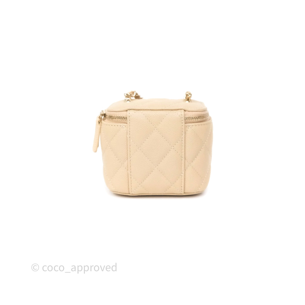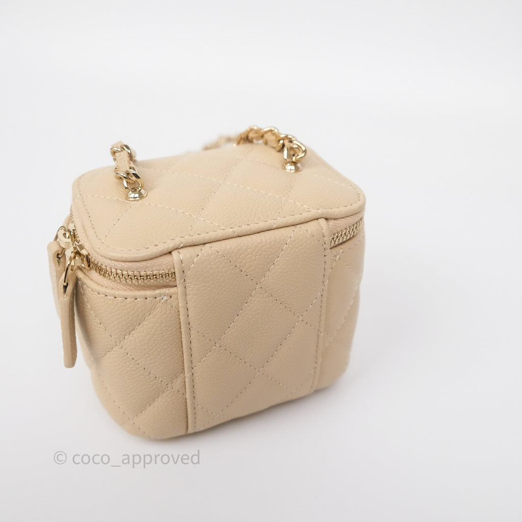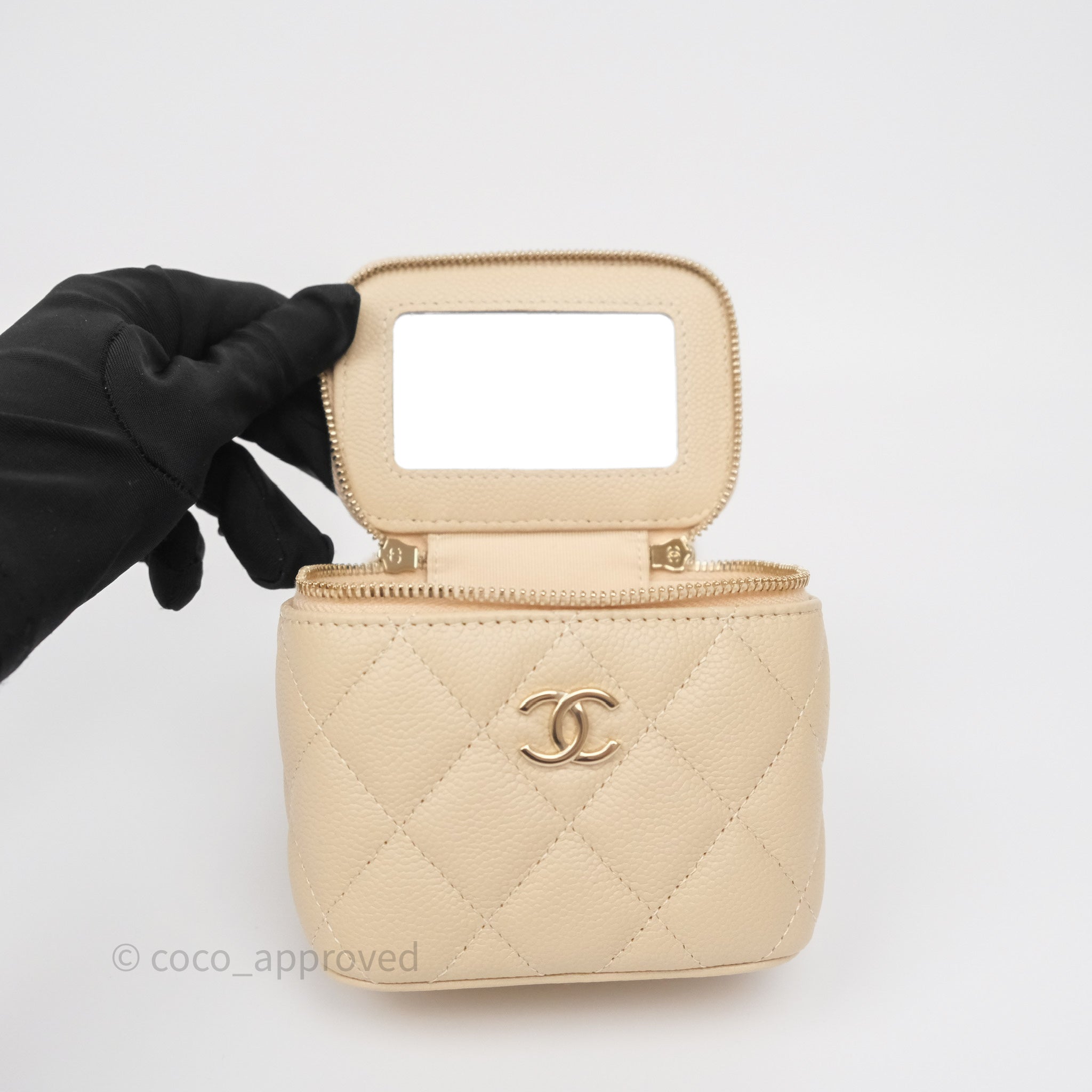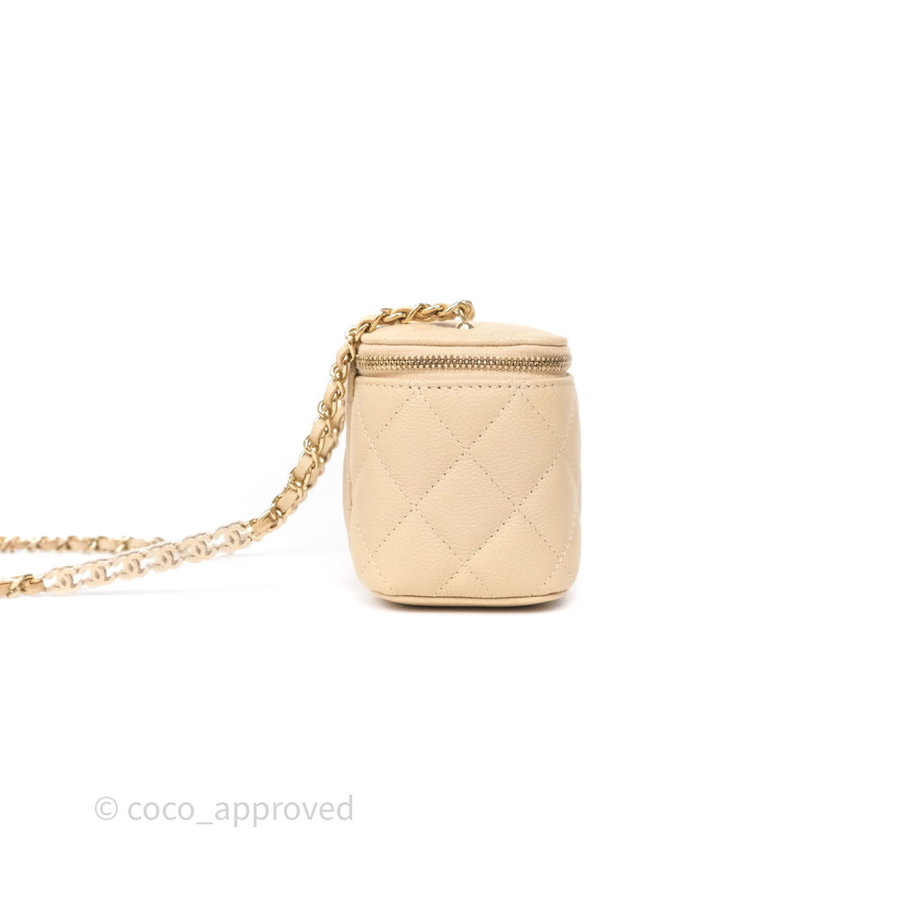 Chanel Mini Vanity With CC Chain Beige Caviar Gold Hardware