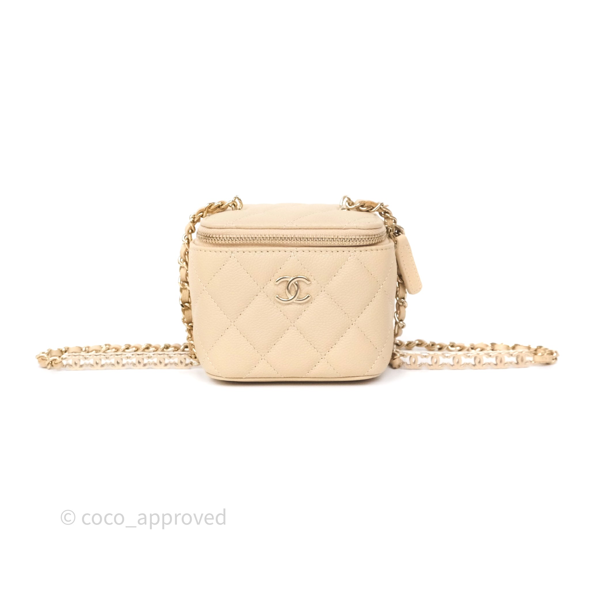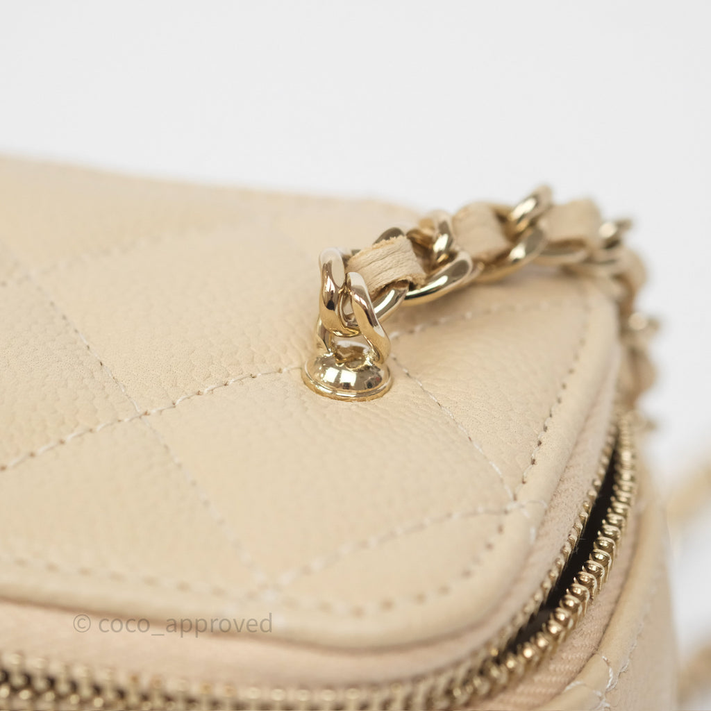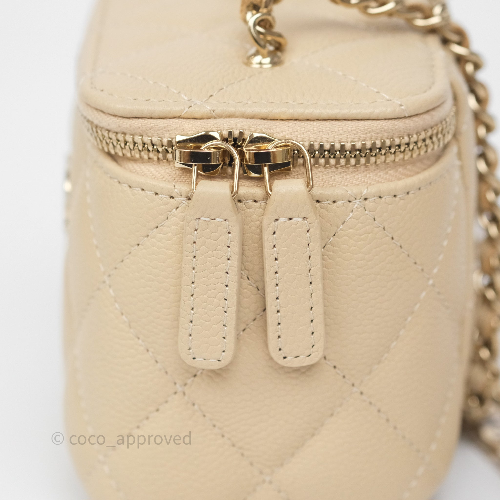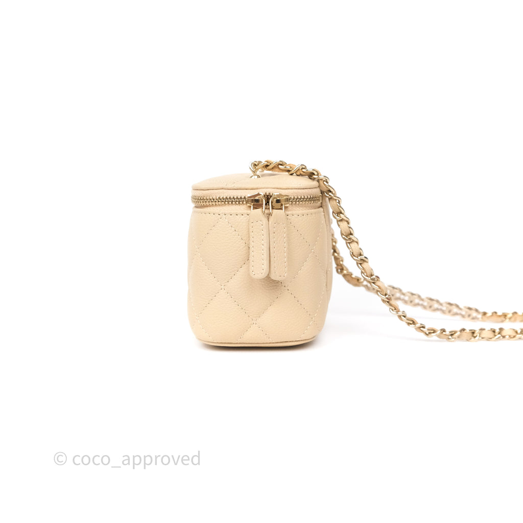 Chanel Mini Vanity With CC Chain Beige Caviar Gold Hardware