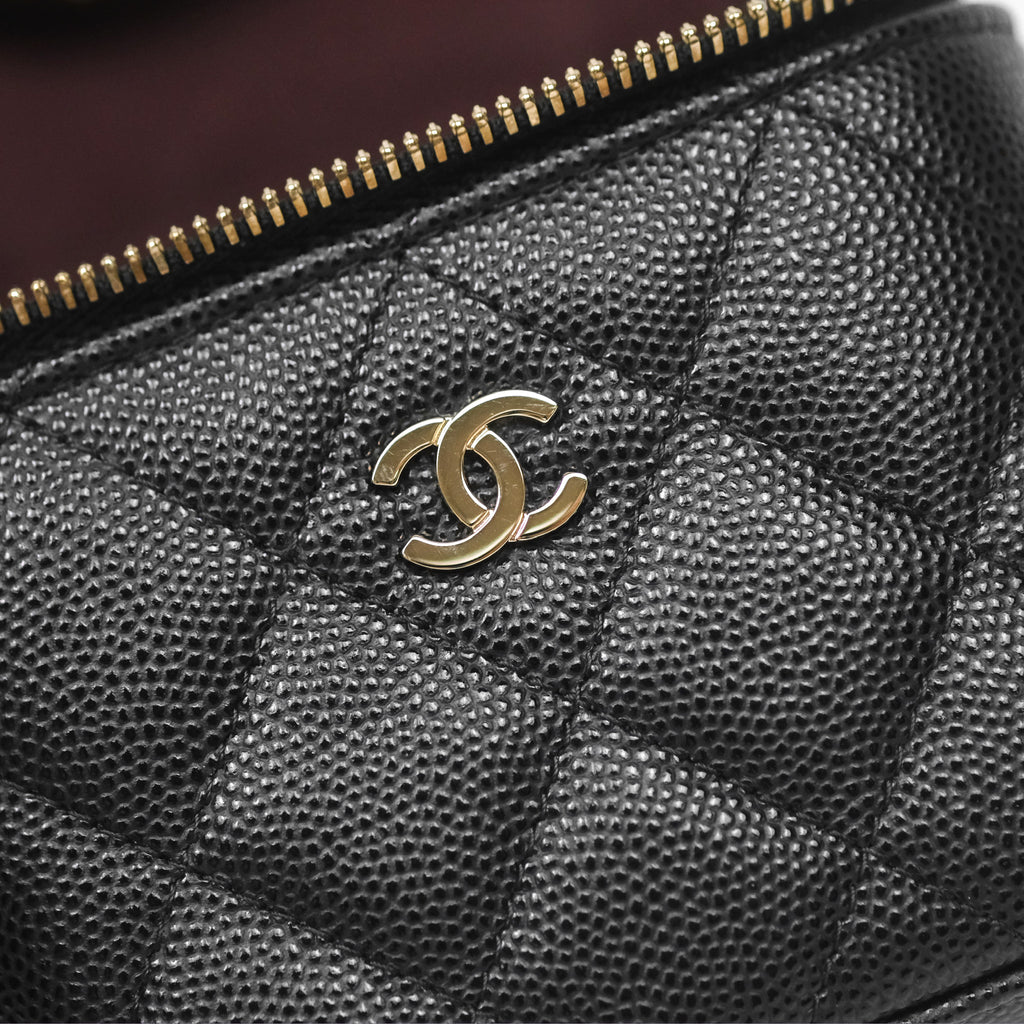 Chanel Mini Vanity With Chain Black Caviar Gold Hardware