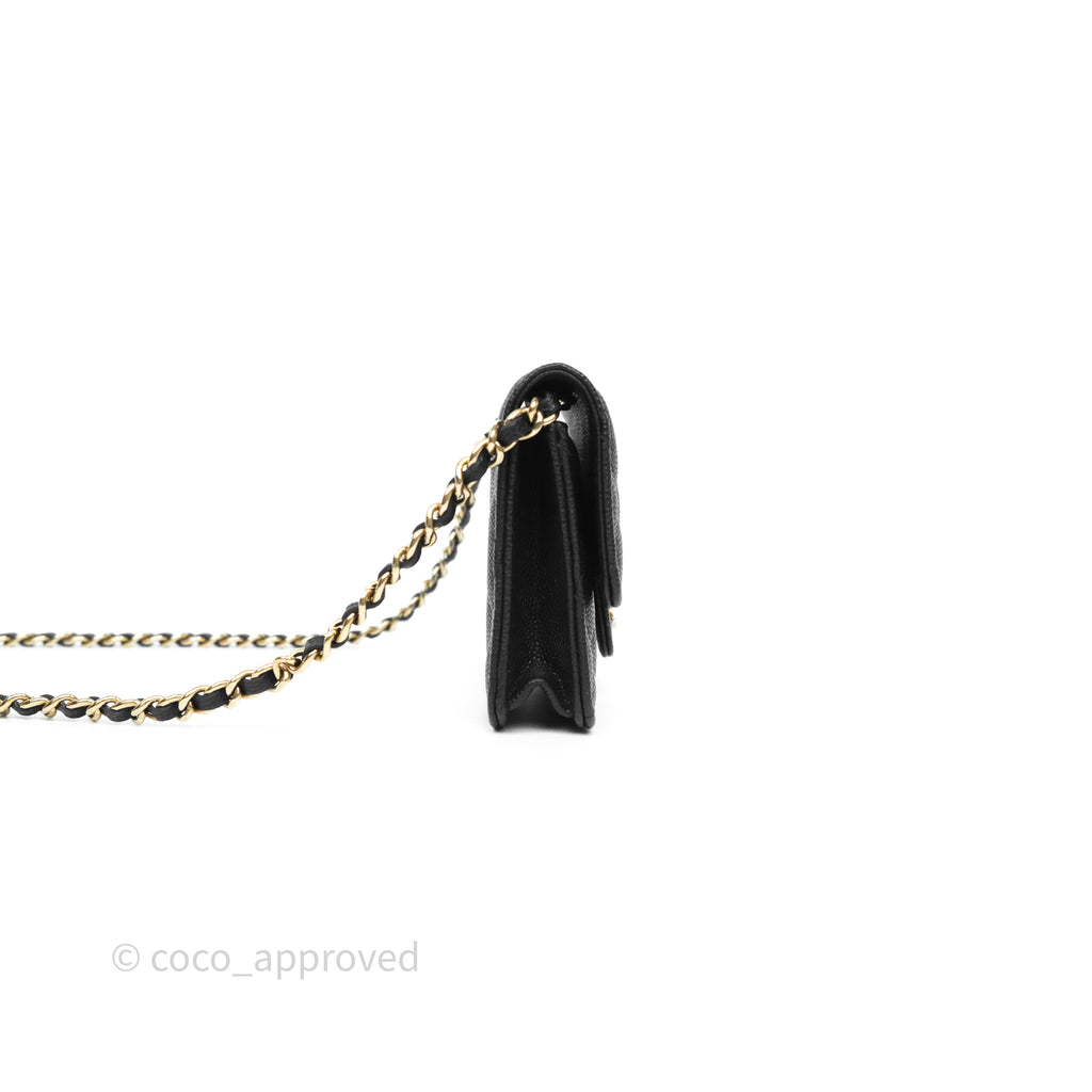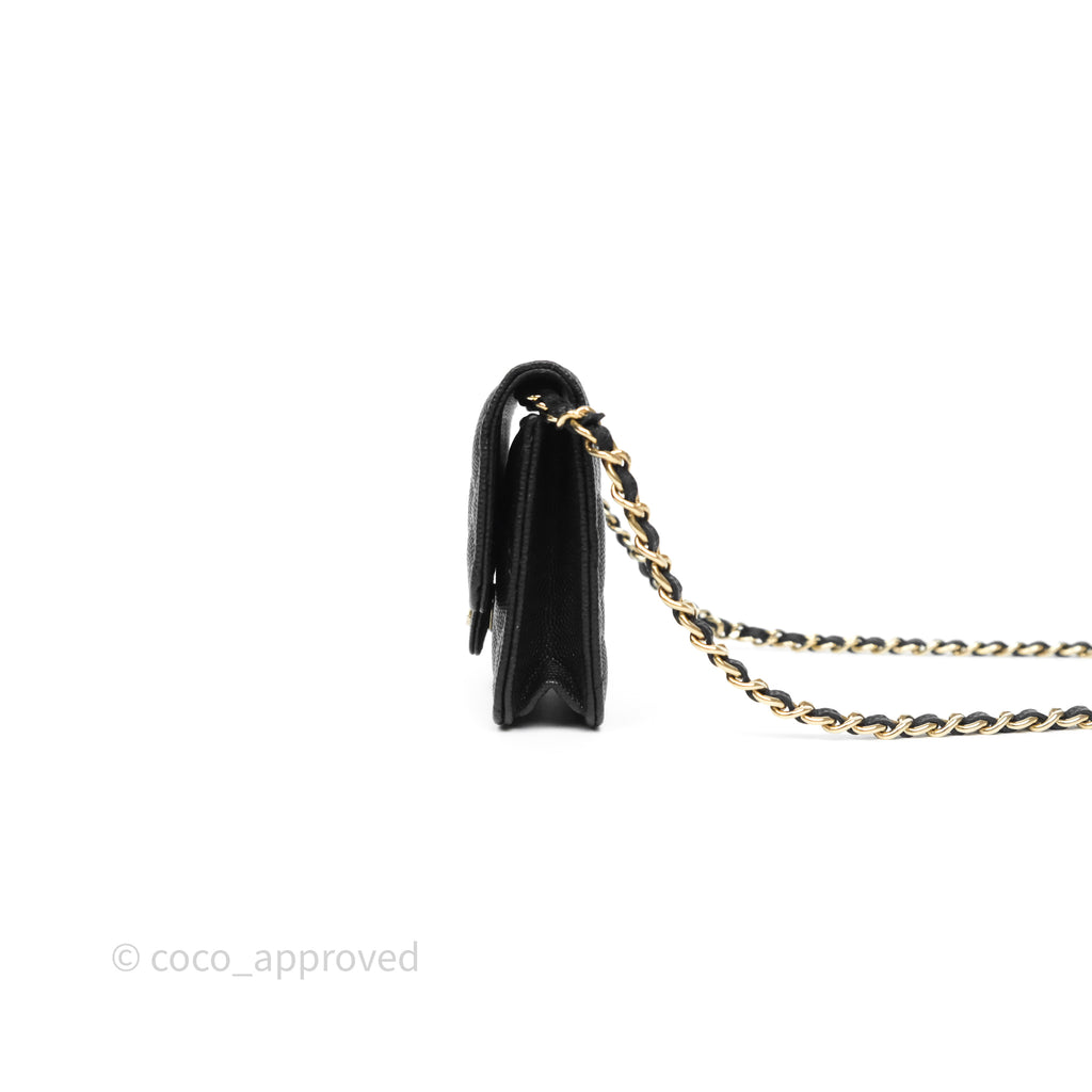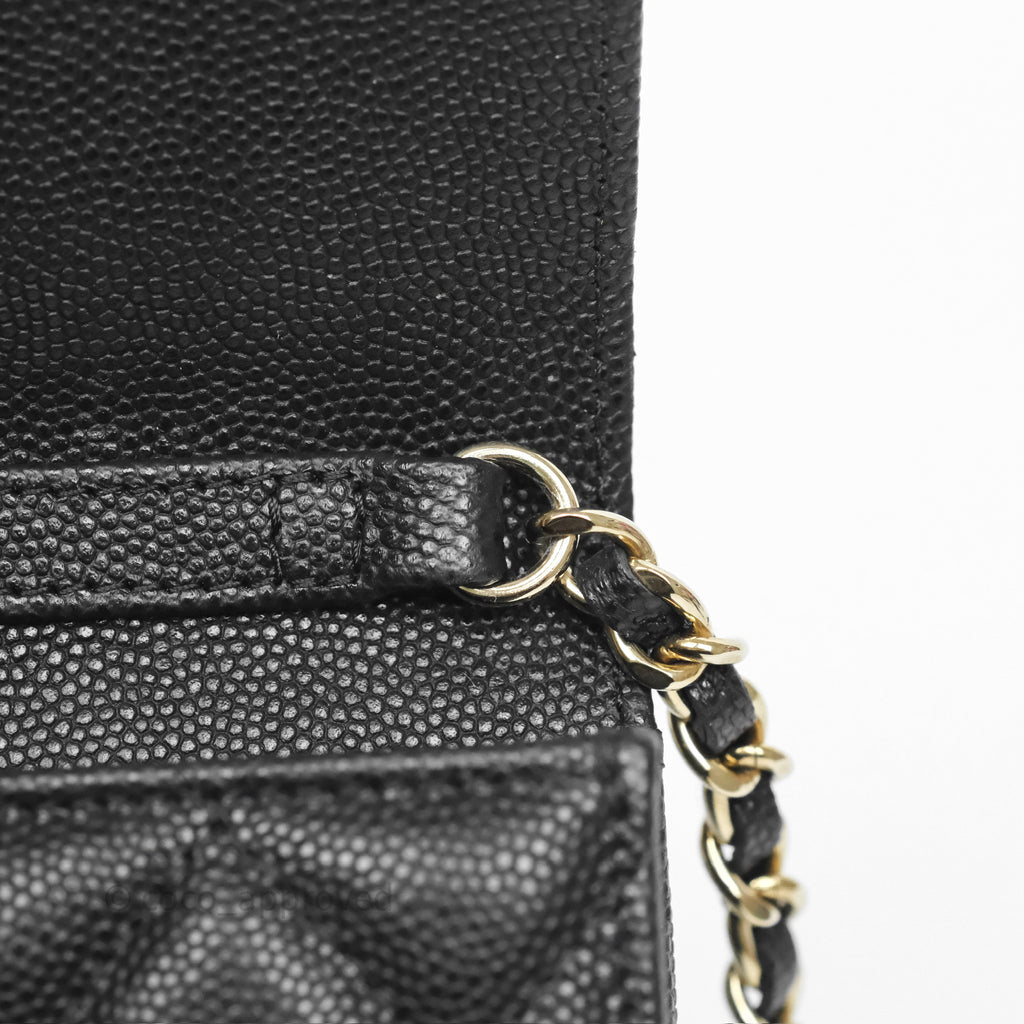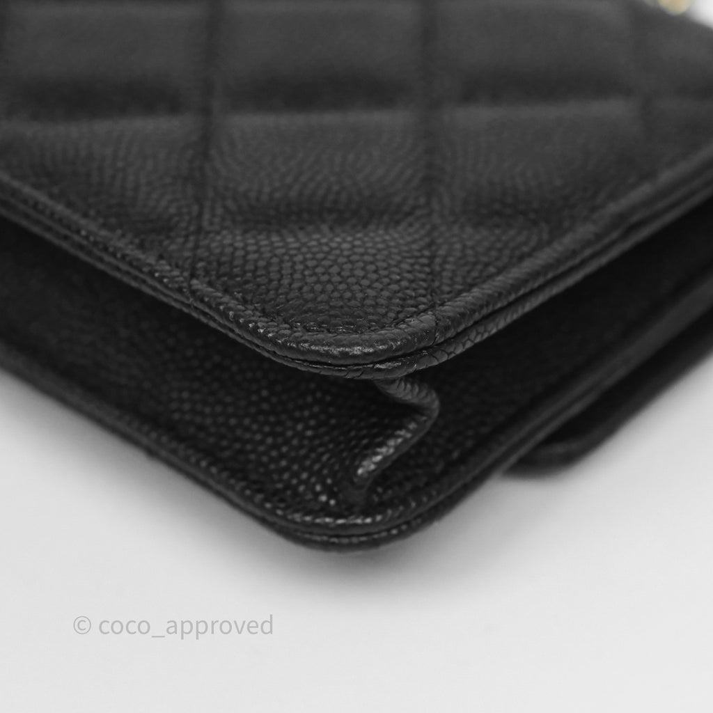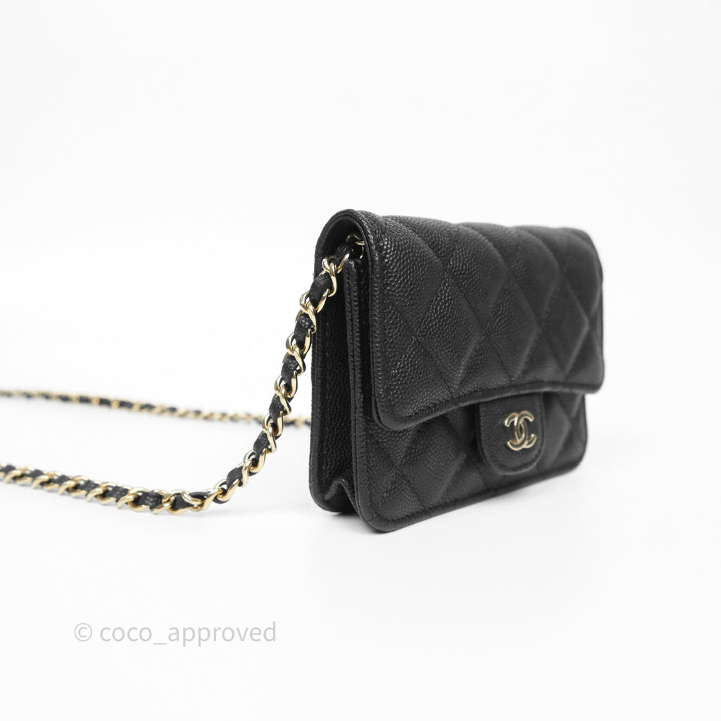 Chanel Mini Wallet With Chain Black Caviar Gold Hardware