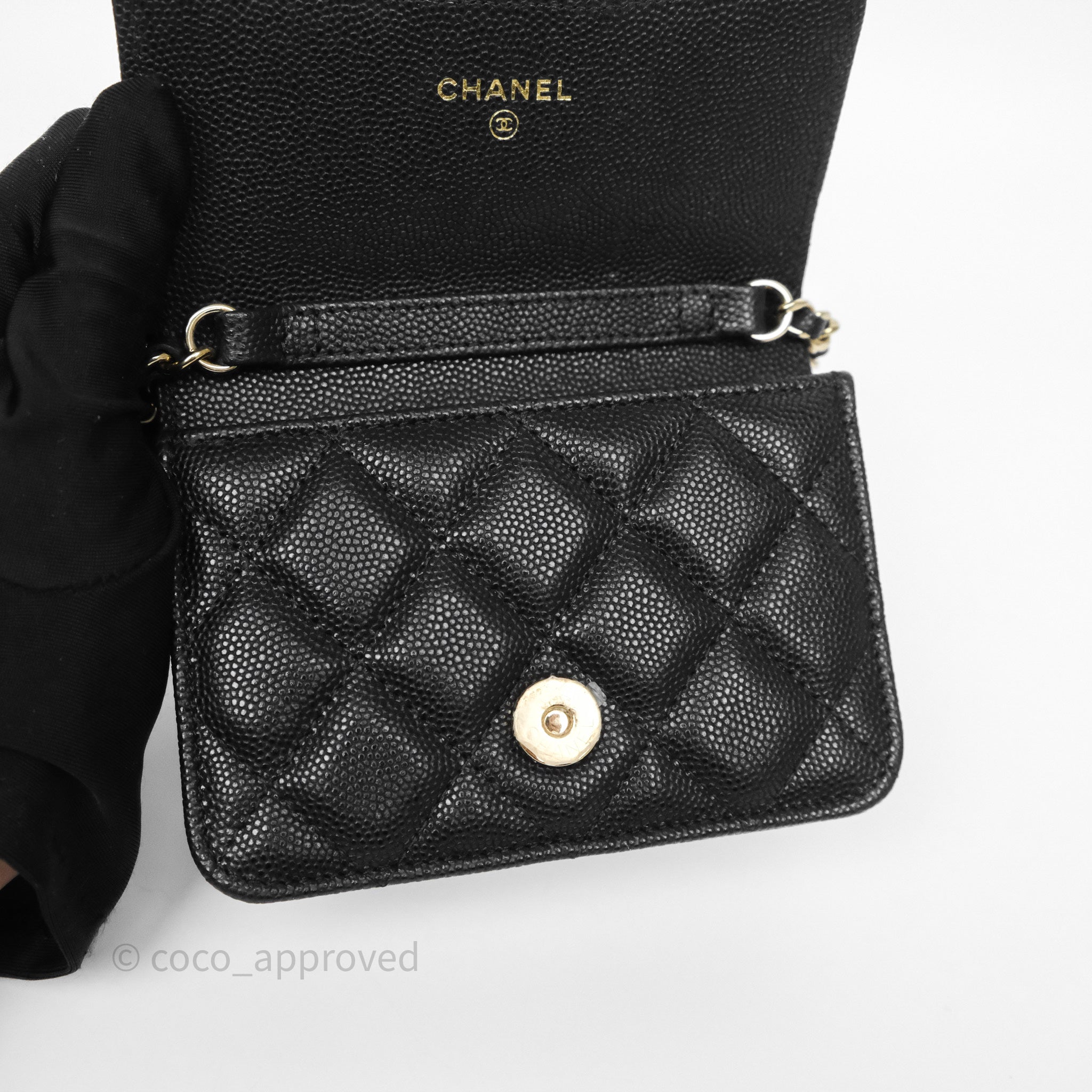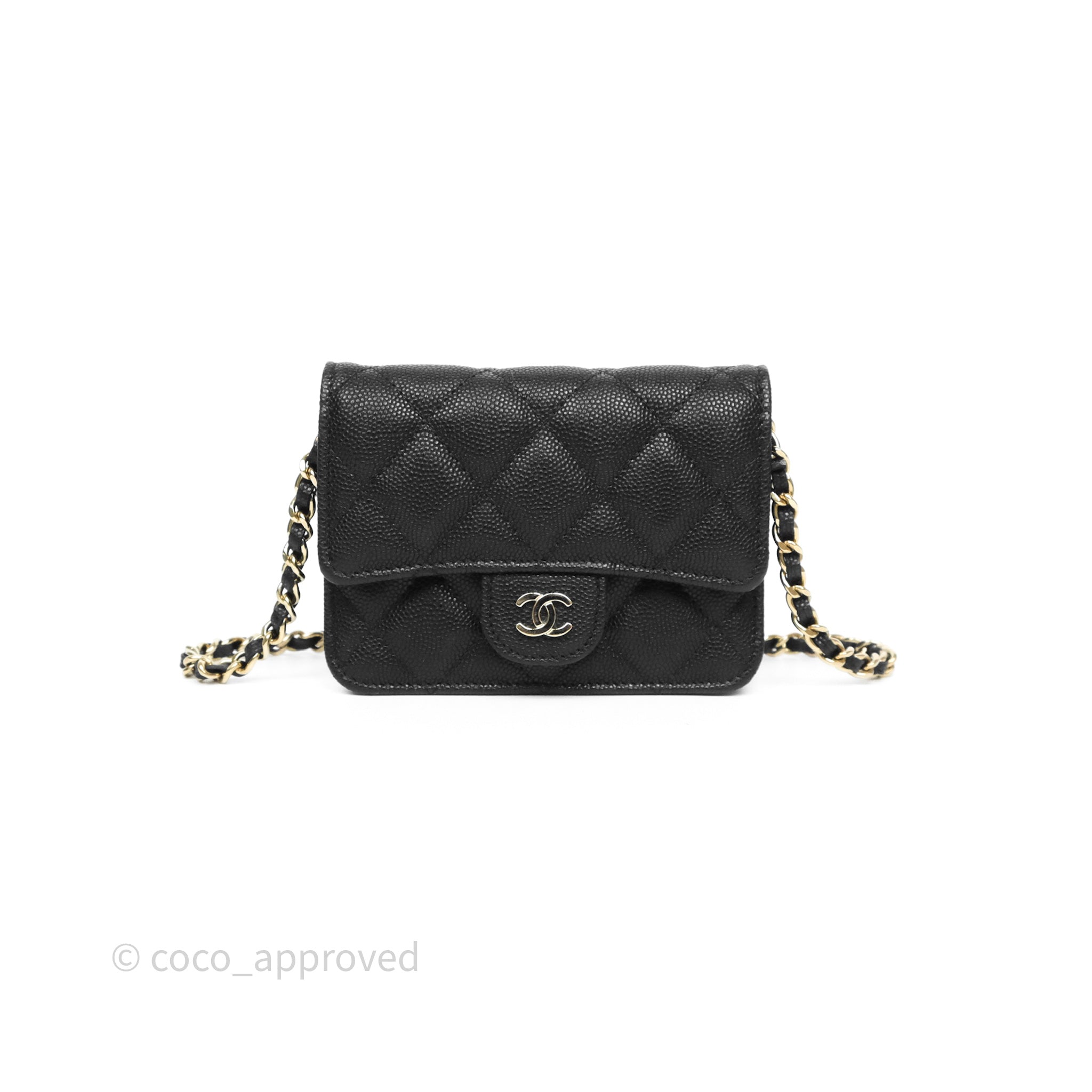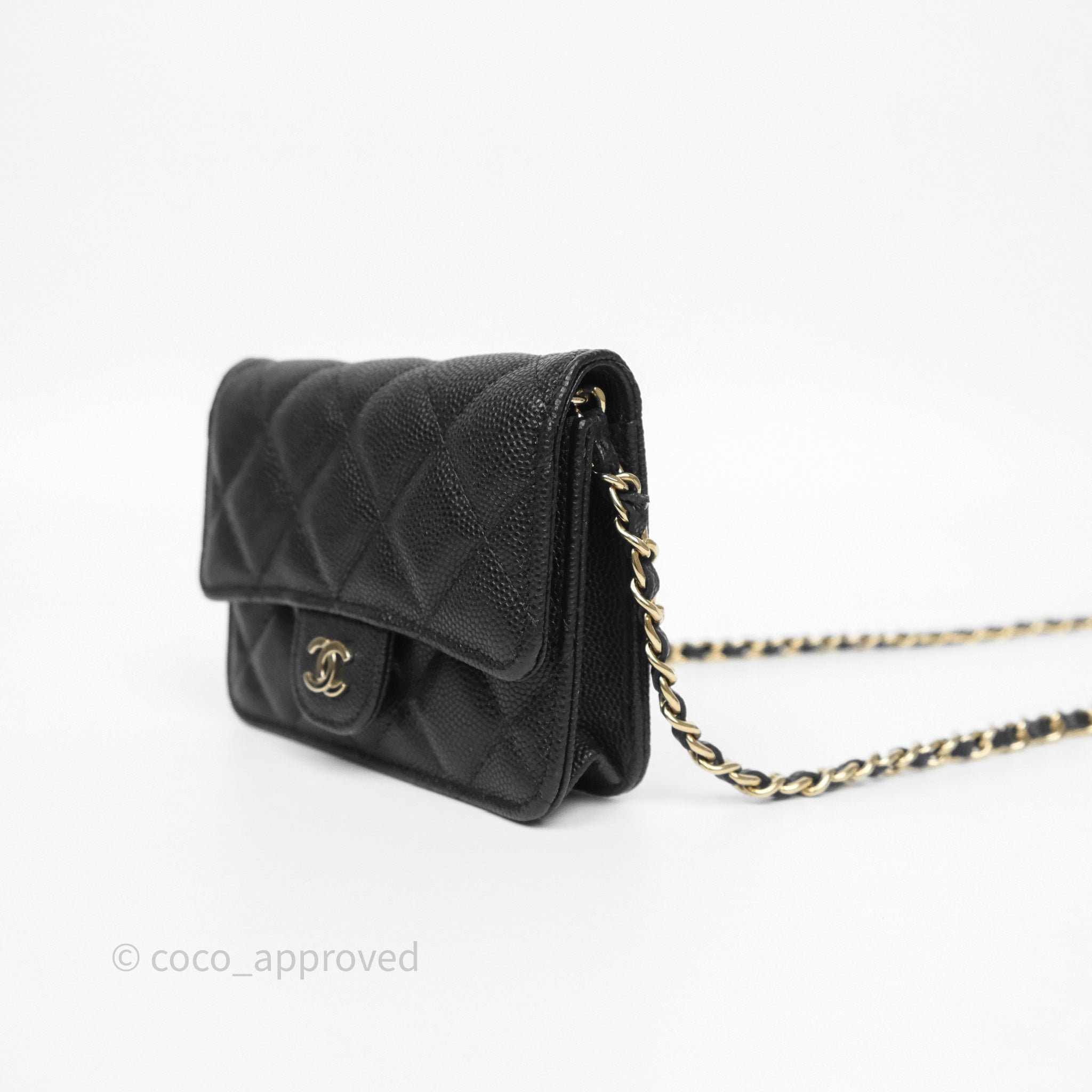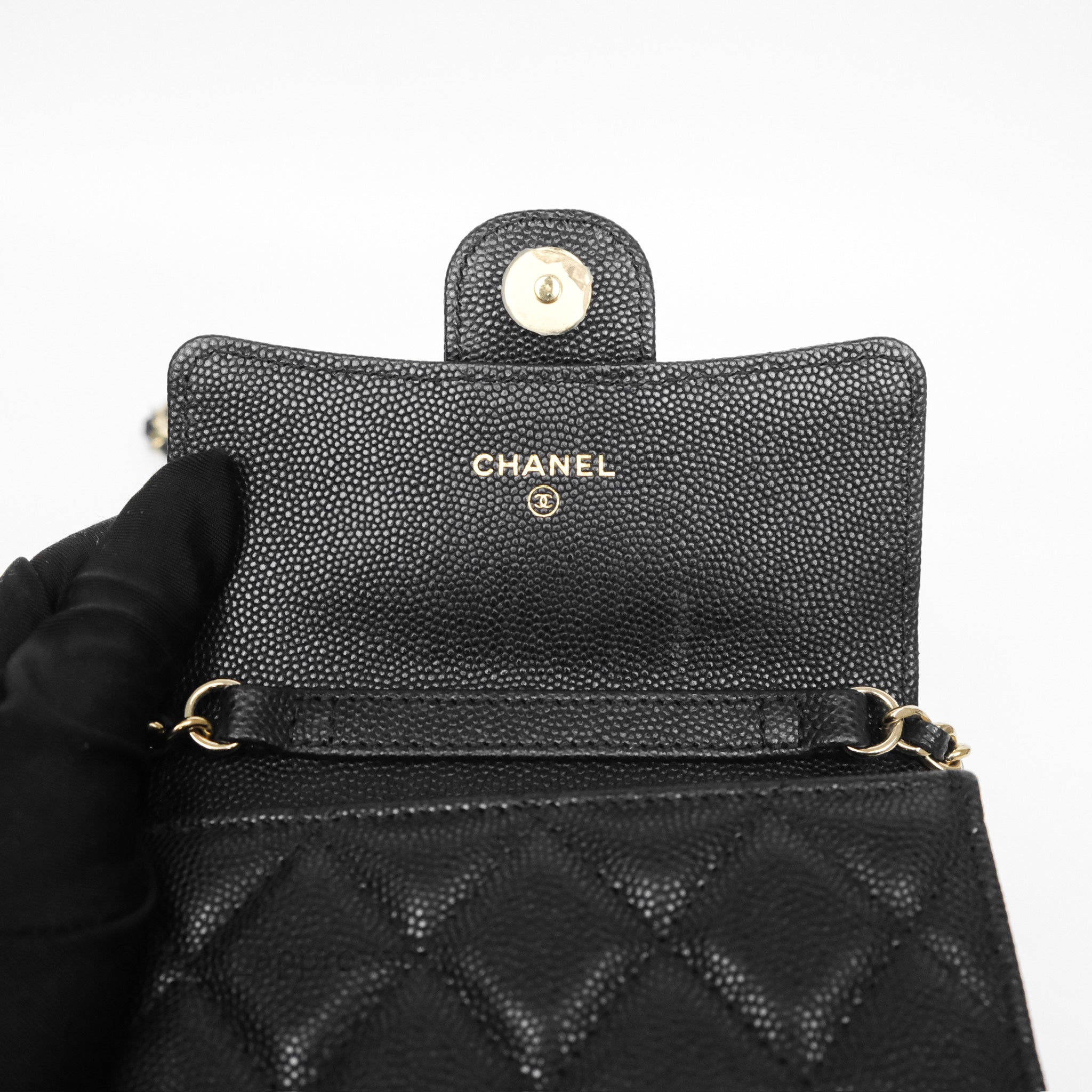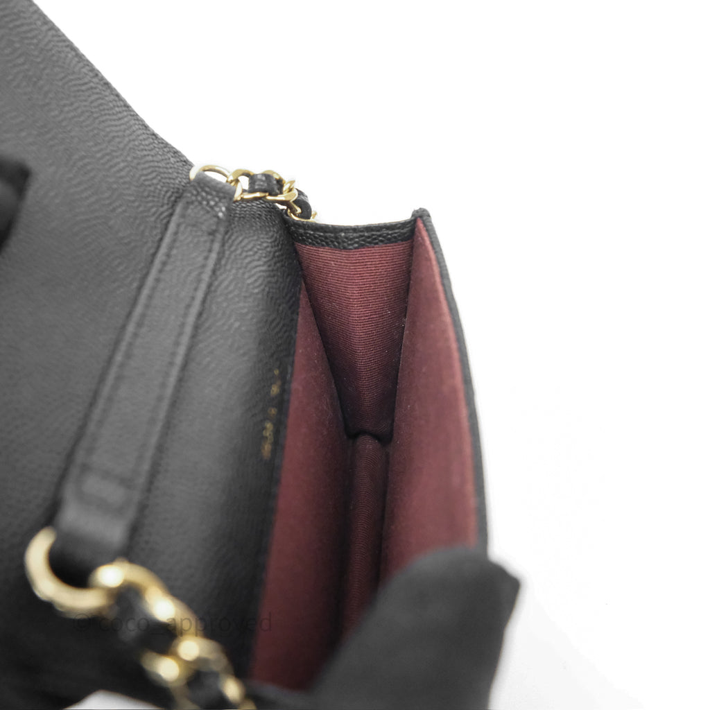 Chanel Mini Wallet With Chain Black Caviar Gold Hardware