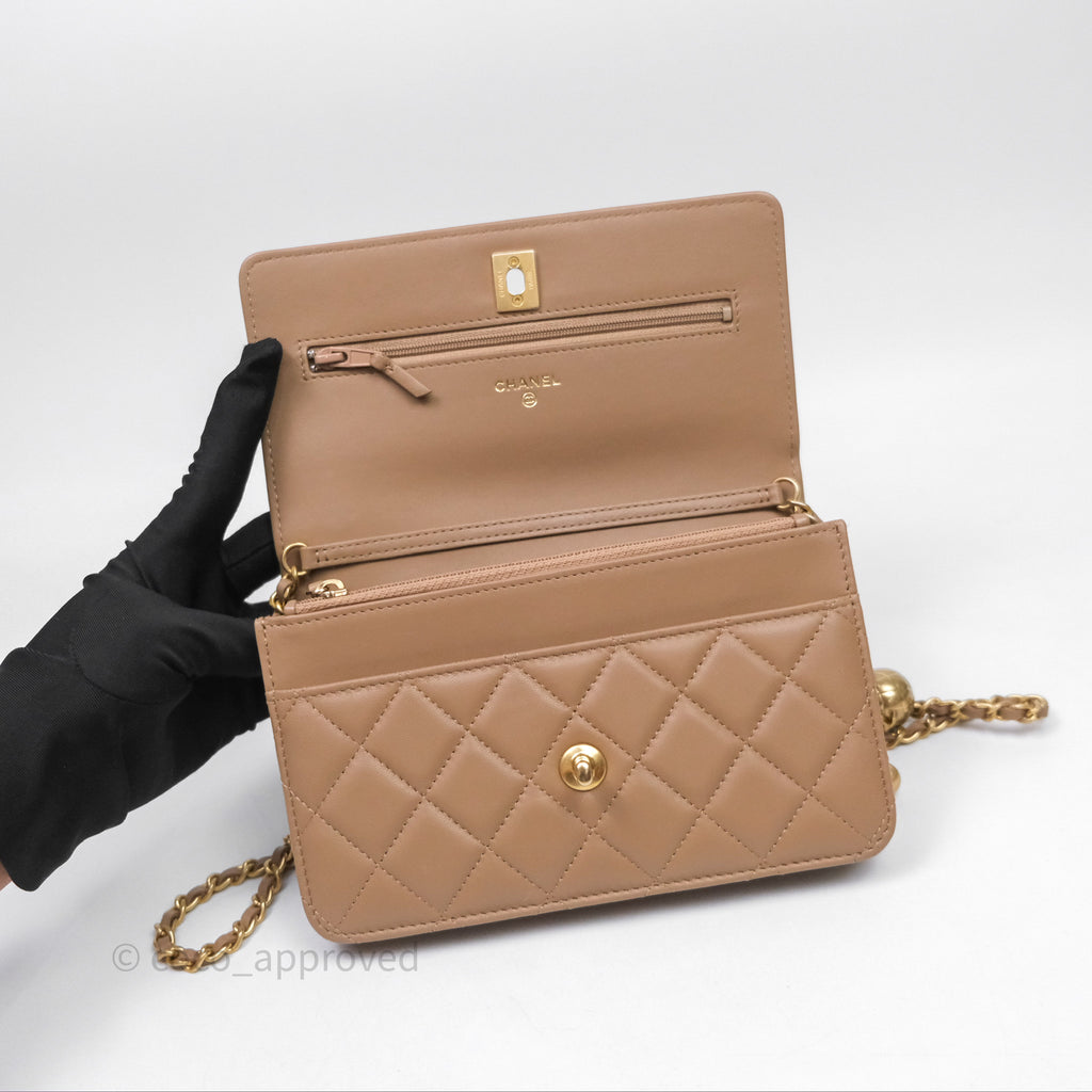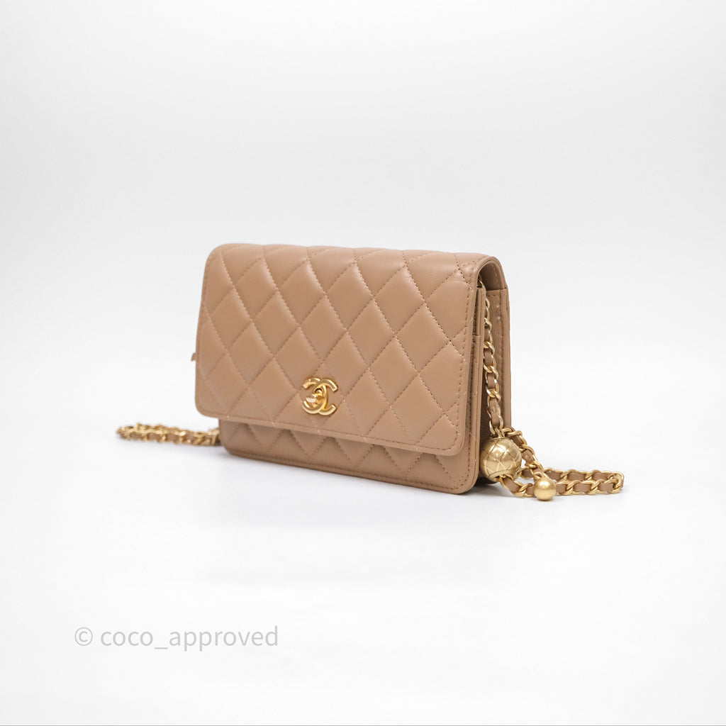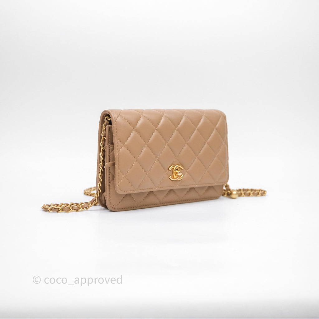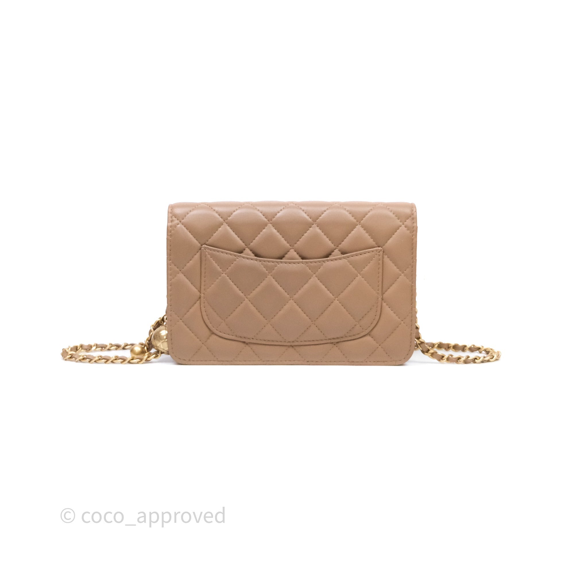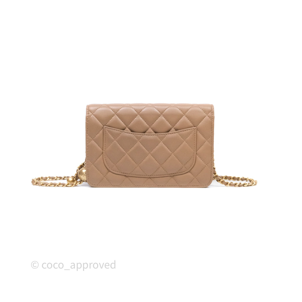Chanel Pearl Crush Wallet on Chain WOC Quilted Beige Lambskin Aged Gold Hardware