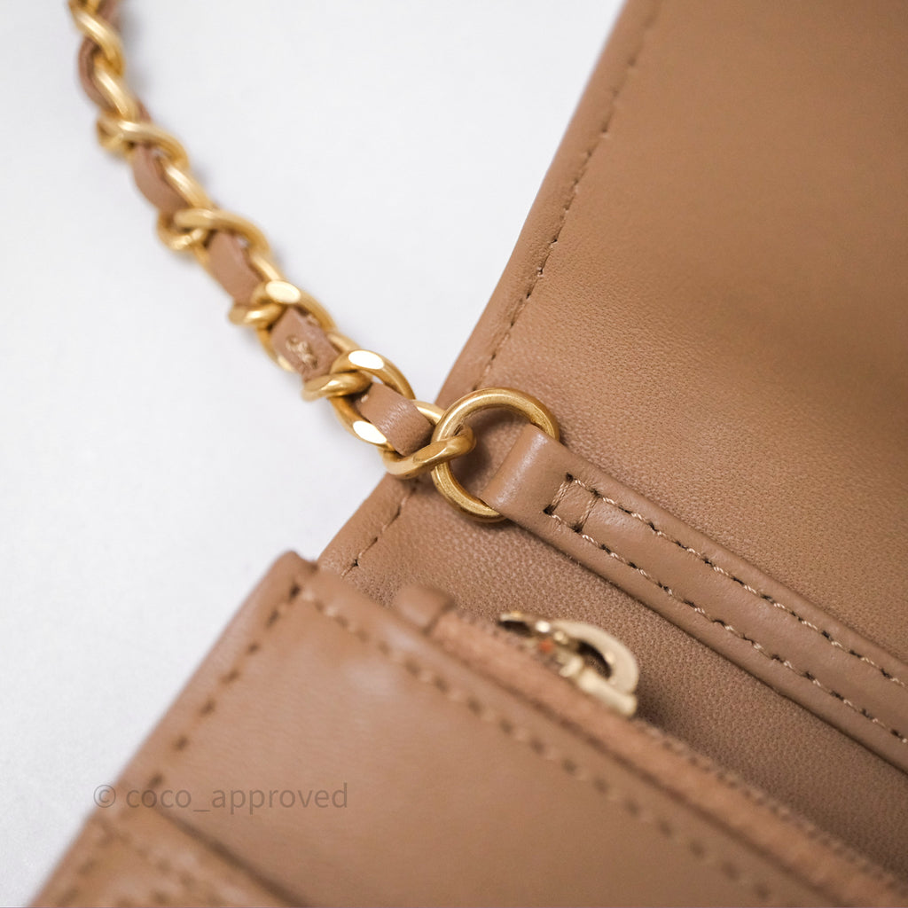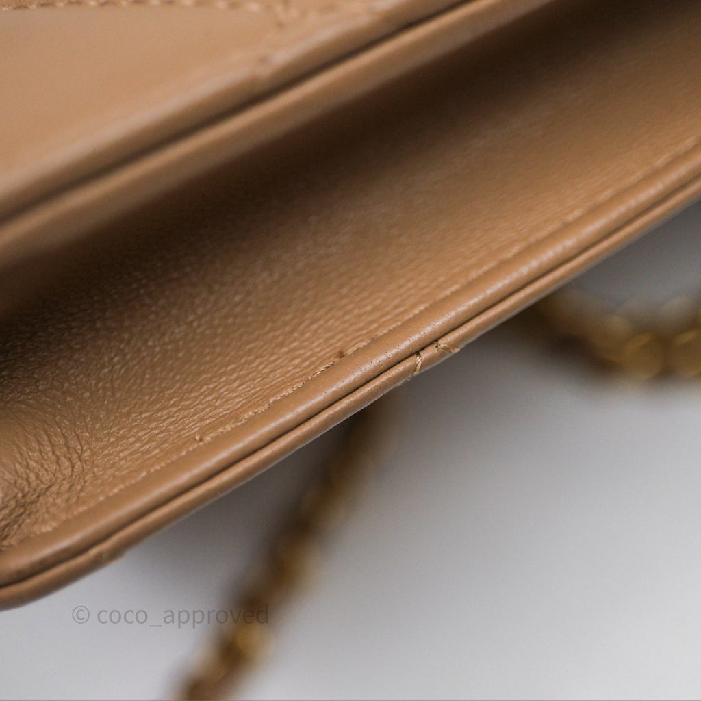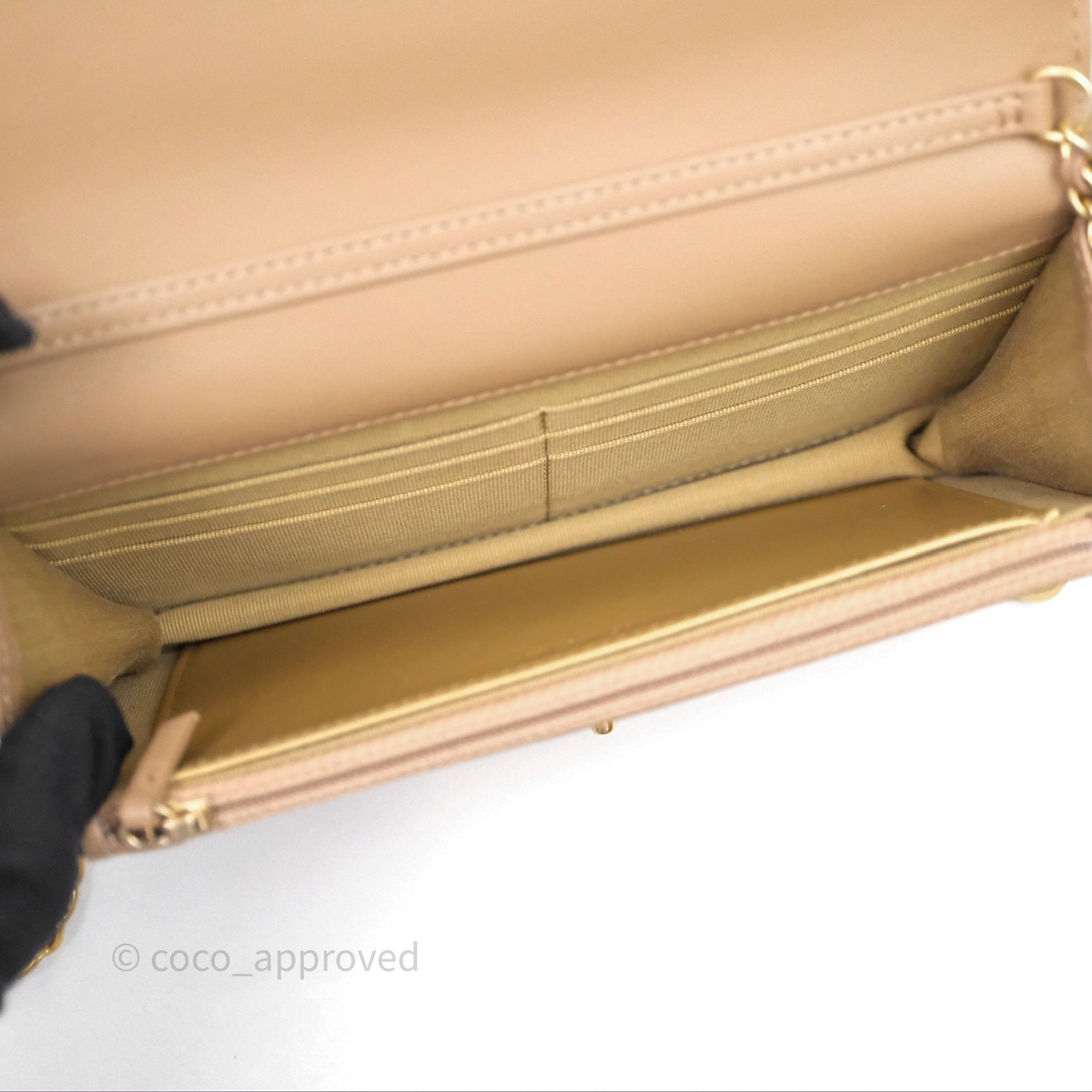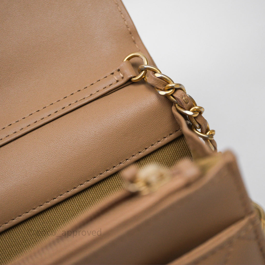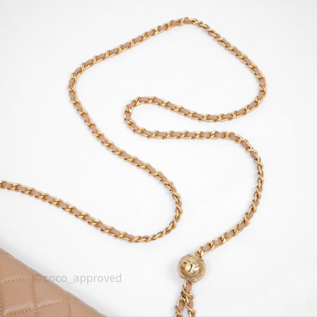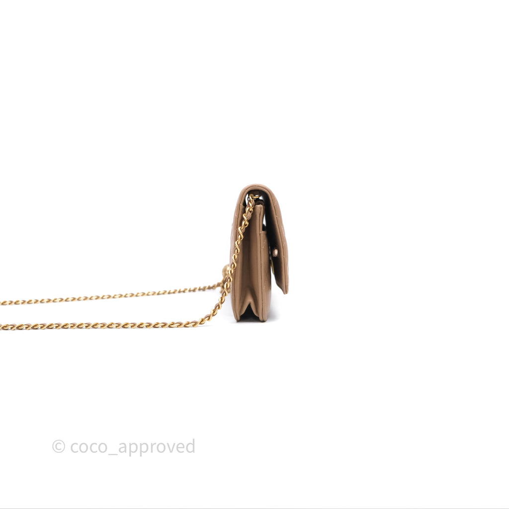 Chanel Pearl Crush Wallet on Chain WOC Quilted Beige Lambskin Aged Gold Hardware