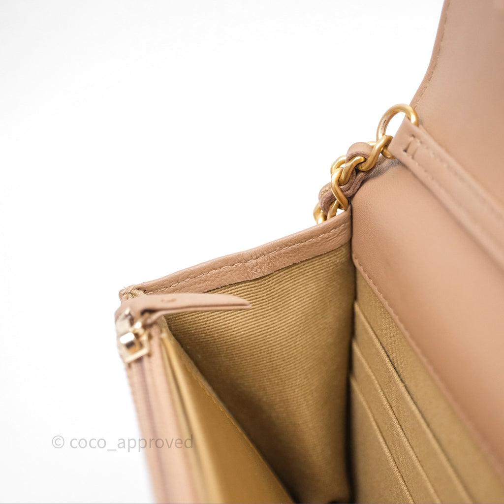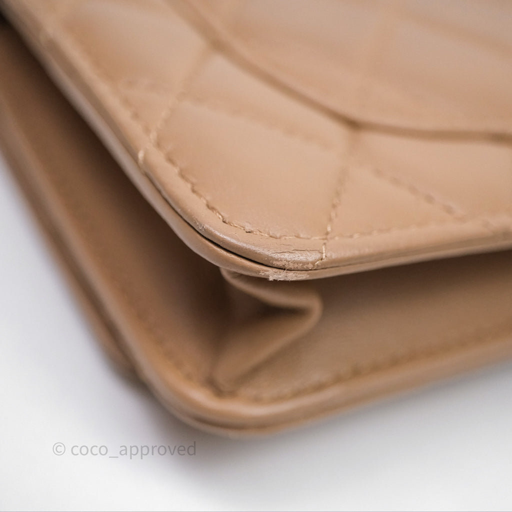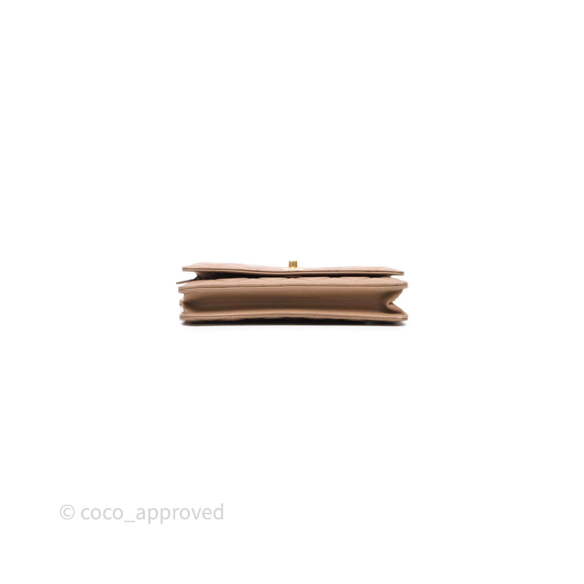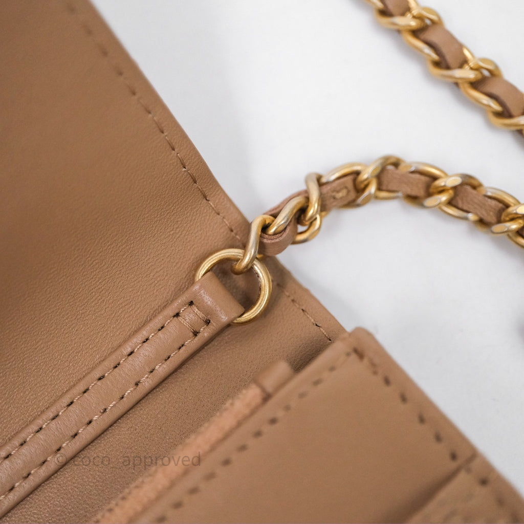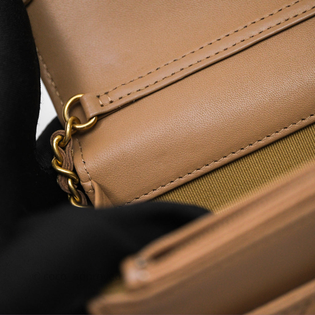 Chanel Pearl Crush Wallet on Chain WOC Quilted Beige Lambskin Aged Gold Hardware