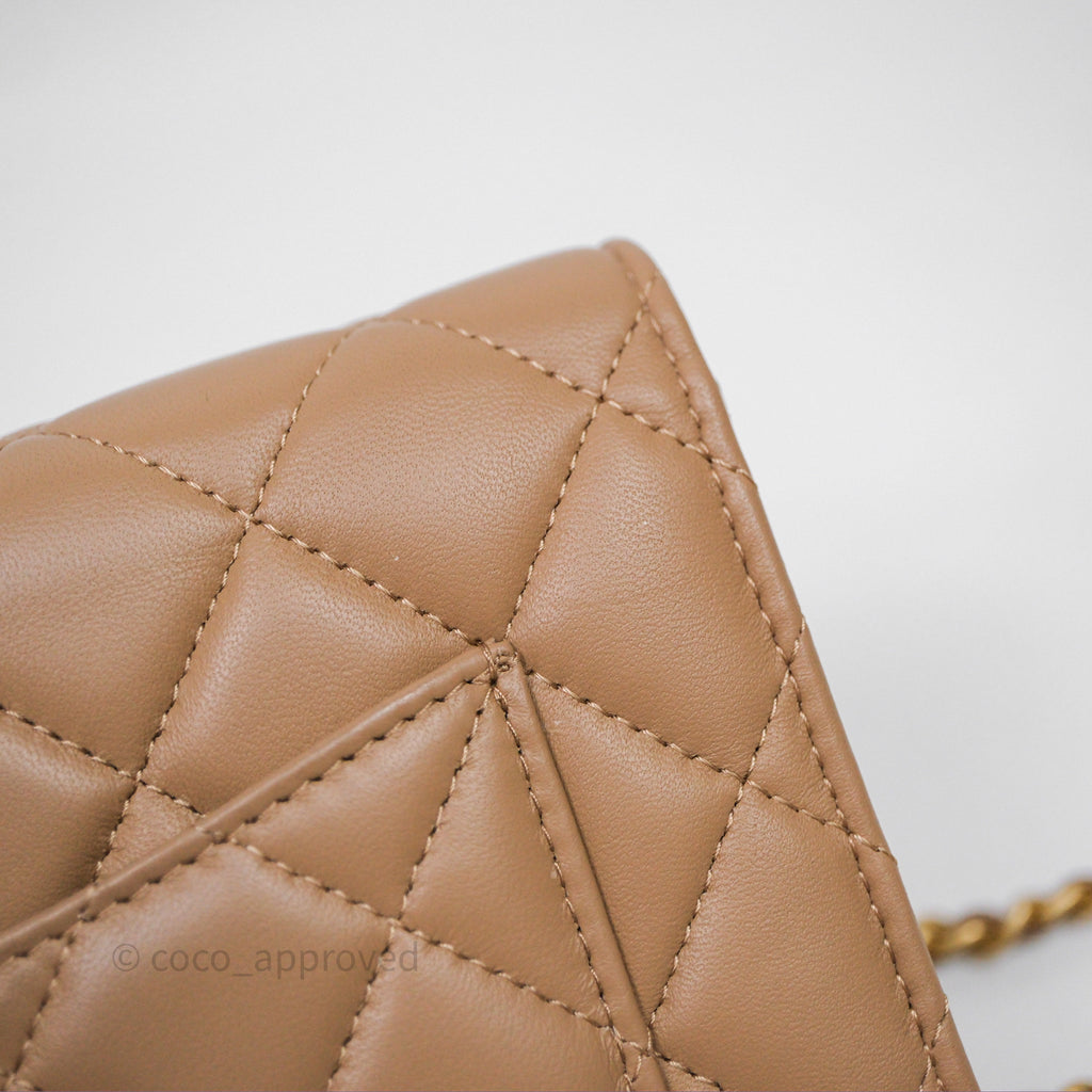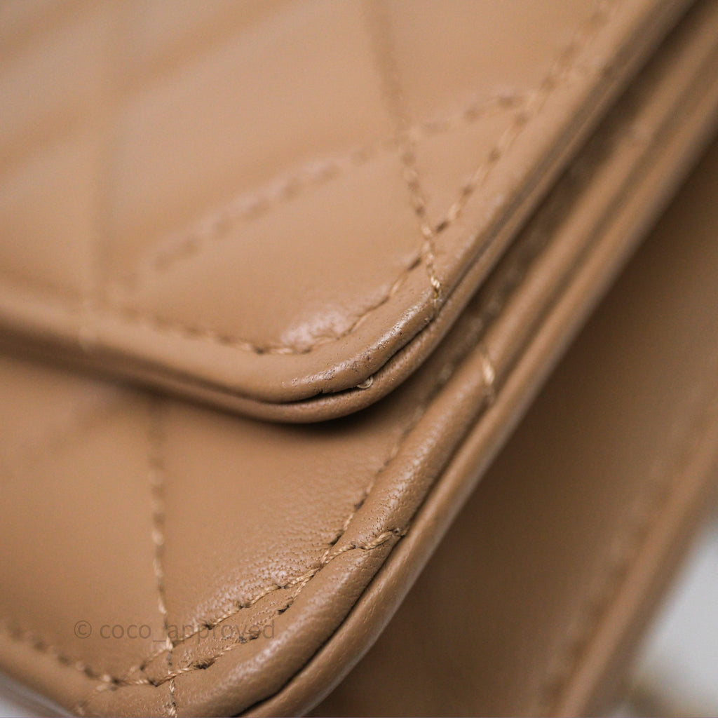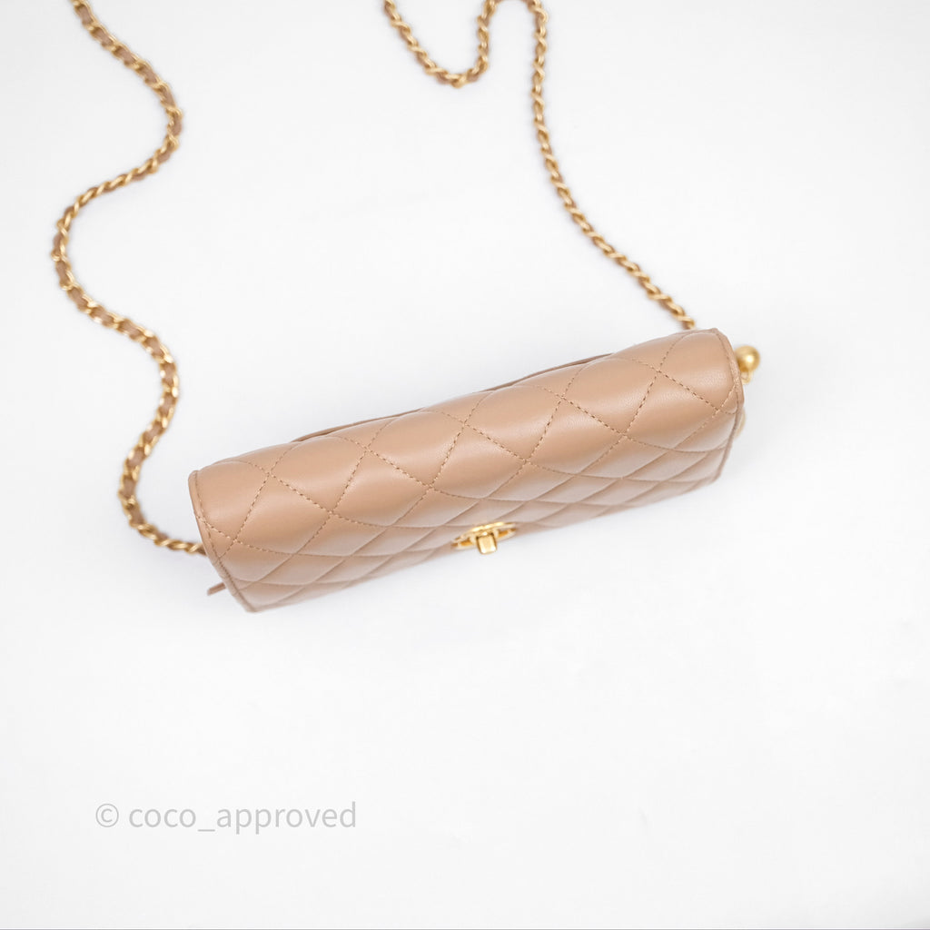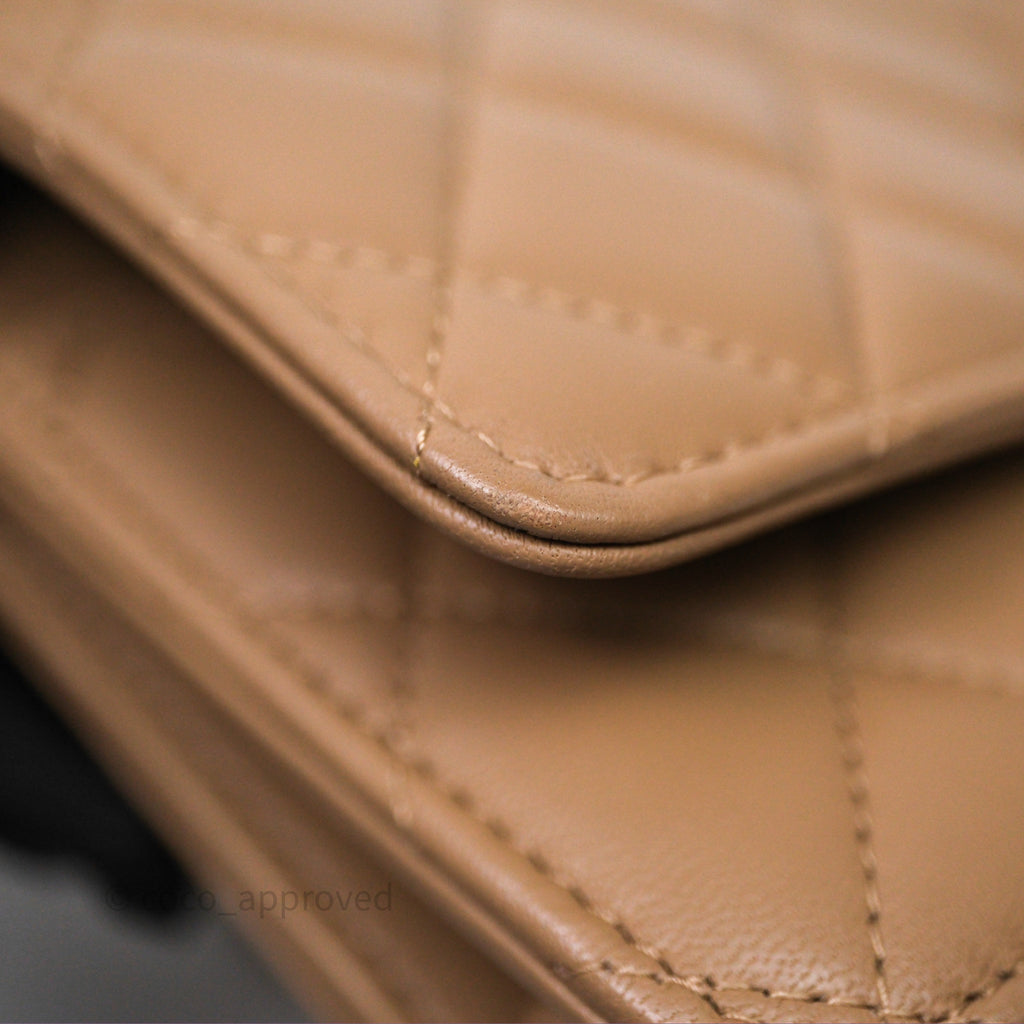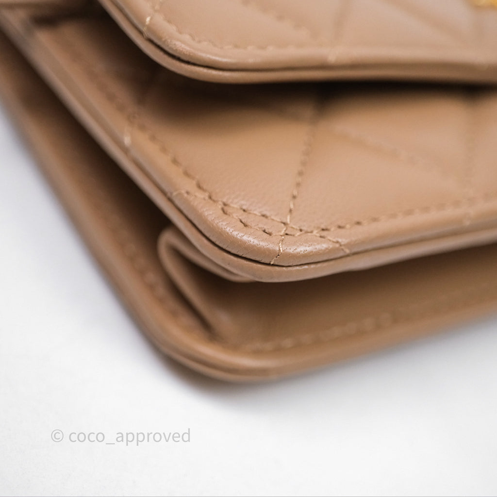 Chanel Pearl Crush Wallet on Chain WOC Quilted Beige Lambskin Aged Gold Hardware