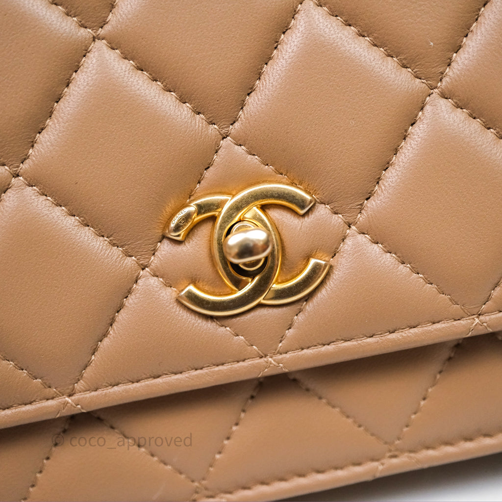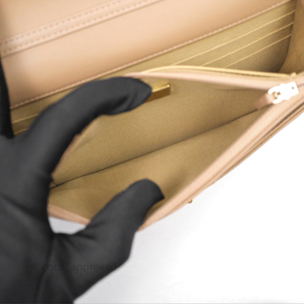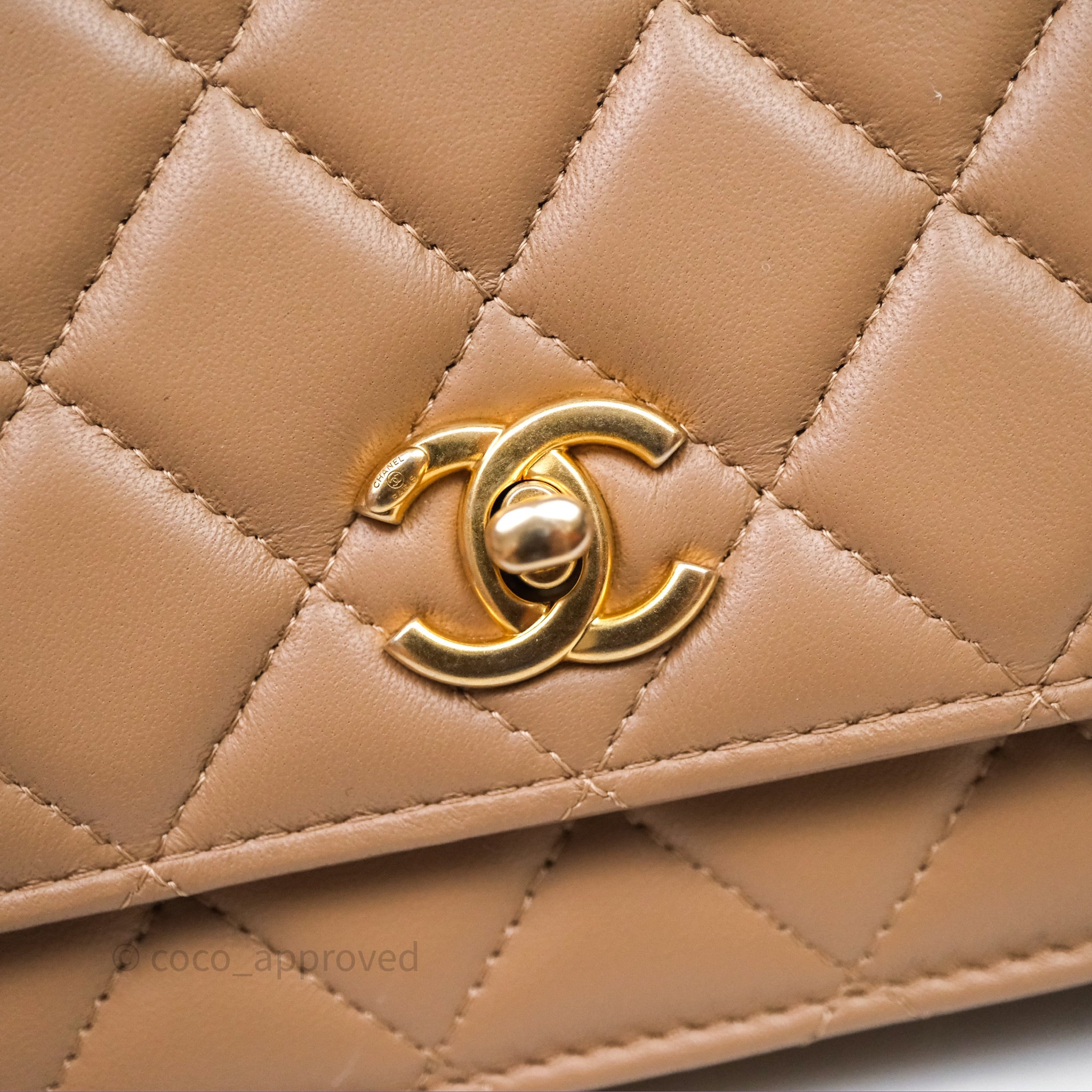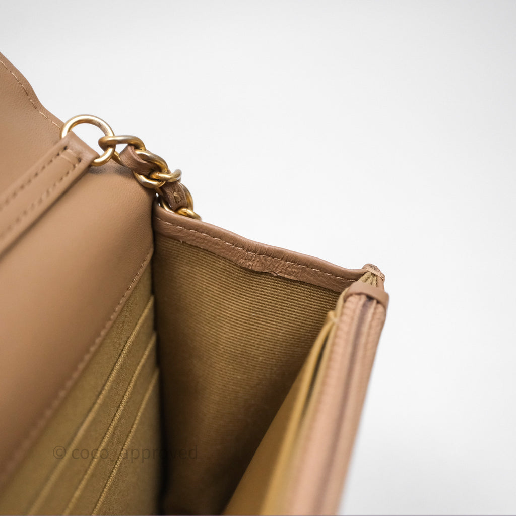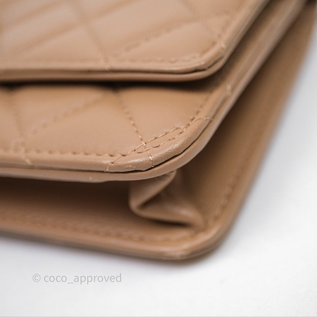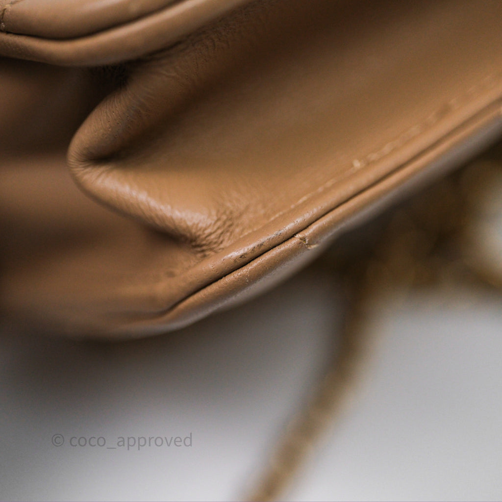 Chanel Pearl Crush Wallet on Chain WOC Quilted Beige Lambskin Aged Gold Hardware