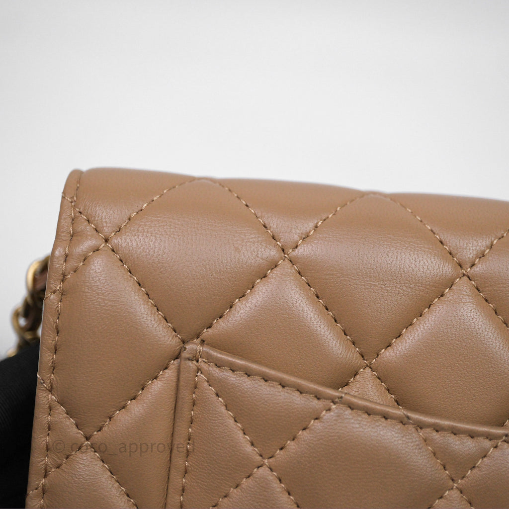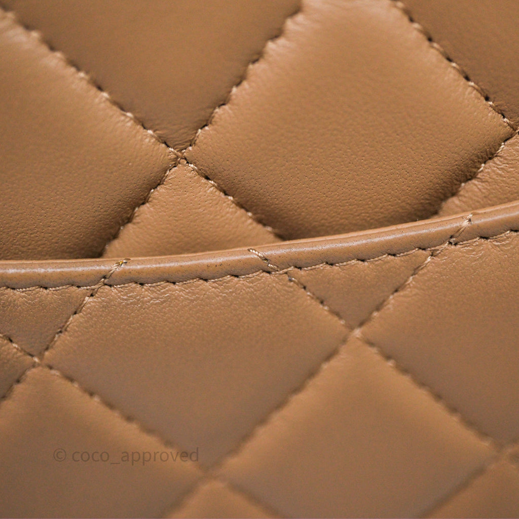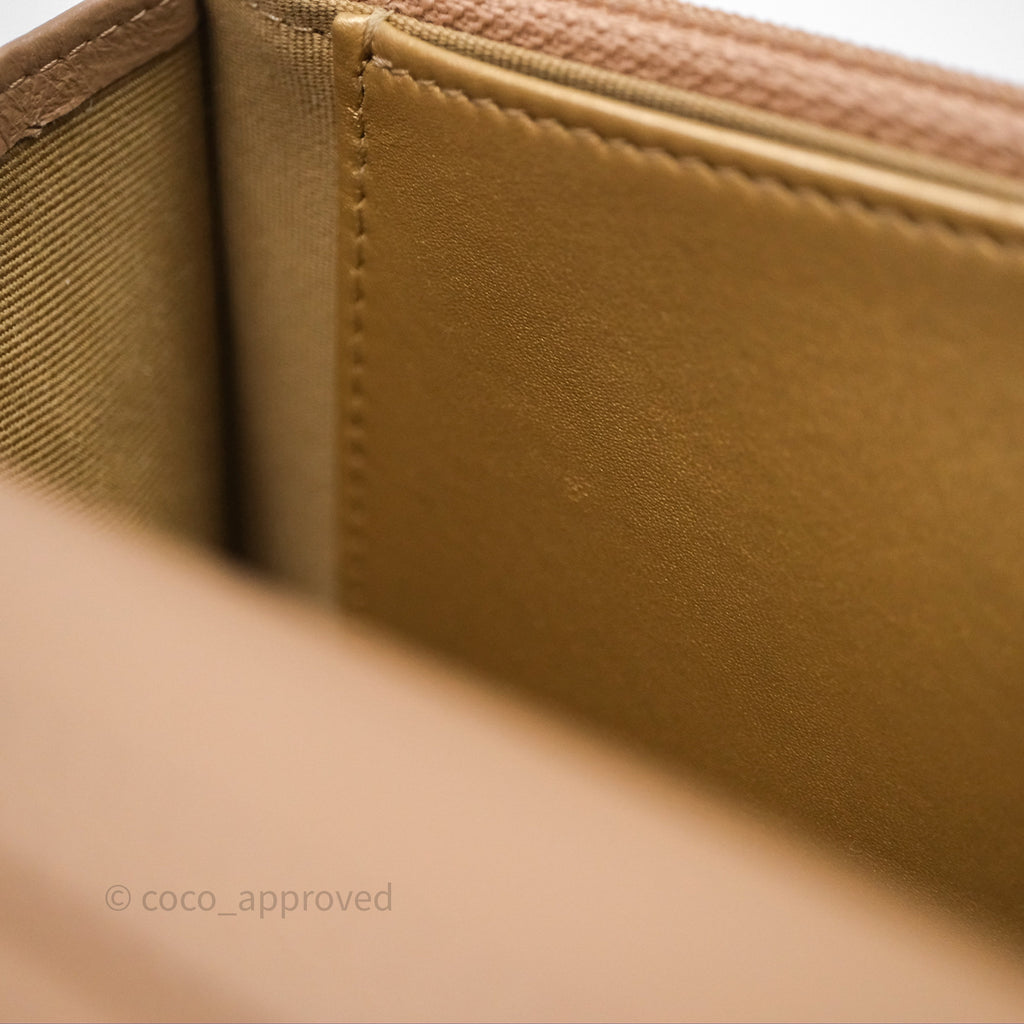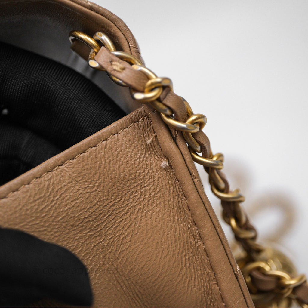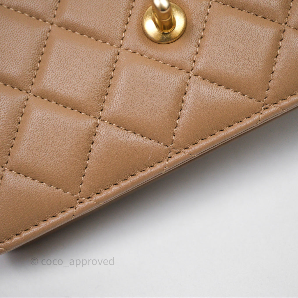 Chanel Pearl Crush Wallet on Chain WOC Quilted Beige Lambskin Aged Gold Hardware