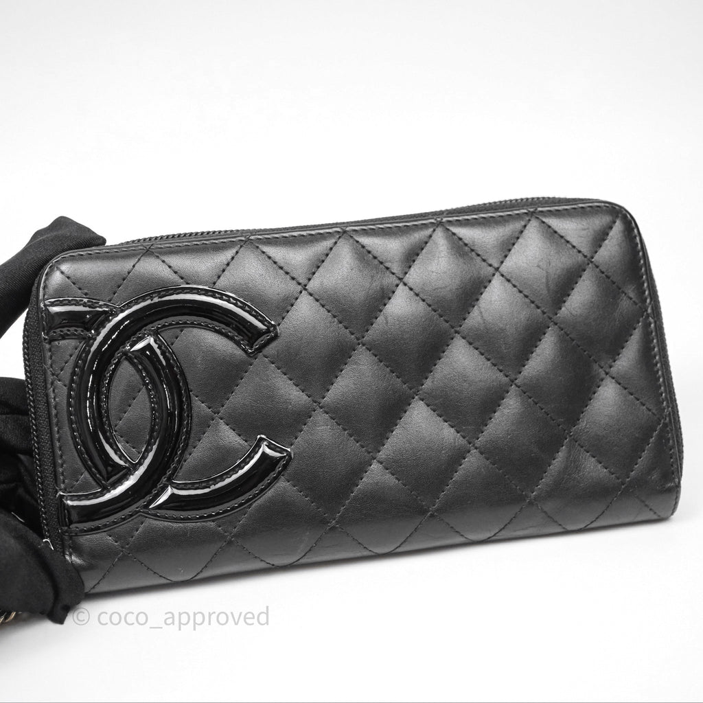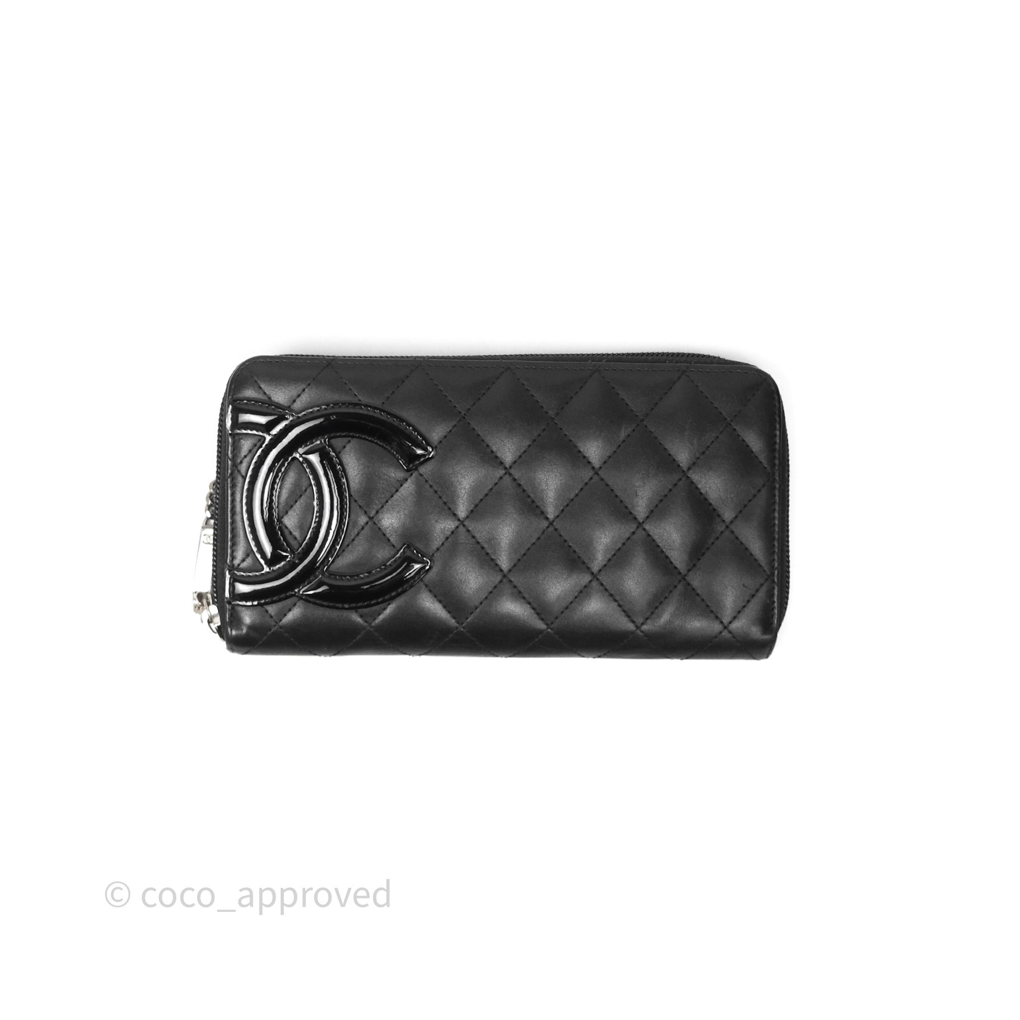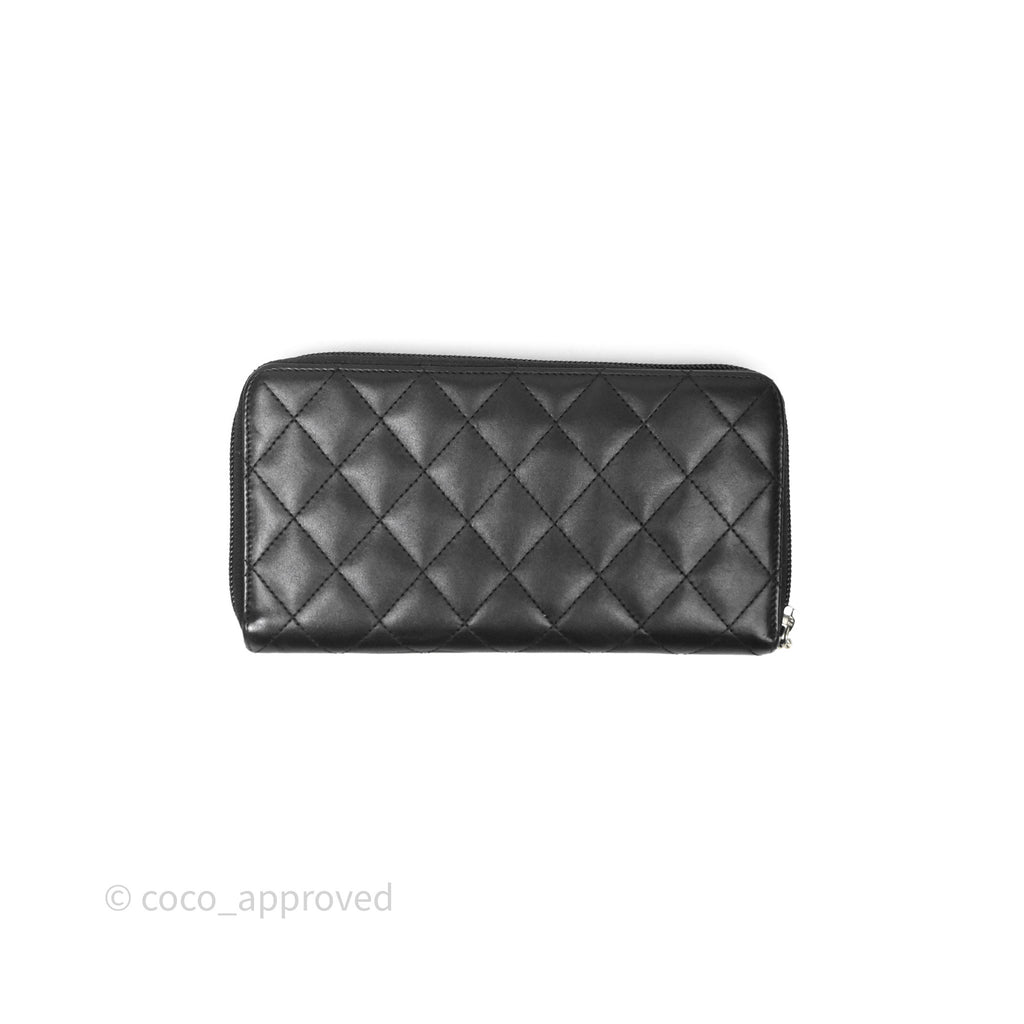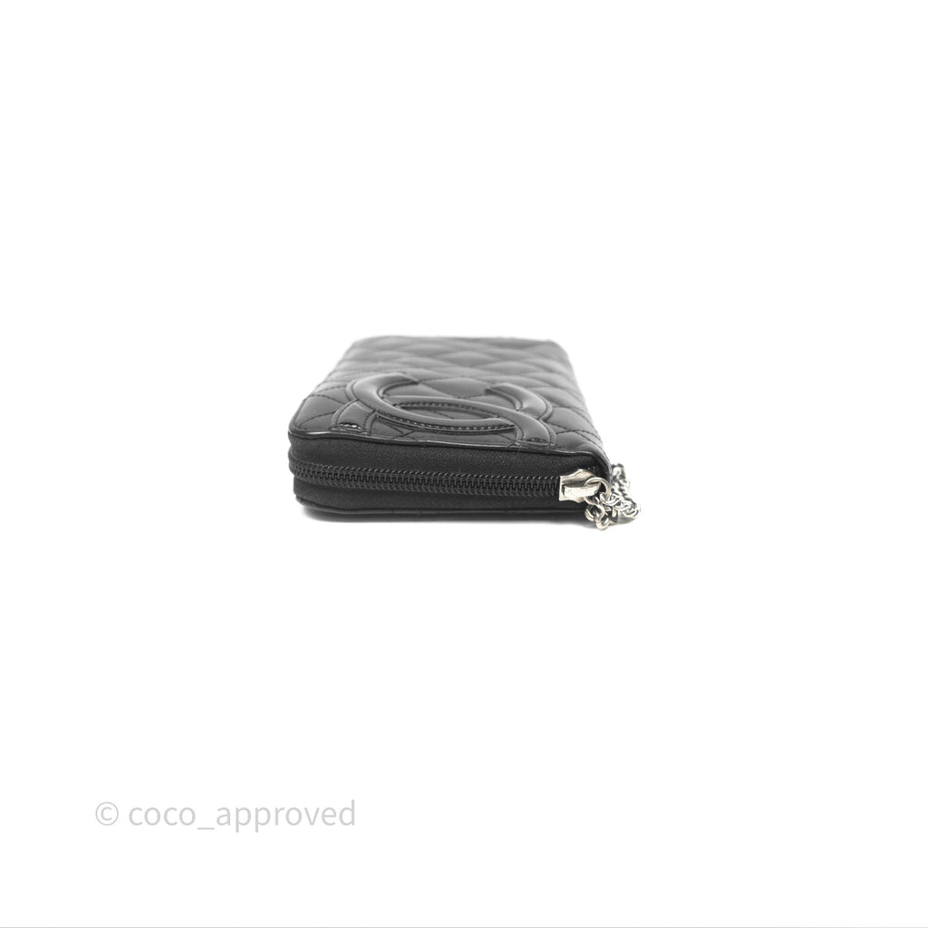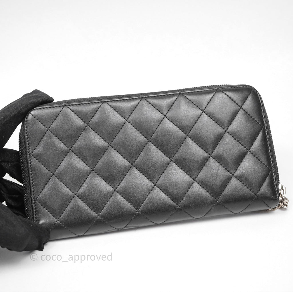 Chanel Quilted Cambon Yen Zip Long Wallet Black Calfskin Silver Hardware