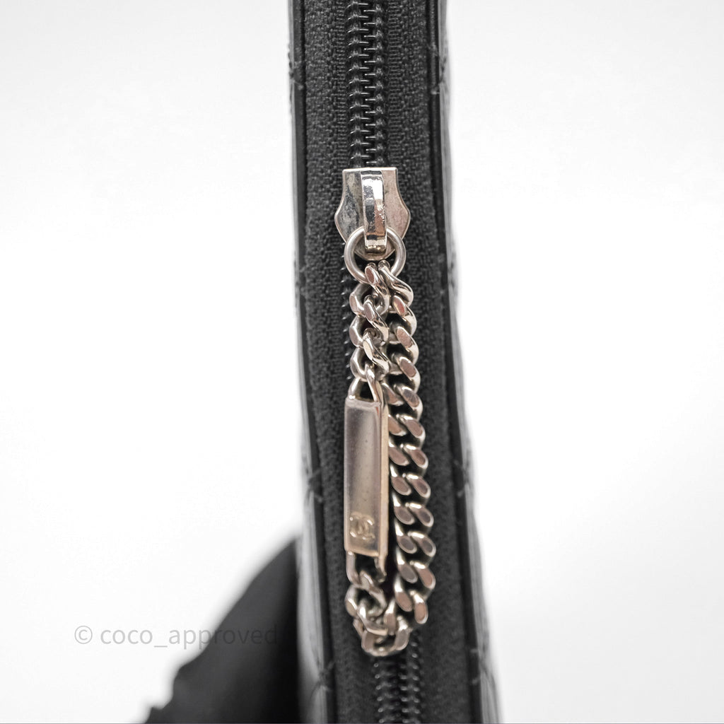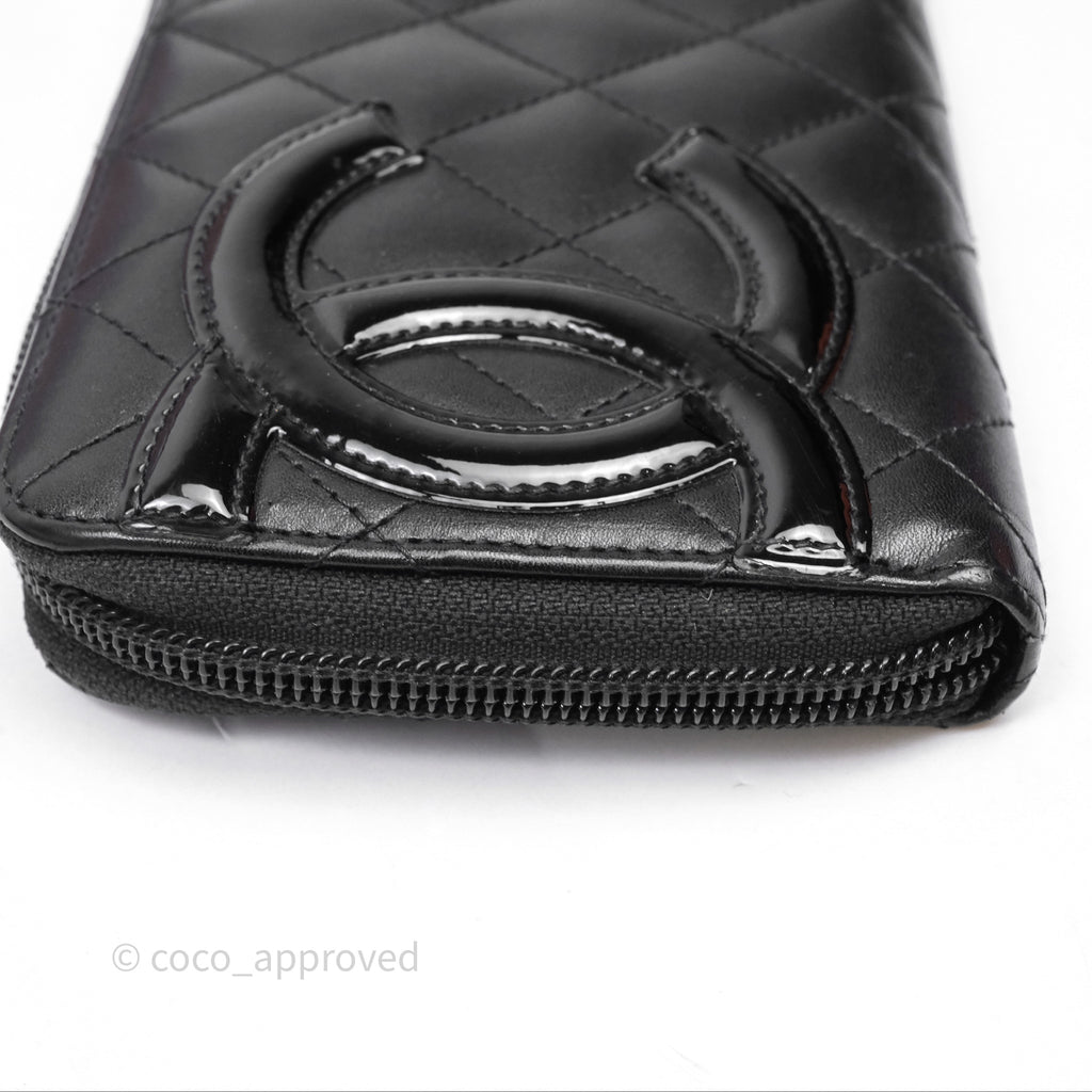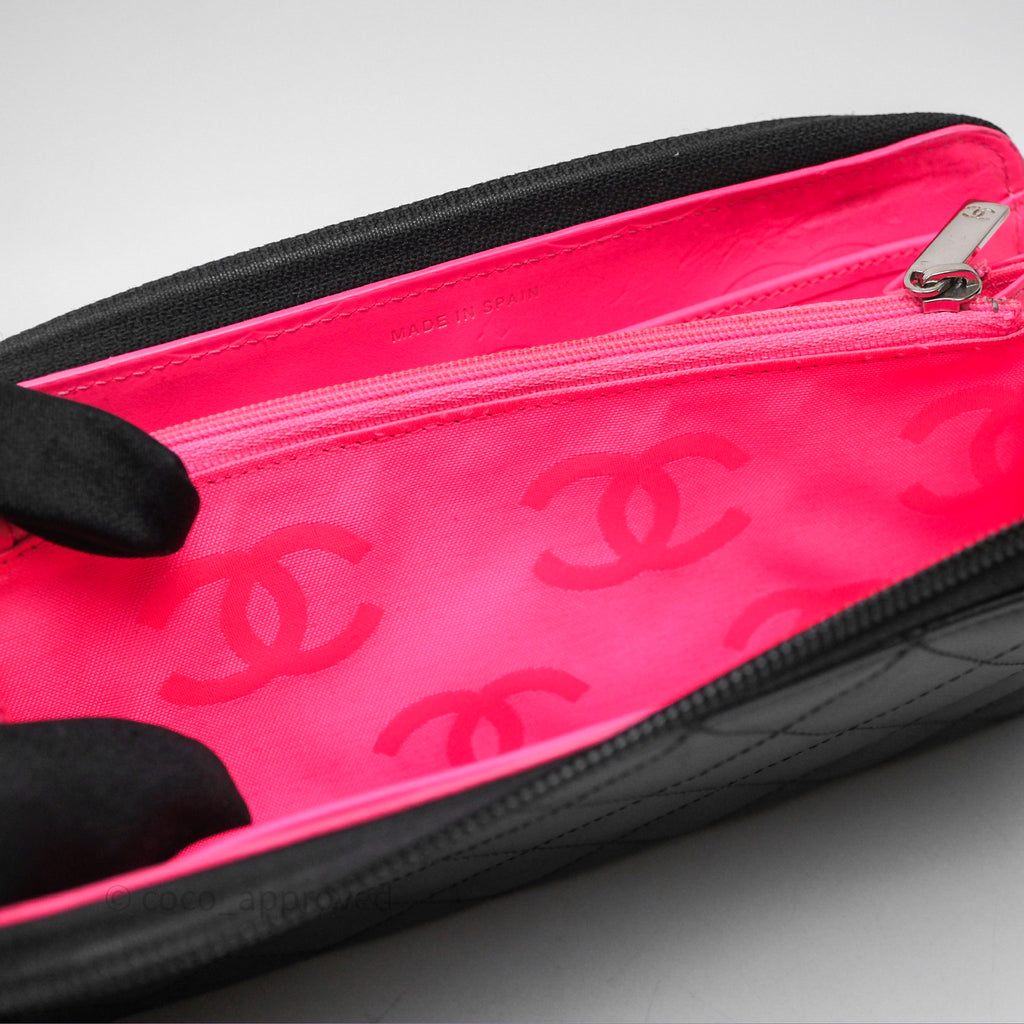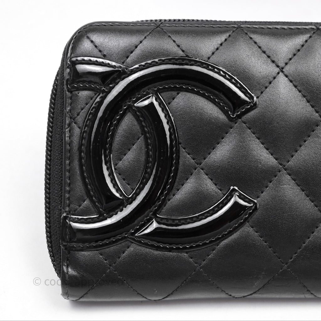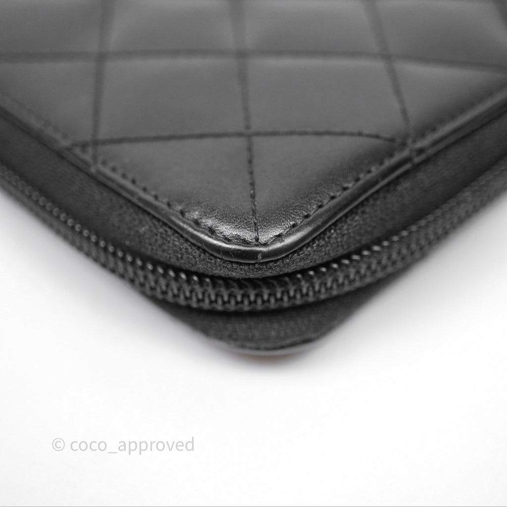 Chanel Quilted Cambon Yen Zip Long Wallet Black Calfskin Silver Hardware
