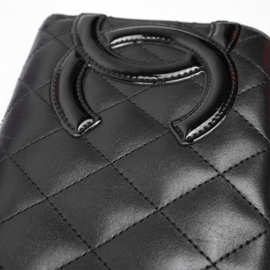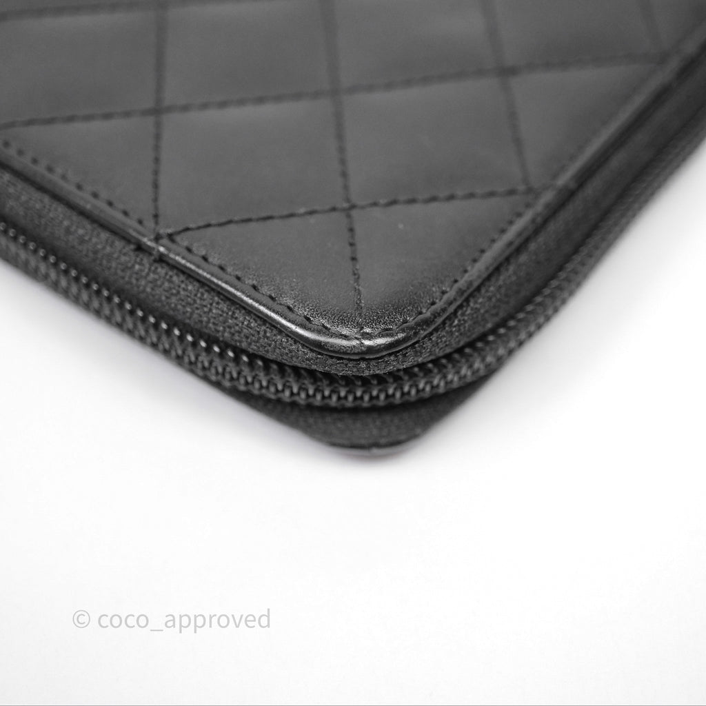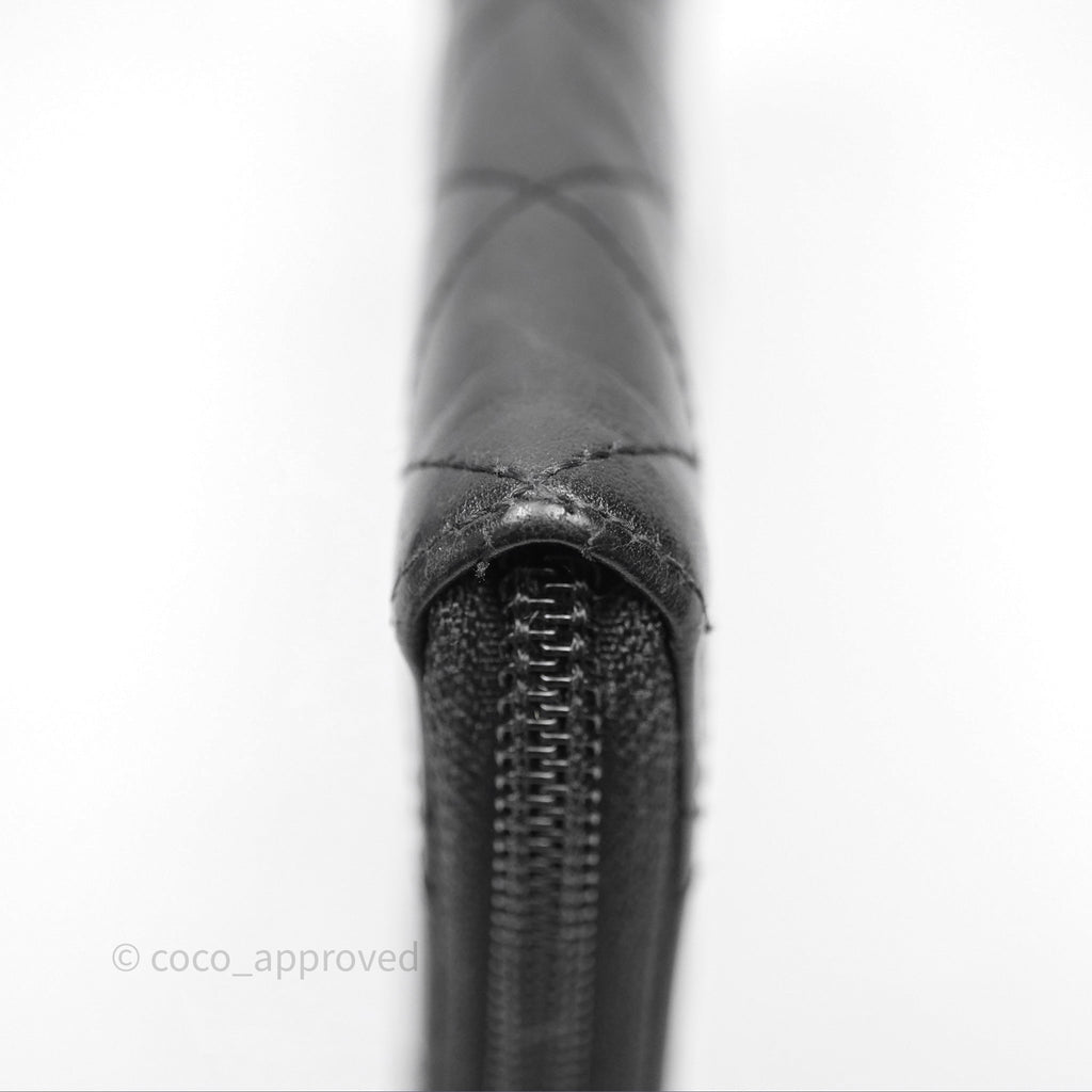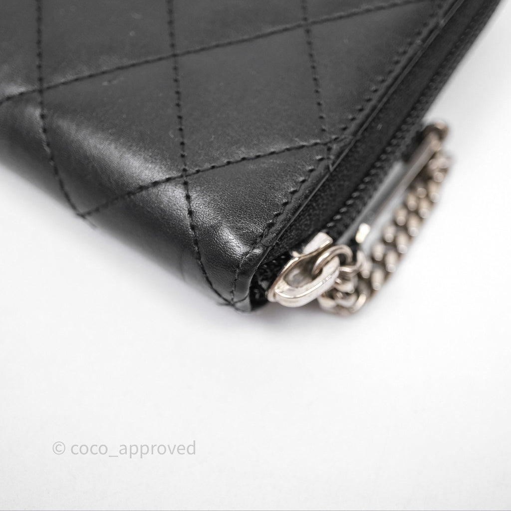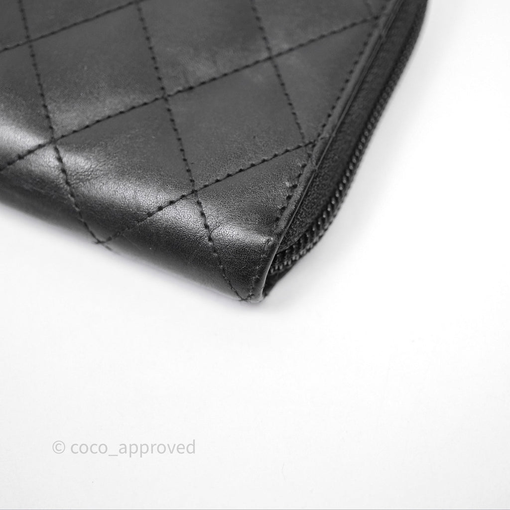 Chanel Quilted Cambon Yen Zip Long Wallet Black Calfskin Silver Hardware