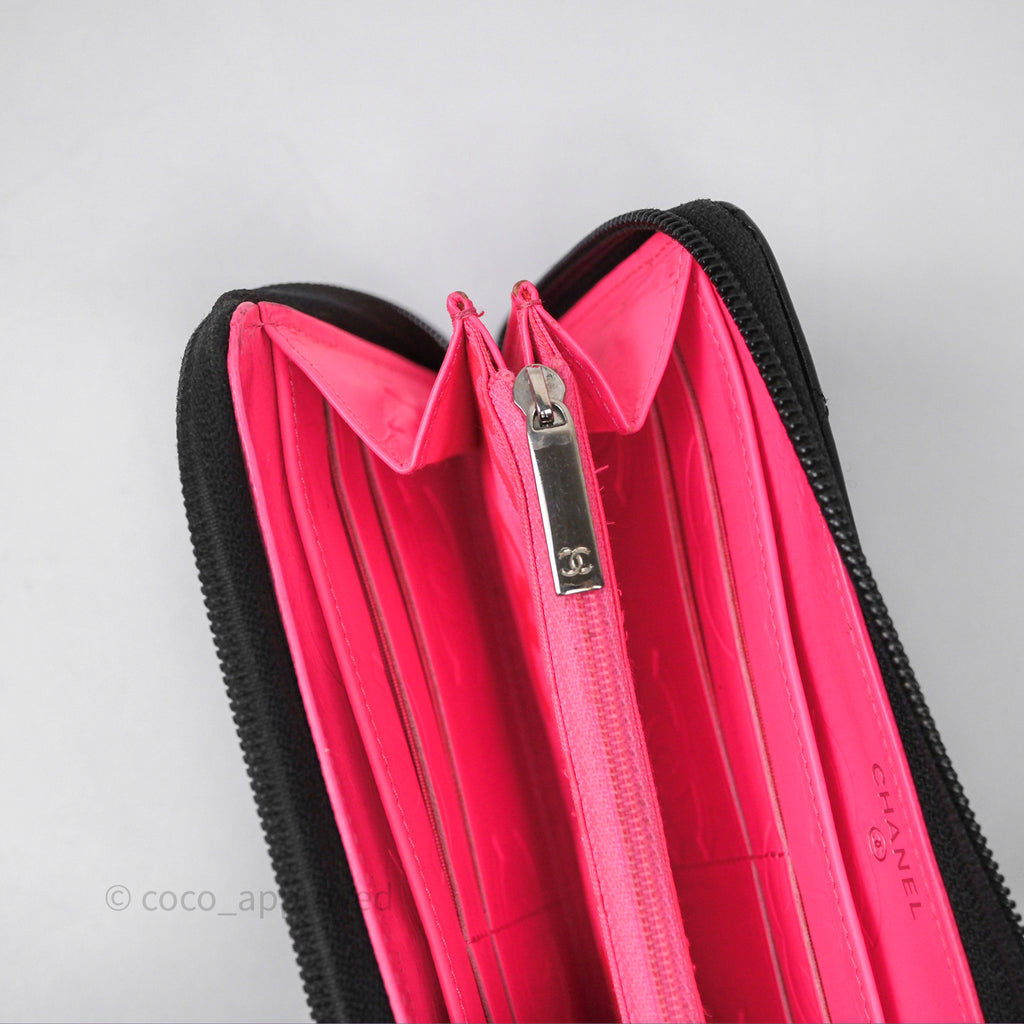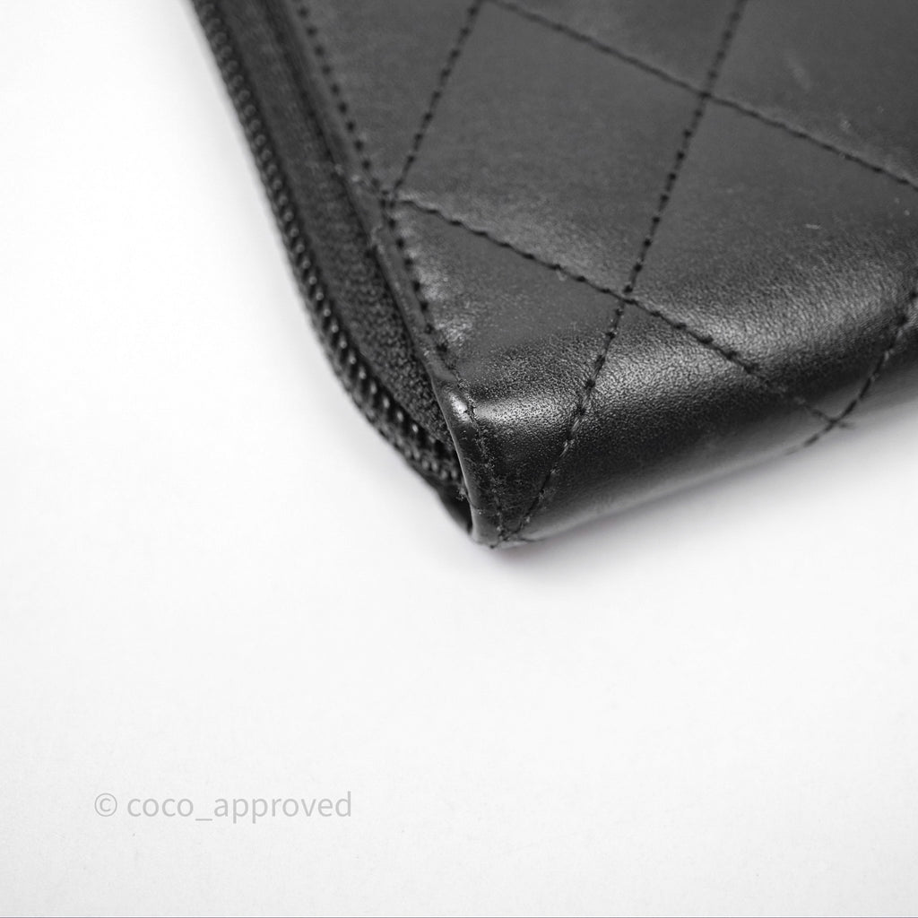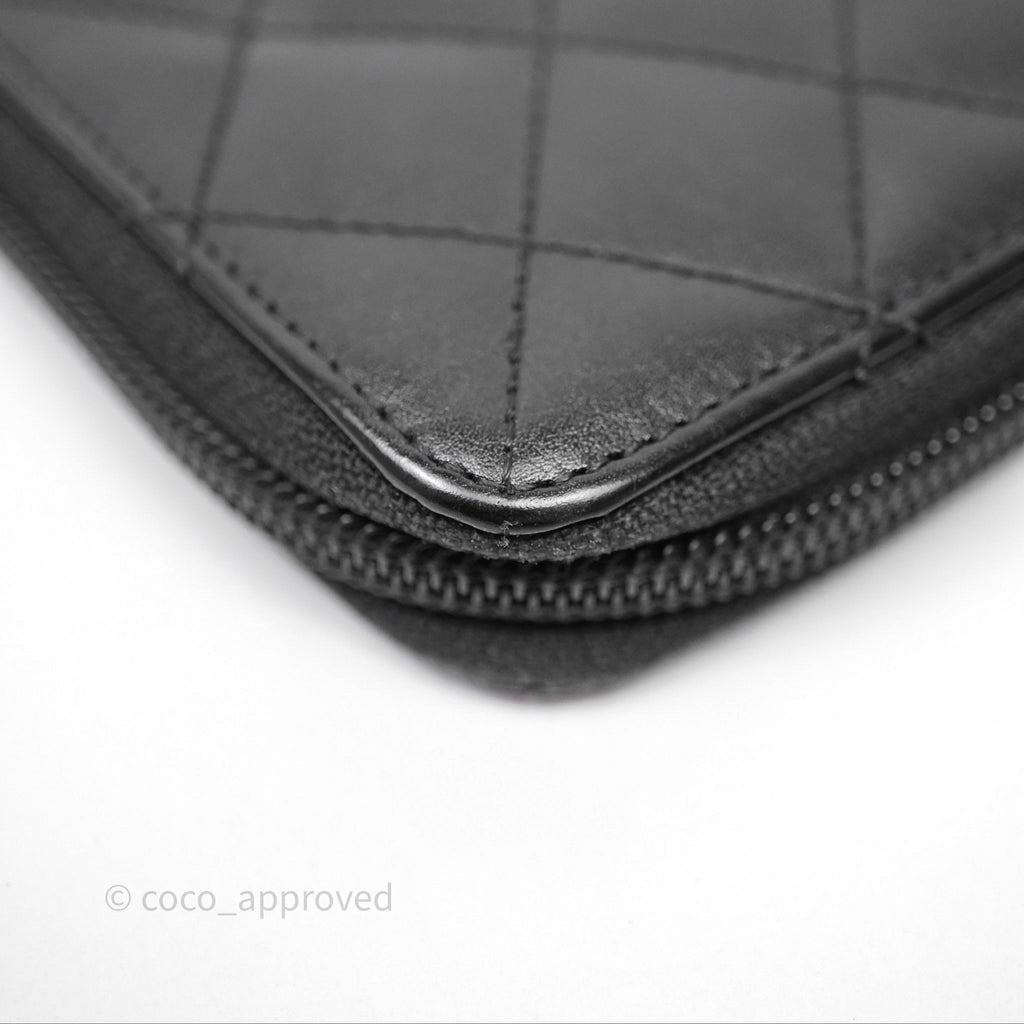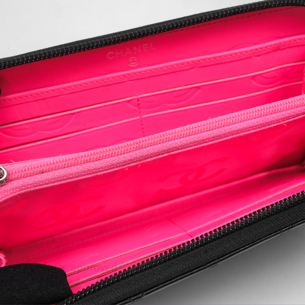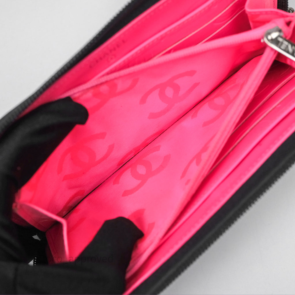 Chanel Quilted Cambon Yen Zip Long Wallet Black Calfskin Silver Hardware