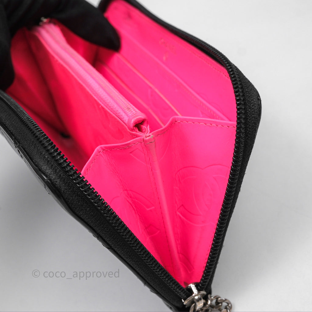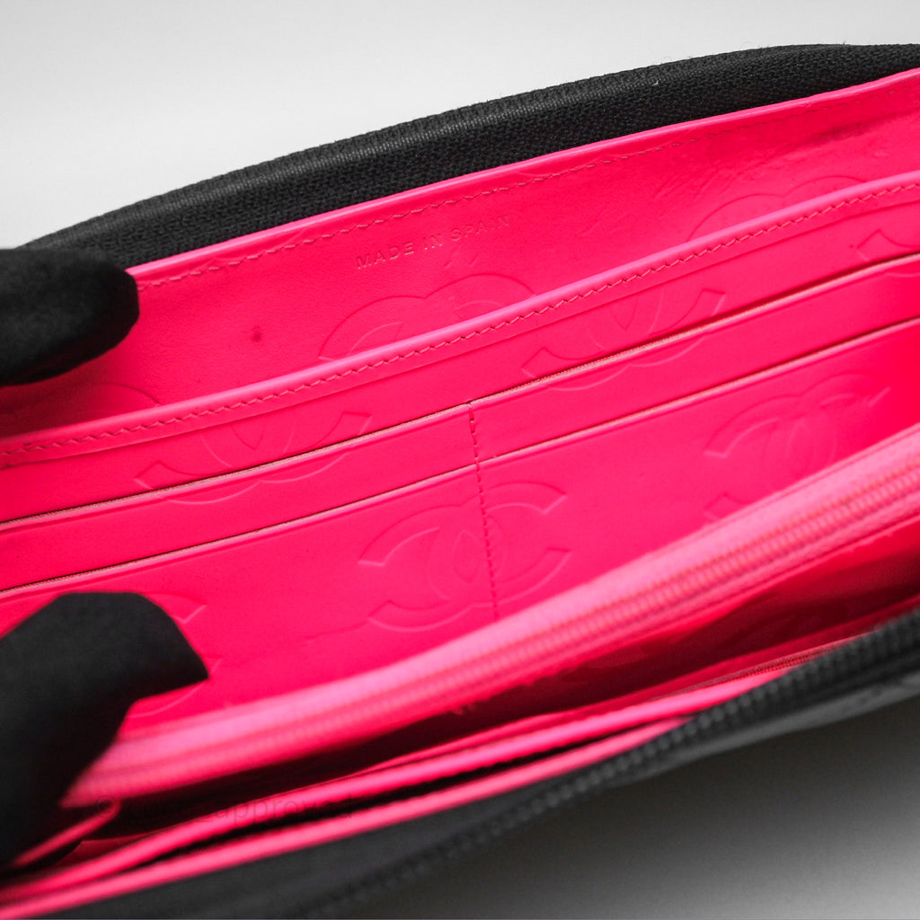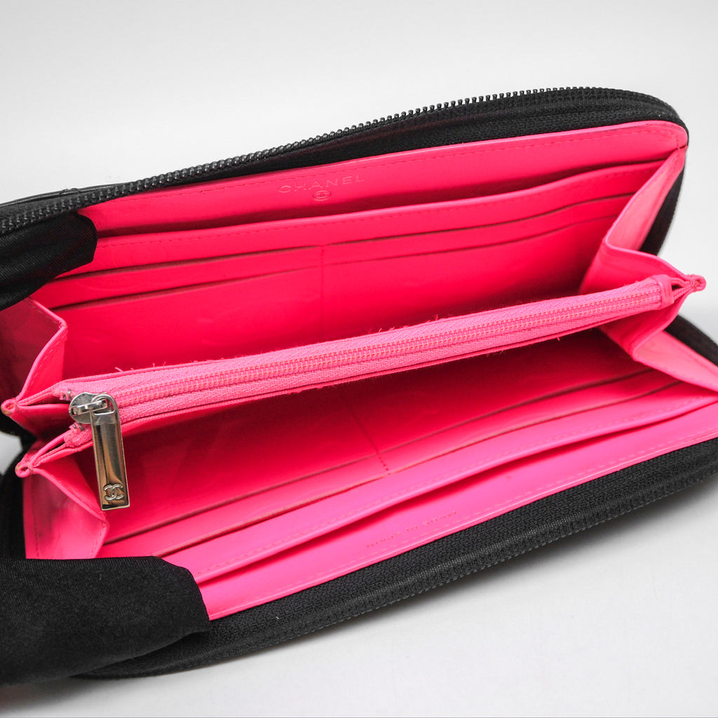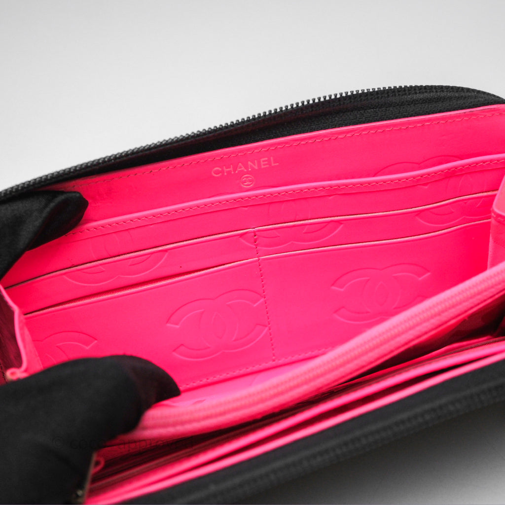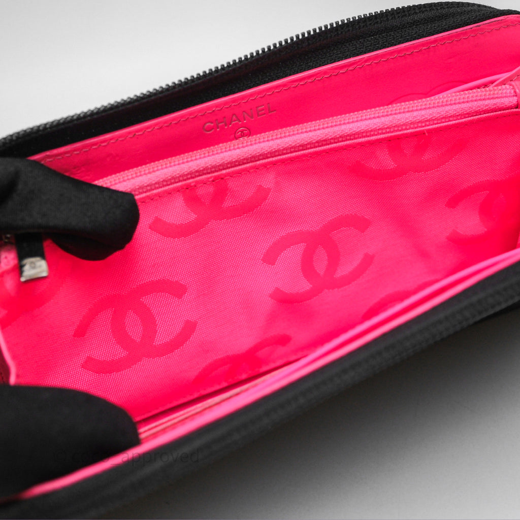 Chanel Quilted Cambon Yen Zip Long Wallet Black Calfskin Silver Hardware
