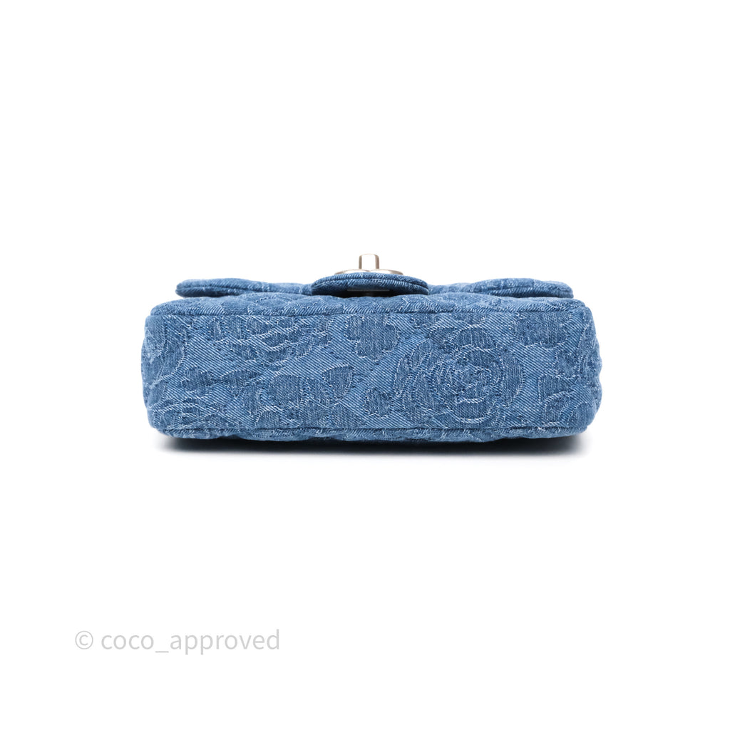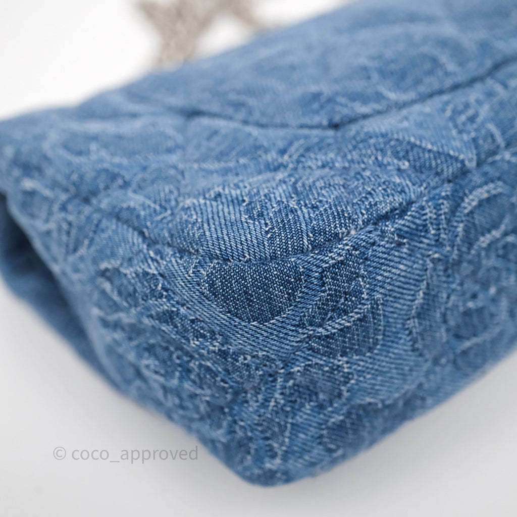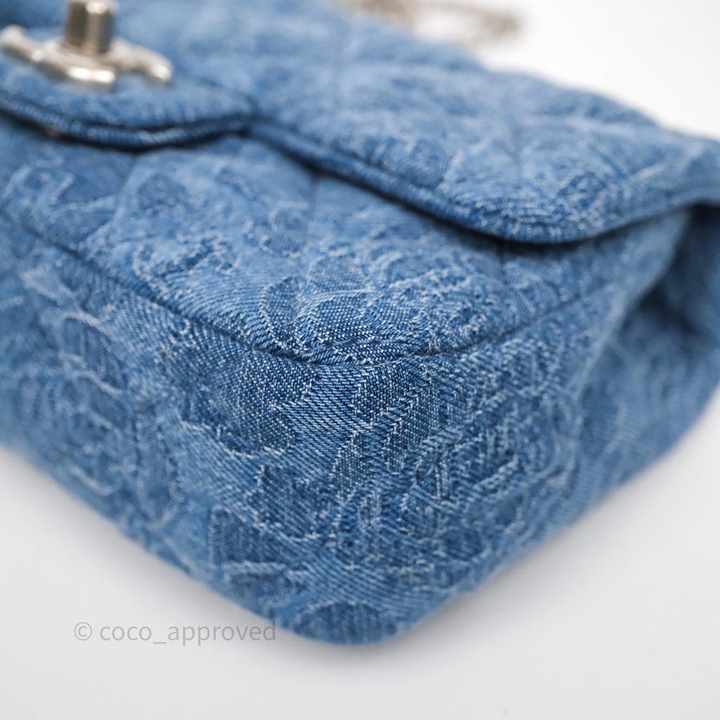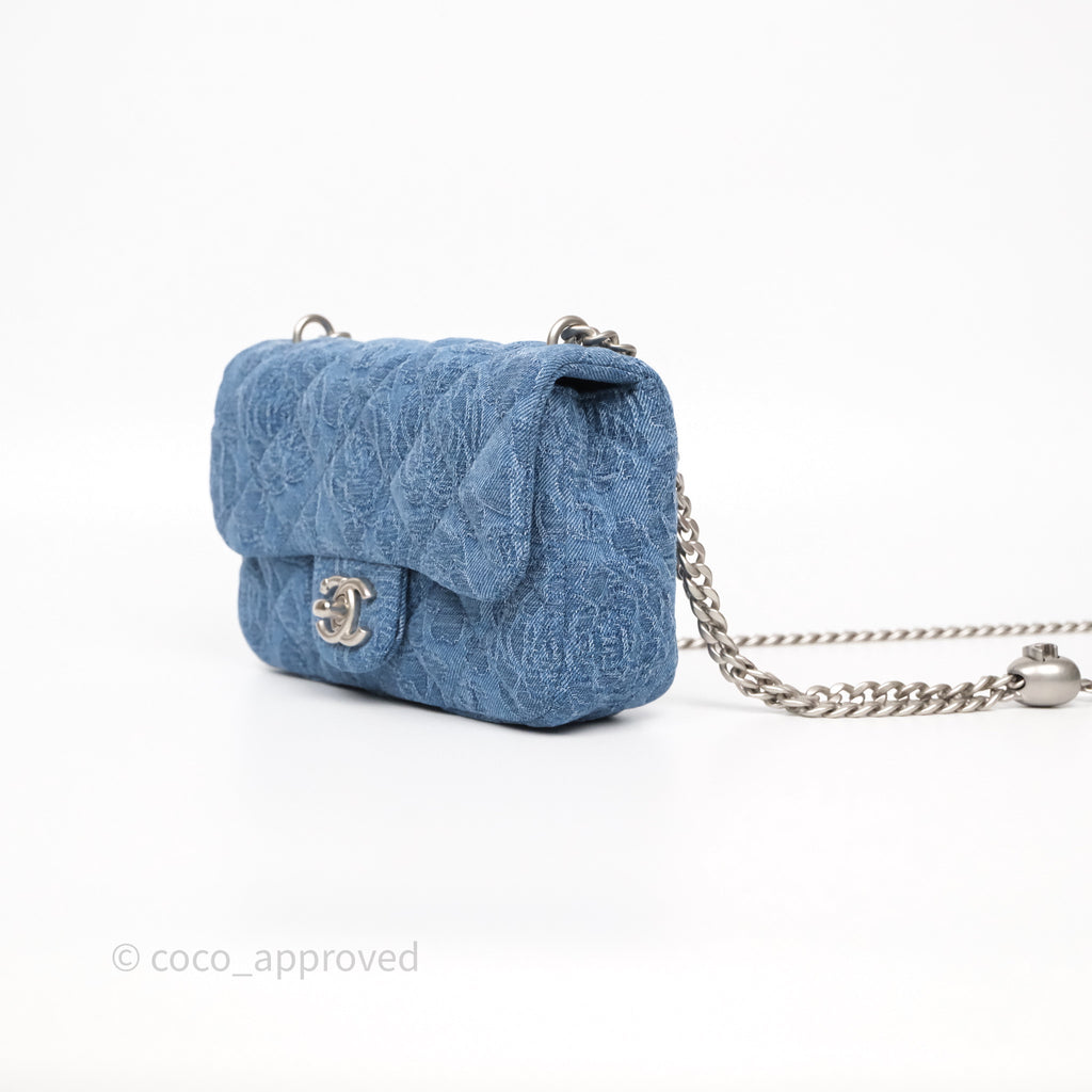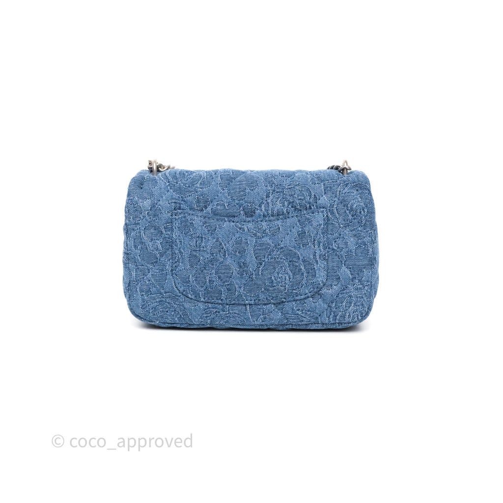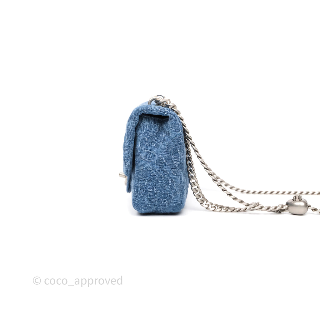 Chanel Quilted Camellia Printed Heart Crush Mini Flap Bag Blue Denim Aged Silver Hardware