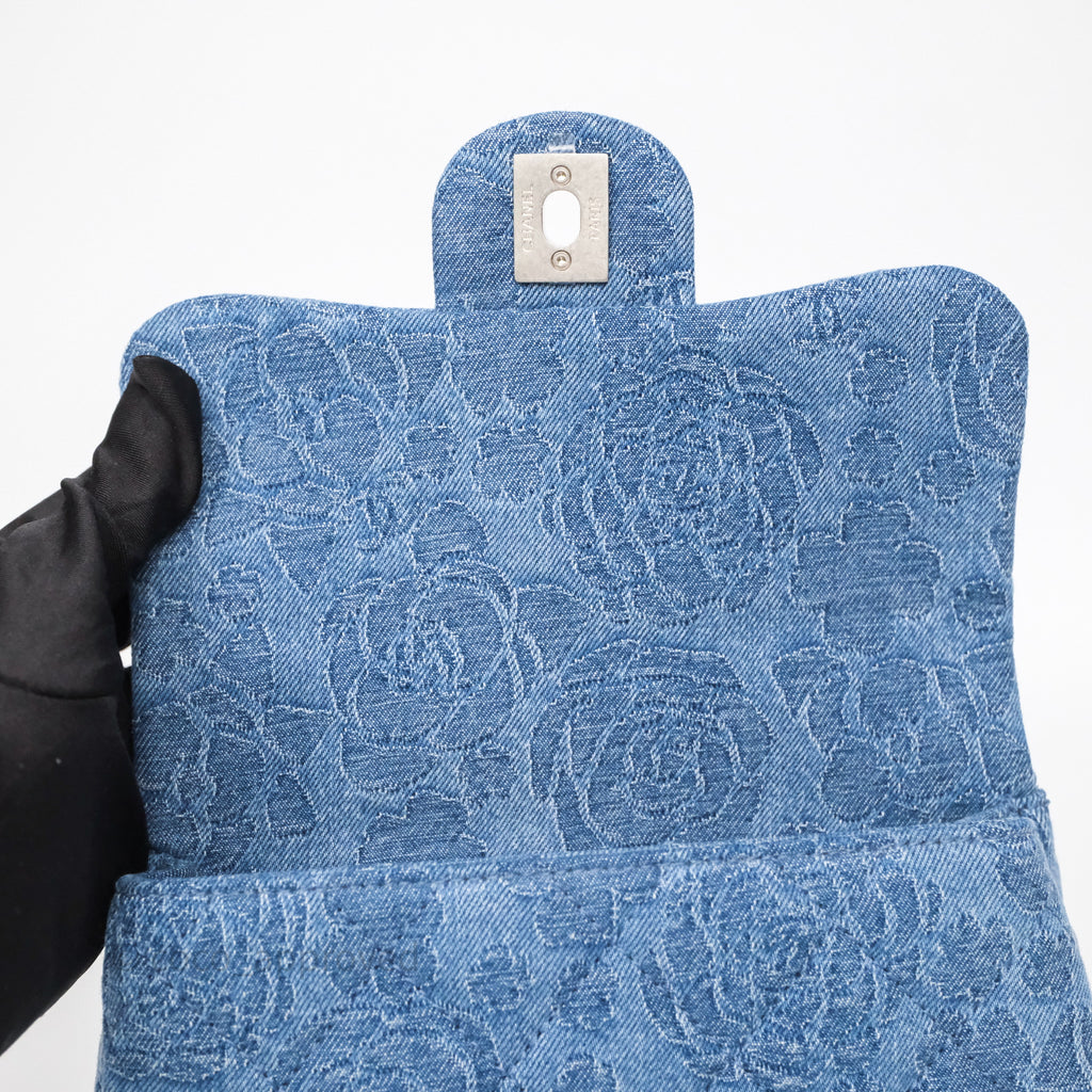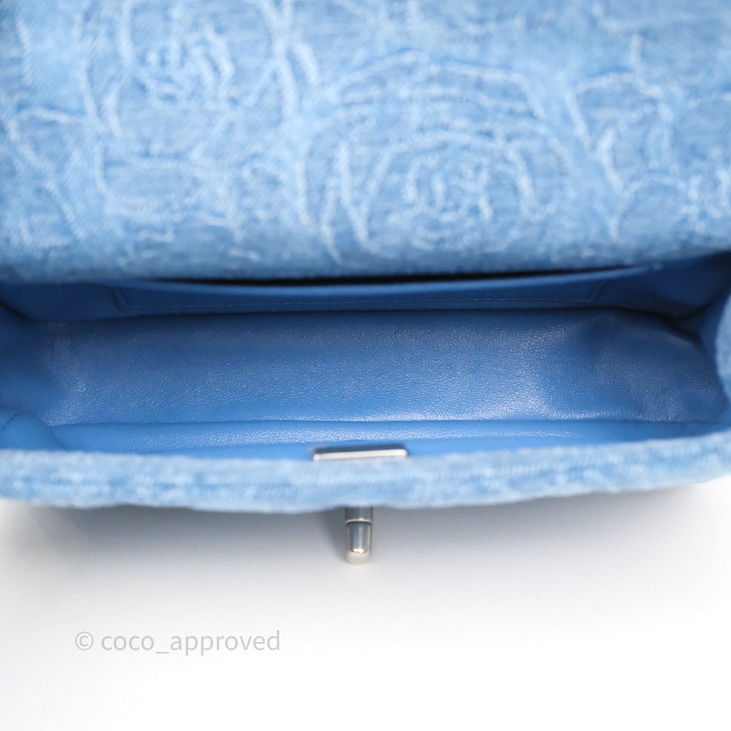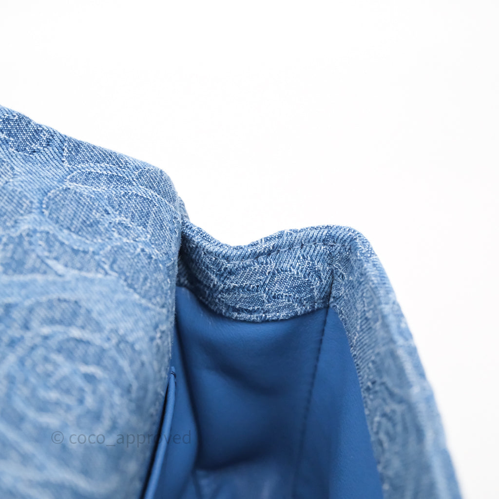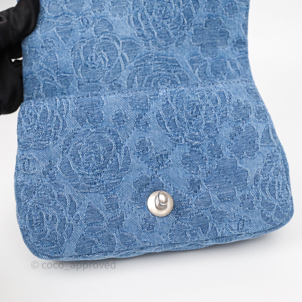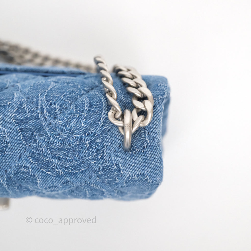 Chanel Quilted Camellia Printed Heart Crush Mini Flap Bag Blue Denim Aged Silver Hardware