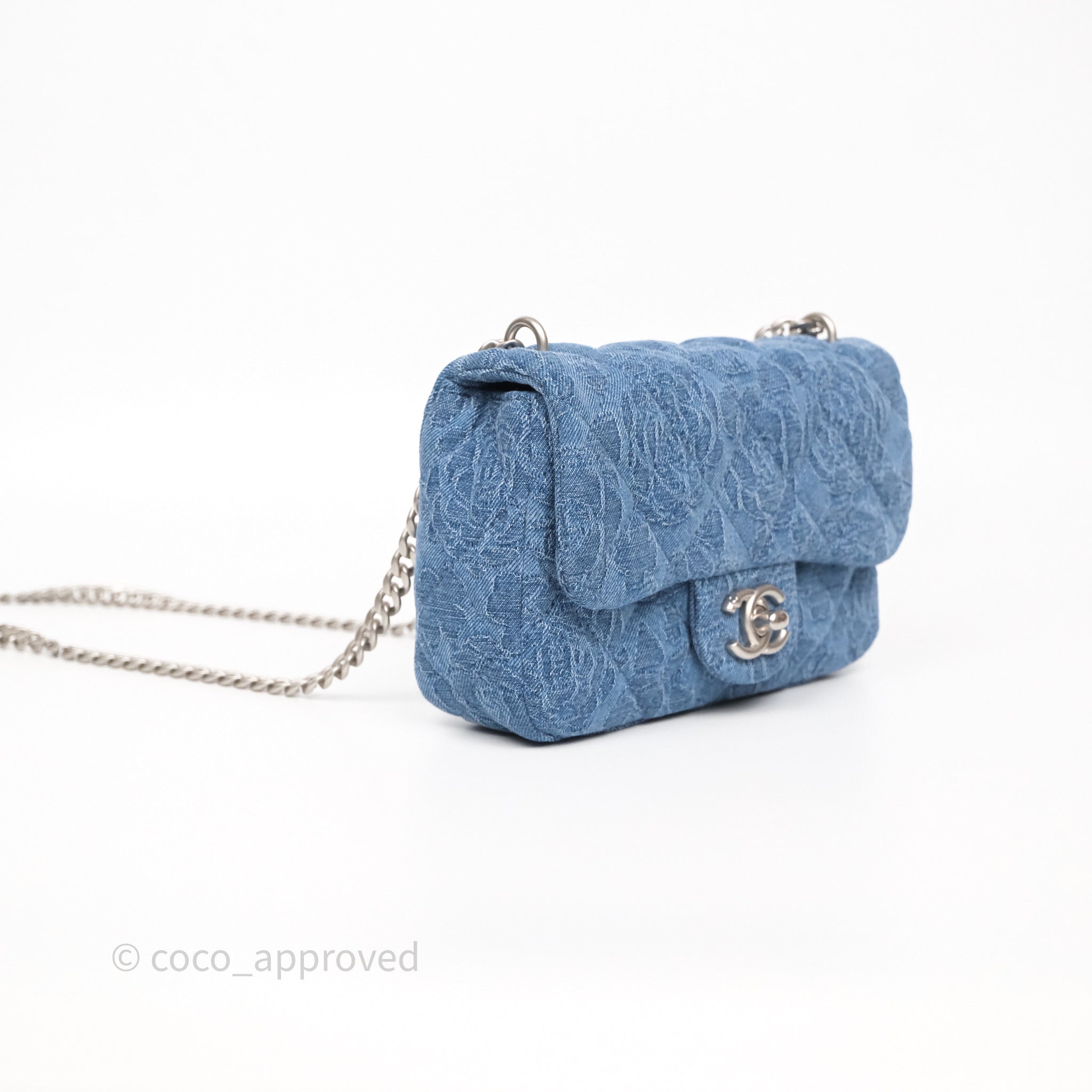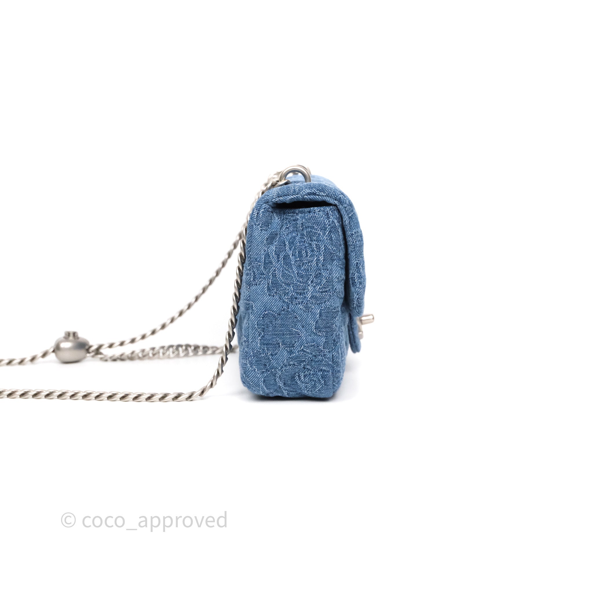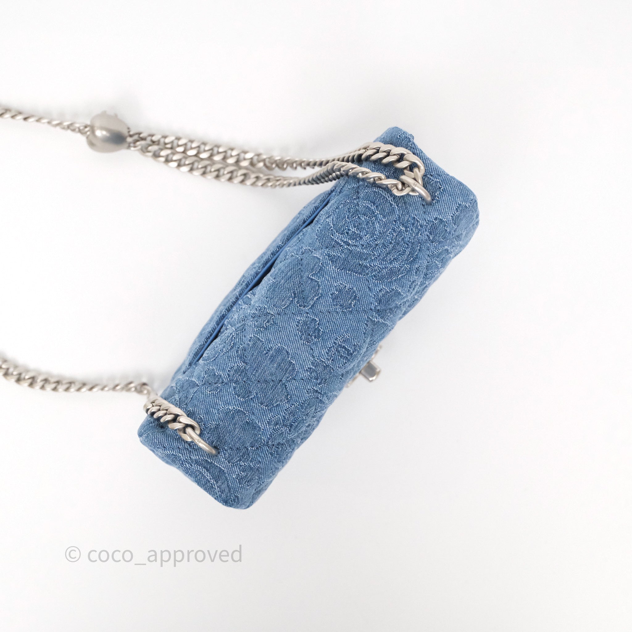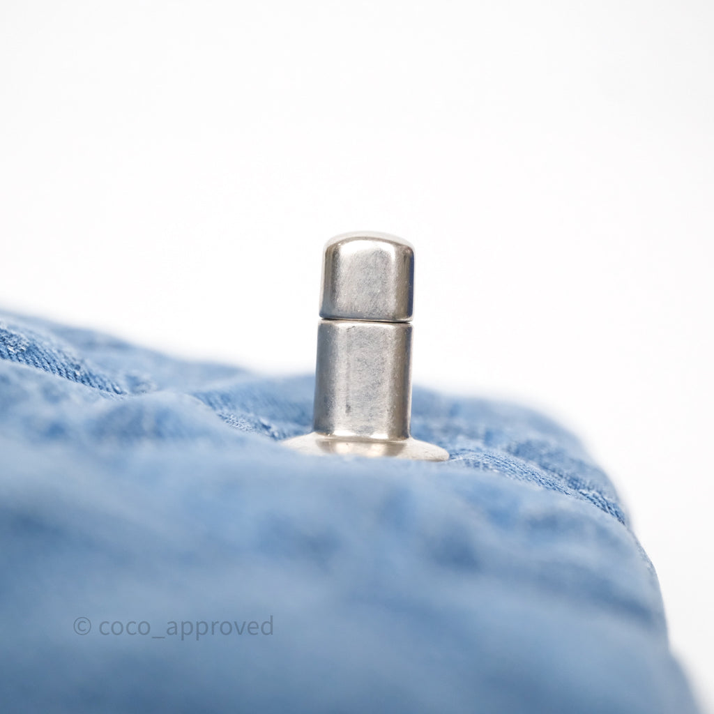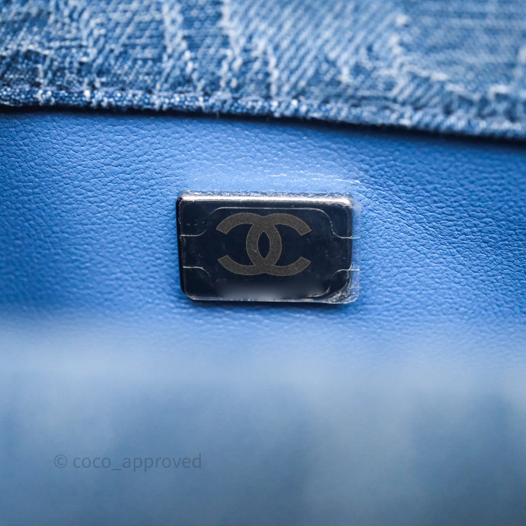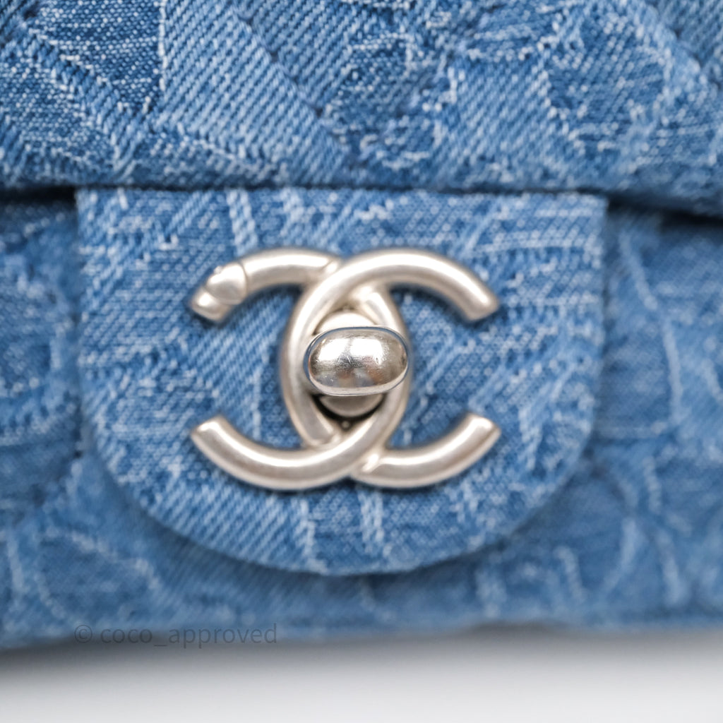 Chanel Quilted Camellia Printed Heart Crush Mini Flap Bag Blue Denim Aged Silver Hardware