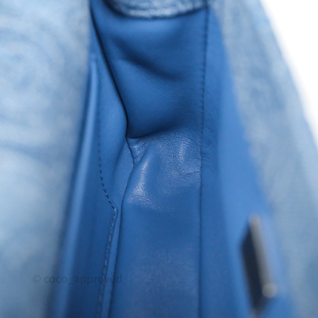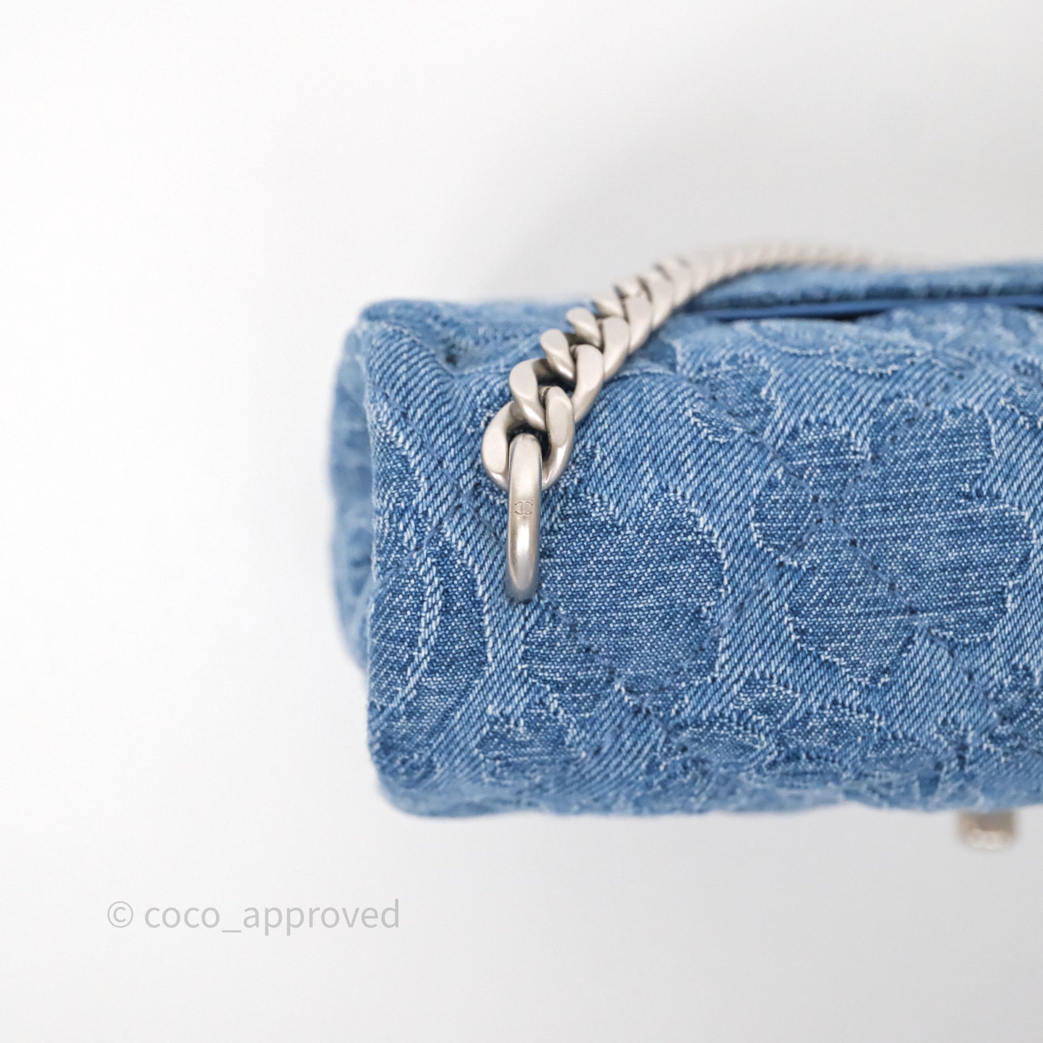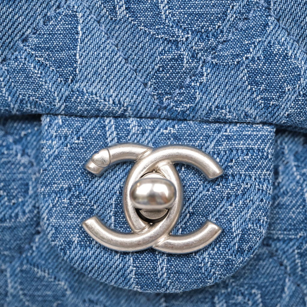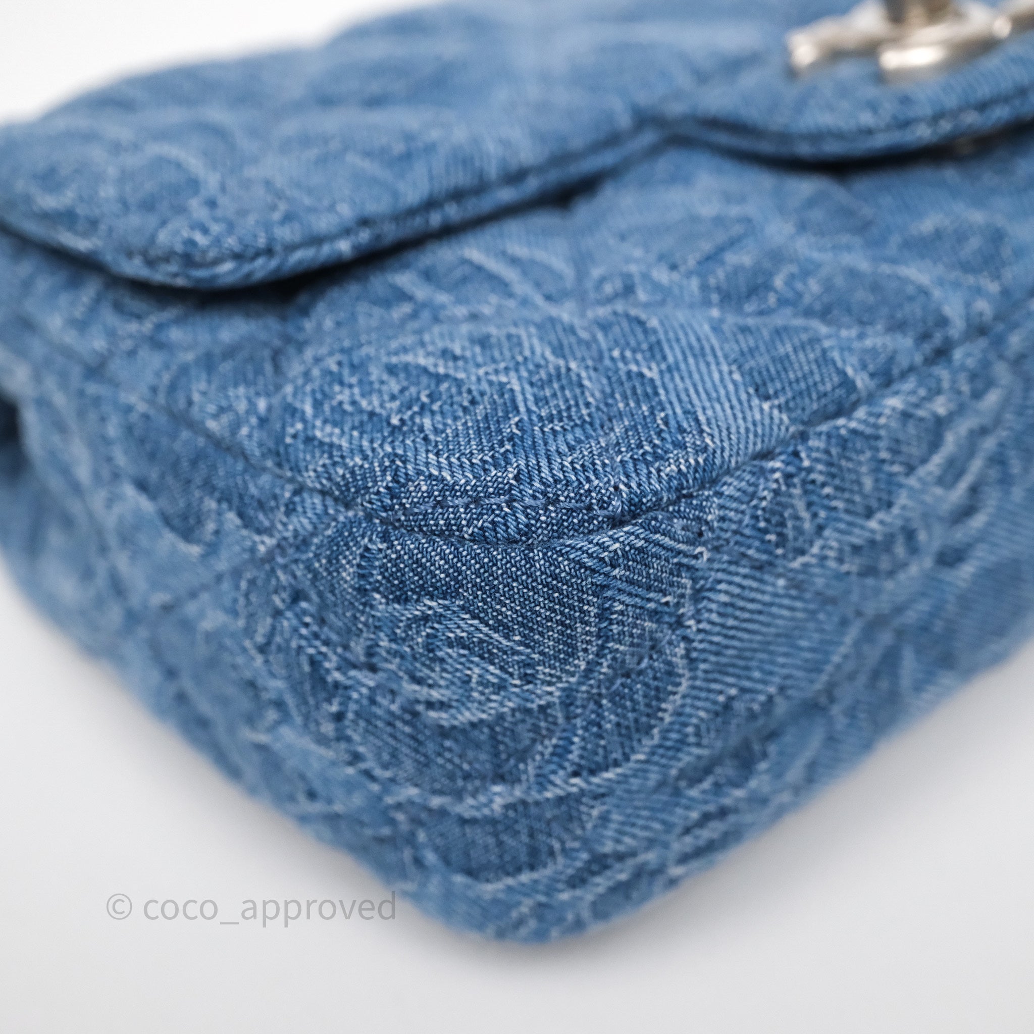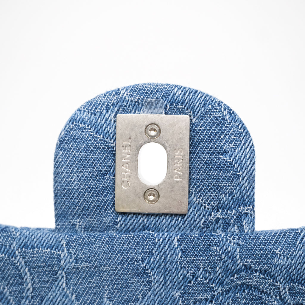 Chanel Quilted Camellia Printed Heart Crush Mini Flap Bag Blue Denim Aged Silver Hardware