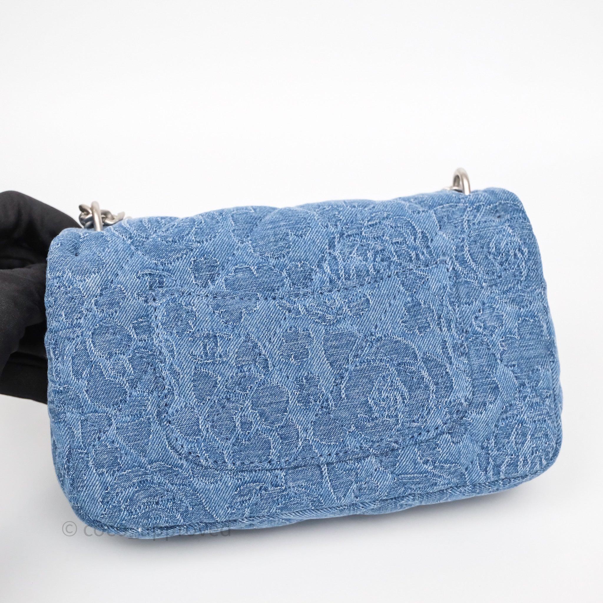Chanel Quilted Camellia Printed Heart Crush Mini Flap Bag Blue Denim Aged Silver Hardware is now sold. Please subscribe for any updates if similar item becomes available.