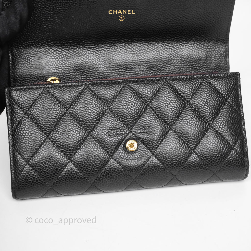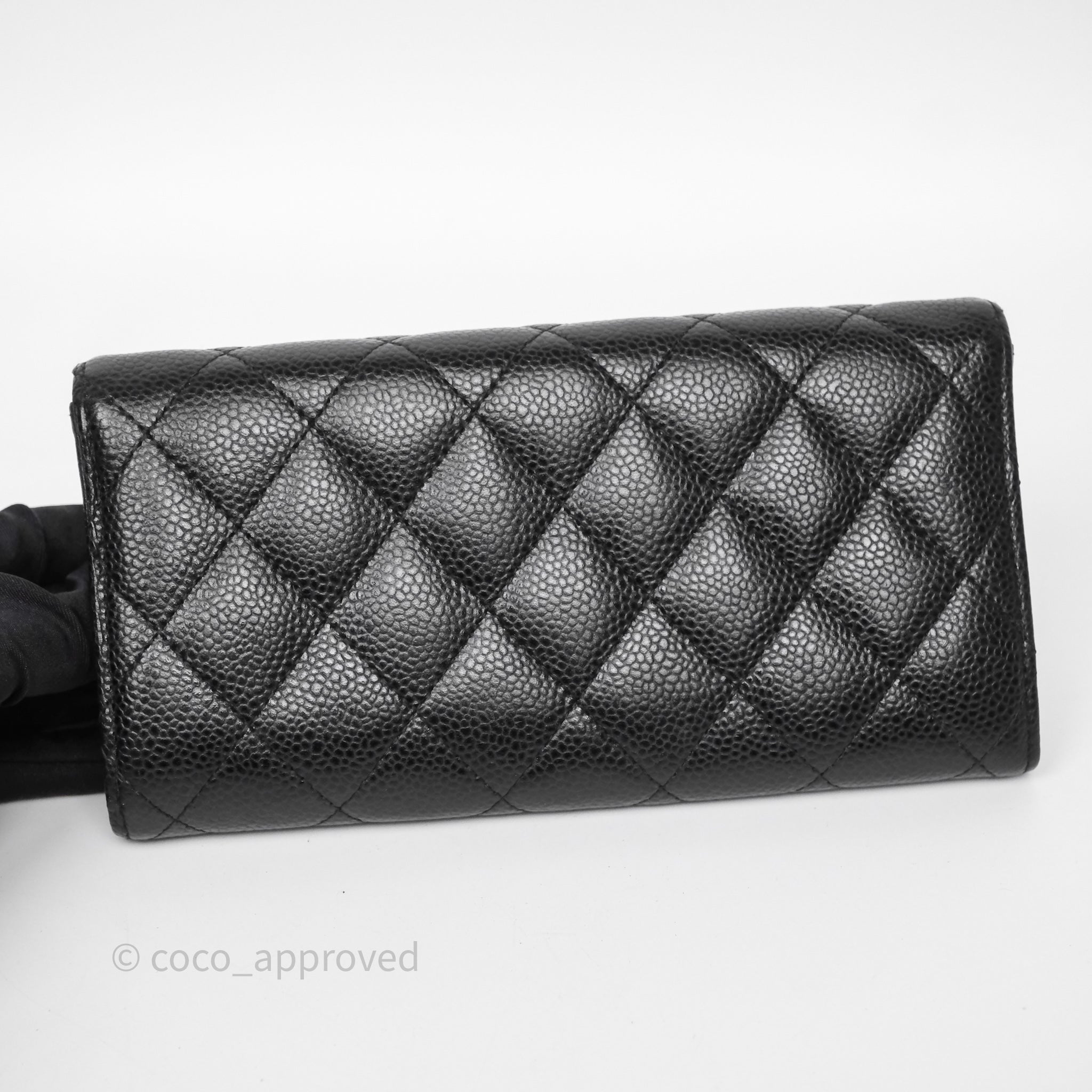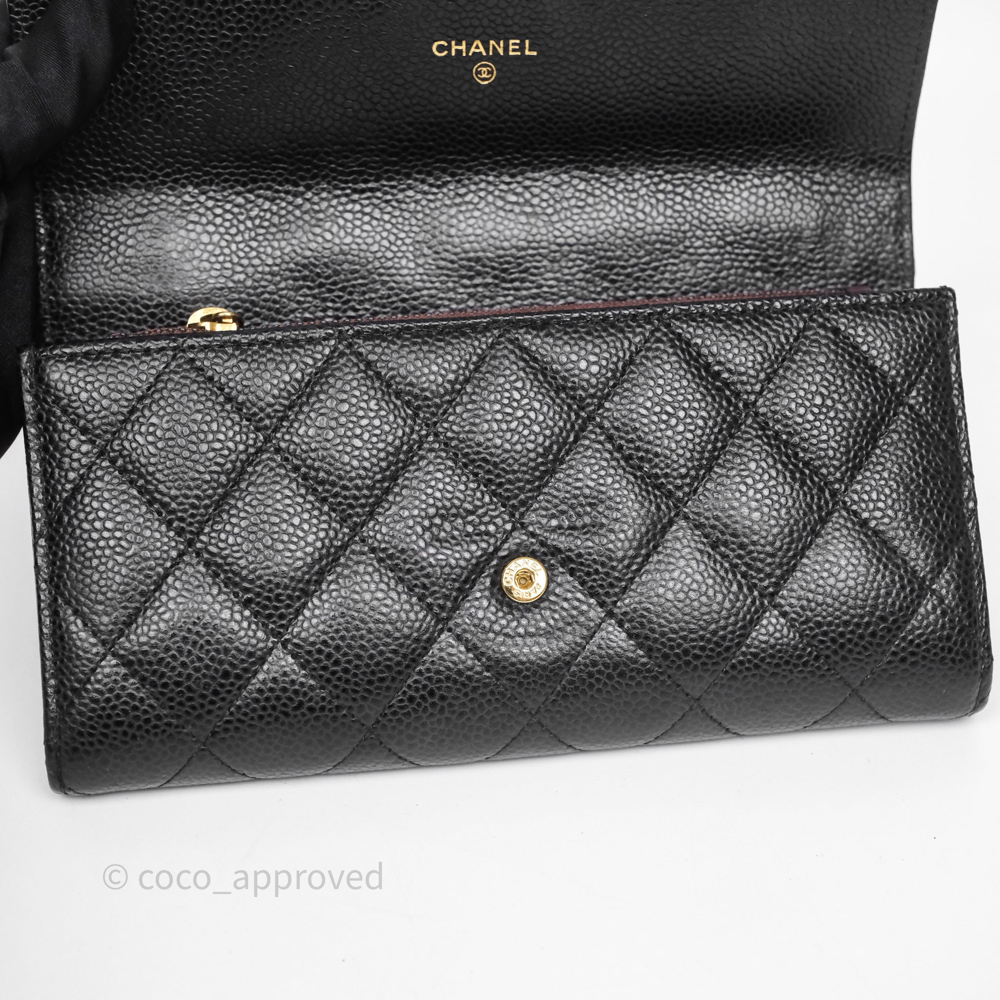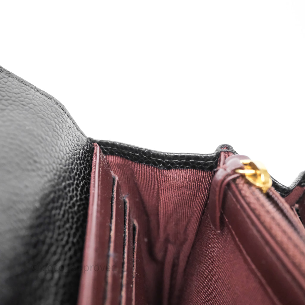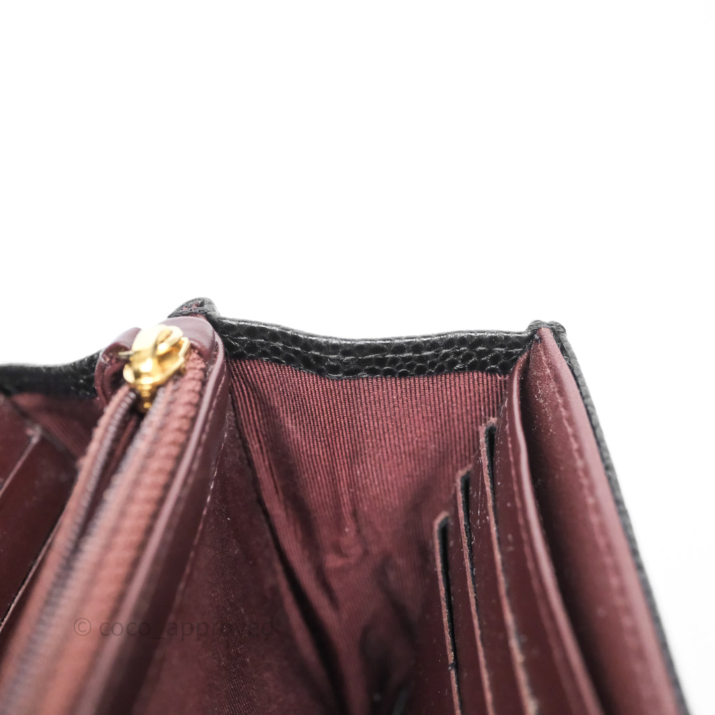 Chanel Quilted Classic Zip Long Wallet Black Caviar Gold Hardware