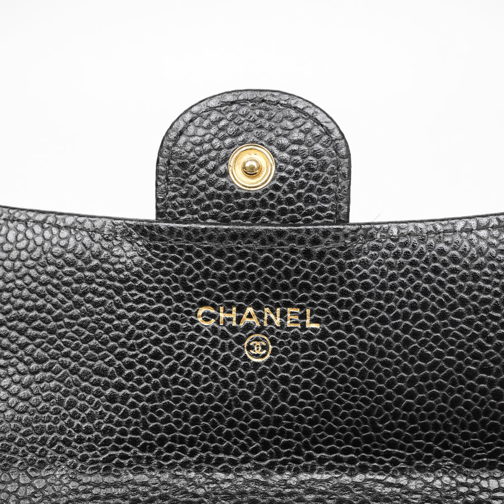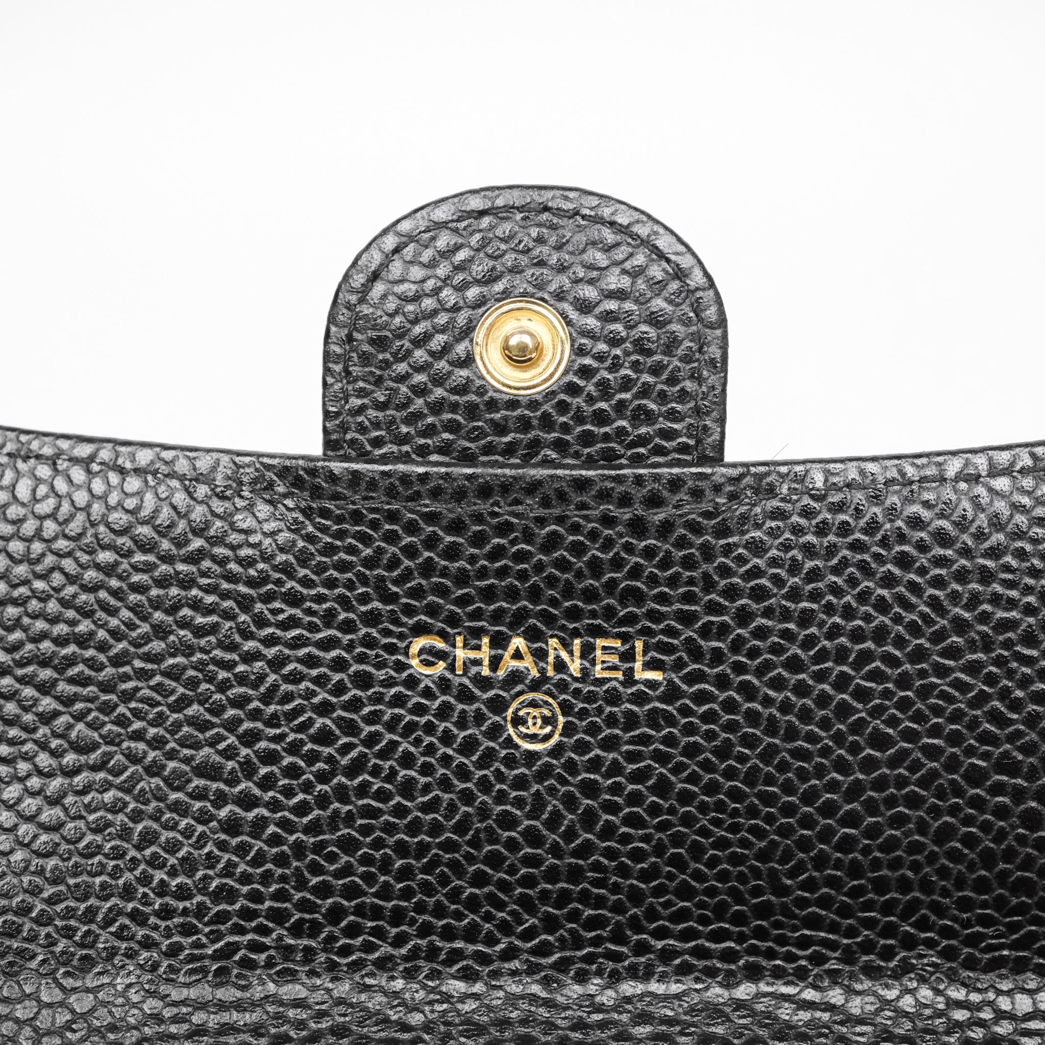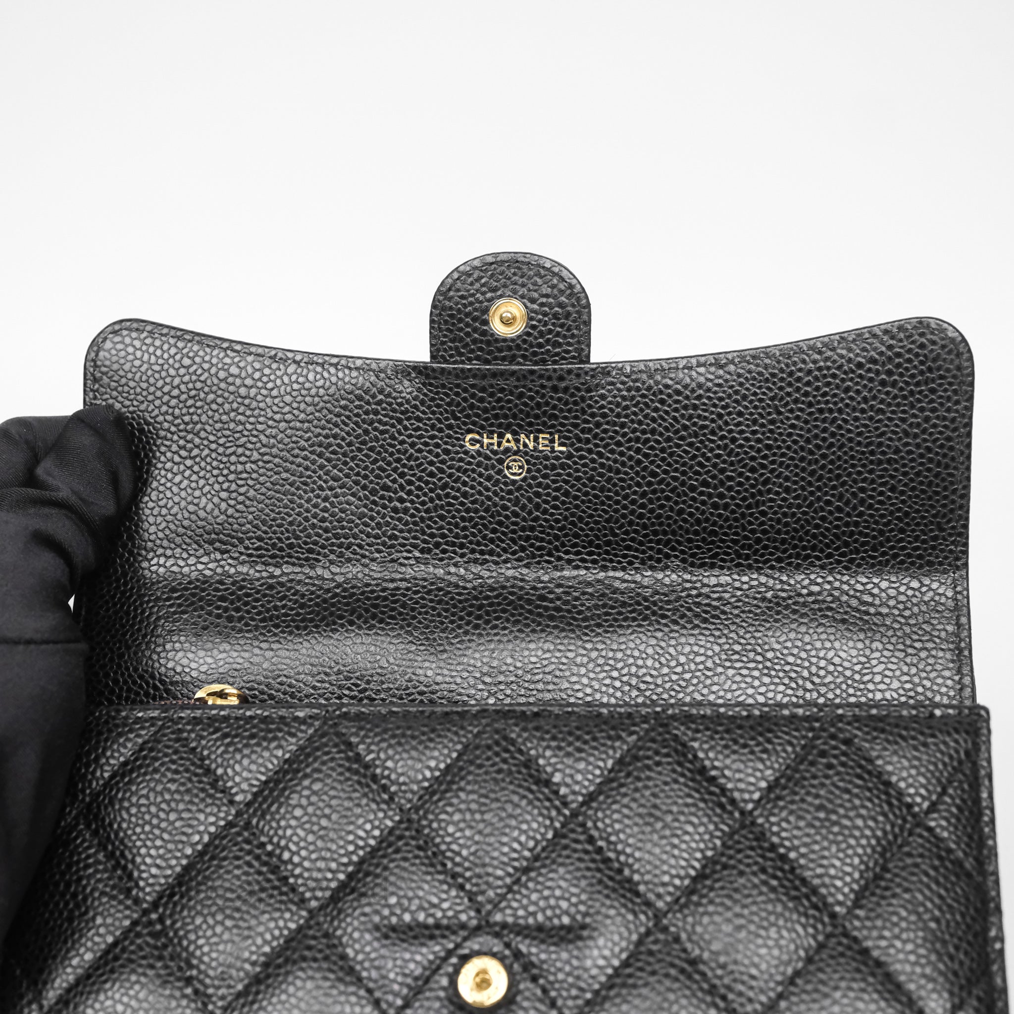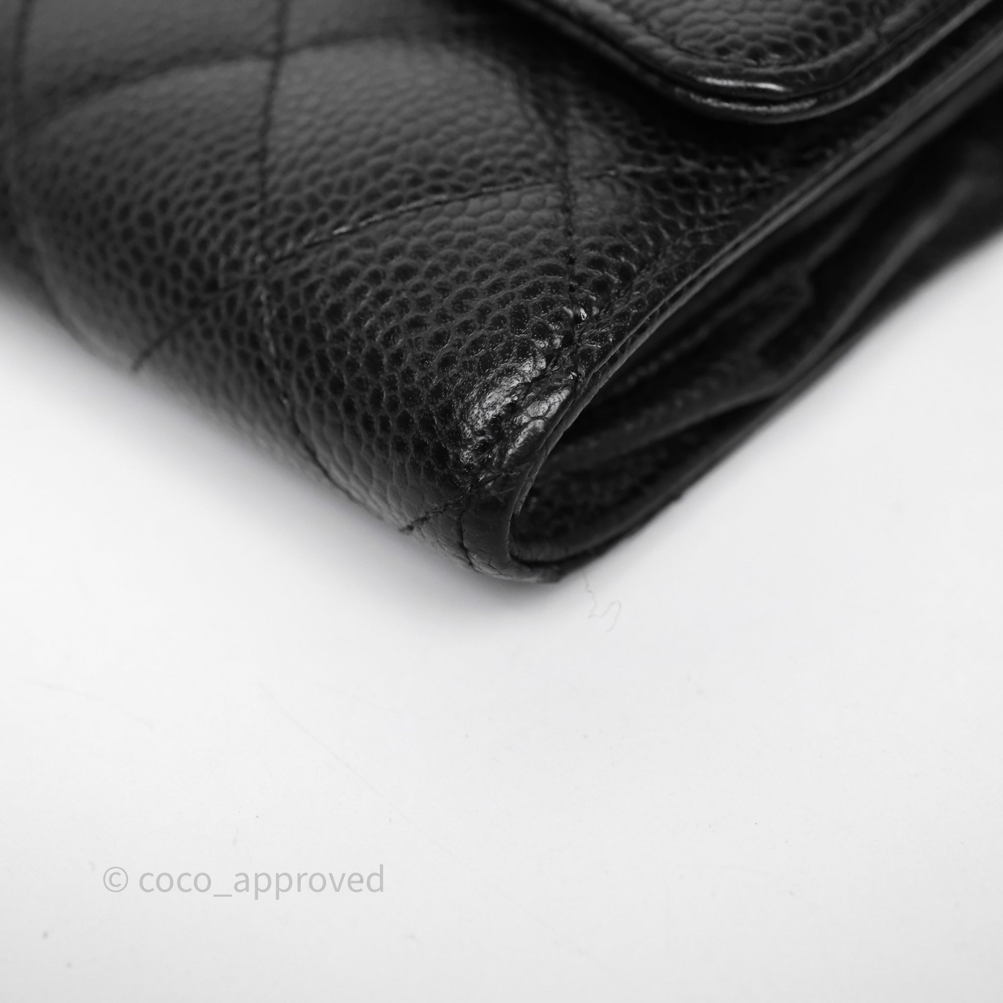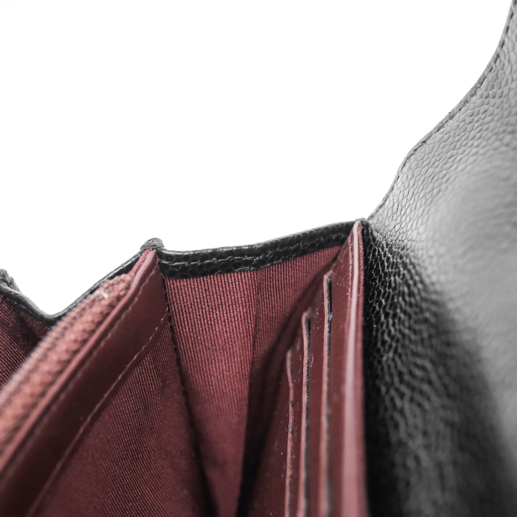 Chanel Quilted Classic Zip Long Wallet Black Caviar Gold Hardware