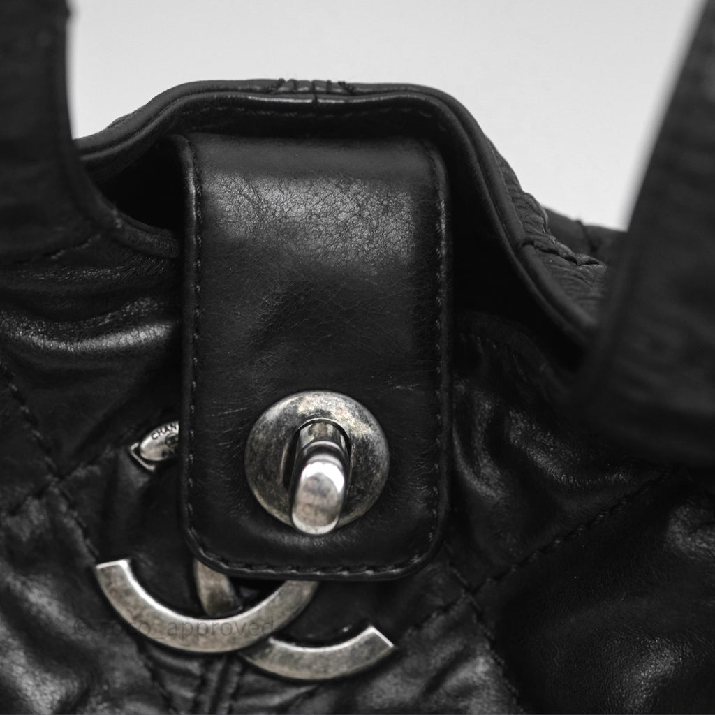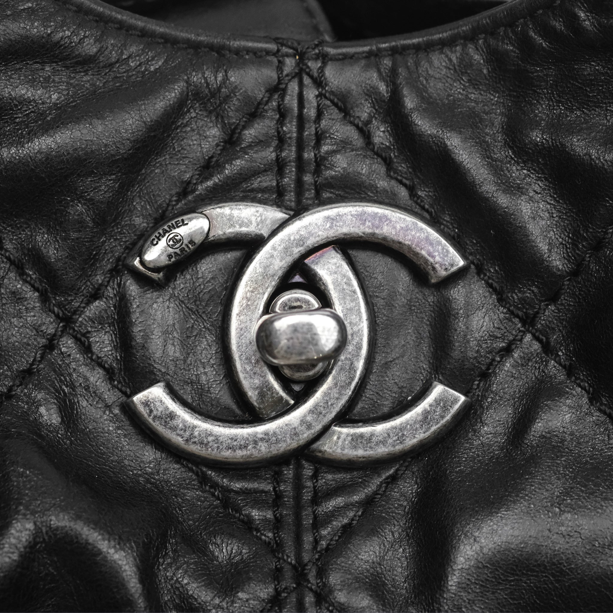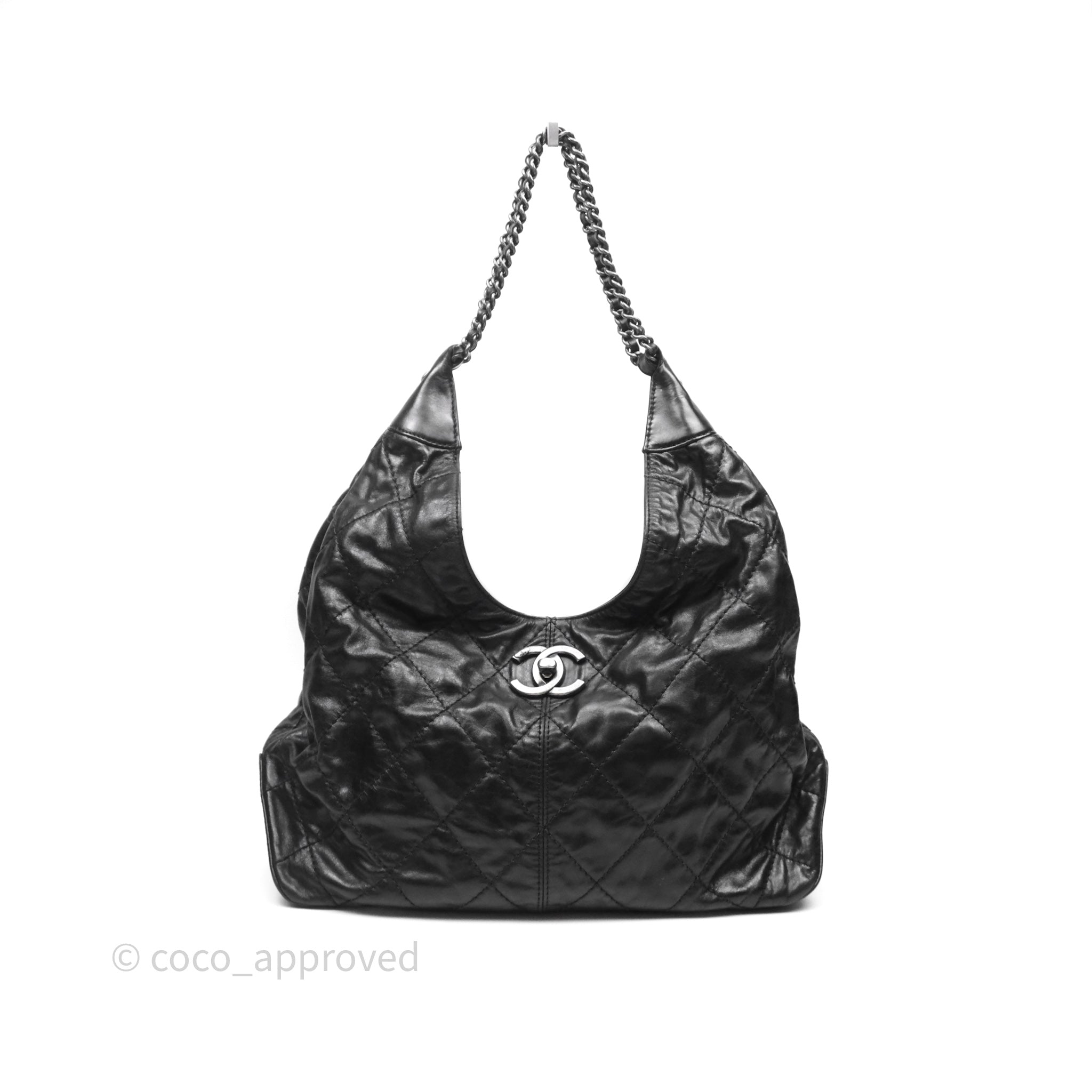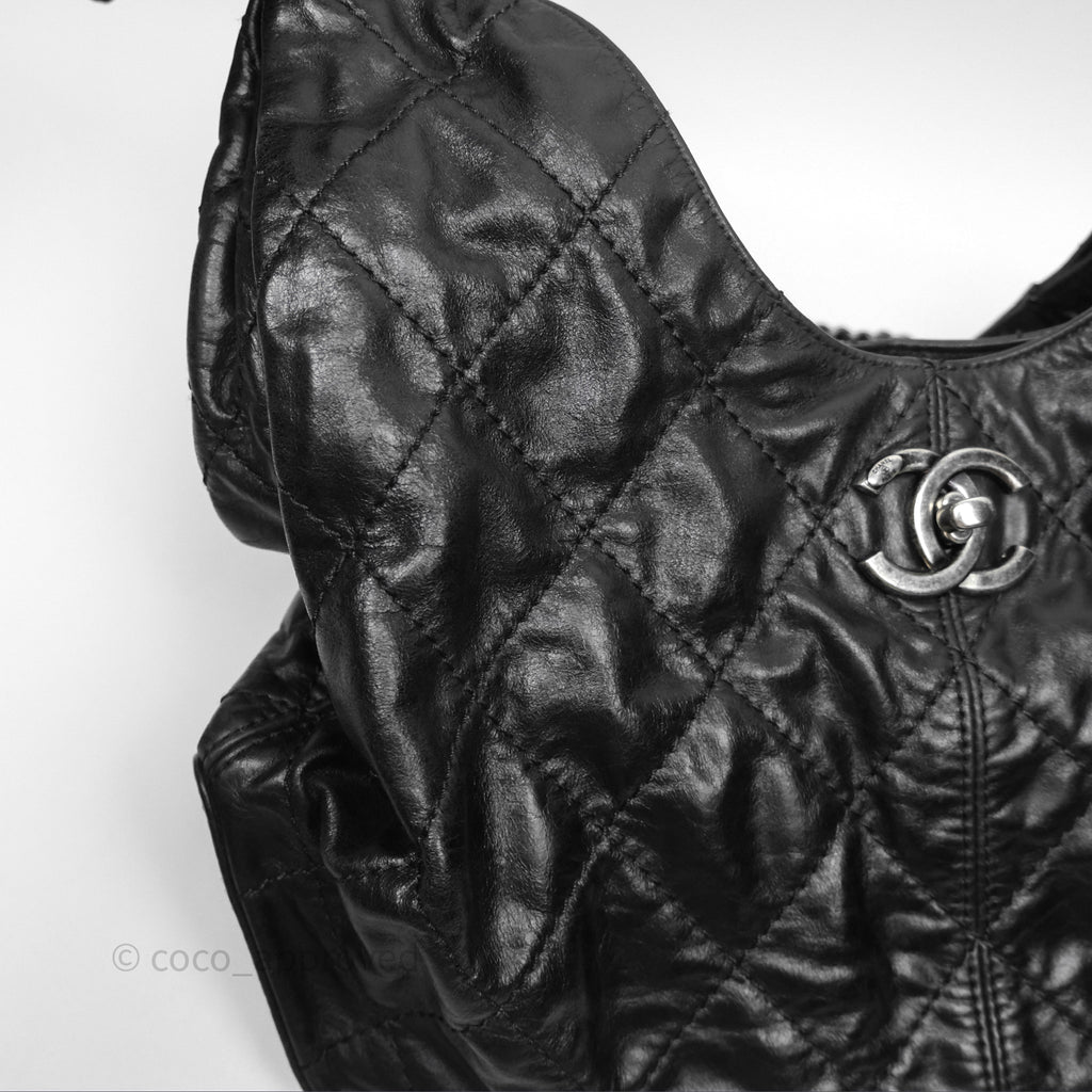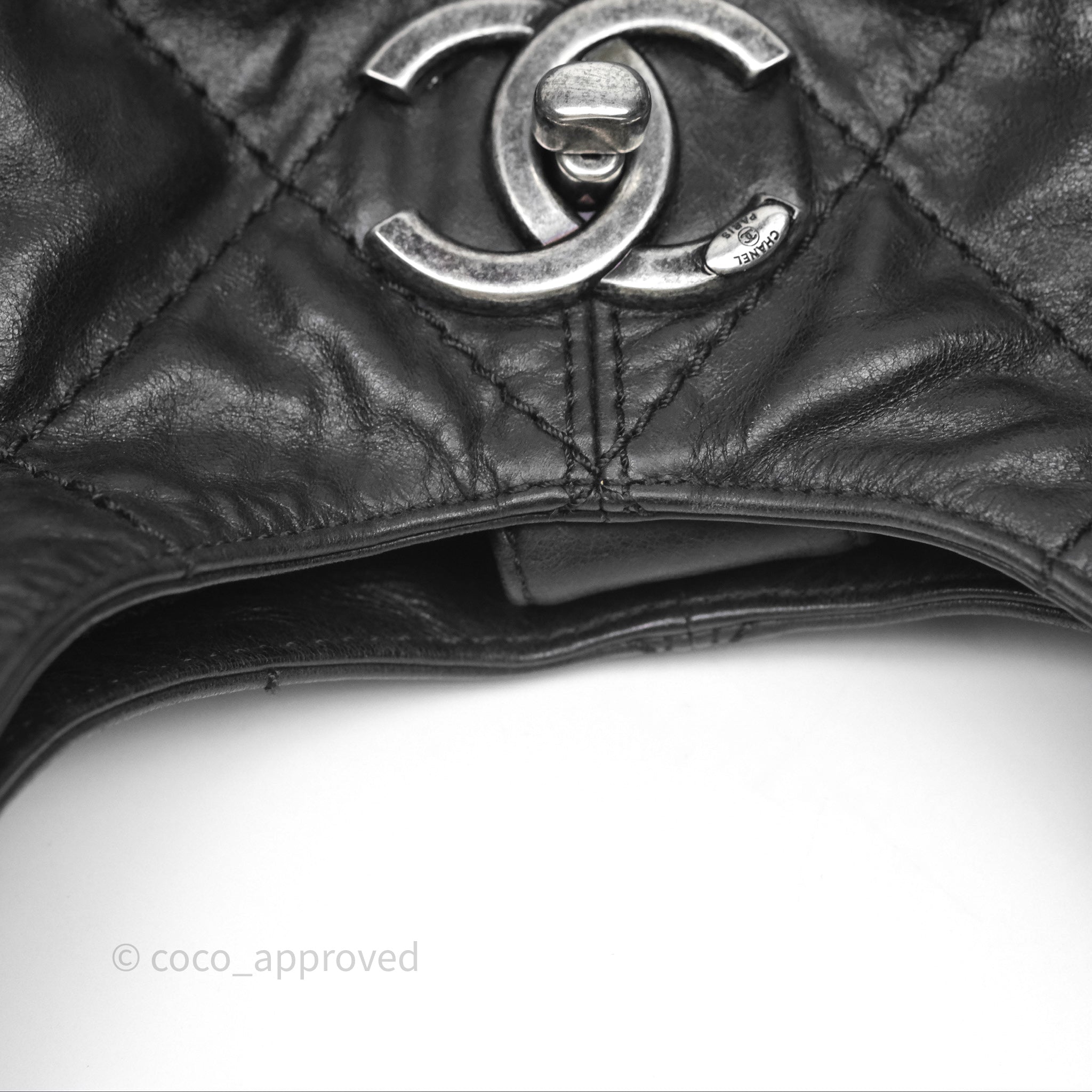 Chanel Quilted Coco Supple Hobo Black Aged Calfskin Ruthenium Hardware