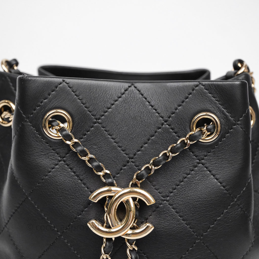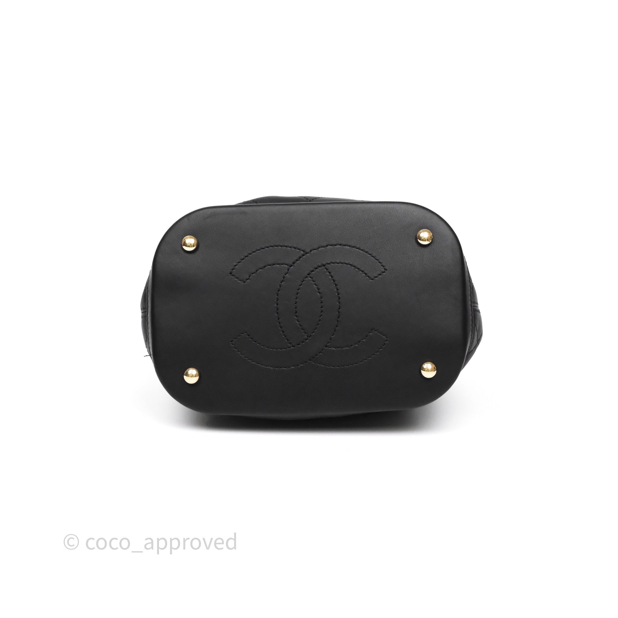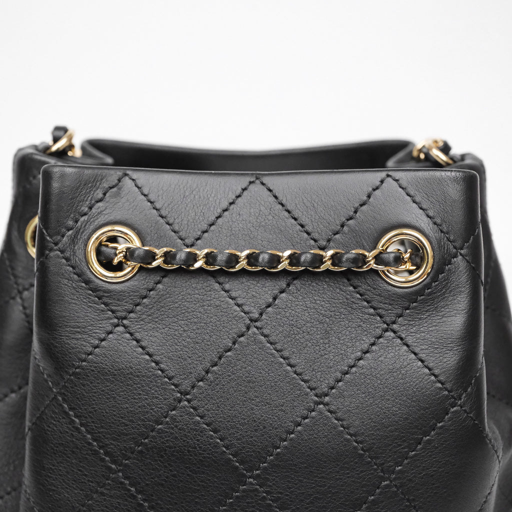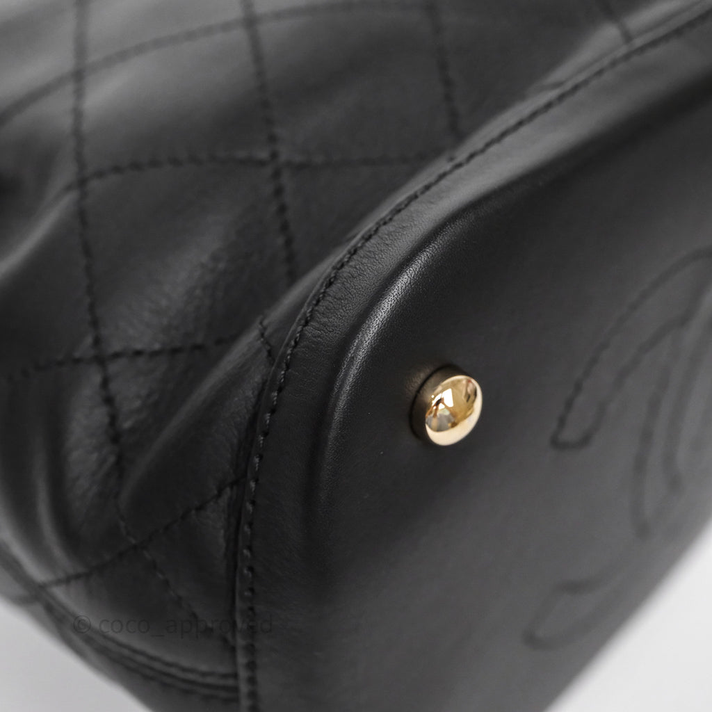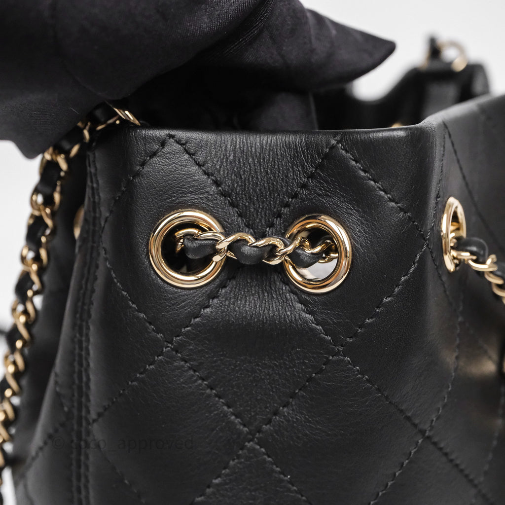 Chanel Quilted Drawstring Bucket Bag Black Calfskin Gold Hardware