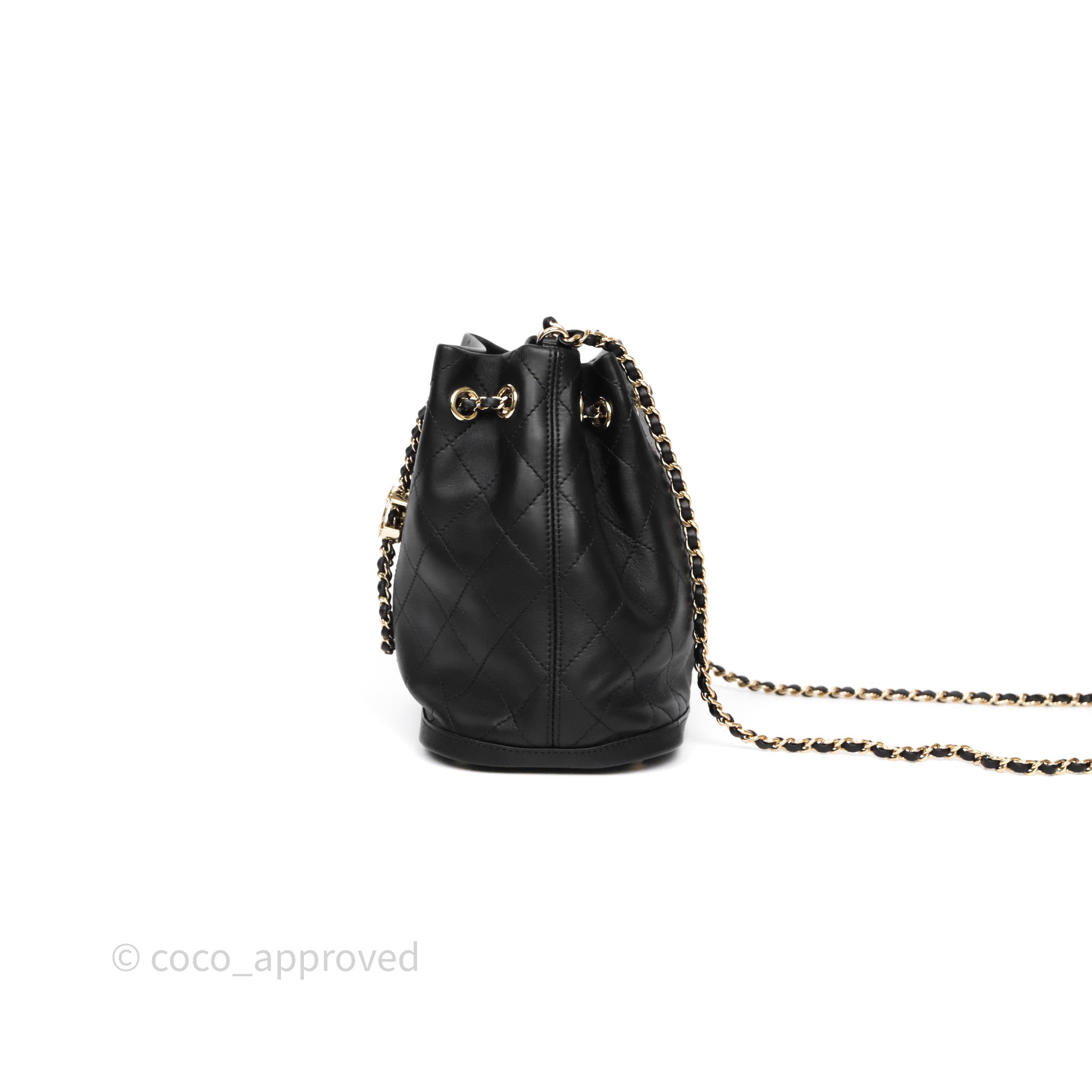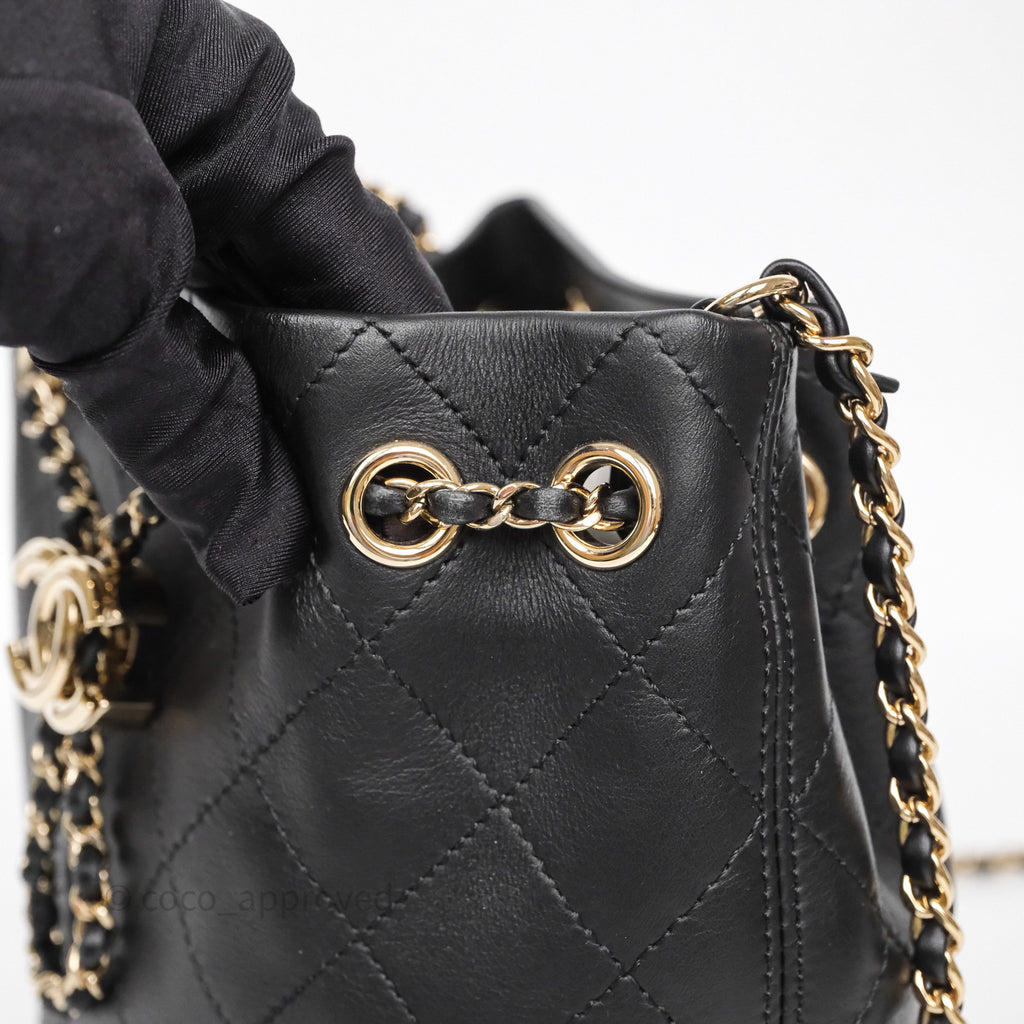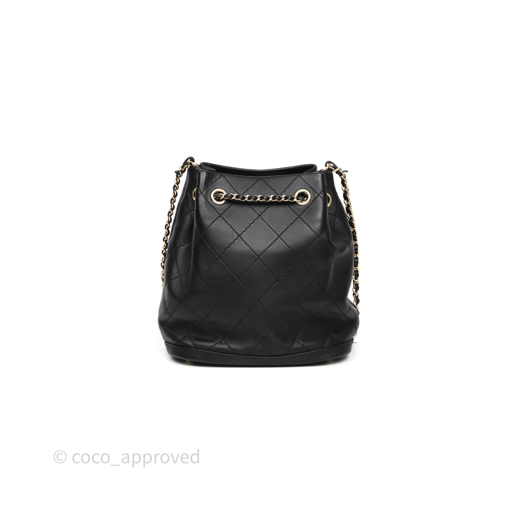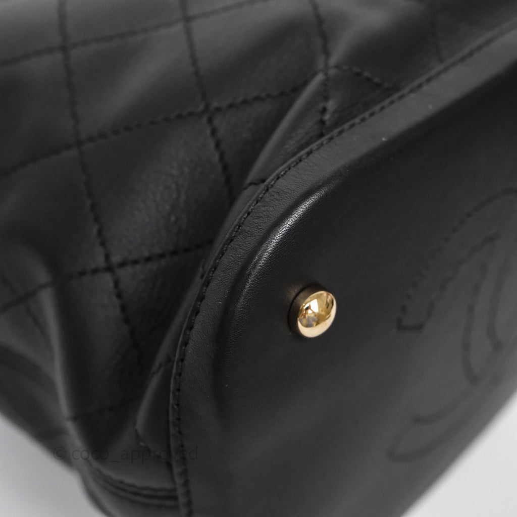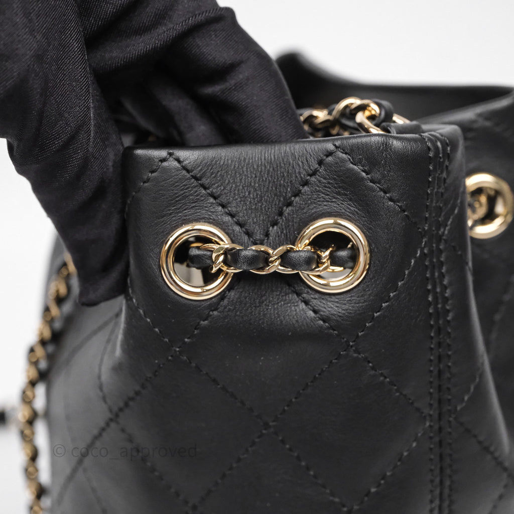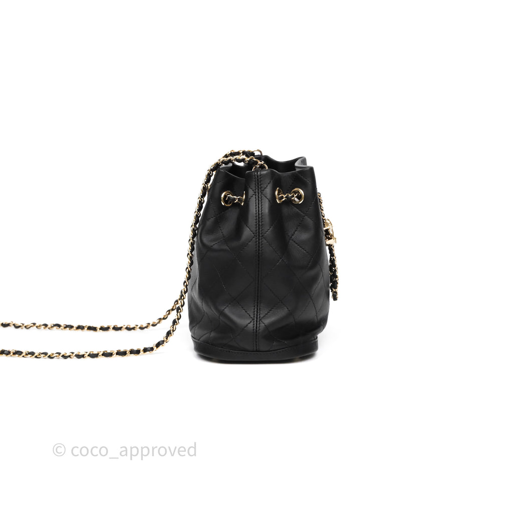 Chanel Quilted Drawstring Bucket Bag Black Calfskin Gold Hardware